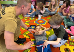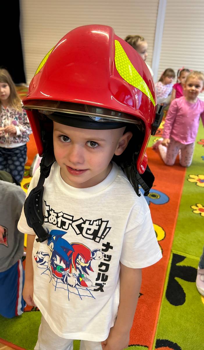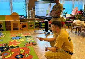 Już od najmłodszych lat warto kształtować u dzieci chęć pomagania. Dzieci uczestniczyły w zajęciach edukacyjnych z zakresu udzielania pierwszej pomocy przedmedycznej, które miały na celu kształtowanie pozytywnych i bezpiecznych postaw oraz zapoznanie najmłodszych z podstawowymi czynnościami ratowniczymi w wypadku nieobecności osób dorosłych. Aby lepiej zapoznać dzieci z udzielaniem pomocy zaprosiliśmy do przedszkola strażaków. Pan Bartek i Damian na co dzień pracują w Państwowej Straży Pożarnej, więc wiedzą jak ważna jest szybka reakcja i pomoc osobie poszkodowanej. Przedszkolaki dowiedziały się w jaki sposób udziela się pierwszej pomocy, jak pomóc poszkodowanym zanim przyjadą służby ratunkowe. Nauczyły się podstawowych numerów alarmowych oraz jak wezwać pomoc przez telefon. Następnie każdy mógł przećwiczyć układanie osoby w pozycji bezpiecznej bocznej oraz wykonywania RKO. To była cenna i jakże ważna lekcja, która uczy odwagi, przełamywania strachu. Dziękujemy panu Bartkowi i panu Damianowi za poświęcony czas i przekazanie tylu cennych informacji na miarę zdrowia i życia.