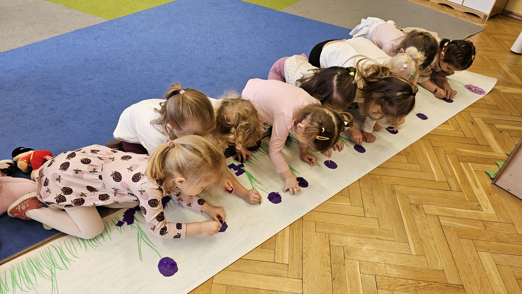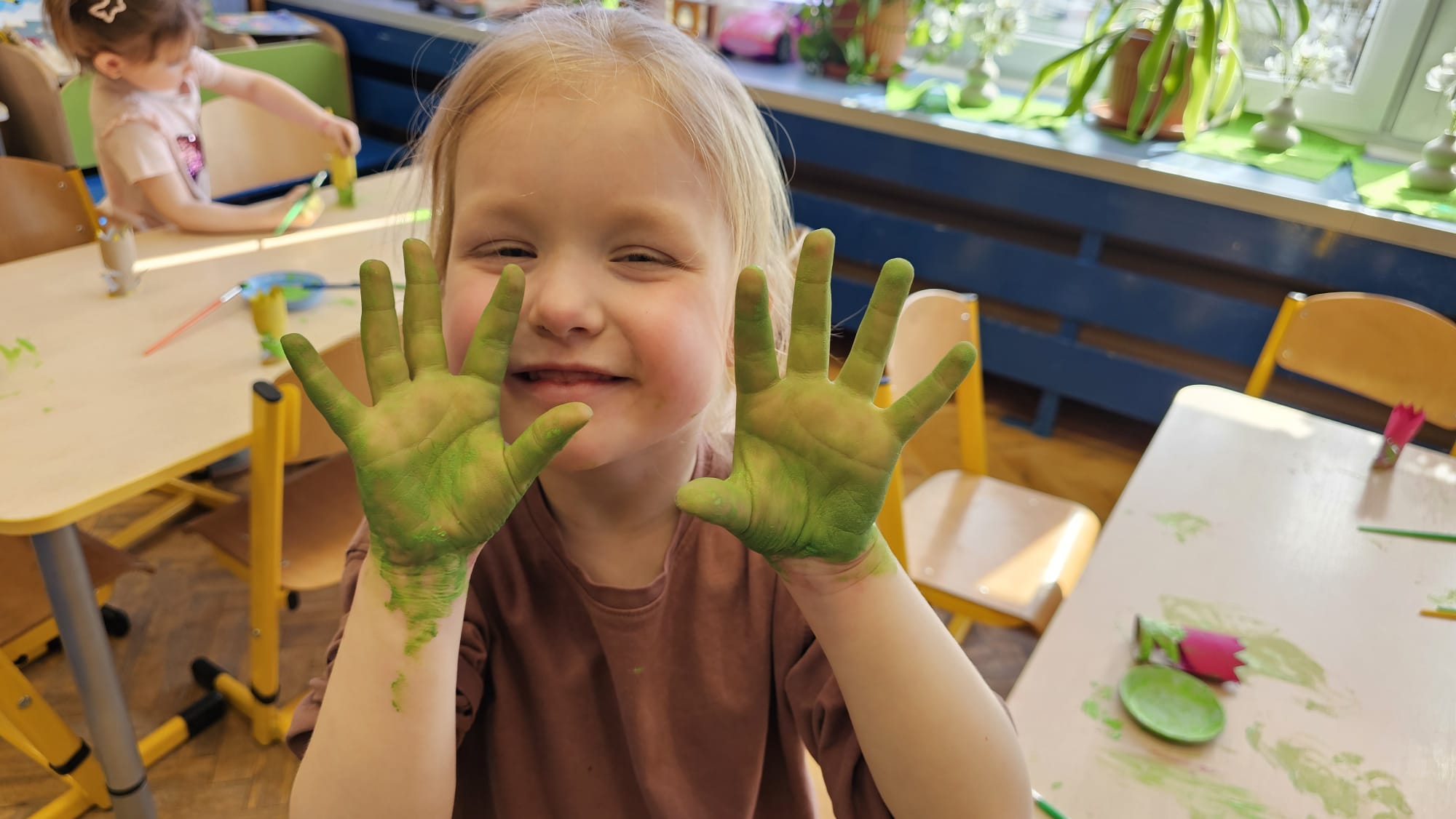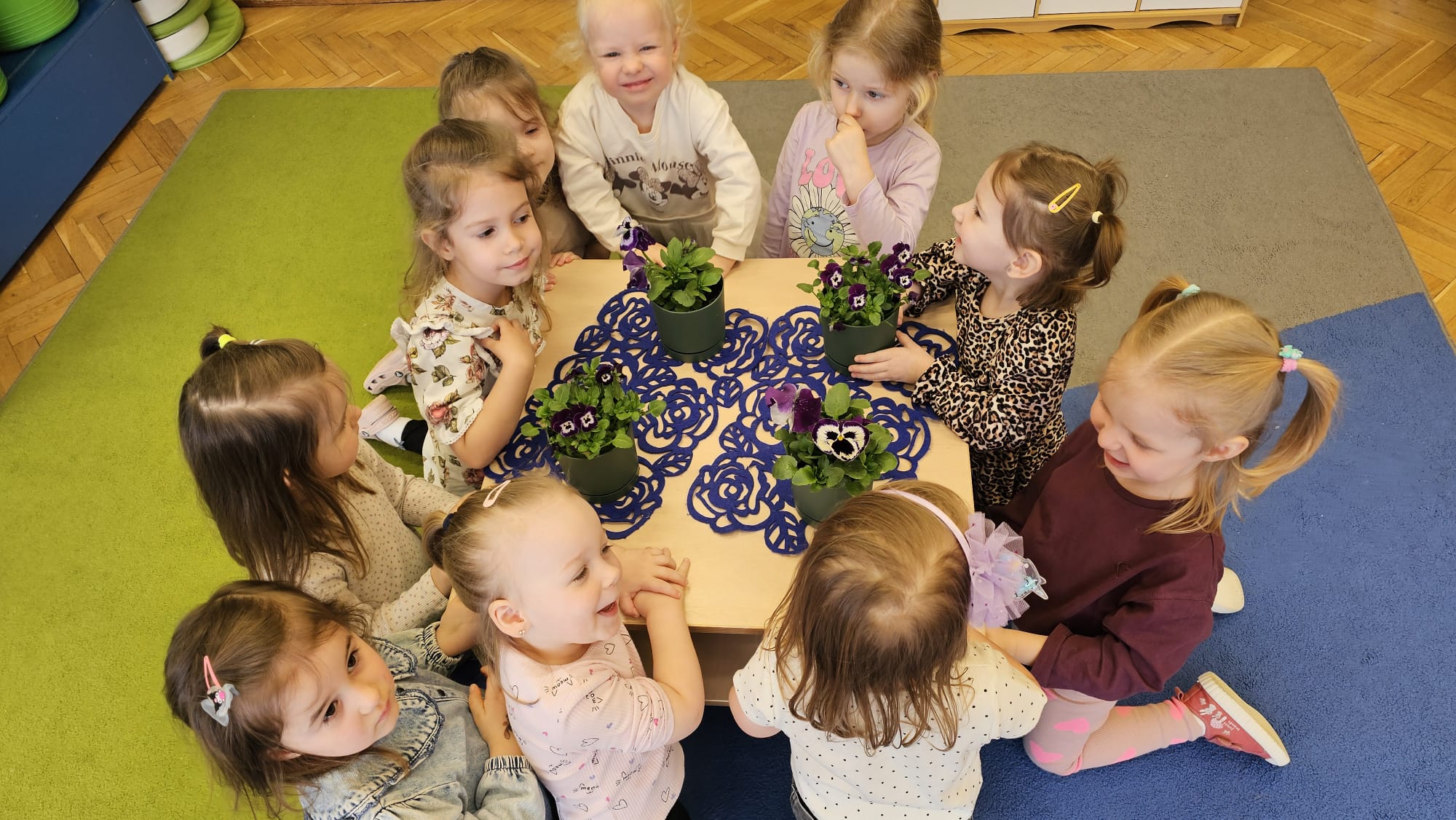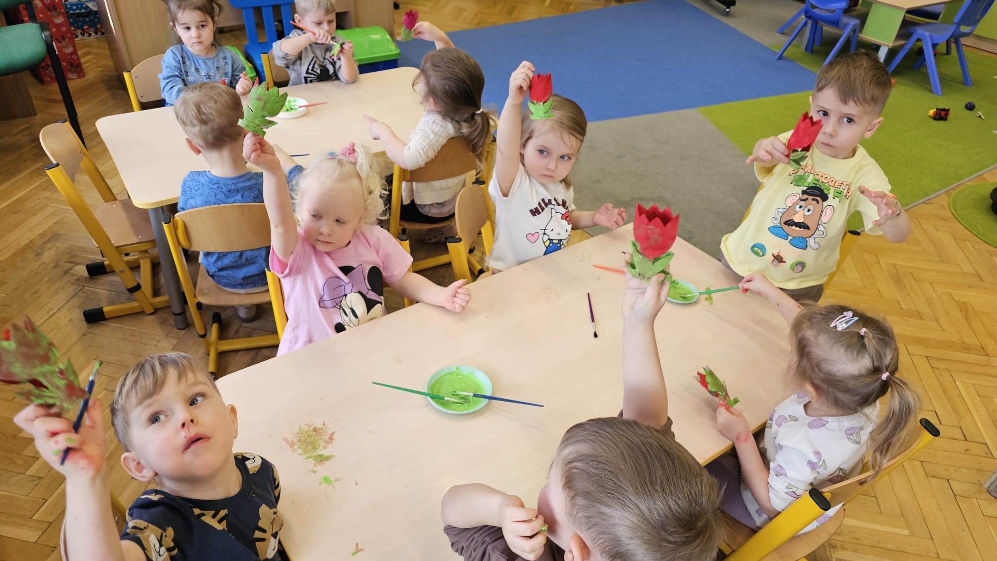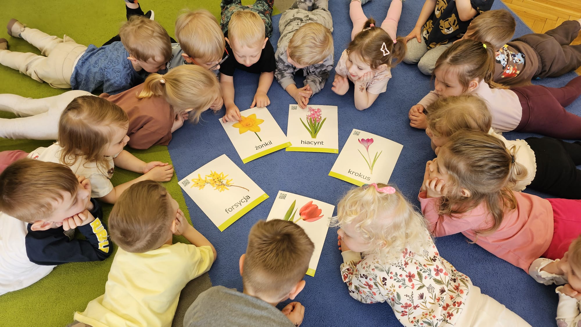 Podczas ostatniego cyklu zajęć pt. „Pierwsze wiosenne kwiatki” dzieci z grupy I maluszków miały okazję poznać pierwsze oznaki wiosny w sposób sensoryczny i artystyczny. Maluchy odkrywały przebiśniegi, hiacynty, tulipany oraz bratki, angażując różne zmysły. Dotykały, oglądały, wąchały i rozmawiały o ich wyglądzie, określały zapach. Dzieci z dużym zaangażowaniem tworzyły również własne kwiatki, wykorzystując różnorodne materiały i techniki plastyczne. Zajęcia były pełne radości, kreatywności i wiosennej atmosfery. Celem zajęć było: rozwijanie percepcji sensorycznej (wzrokowej, dotykowej, węchowej), poznanie wybranych wiosennych kwiatów, rozwijanie sprawności manualnej i kreatywności, kształtowanie umiejętności wypowiadania się i wzbogacanie słownictwa, a przede wszystkim budowanie zainteresowania przyrodą i zmianami zachodzącymi wiosną.