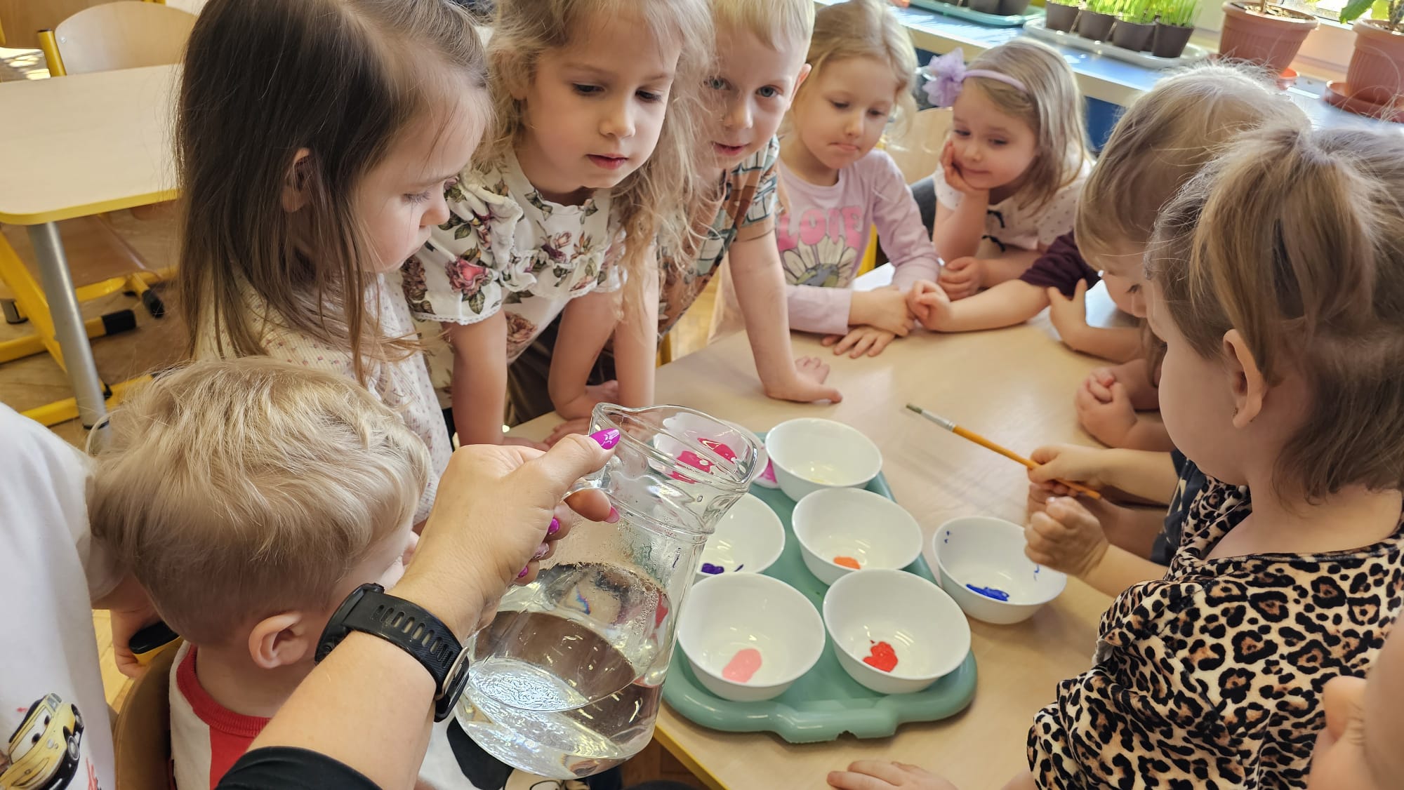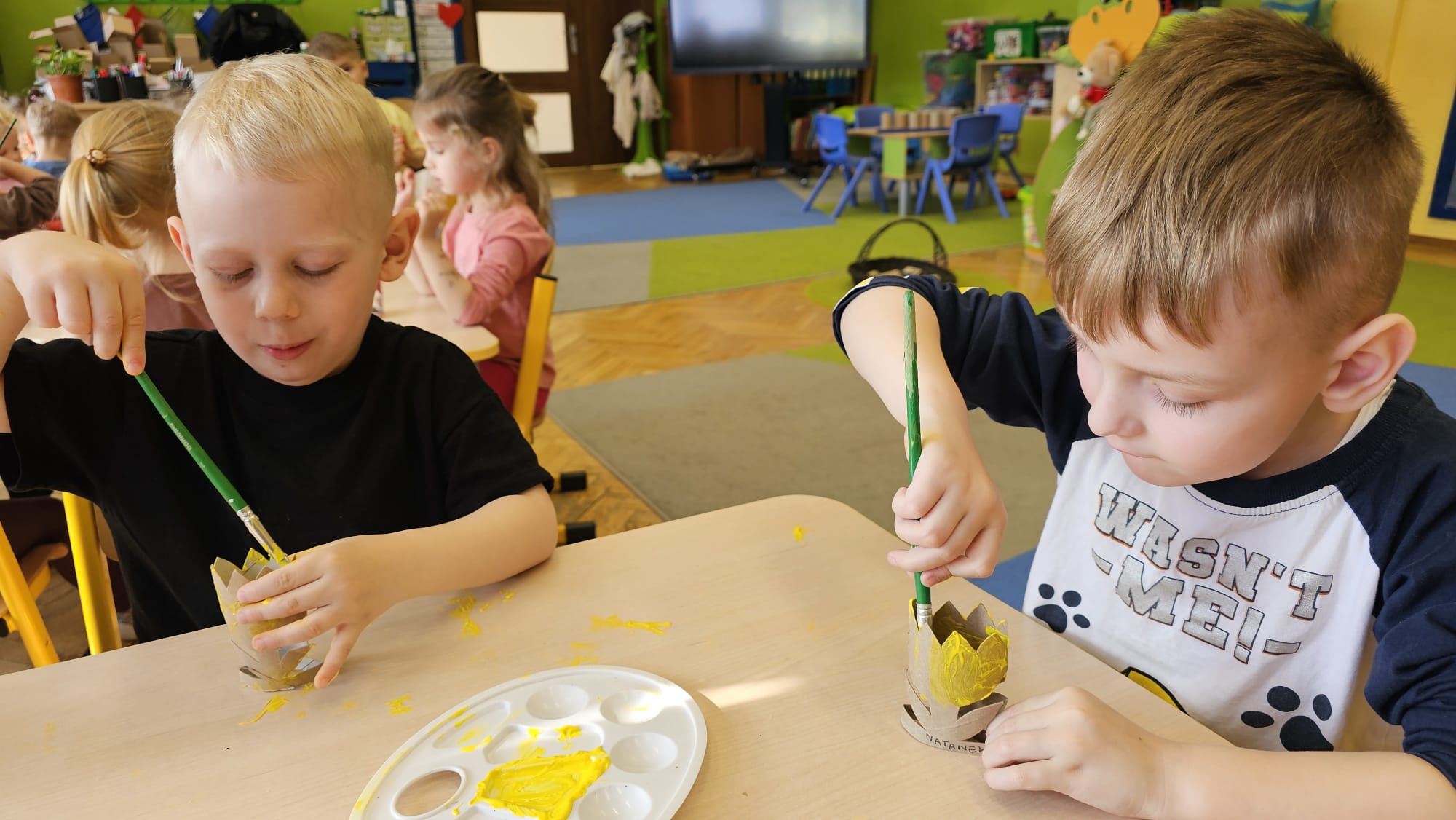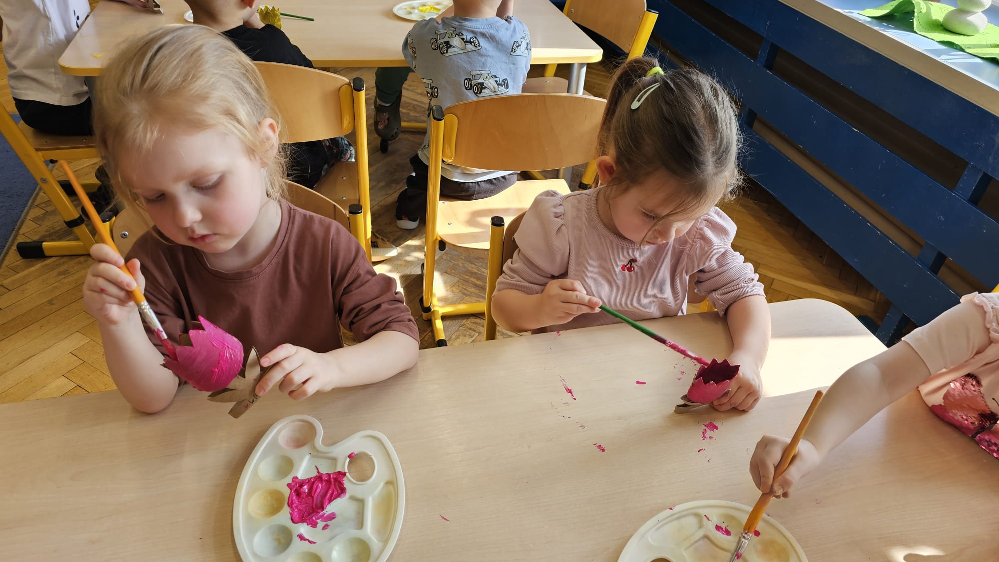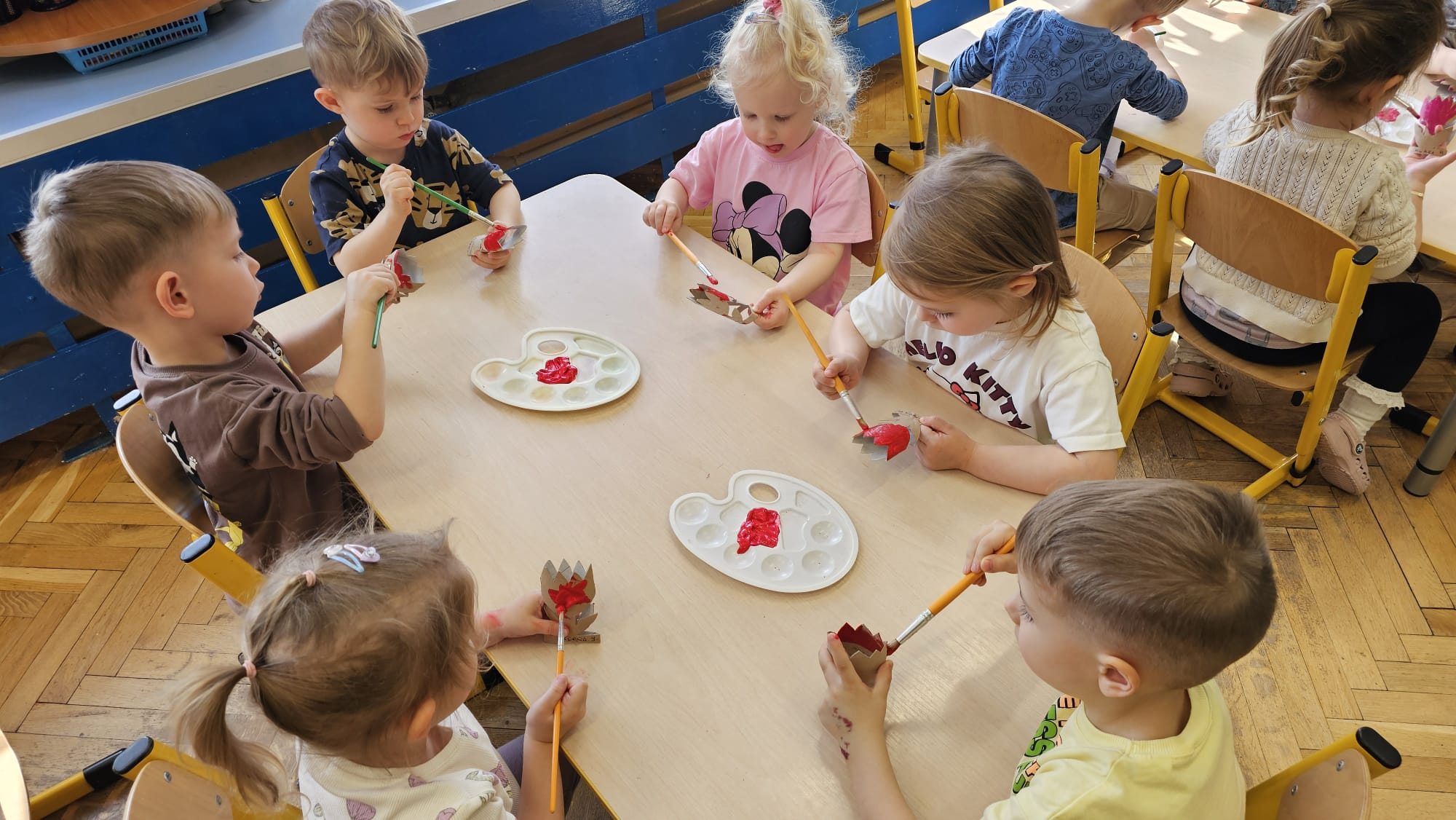 Podczas ostatniego cyklu zajęć pt. „Pierwsze wiosenne kwiatki” dzieci z grupy I maluszków miały okazję poznać pierwsze oznaki wiosny w sposób sensoryczny i artystyczny. Maluchy odkrywały przebiśniegi, hiacynty, tulipany oraz bratki, angażując różne zmysły. Dotykały, oglądały, wąchały i rozmawiały o ich wyglądzie, określały zapach. Dzieci z dużym zaangażowaniem tworzyły również własne kwiatki, wykorzystując różnorodne materiały i techniki plastyczne. Zajęcia były pełne radości, kreatywności i wiosennej atmosfery. Celem zajęć było: rozwijanie percepcji sensorycznej (wzrokowej, dotykowej, węchowej), poznanie wybranych wiosennych kwiatów, rozwijanie sprawności manualnej i kreatywności, kształtowanie umiejętności wypowiadania się i wzbogacanie słownictwa, a przede wszystkim budowanie zainteresowania przyrodą i zmianami zachodzącymi wiosną.