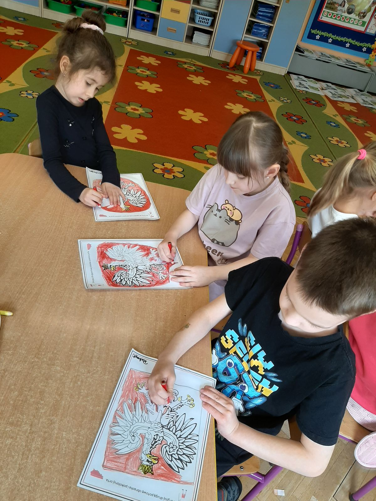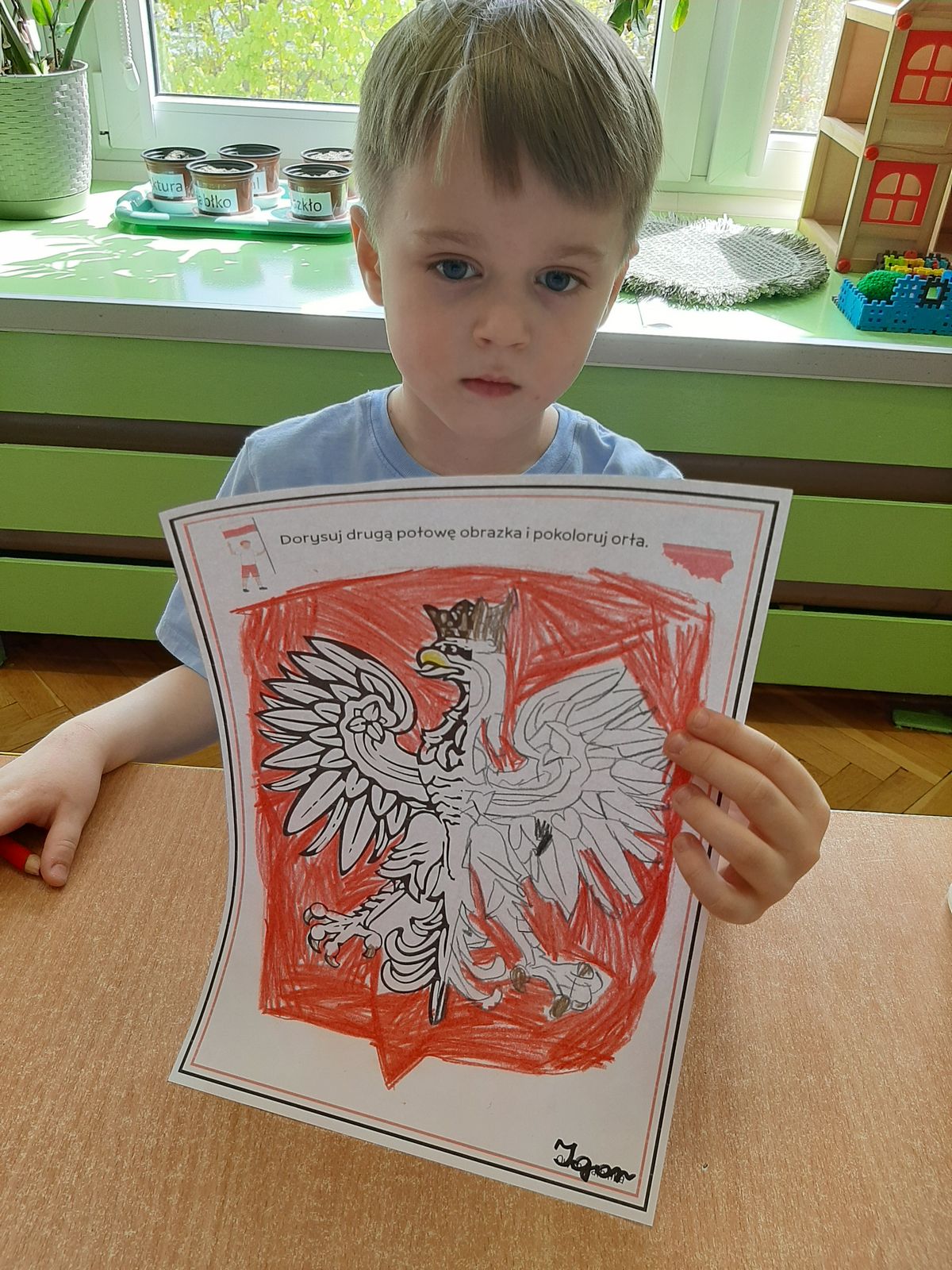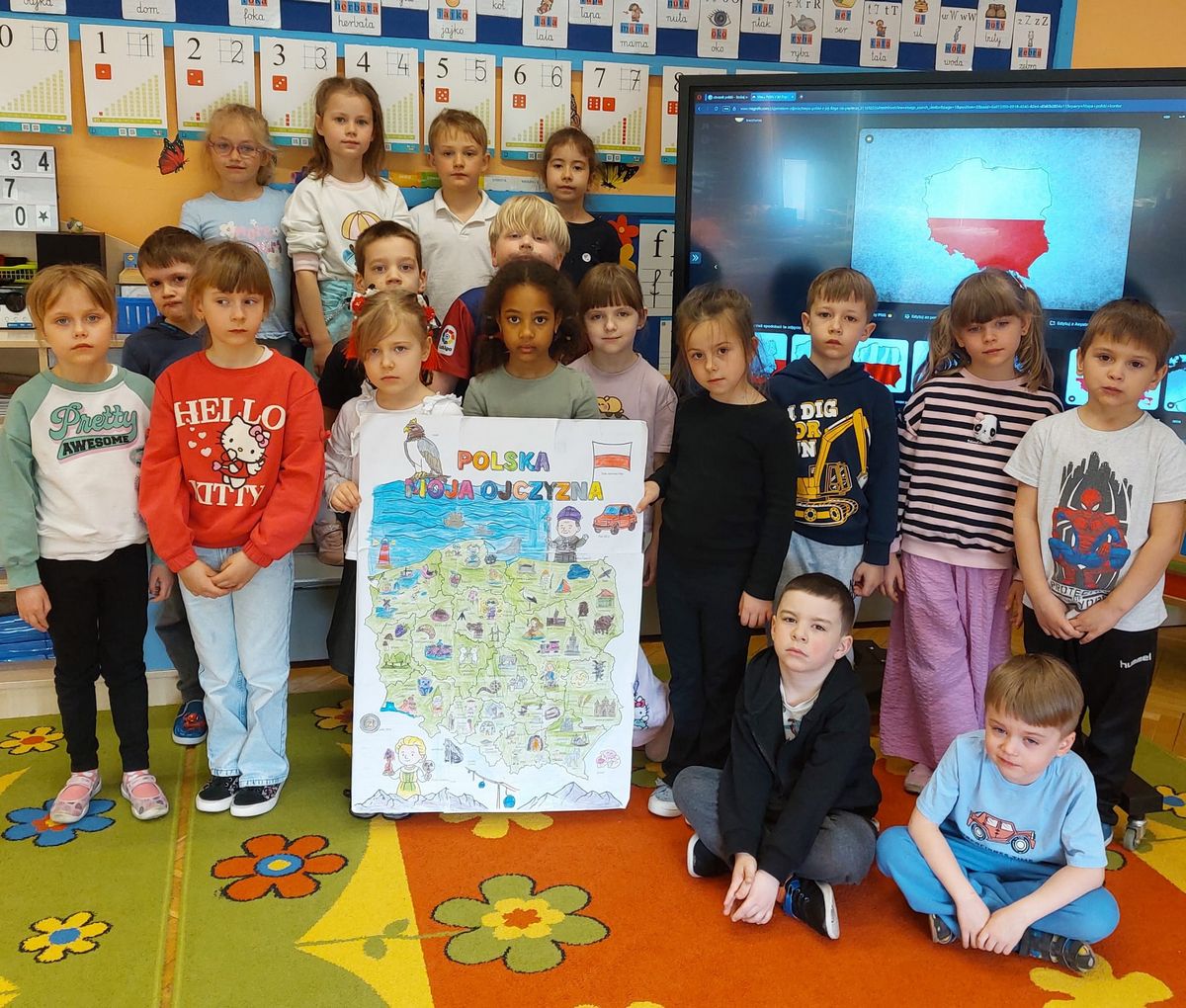 W tym tygodniu w naszej grupie rozmawialiśmy o patriotyzmie. W ramach działań dzieci odwiedziły Mini Muzeum. Uczestniczyły w zajęciach i zabawach dydaktycznych, dzięki którym poznały symbole narodowe: flagę, godło i hymn Polski. Obejrzały film edukacyjny pt. „Polska nasza Ojczyzna” i wykonały plakat. Liczymy na to że dzięki takim zajęciom dzieci rozwiną tożsamość narodową i będą wzrastały w duchu miłości do ojczyzny.
