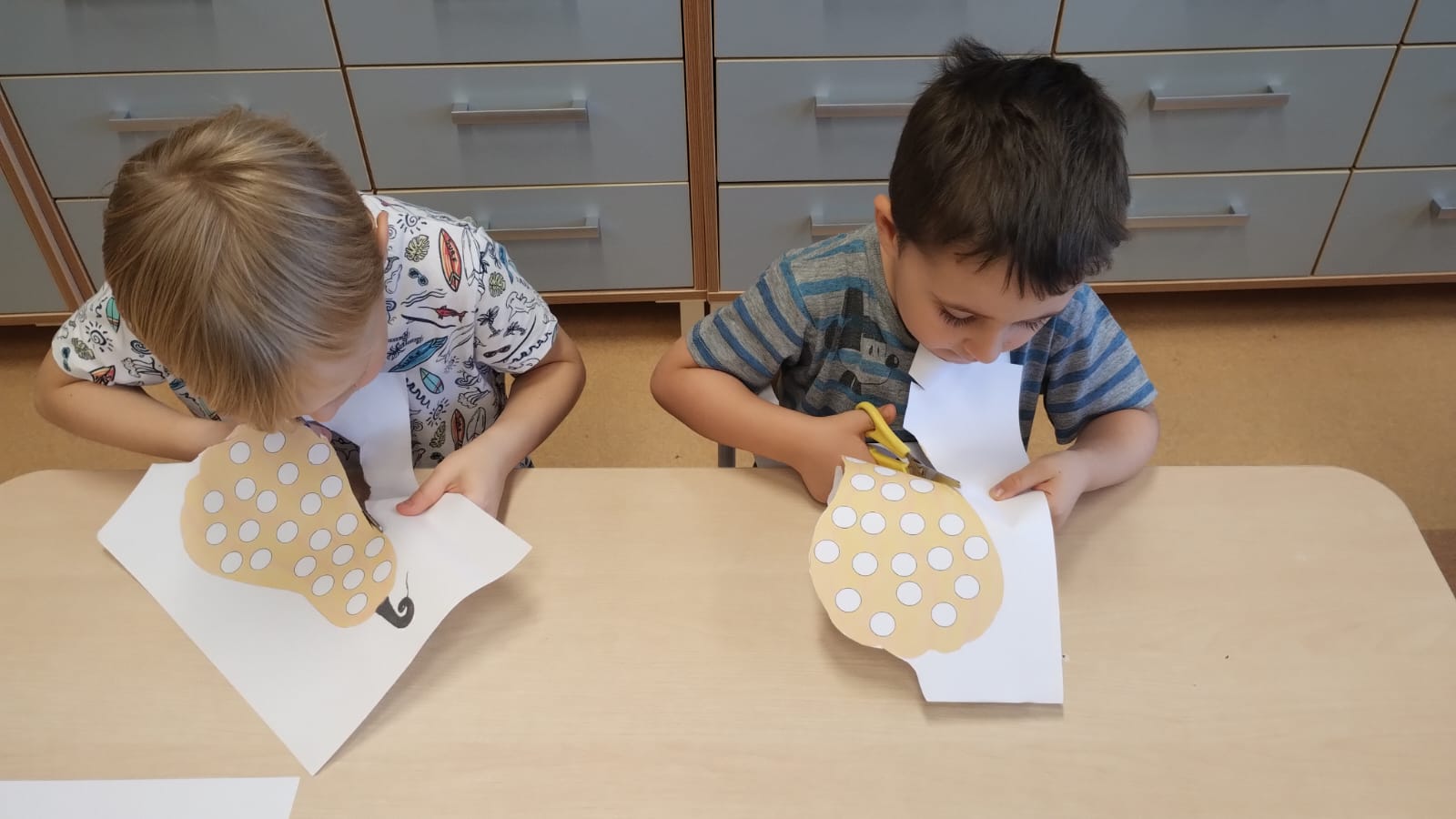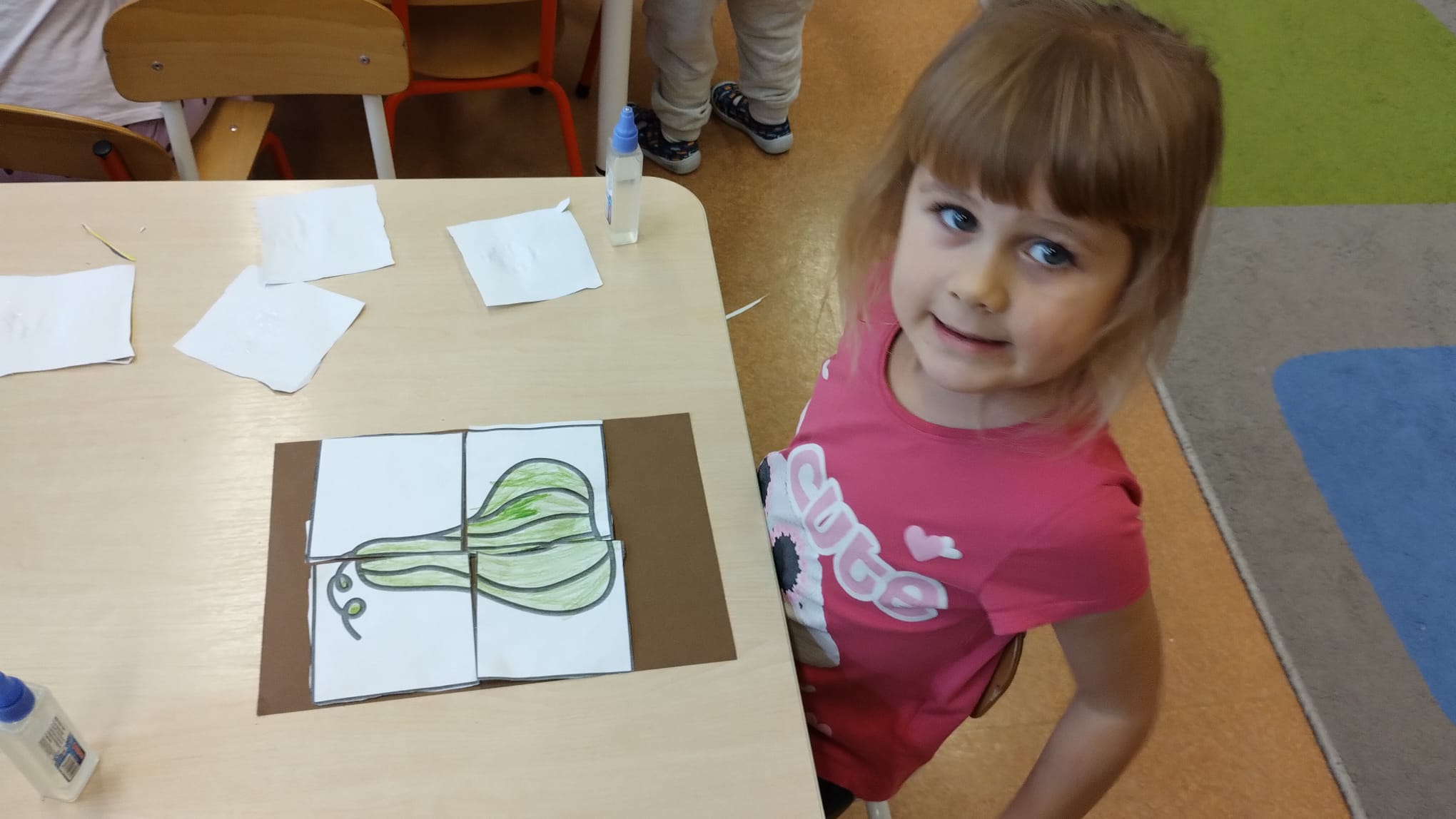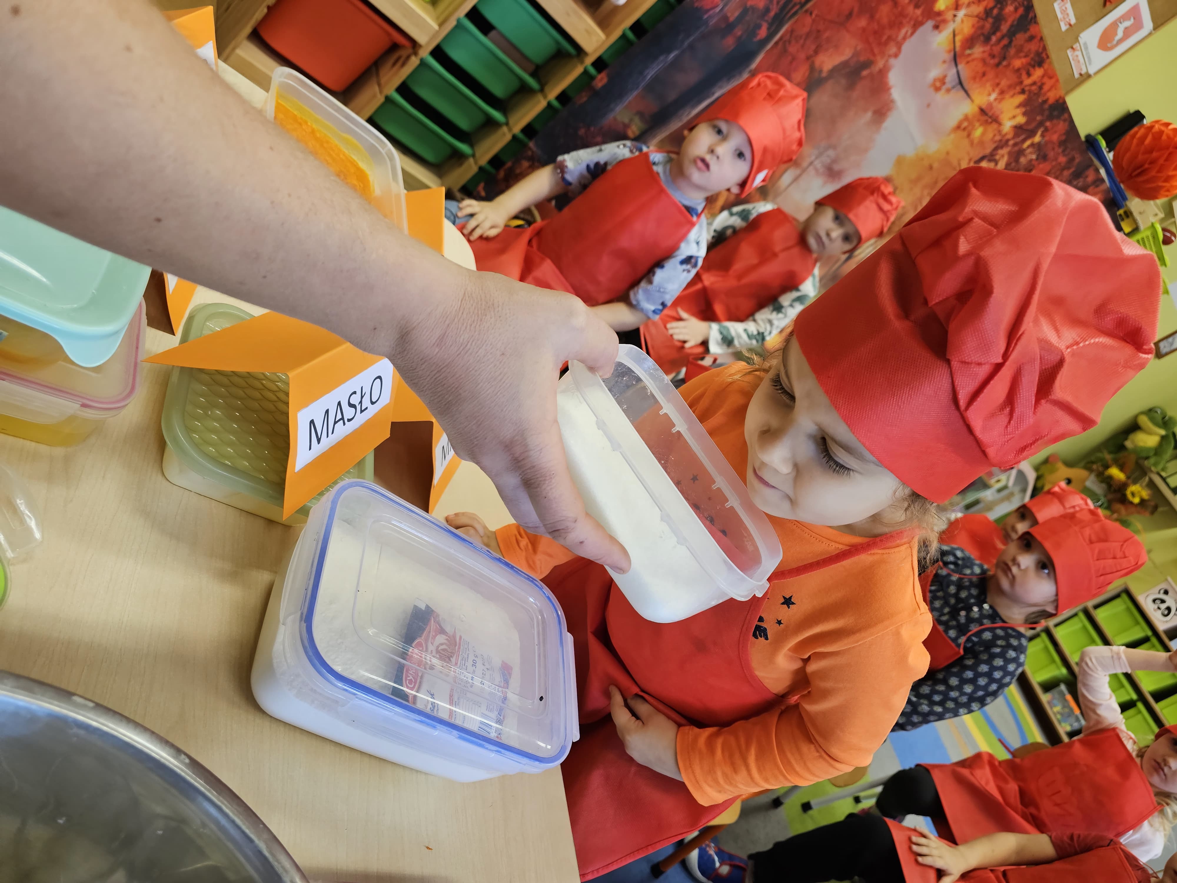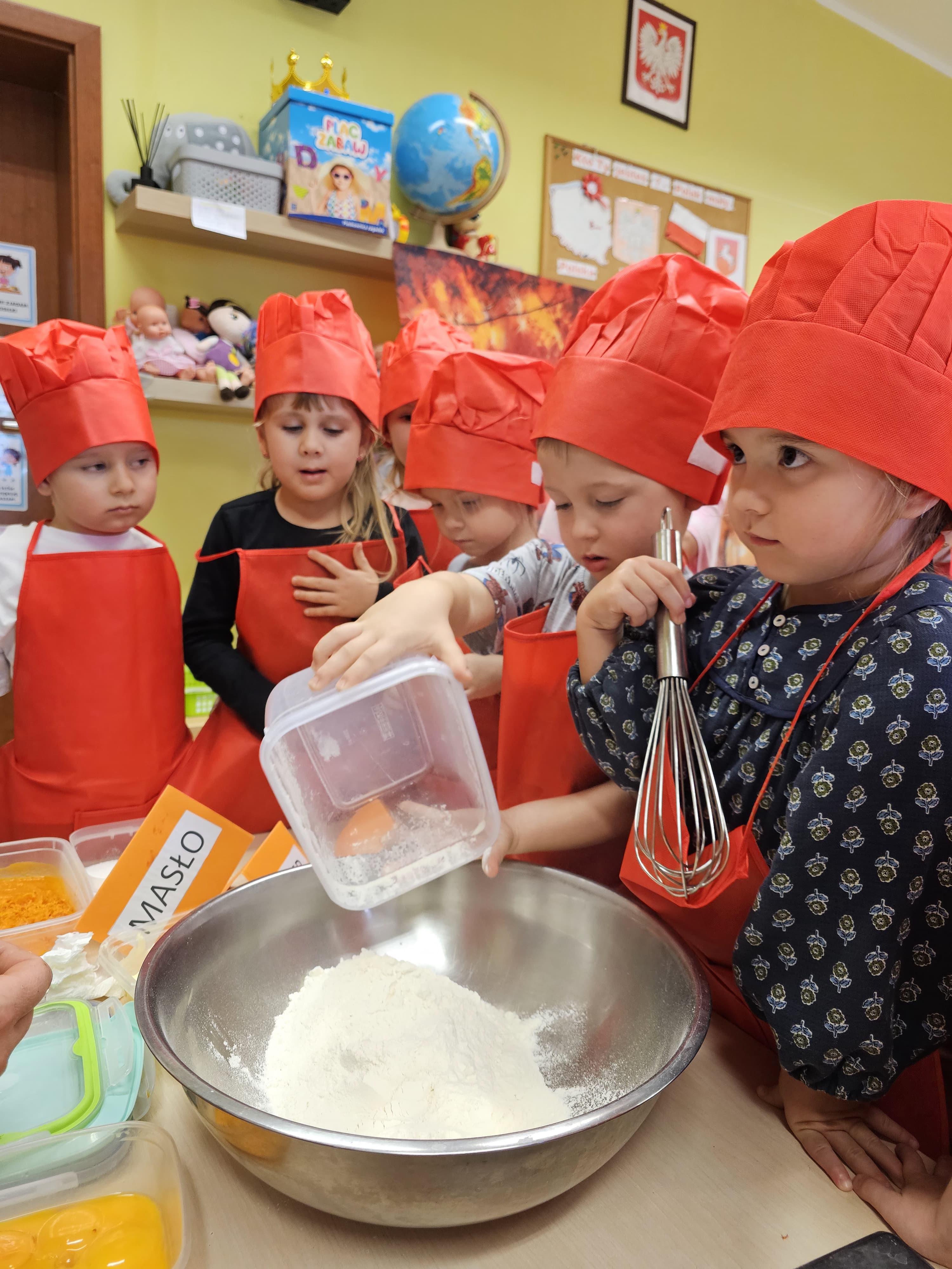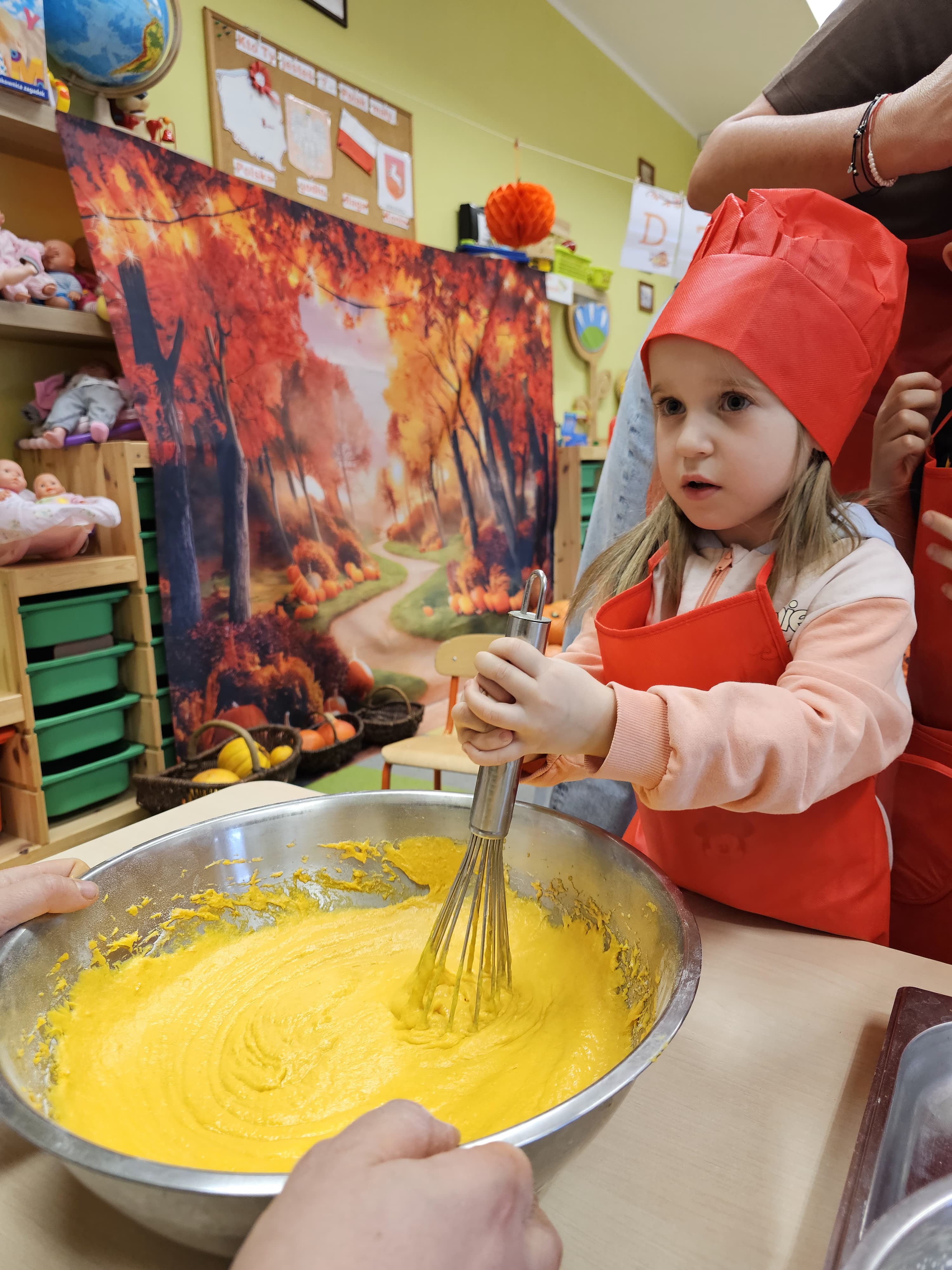 W grupie średniaków odbył się wyjątkowy „Dzień Dyni”. Sala tego dnia wypełniła się pomarańczowymi barwami, dyniowymi dekoracjami i radosnym śmiechem naszych małych przedszkolaków. Podczas zajęć dzieci miały okazję poznać różne odmiany dyni, obejrzeć ją z bliska, dotknąć, powąchać i zajrzeć do jej wnętrza. Wspólnie zastanawiały się, do czego można wykorzystać to niezwykłe warzywo i dlaczego warto je jeść. Gościem specjalnym  był kucharz przedszkolny P. Przemek, który opowiedział dzieciom o wartościach odżywczych dyni – o tym, że zawiera dużo witamin, wspiera odporność i jest bardzo zdrowa. Dzieci z dużym zainteresowaniem słuchały i aktywnie uczestniczyły w rozmowie. Następnie przedszkolaki wzięły udział w warsztatach kulinarnych, podczas których wspólnie z kucharzem  przygotowały muffinki dyniowe. Każde dziecko mogło dodać składniki, wymieszać ciasto i nałożyć je do foremek. W całym przedszkolu unosił się zapach jesiennych wypieków! Oprócz zajęć kulinarnych dzieci uczestniczyły także w różnorodnych działaniach tematycznych – brały udział w konkursach, pracach plastycznych oraz wspólnym śpiewaniu jesiennych piosenek. W trosce o zdrowie, bardzo cenne o tej porze roku, nie zabrakło również jesienno - dyniowej ścieżki ruchowej oraz gimnastyki z dynią. Na zakończenie dnia odbyła się degustacja muffinek, które wszystkim bardzo smakowały. Każdy mały kucharz otrzymał pamiątkową dynię, a w sali długo jeszcze unosił się zapach jesieni i radości ze wspólnego świętowania Dnia Dyni. To było naprawdę udane, kreatywne,pełne kolorów i smaków Święto Dyni !