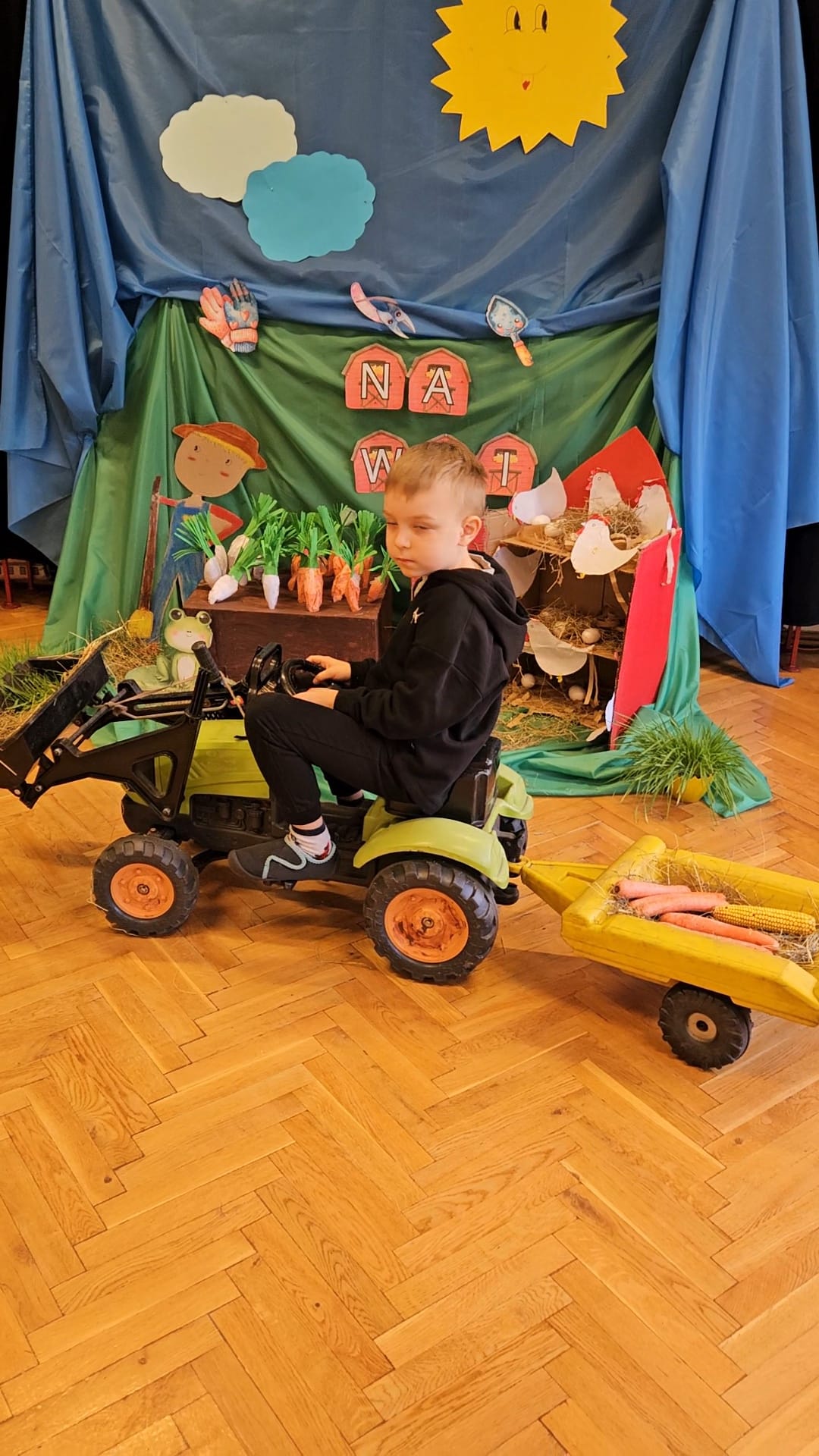W grupie VII realizowany był projekt edukacyjny pt. „Co słychać na wsi?”. Przedszkolaki z wielkim zaciekawieniem poznawały życie na wsi – dowiedziały się, jak wygląda praca rolnika oraz jakie zwierzęta można spotkać w gospodarstwie. Dzieci z radością słuchały opowieści, oglądały ilustracje, uczestniczyły w zabawach tematycznych. Dzięki wspólnym rozmowom, zabawom i aktywnościom plastycznym dowiedziały się m.in., skąd bierze się mleko, jak rosną warzywa i jak ważna jest praca rolnika. To były dni pełne wrażeń i wiejskich ciekawostek!