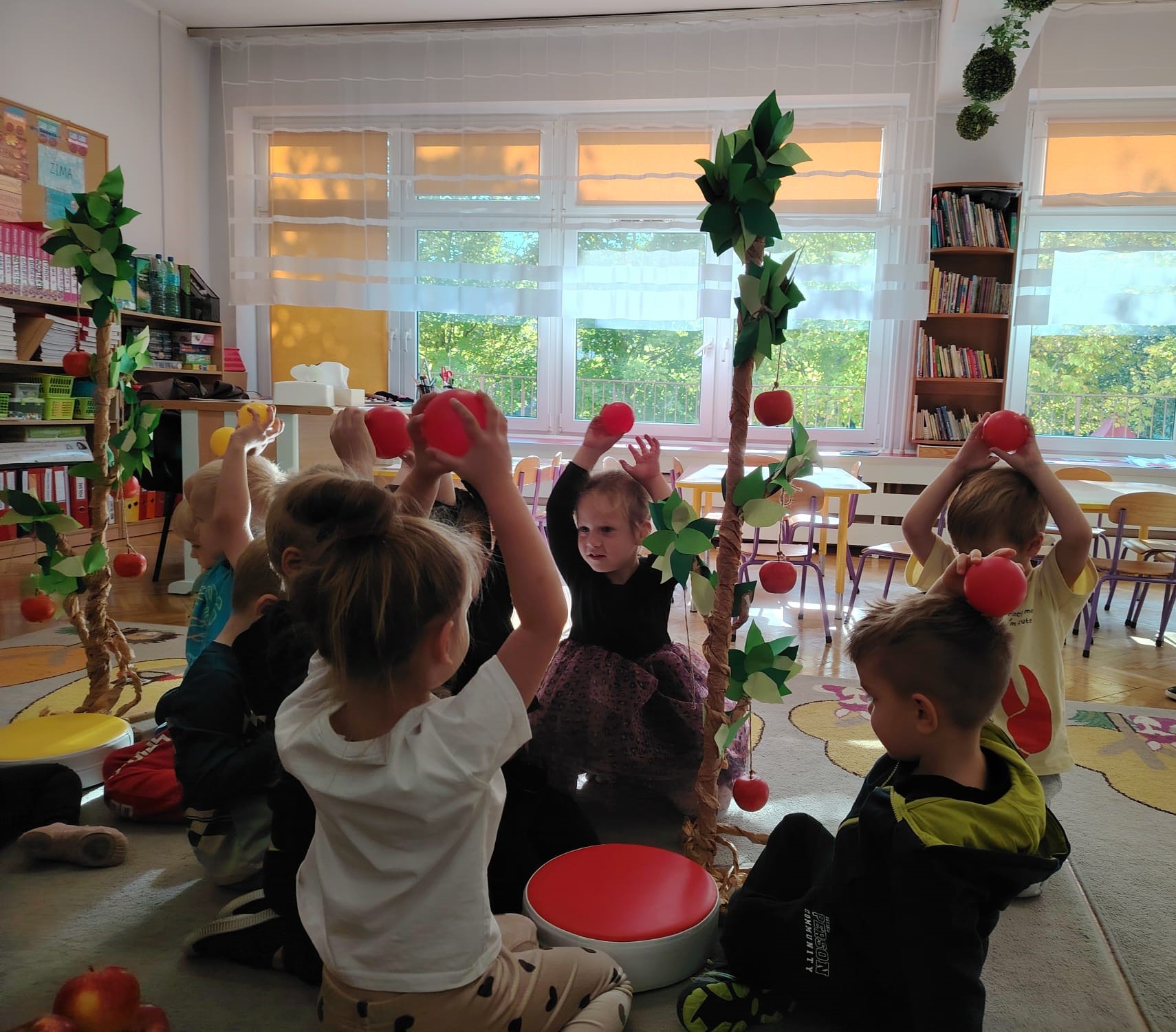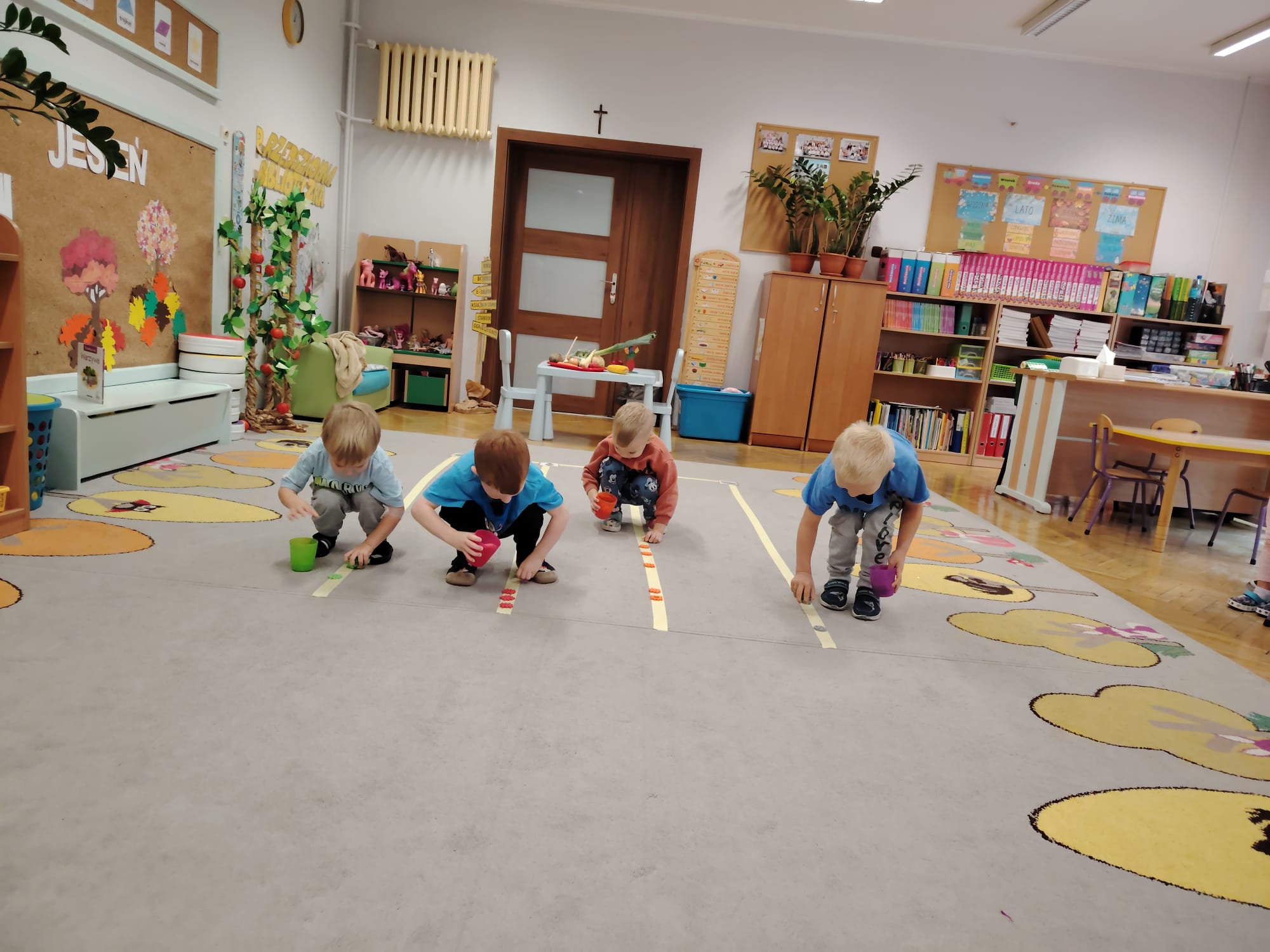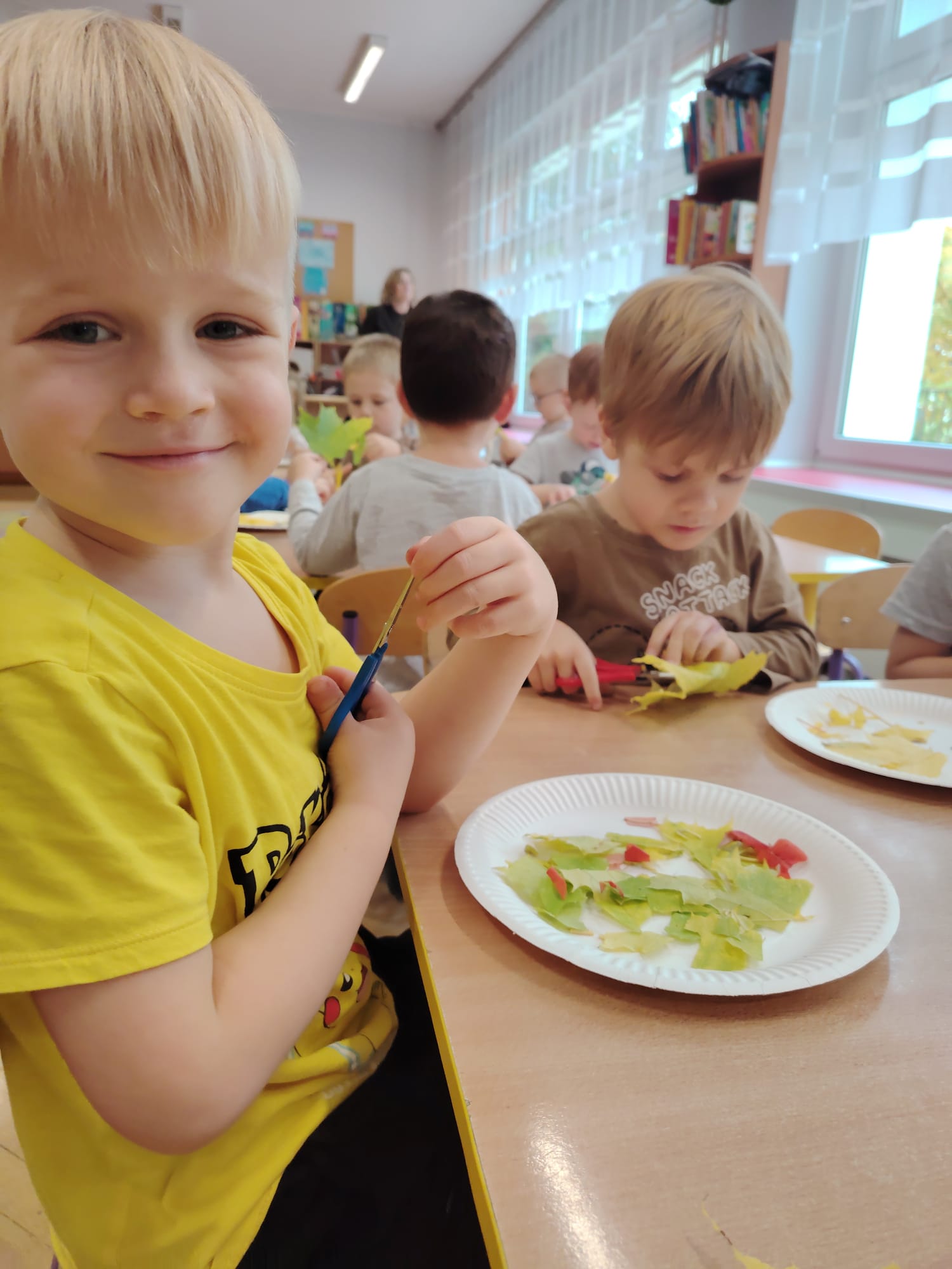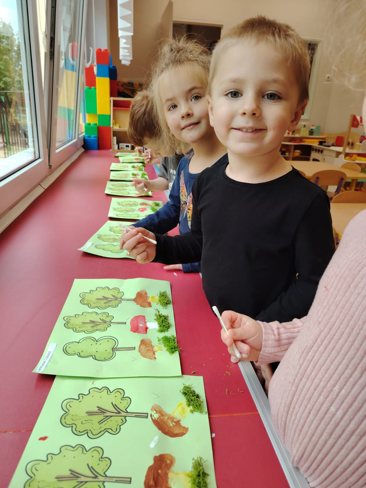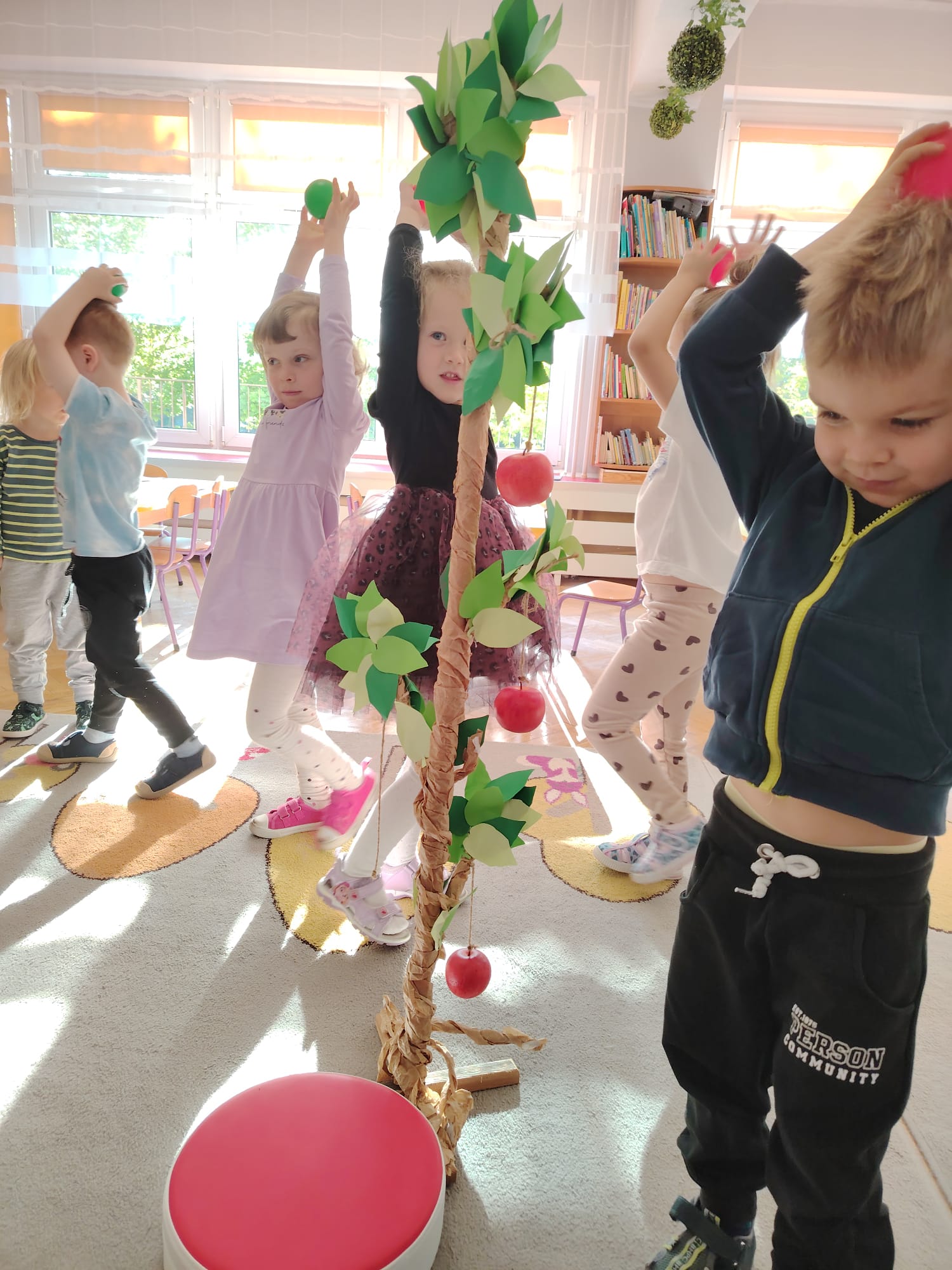 Jesień jest często niedocenianą porą roku, uważa się ją za ponurą i kapryśną... Jednak jest to pora przez nas uwielbiana! Dlaczego? Gdyż niesie ze sobą piękne dary, które służą nam do nauki przez doskonałą zabawę każdego dnia. Wystarczy wyjść na spacer, rozejrzeć się, przykucnąć w trawie, pod drzewami w parku... Znajdujemy wtedy żołędzie, kasztany, szyszki, kolorowe liście, jarzębinę... Czas niepogody to również świetna okazja do przeprowadzania wielozmysłowych zabaw. Grupa II przez ostatnie trzy tygodnie realizowała jesienny projekt edukacyjny, którego głównym celem było kształtowanie postaw poznawczych i proekologicznych poprzez wielozmysłowe doświadczanie otaczającej przyrody. W trakcie działań projektowych dzieci: podczas zabaw sensorycznych nazywały, rozróżniały i klasyfikowały naturalne produkty, rozwijały umiejętność planowania budując przestrzenny ogród z klocków, ćwiczyły analizę i syntezę wzrokową oraz logiczne myślenie, dopasowując warzywa do ich nazw i kształtów, uczestniczyły w zabawach ruchowych z elementami metody aktywnego słuchania w grze „Dopasuj owoc do drzewa”. Podczas jesiennego spaceru edukacyjnego przedszkolaki realizowały zadania z listy obserwacyjnej, rozwijając spostrzegawczość i świadomość zmian zachodzących w przyrodzie. W ramach podsumowania powstała galeria prac dzieci- „Kolorowa jesień oczami dziecka” stworzona z postaci z liści na patykach. Dzięki różnorodnym formom aktywności nasze przedszkolaki miały okazję uczyć się przez działanie, odkrywanie i współdziałanie w grupie. Był to naprawdę radosny i edukacyjnie drogocenny czas. Zapraszamy do galerii.