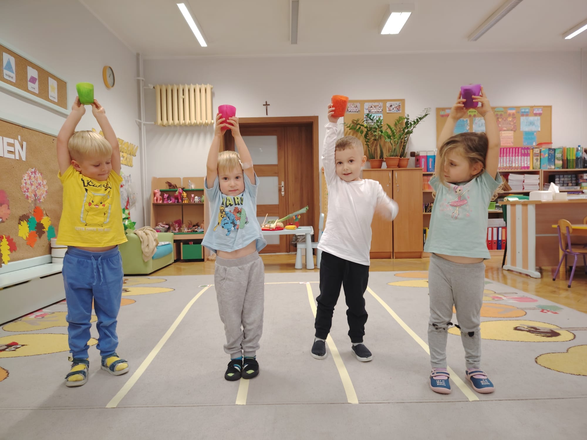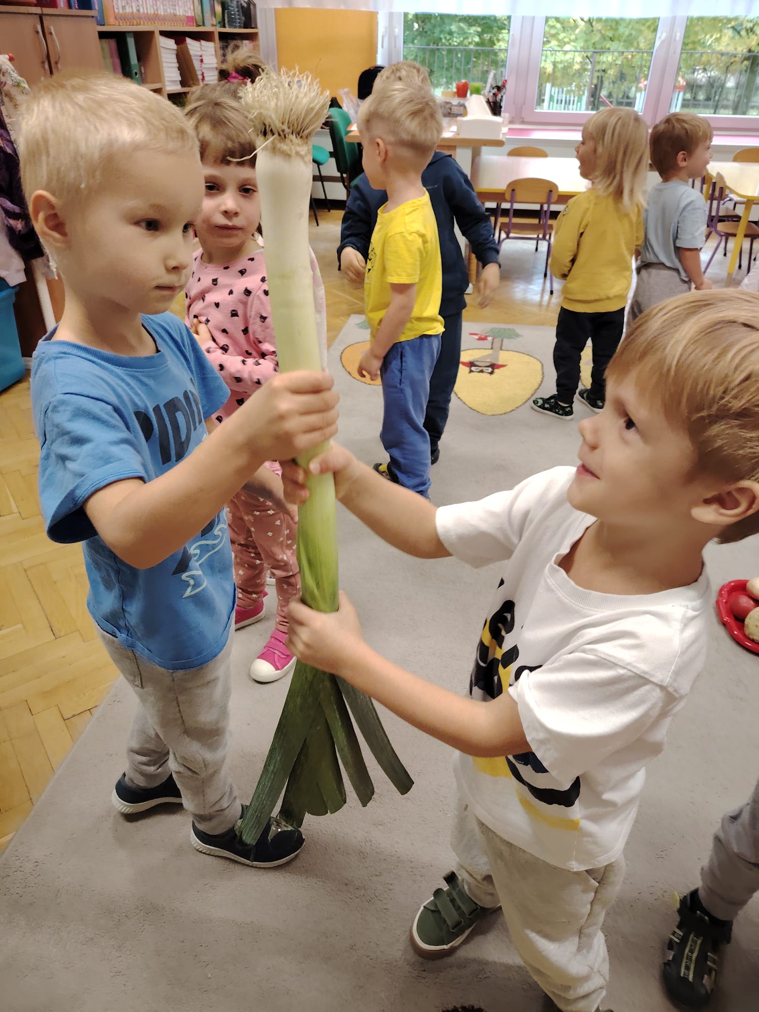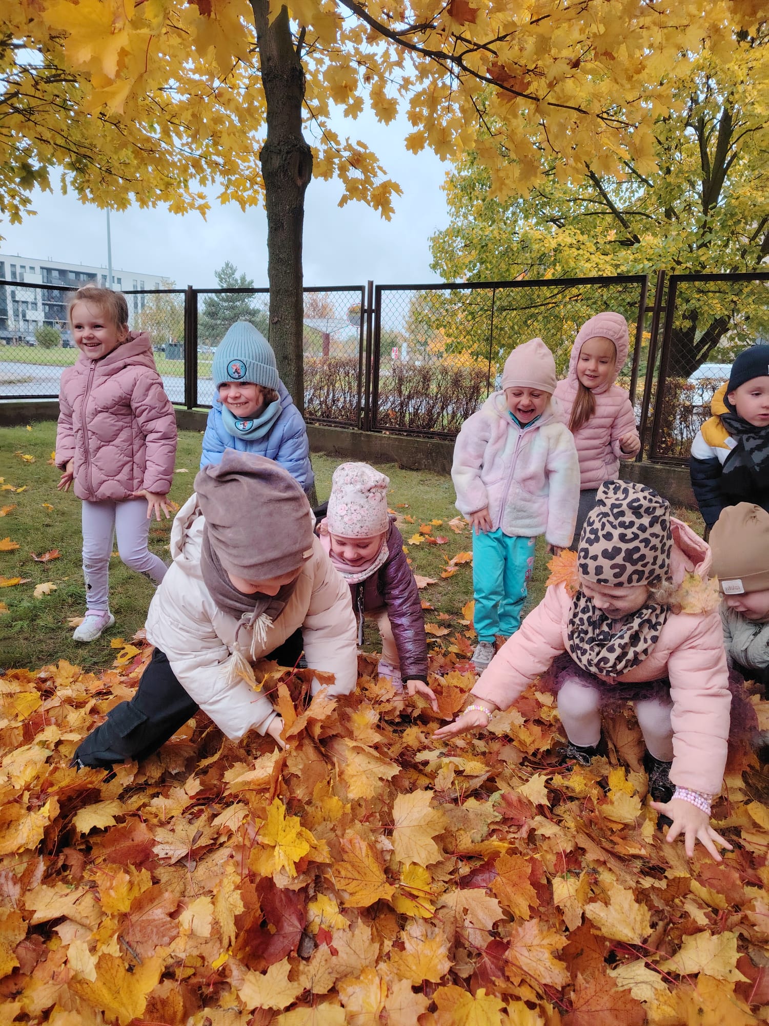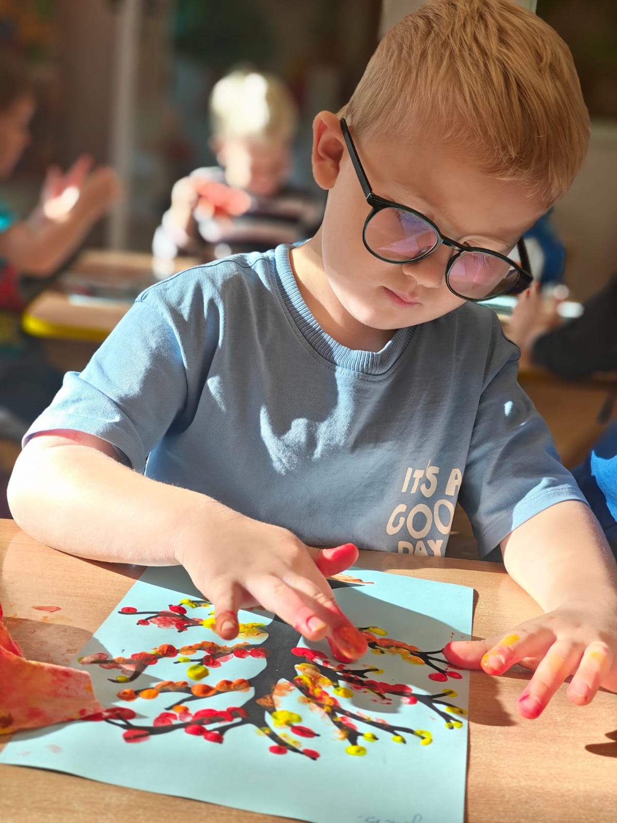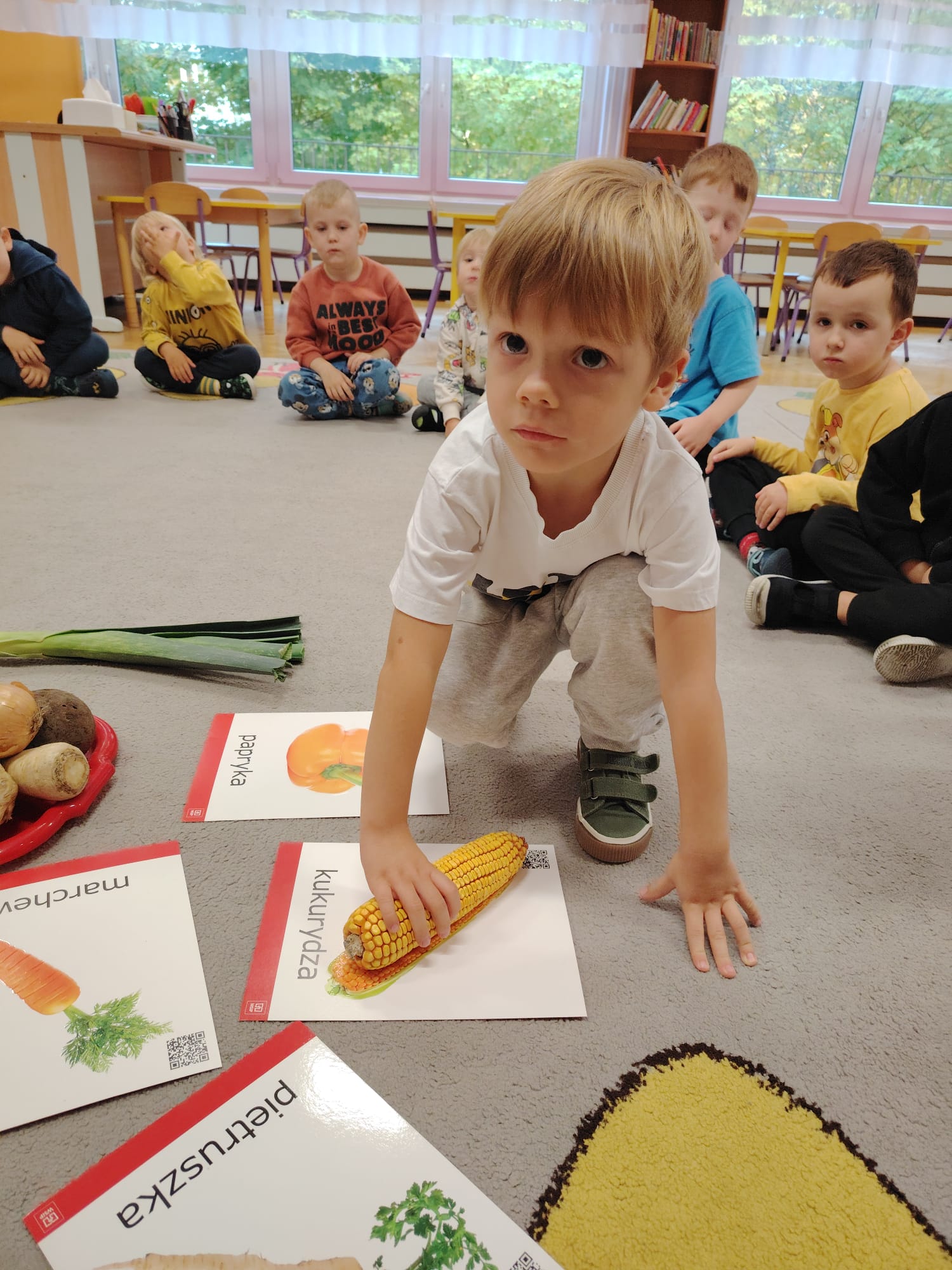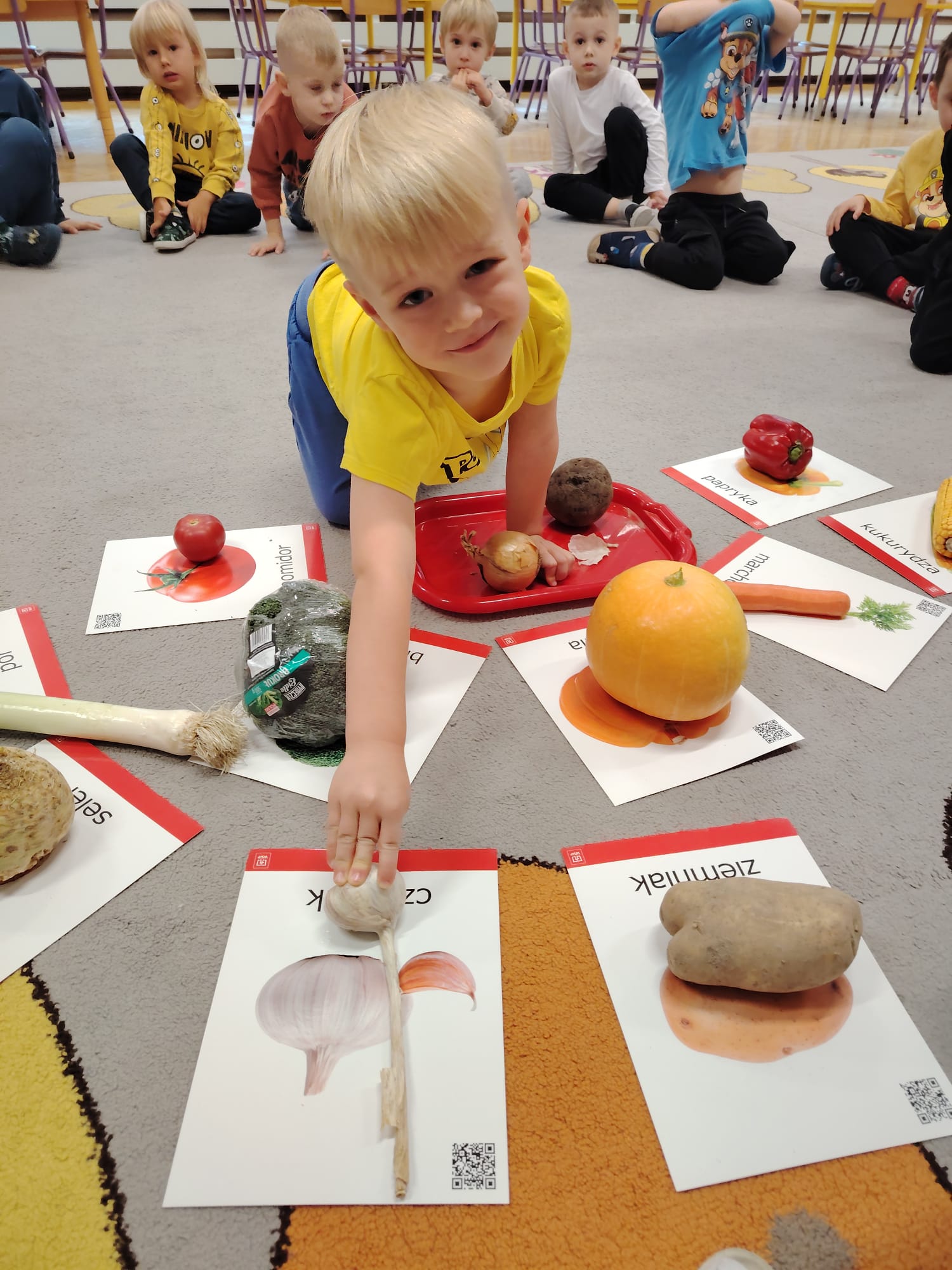 Jesień jest często niedocenianą porą roku, uważa się ją za ponurą i kapryśną... Jednak jest to pora przez nas uwielbiana! Dlaczego? Gdyż niesie ze sobą piękne dary, które służą nam do nauki przez doskonałą zabawę każdego dnia. Wystarczy wyjść na spacer, rozejrzeć się, przykucnąć w trawie, pod drzewami w parku... Znajdujemy wtedy żołędzie, kasztany, szyszki, kolorowe liście, jarzębinę... Czas niepogody to również świetna okazja do przeprowadzania wielozmysłowych zabaw. Grupa II przez ostatnie trzy tygodnie realizowała jesienny projekt edukacyjny, którego głównym celem było kształtowanie postaw poznawczych i proekologicznych poprzez wielozmysłowe doświadczanie otaczającej przyrody. W trakcie działań projektowych dzieci: podczas zabaw sensorycznych nazywały, rozróżniały i klasyfikowały naturalne produkty, rozwijały umiejętność planowania budując przestrzenny ogród z klocków, ćwiczyły analizę i syntezę wzrokową oraz logiczne myślenie, dopasowując warzywa do ich nazw i kształtów, uczestniczyły w zabawach ruchowych z elementami metody aktywnego słuchania w grze „Dopasuj owoc do drzewa”. Podczas jesiennego spaceru edukacyjnego przedszkolaki realizowały zadania z listy obserwacyjnej, rozwijając spostrzegawczość i świadomość zmian zachodzących w przyrodzie. W ramach podsumowania powstała galeria prac dzieci- „Kolorowa jesień oczami dziecka” stworzona z postaci z liści na patykach. Dzięki różnorodnym formom aktywności nasze przedszkolaki miały okazję uczyć się przez działanie, odkrywanie i współdziałanie w grupie. Był to naprawdę radosny i edukacyjnie drogocenny czas. Zapraszamy do galerii.
