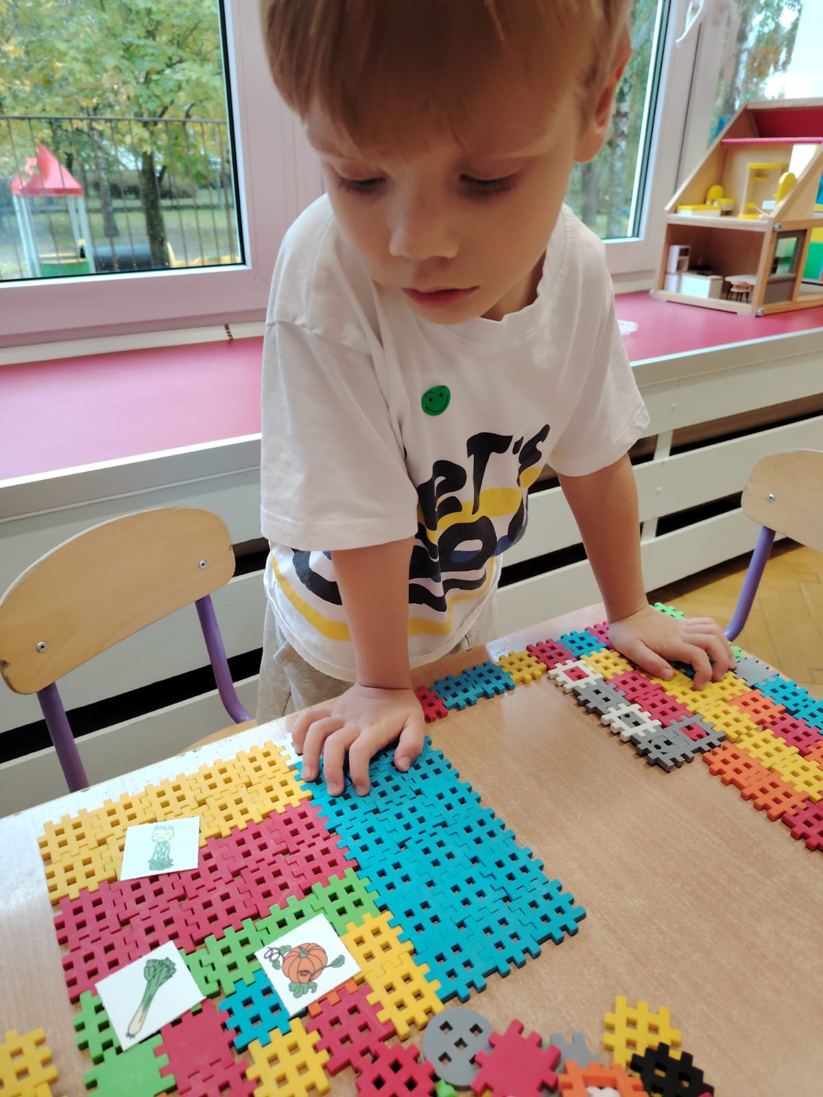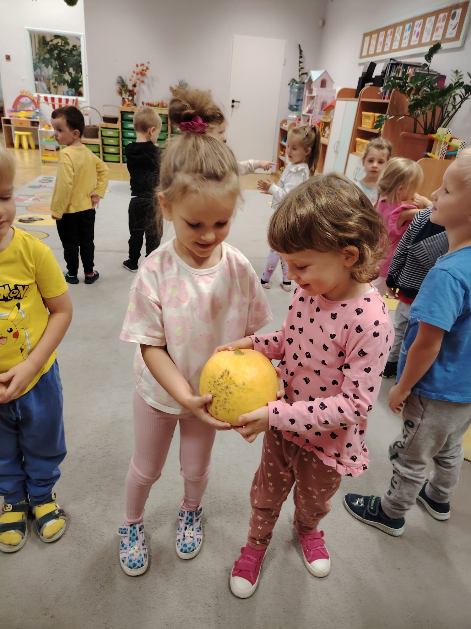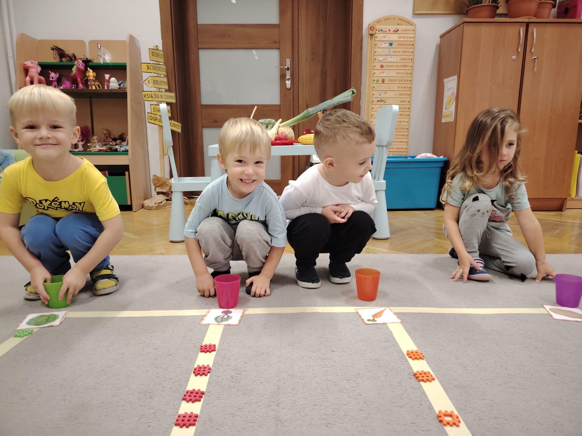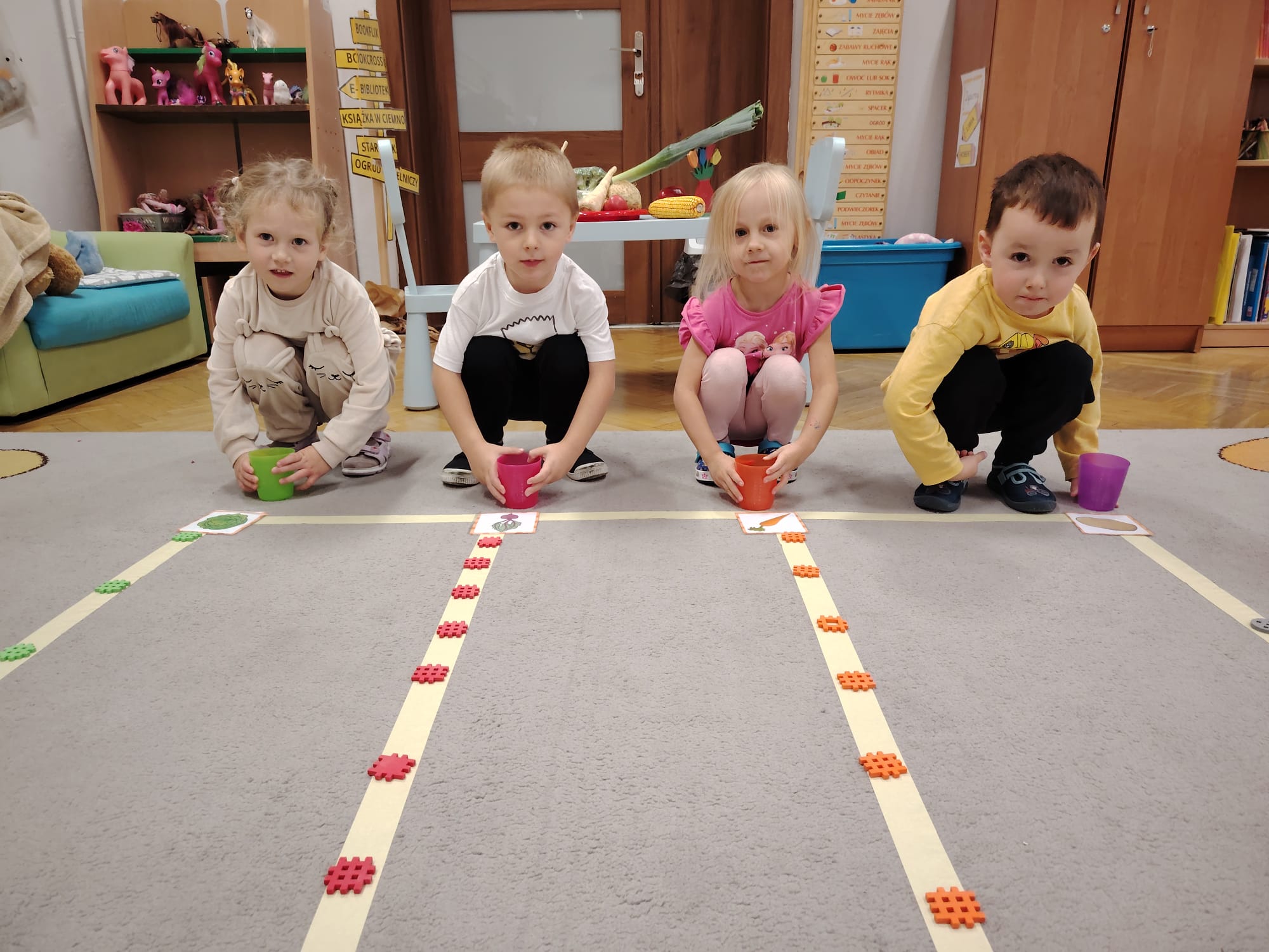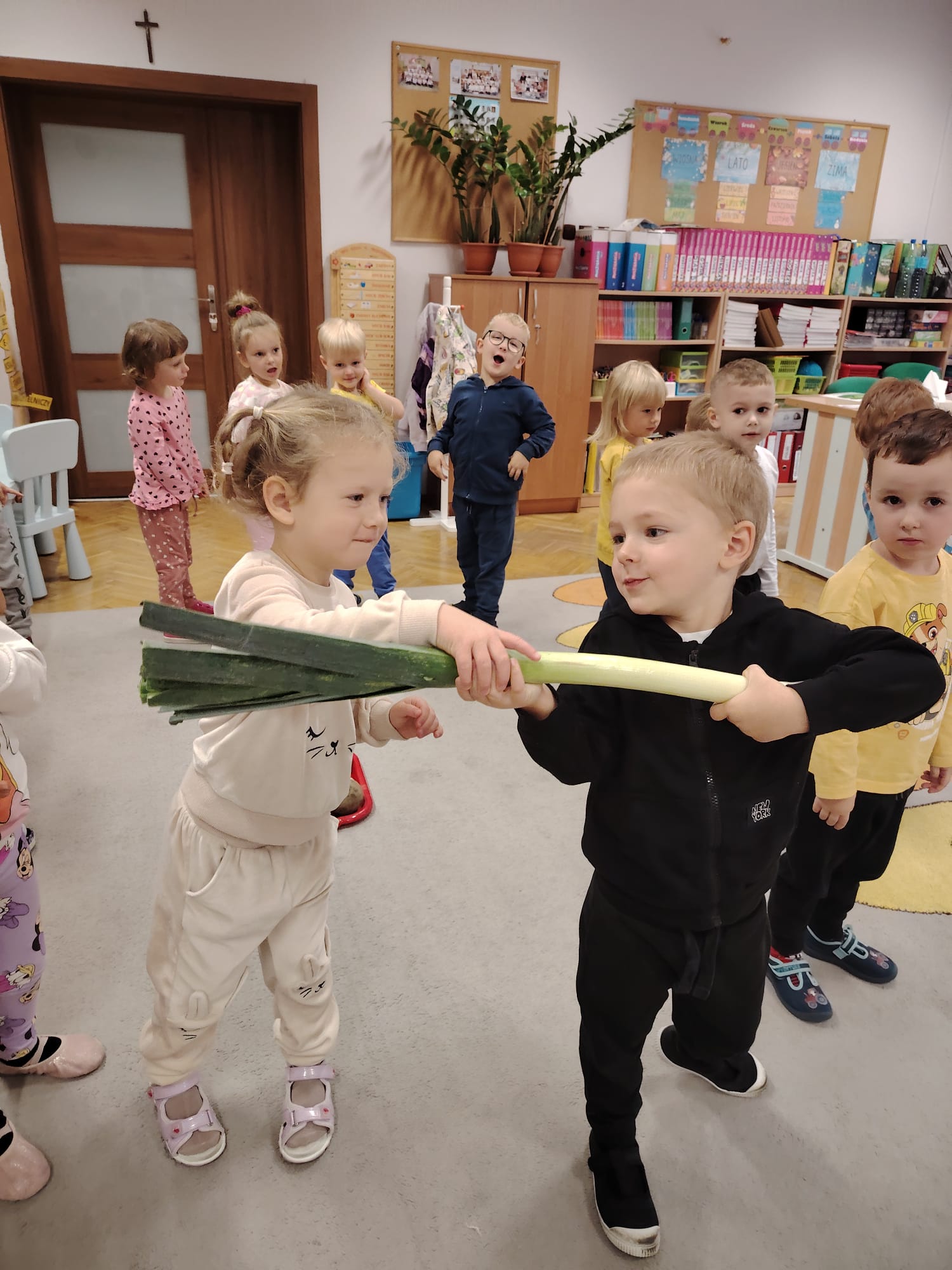 Jesień jest często niedocenianą porą roku, uważa się ją za ponurą i kapryśną... Jednak jest to pora przez nas uwielbiana! Dlaczego? Gdyż niesie ze sobą piękne dary, które służą nam do nauki przez doskonałą zabawę każdego dnia. Wystarczy wyjść na spacer, rozejrzeć się, przykucnąć w trawie, pod drzewami w parku... Znajdujemy wtedy żołędzie, kasztany, szyszki, kolorowe liście, jarzębinę... Czas niepogody to również świetna okazja do przeprowadzania wielozmysłowych zabaw. Grupa II przez ostatnie trzy tygodnie realizowała jesienny projekt edukacyjny, którego głównym celem było kształtowanie postaw poznawczych i proekologicznych poprzez wielozmysłowe doświadczanie otaczającej przyrody. W trakcie działań projektowych dzieci: podczas zabaw sensorycznych nazywały, rozróżniały i klasyfikowały naturalne produkty, rozwijały umiejętność planowania budując przestrzenny ogród z klocków, ćwiczyły analizę i syntezę wzrokową oraz logiczne myślenie, dopasowując warzywa do ich nazw i kształtów, uczestniczyły w zabawach ruchowych z elementami metody aktywnego słuchania w grze „Dopasuj owoc do drzewa”. Podczas jesiennego spaceru edukacyjnego przedszkolaki realizowały zadania z listy obserwacyjnej, rozwijając spostrzegawczość i świadomość zmian zachodzących w przyrodzie. W ramach podsumowania powstała galeria prac dzieci- „Kolorowa jesień oczami dziecka” stworzona z postaci z liści na patykach. Dzięki różnorodnym formom aktywności nasze przedszkolaki miały okazję uczyć się przez działanie, odkrywanie i współdziałanie w grupie. Był to naprawdę radosny i edukacyjnie drogocenny czas. Zapraszamy do galerii.