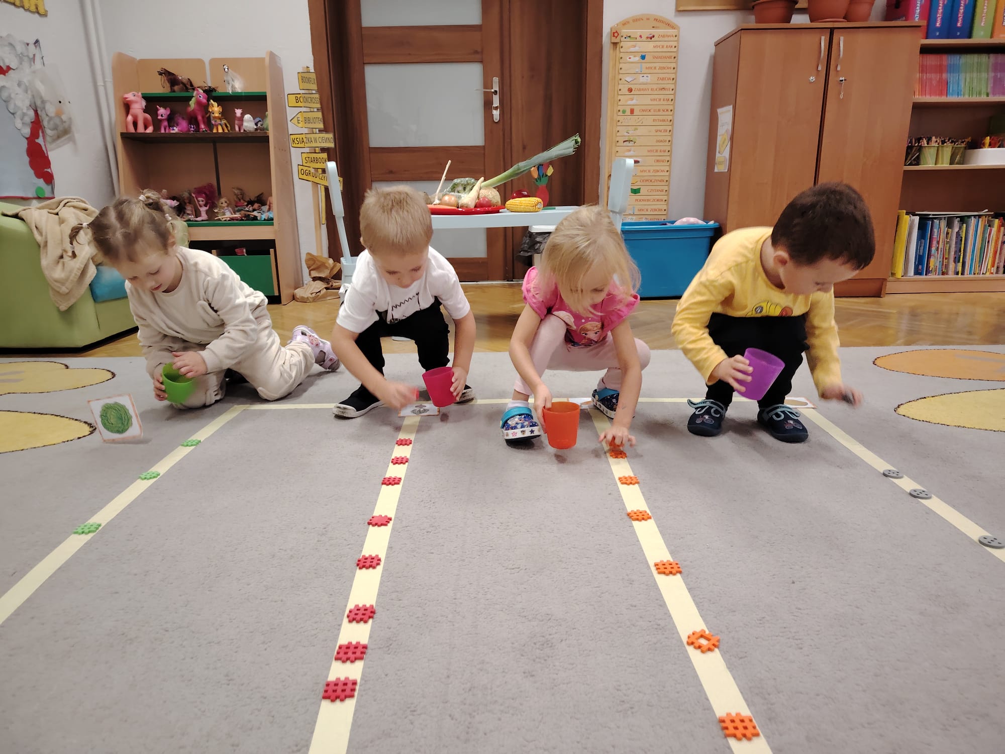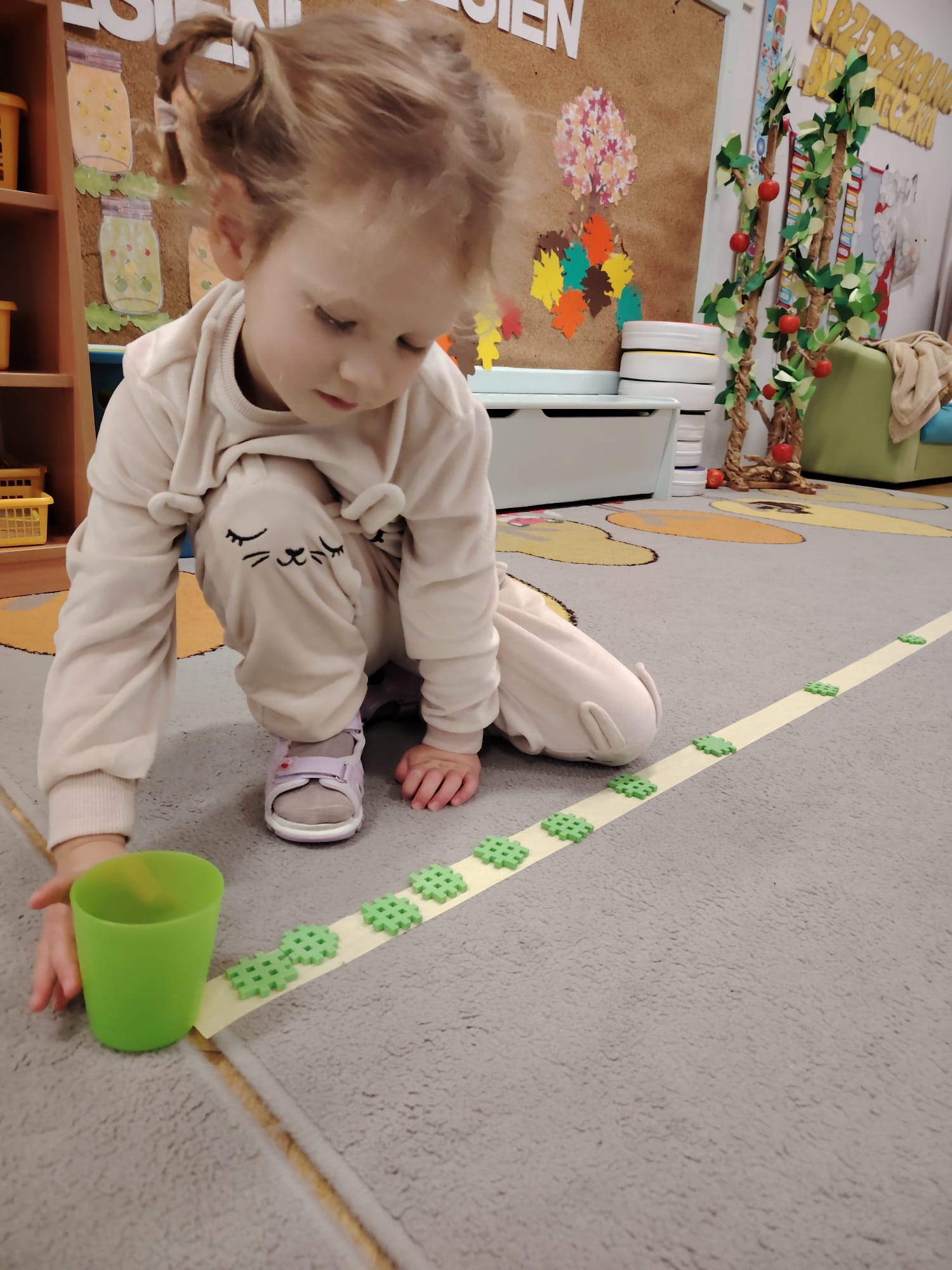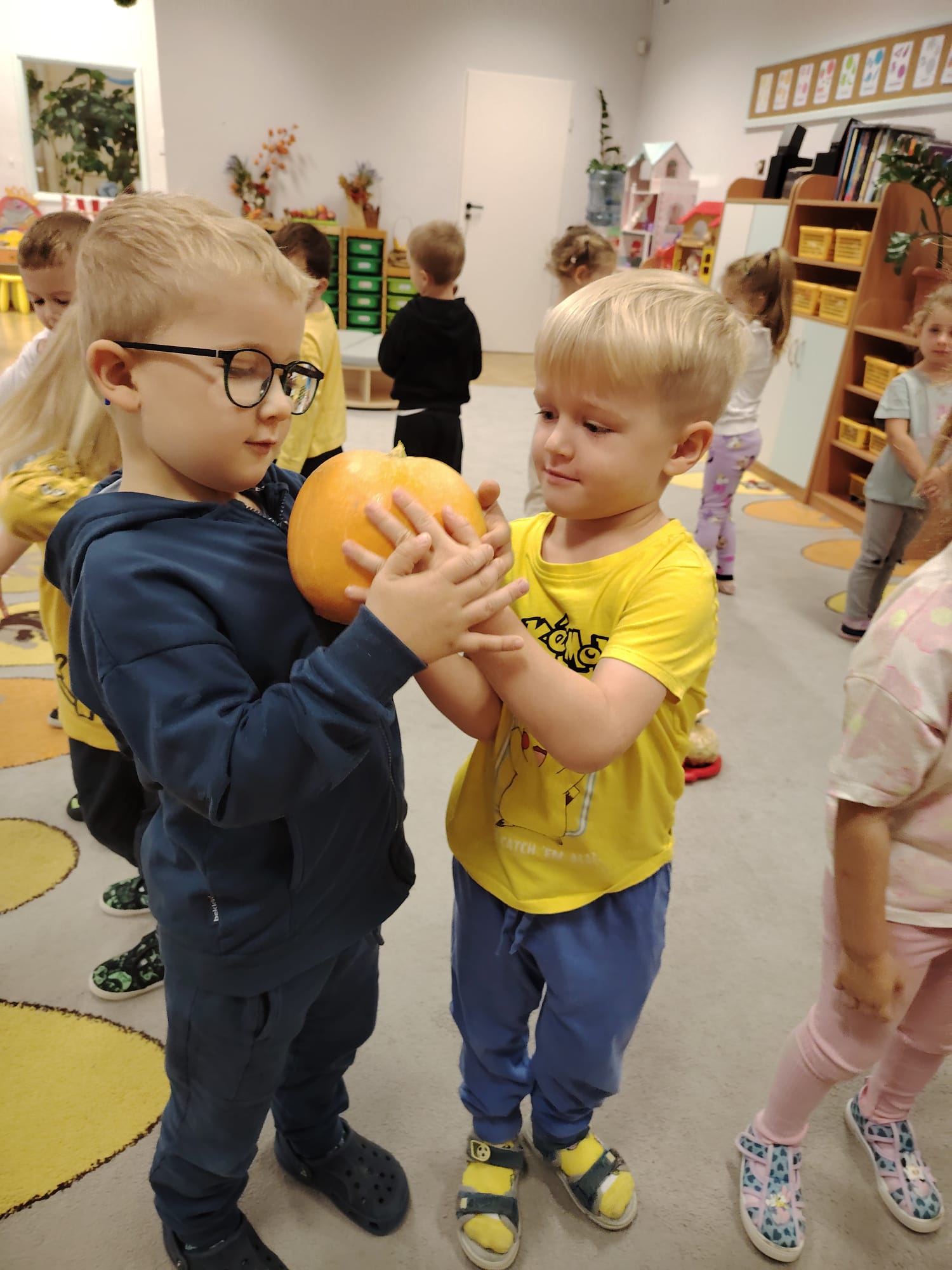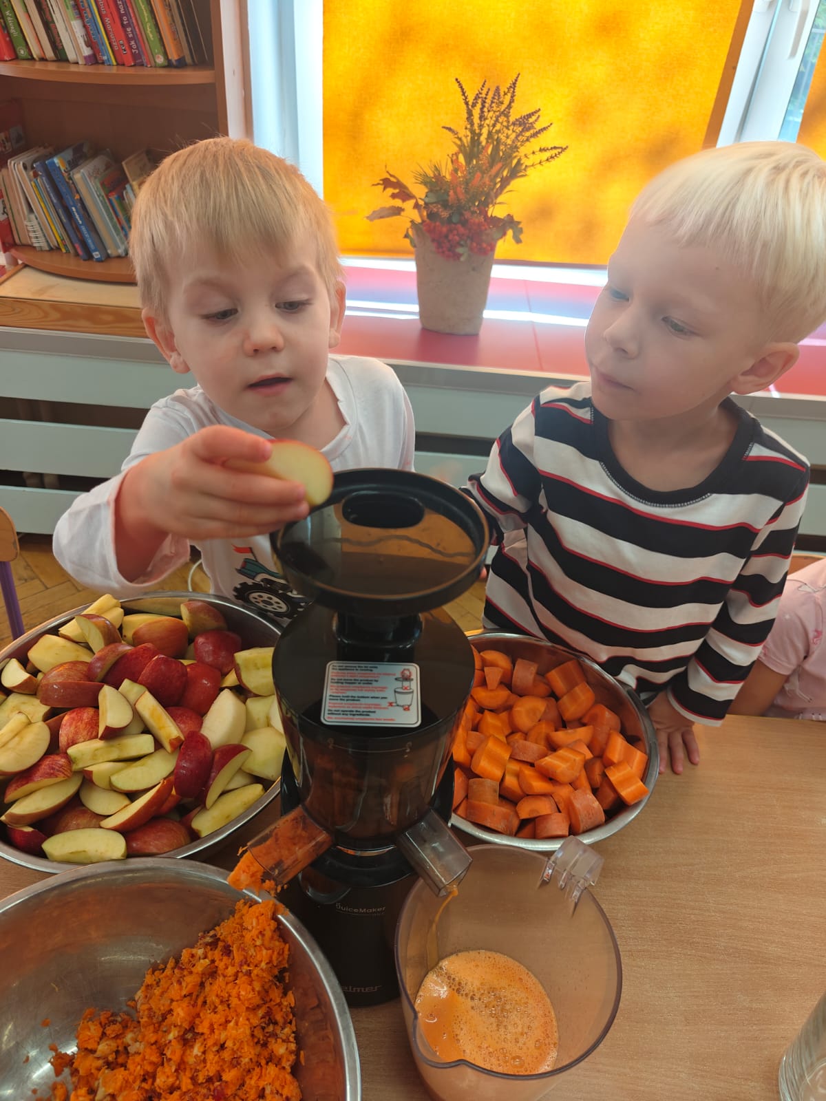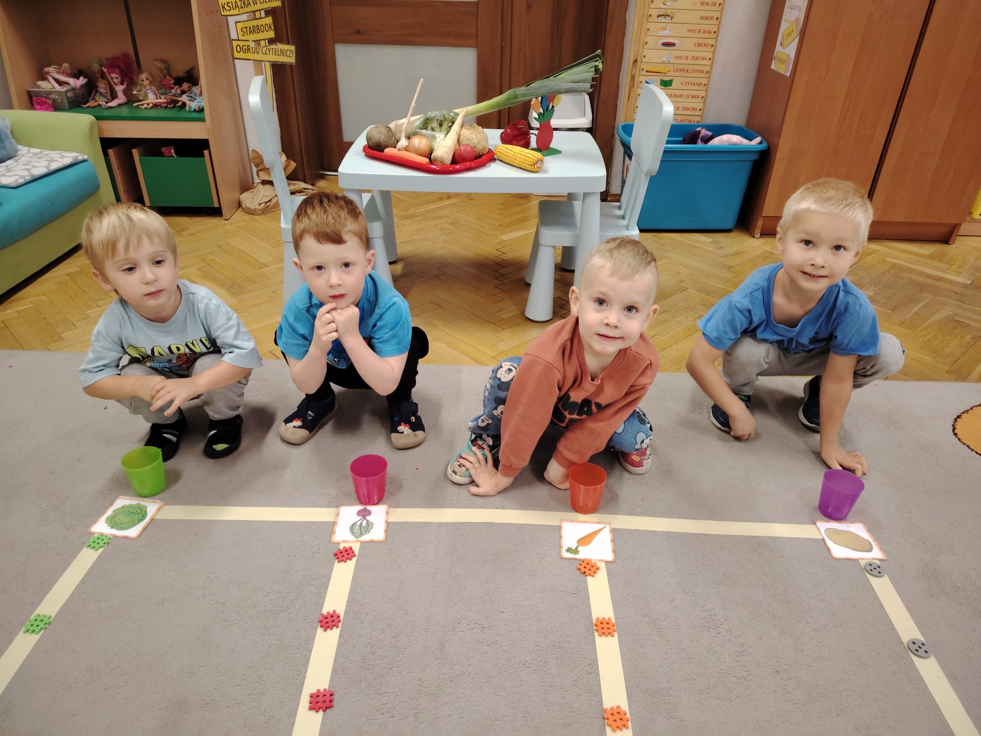 Jesień jest często niedocenianą porą roku, uważa się ją za ponurą i kapryśną... Jednak jest to pora przez nas uwielbiana! Dlaczego? Gdyż niesie ze sobą piękne dary, które służą nam do nauki przez doskonałą zabawę każdego dnia. Wystarczy wyjść na spacer, rozejrzeć się, przykucnąć w trawie, pod drzewami w parku... Znajdujemy wtedy żołędzie, kasztany, szyszki, kolorowe liście, jarzębinę... Czas niepogody to również świetna okazja do przeprowadzania wielozmysłowych zabaw. Grupa II przez ostatnie trzy tygodnie realizowała jesienny projekt edukacyjny, którego głównym celem było kształtowanie postaw poznawczych i proekologicznych poprzez wielozmysłowe doświadczanie otaczającej przyrody. W trakcie działań projektowych dzieci: podczas zabaw sensorycznych nazywały, rozróżniały i klasyfikowały naturalne produkty, rozwijały umiejętność planowania budując przestrzenny ogród z klocków, ćwiczyły analizę i syntezę wzrokową oraz logiczne myślenie, dopasowując warzywa do ich nazw i kształtów, uczestniczyły w zabawach ruchowych z elementami metody aktywnego słuchania w grze „Dopasuj owoc do drzewa”. Podczas jesiennego spaceru edukacyjnego przedszkolaki realizowały zadania z listy obserwacyjnej, rozwijając spostrzegawczość i świadomość zmian zachodzących w przyrodzie. W ramach podsumowania powstała galeria prac dzieci- „Kolorowa jesień oczami dziecka” stworzona z postaci z liści na patykach. Dzięki różnorodnym formom aktywności nasze przedszkolaki miały okazję uczyć się przez działanie, odkrywanie i współdziałanie w grupie. Był to naprawdę radosny i edukacyjnie drogocenny czas. Zapraszamy do galerii.