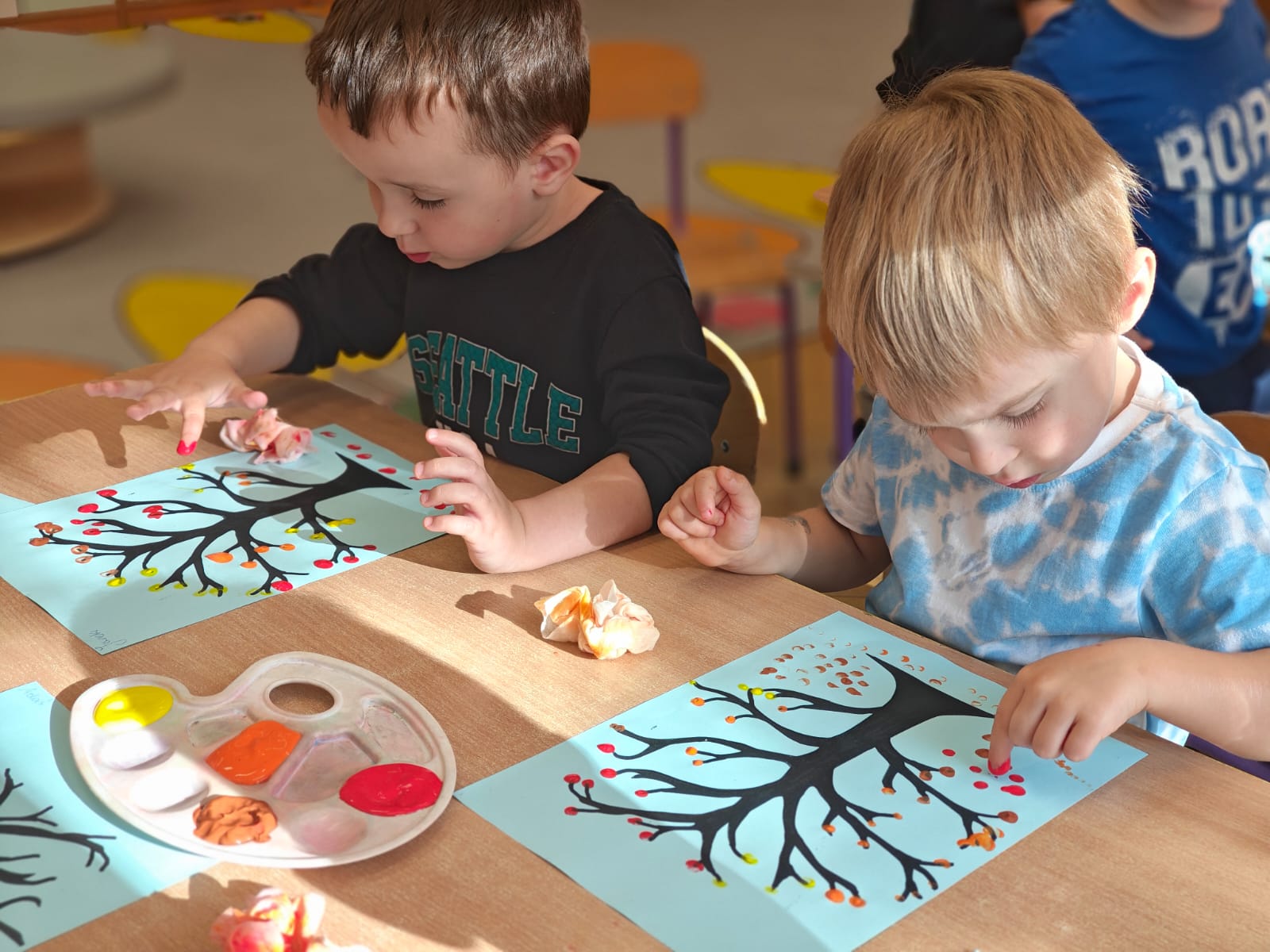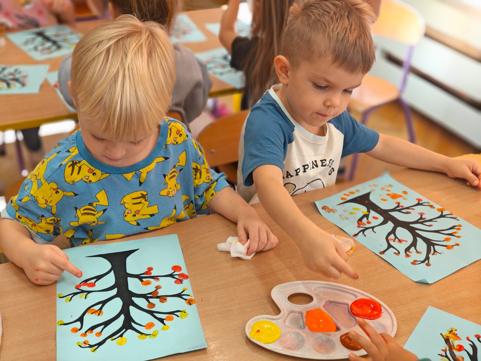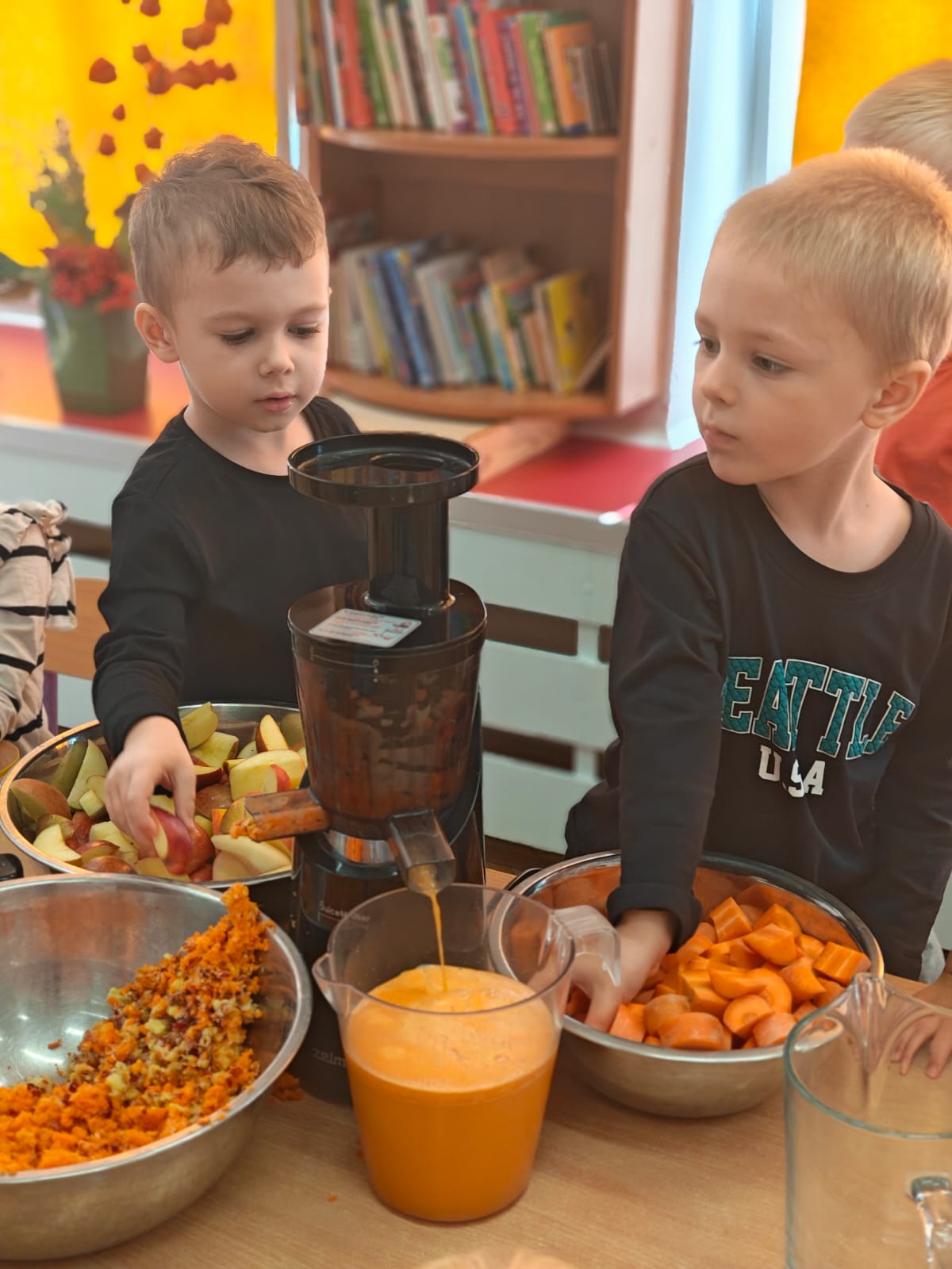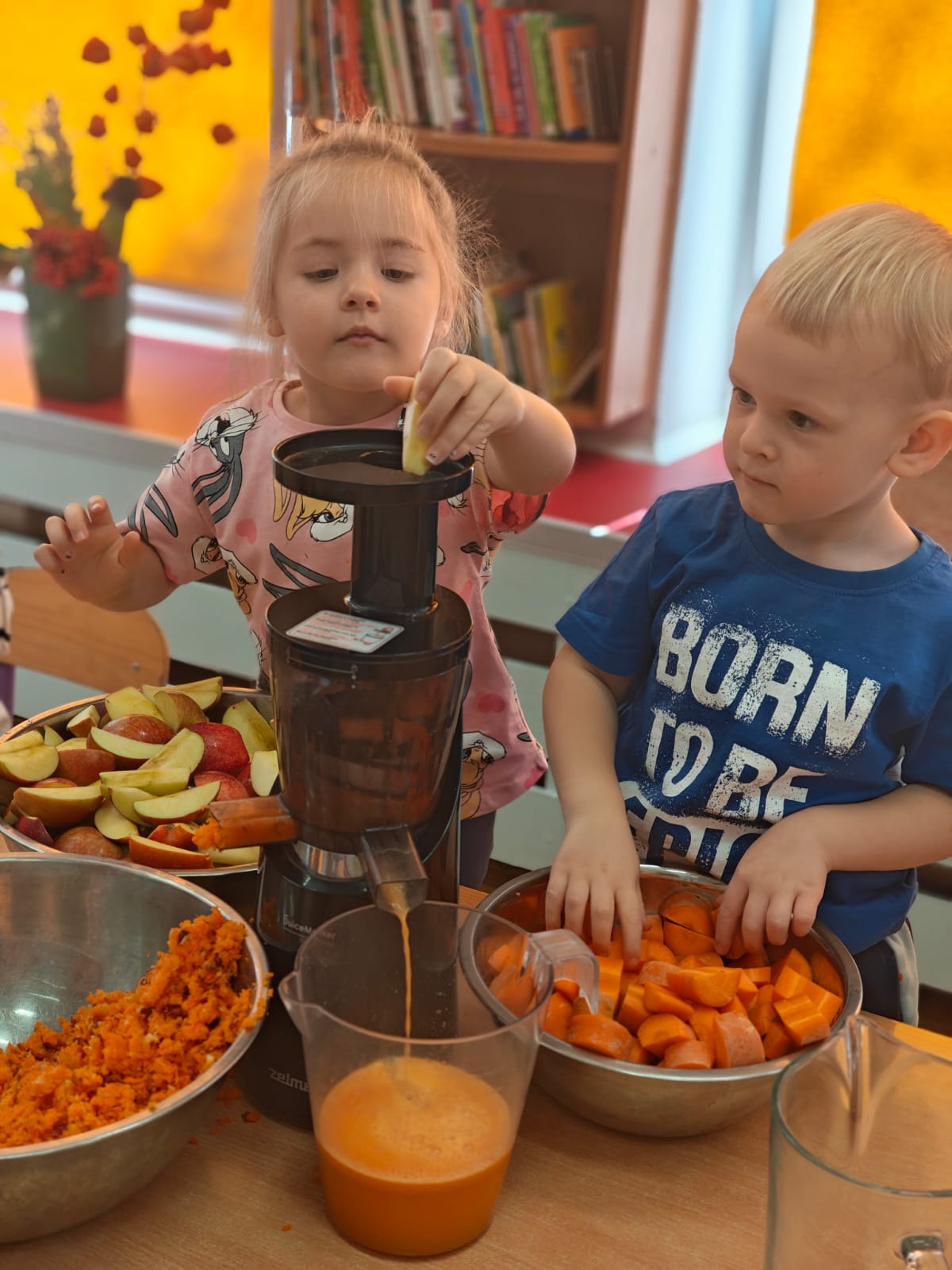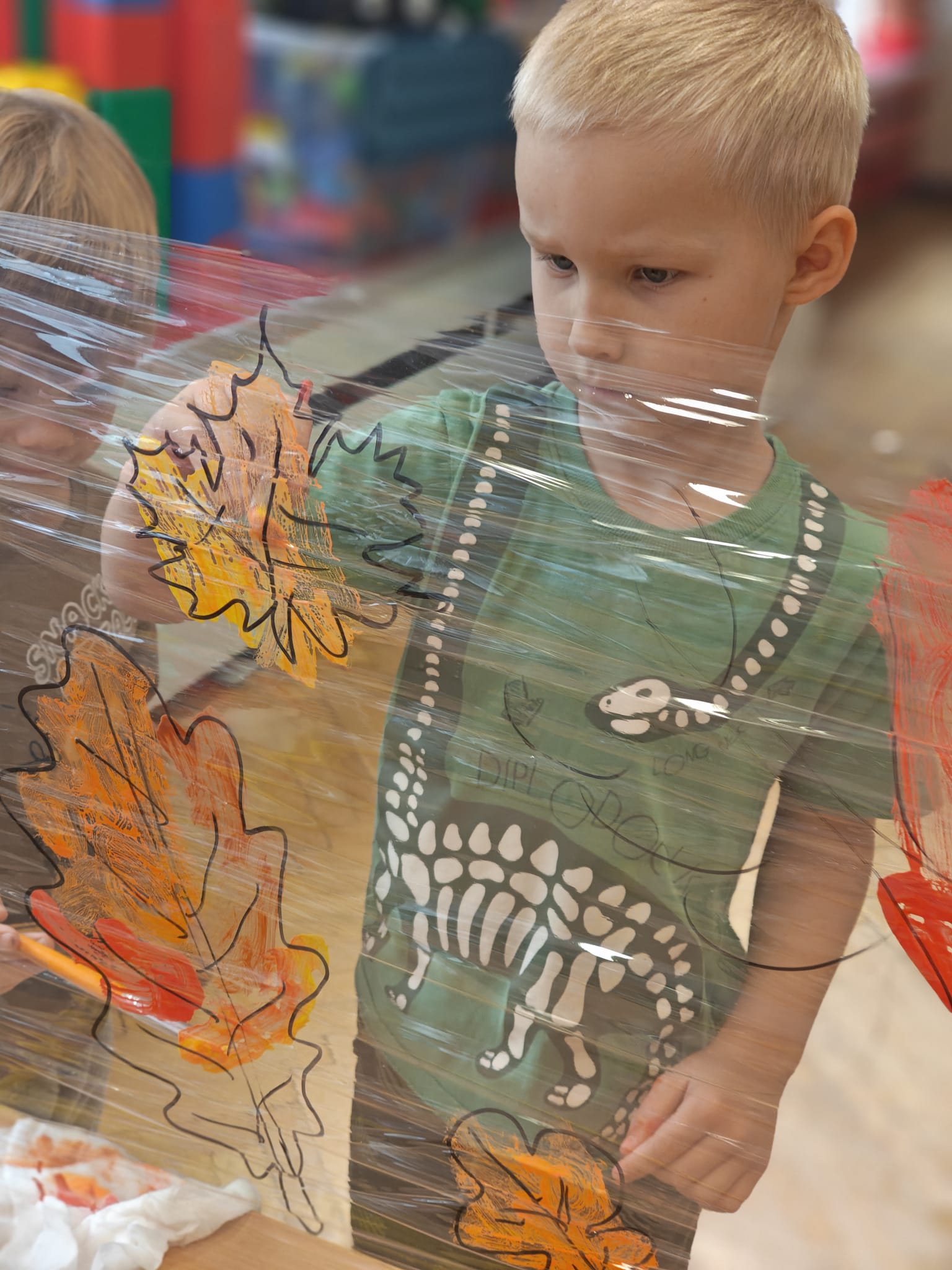 Jesień jest często niedocenianą porą roku, uważa się ją za ponurą i kapryśną... Jednak jest to pora przez nas uwielbiana! Dlaczego? Gdyż niesie ze sobą piękne dary, które służą nam do nauki przez doskonałą zabawę każdego dnia. Wystarczy wyjść na spacer, rozejrzeć się, przykucnąć w trawie, pod drzewami w parku... Znajdujemy wtedy żołędzie, kasztany, szyszki, kolorowe liście, jarzębinę... Czas niepogody to również świetna okazja do przeprowadzania wielozmysłowych zabaw. Grupa II przez ostatnie trzy tygodnie realizowała jesienny projekt edukacyjny, którego głównym celem było kształtowanie postaw poznawczych i proekologicznych poprzez wielozmysłowe doświadczanie otaczającej przyrody. W trakcie działań projektowych dzieci: podczas zabaw sensorycznych nazywały, rozróżniały i klasyfikowały naturalne produkty, rozwijały umiejętność planowania budując przestrzenny ogród z klocków, ćwiczyły analizę i syntezę wzrokową oraz logiczne myślenie, dopasowując warzywa do ich nazw i kształtów, uczestniczyły w zabawach ruchowych z elementami metody aktywnego słuchania w grze „Dopasuj owoc do drzewa”. Podczas jesiennego spaceru edukacyjnego przedszkolaki realizowały zadania z listy obserwacyjnej, rozwijając spostrzegawczość i świadomość zmian zachodzących w przyrodzie. W ramach podsumowania powstała galeria prac dzieci- „Kolorowa jesień oczami dziecka” stworzona z postaci z liści na patykach. Dzięki różnorodnym formom aktywności nasze przedszkolaki miały okazję uczyć się przez działanie, odkrywanie i współdziałanie w grupie. Był to naprawdę radosny i edukacyjnie drogocenny czas. Zapraszamy do galerii.