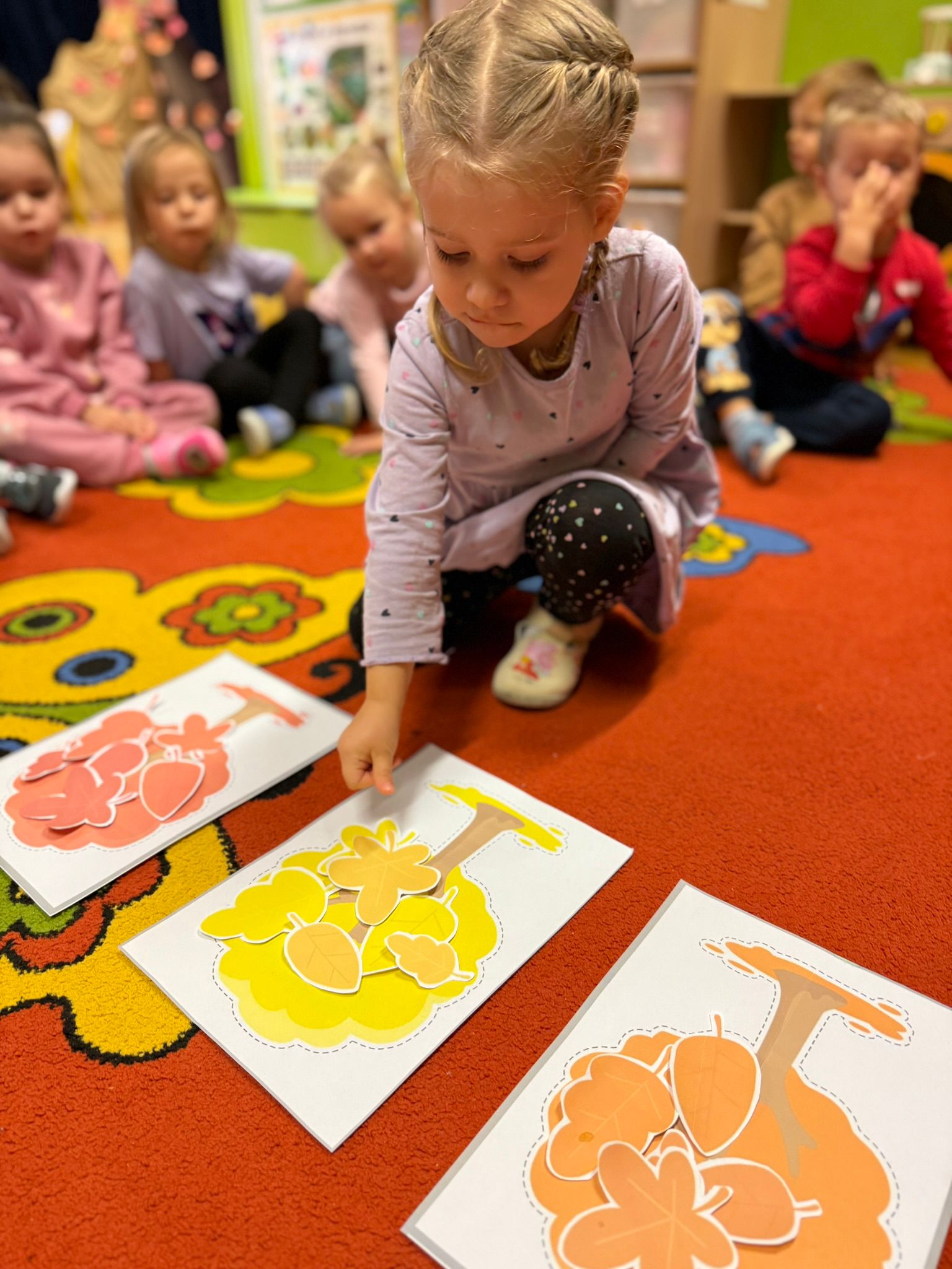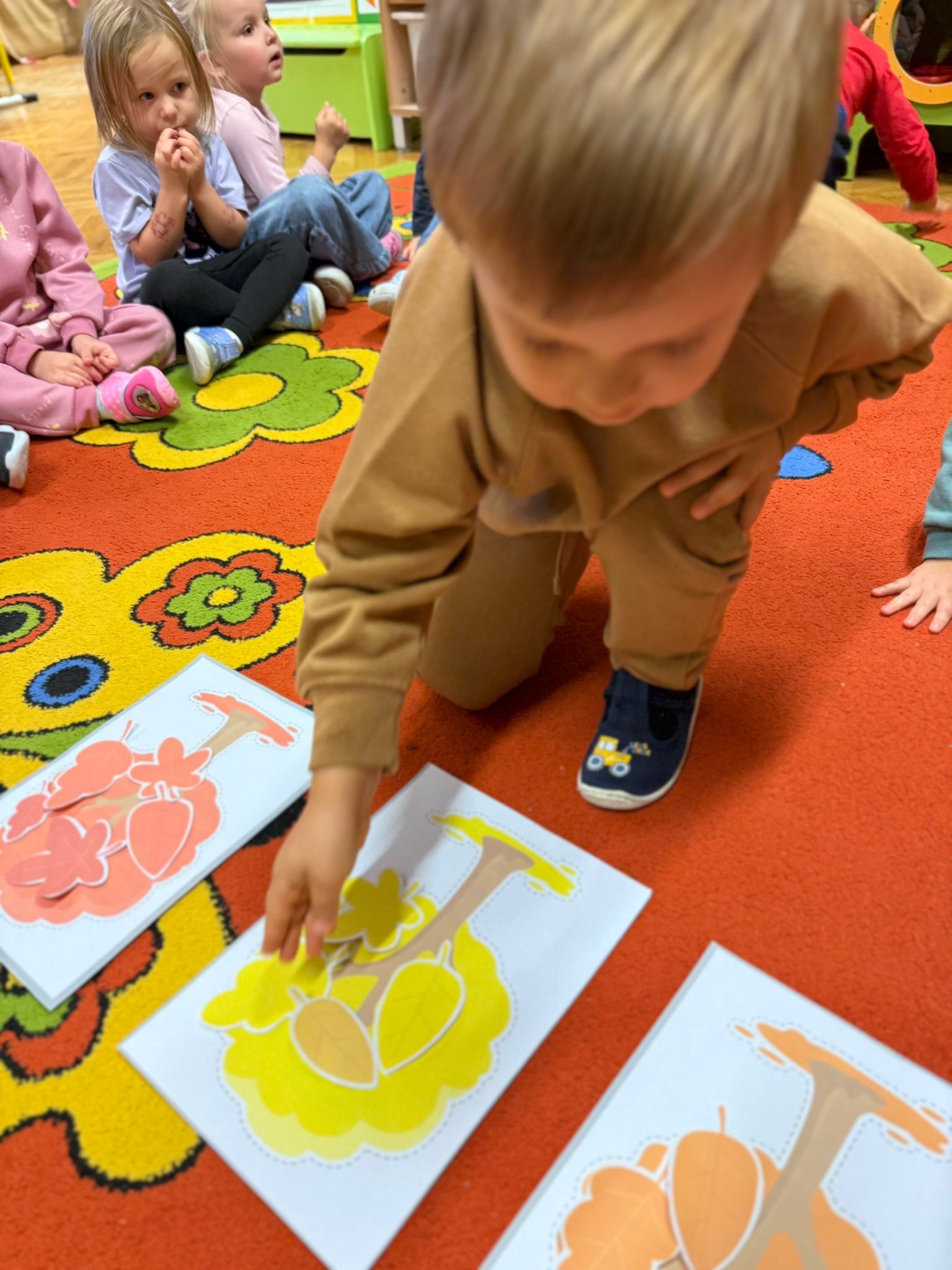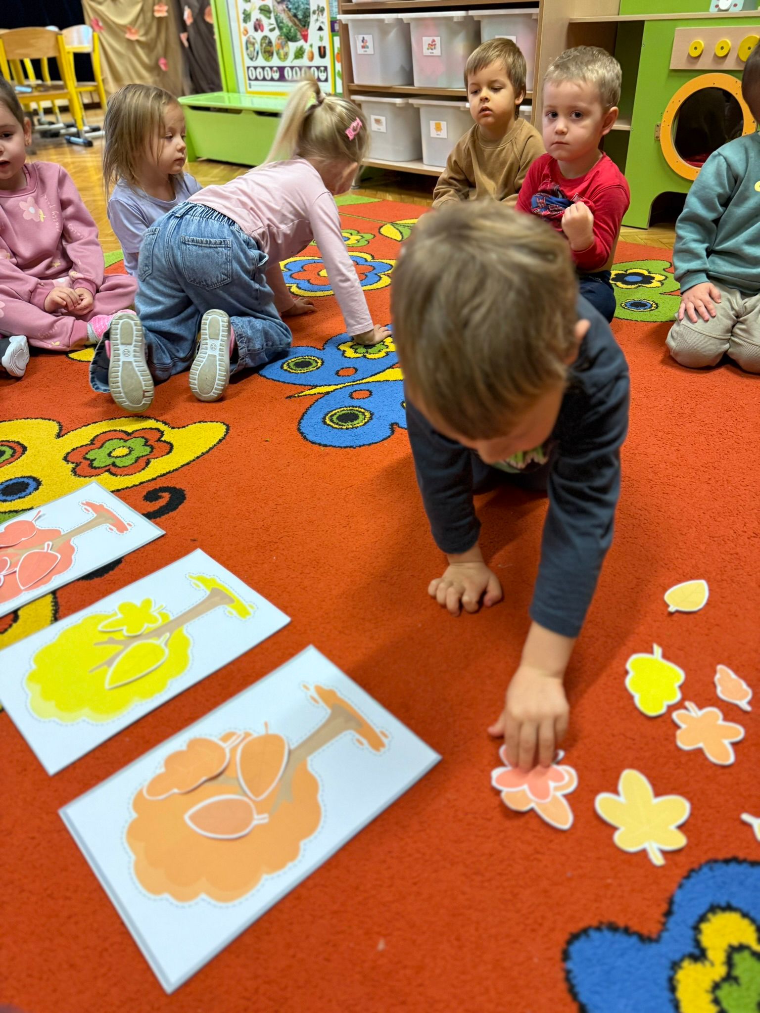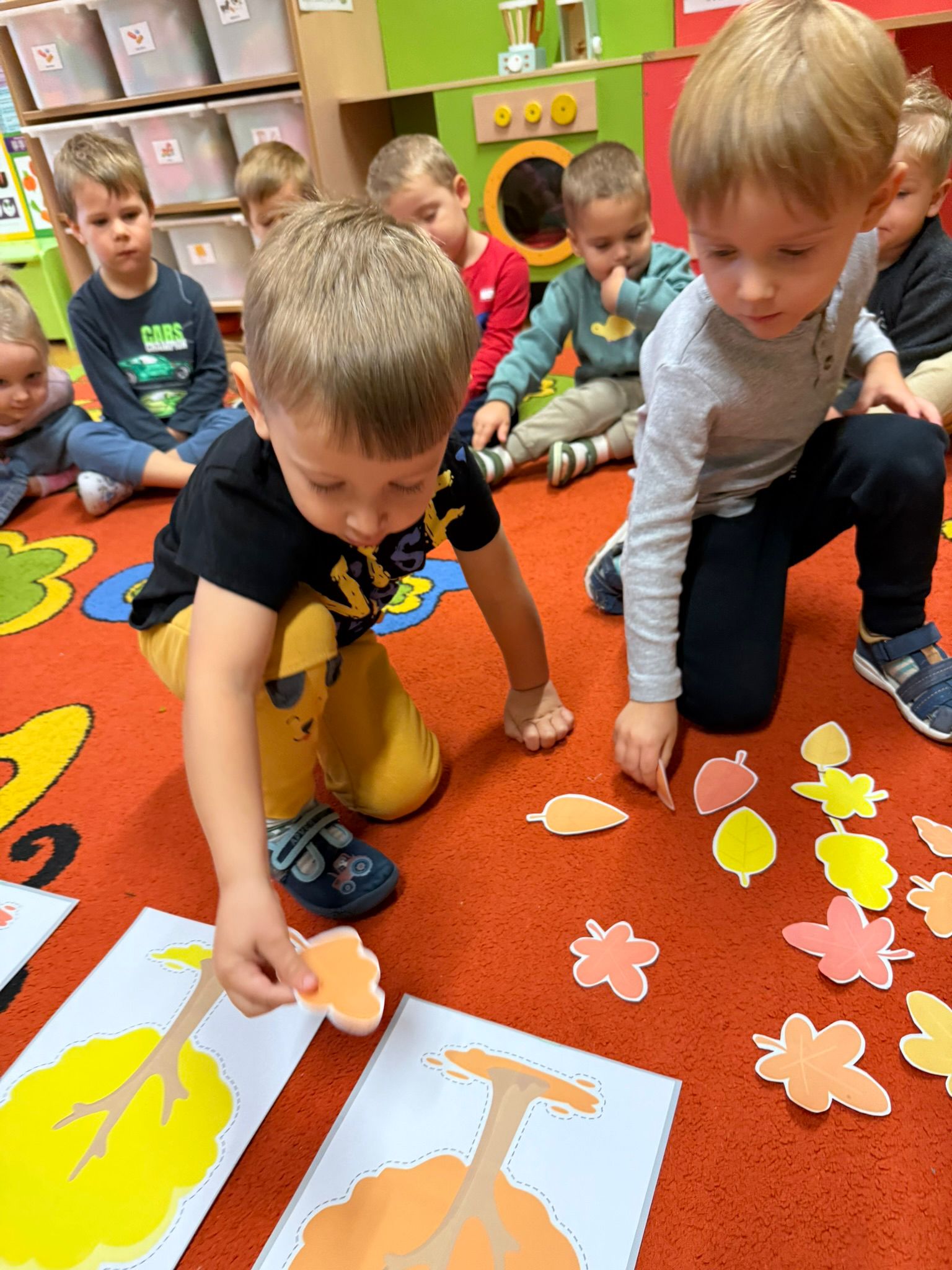 W grupie VII realizowaliśmy projekt edukacyjny „Dotykam, słucham, czuję – jesień”, podczas którego dzieci miały okazję poznawać jesień wszystkimi zmysłami.