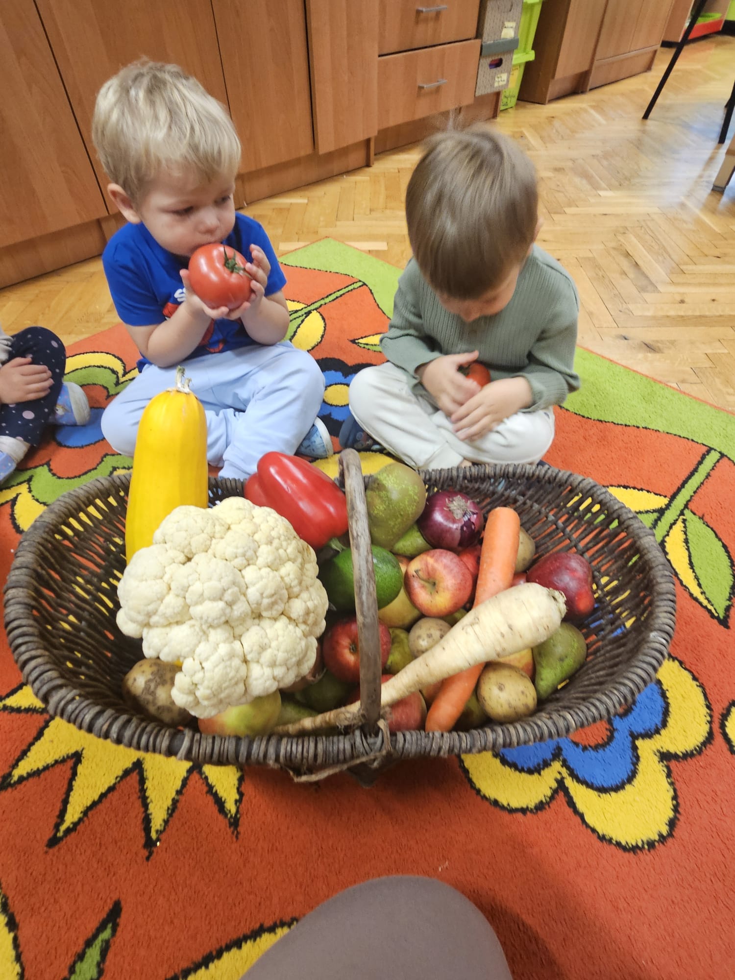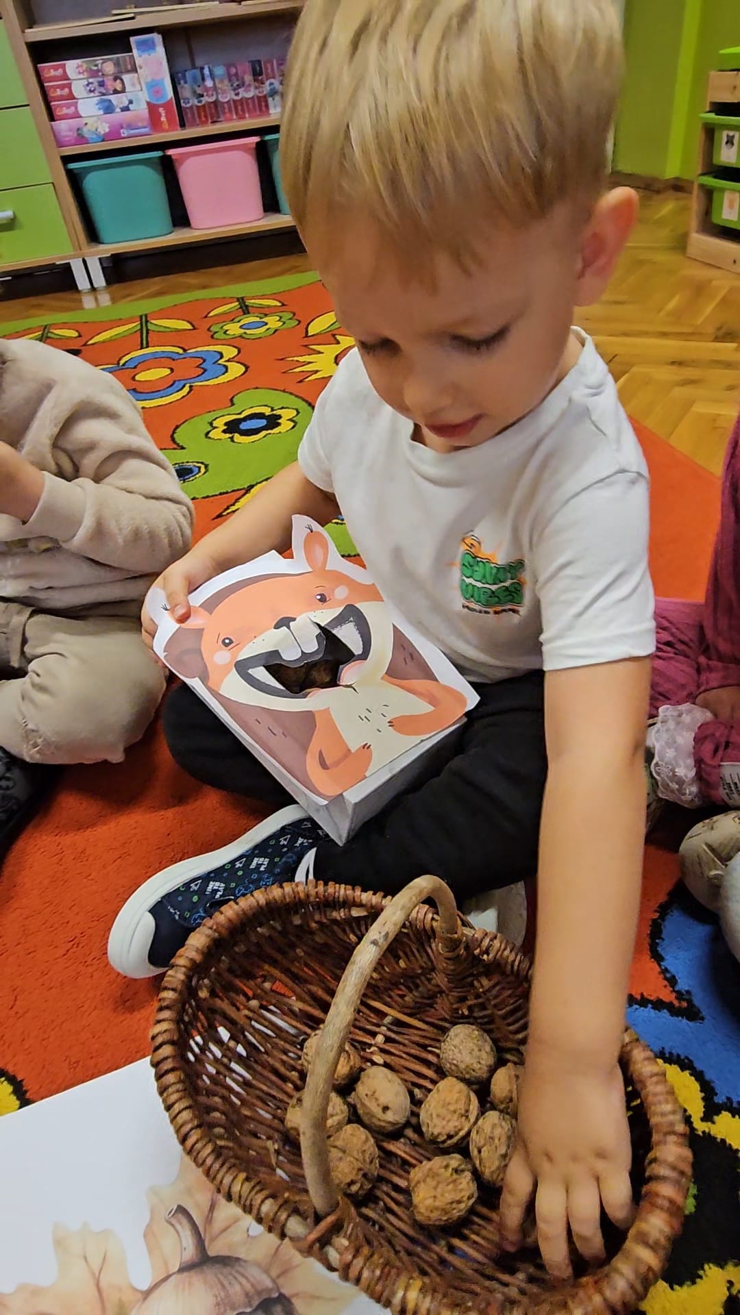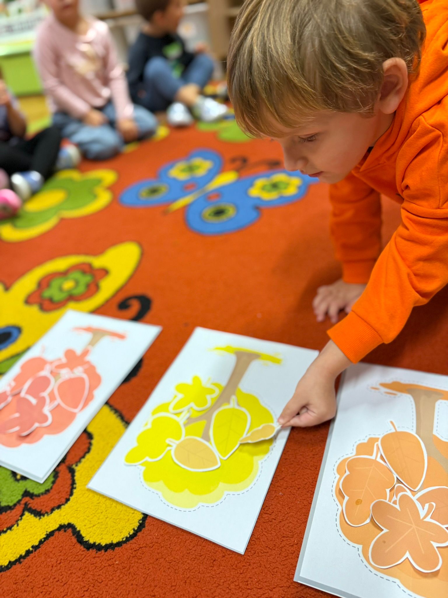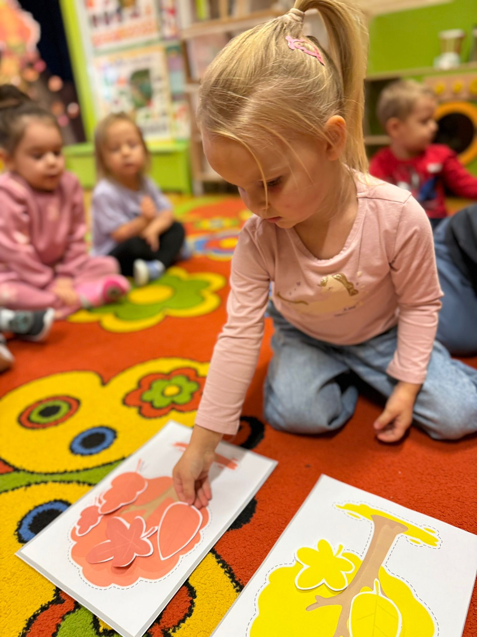 W grupie VII realizowaliśmy projekt edukacyjny „Dotykam, słucham, czuję – jesień”, podczas którego dzieci miały okazję poznawać jesień wszystkimi zmysłami.