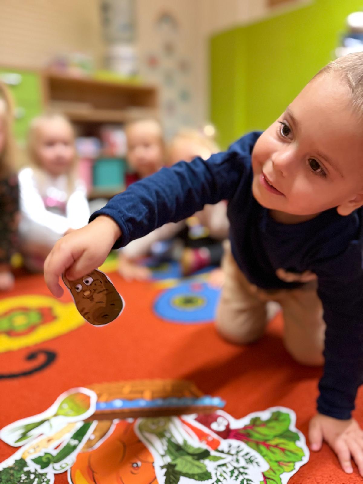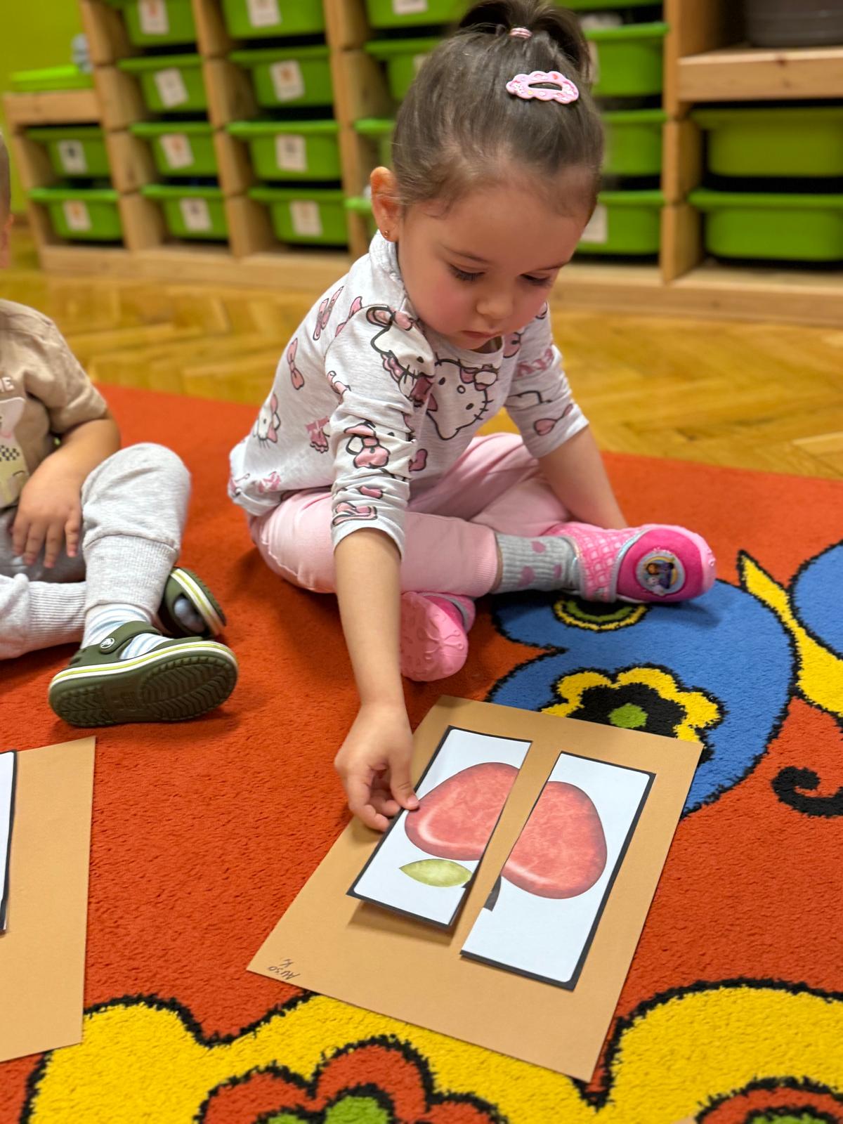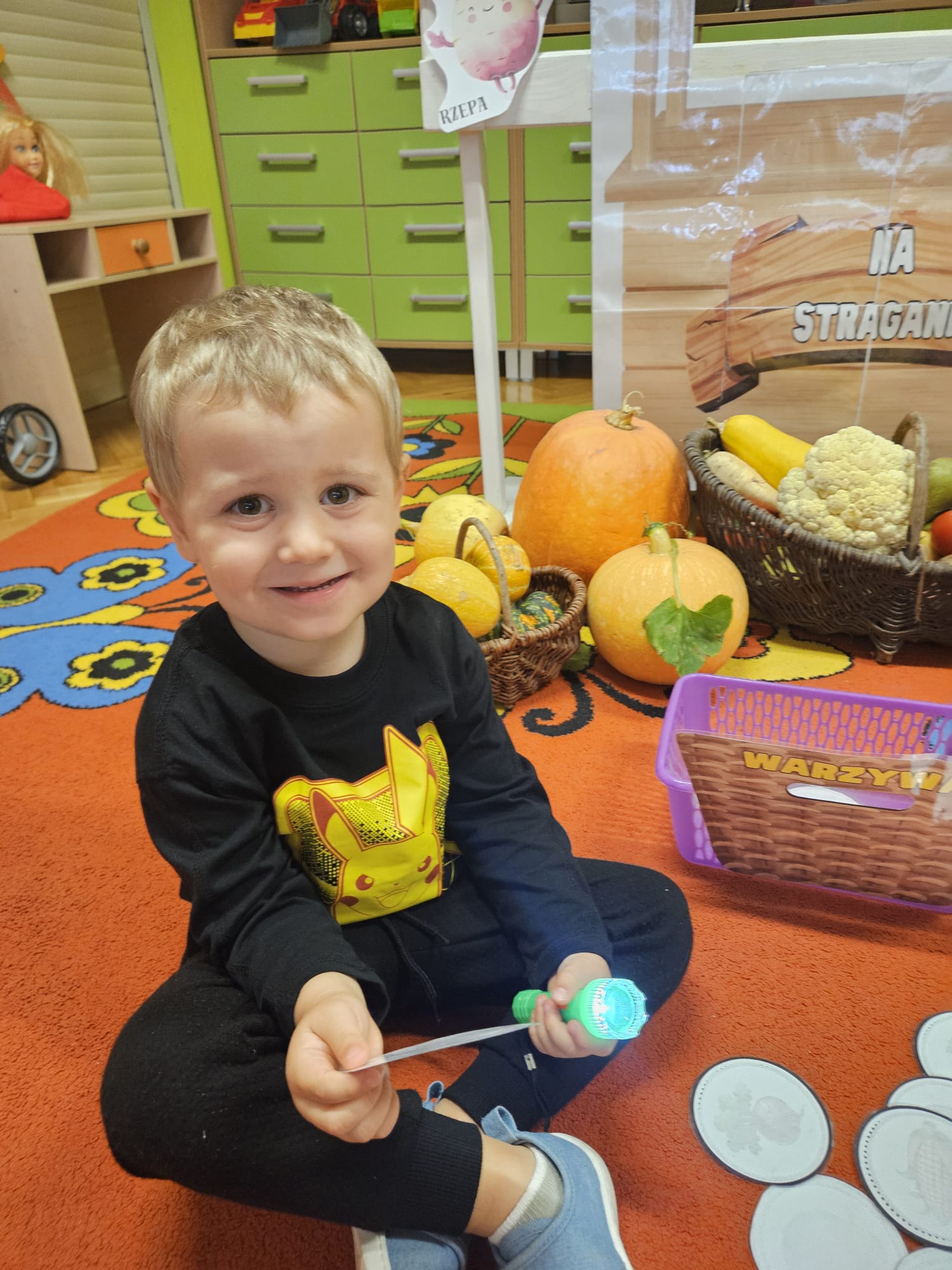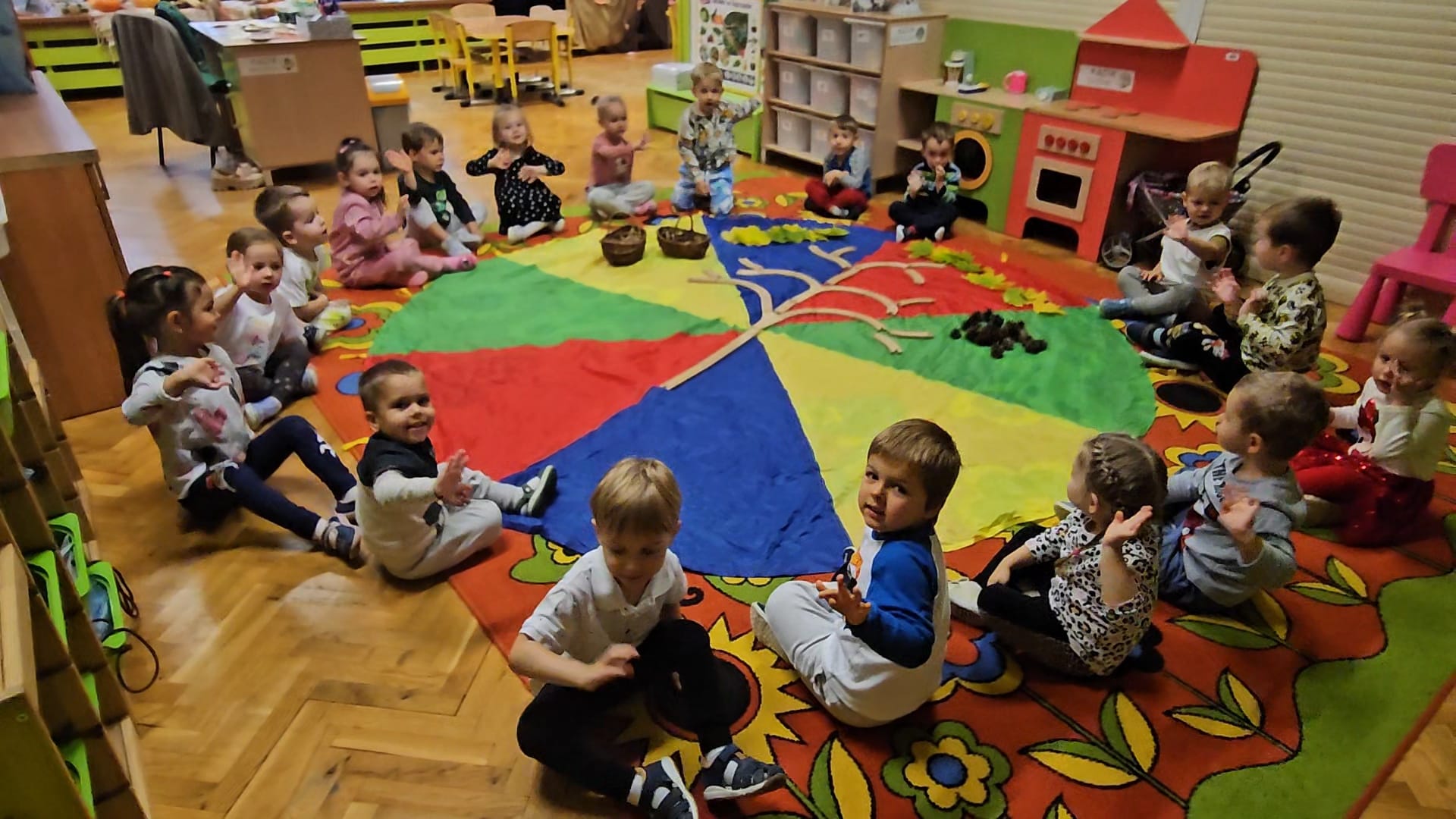 W grupie VII realizowaliśmy projekt edukacyjny „Dotykam, słucham, czuję – jesień”, podczas którego dzieci miały okazję poznawać jesień wszystkimi zmysłami.
