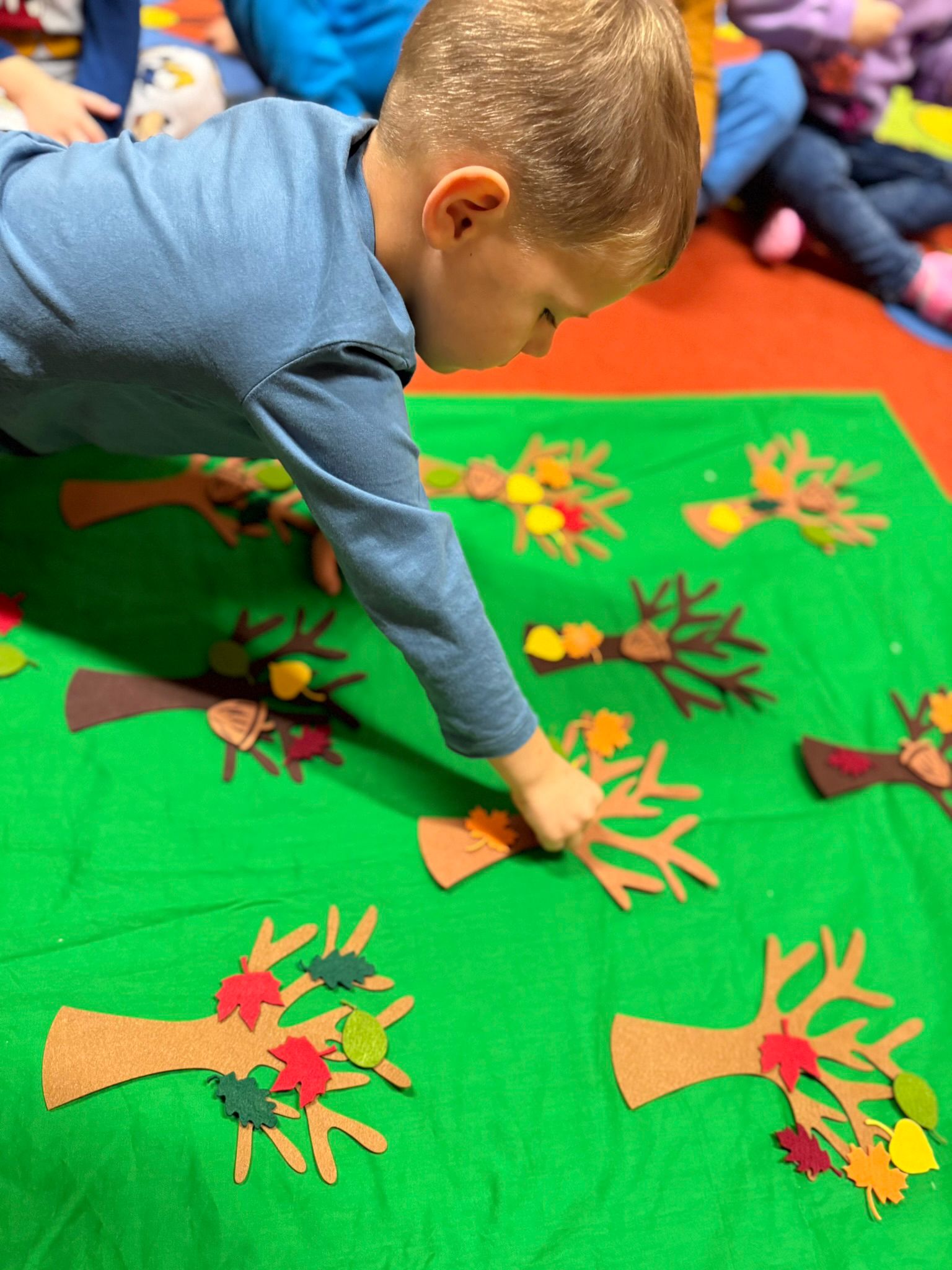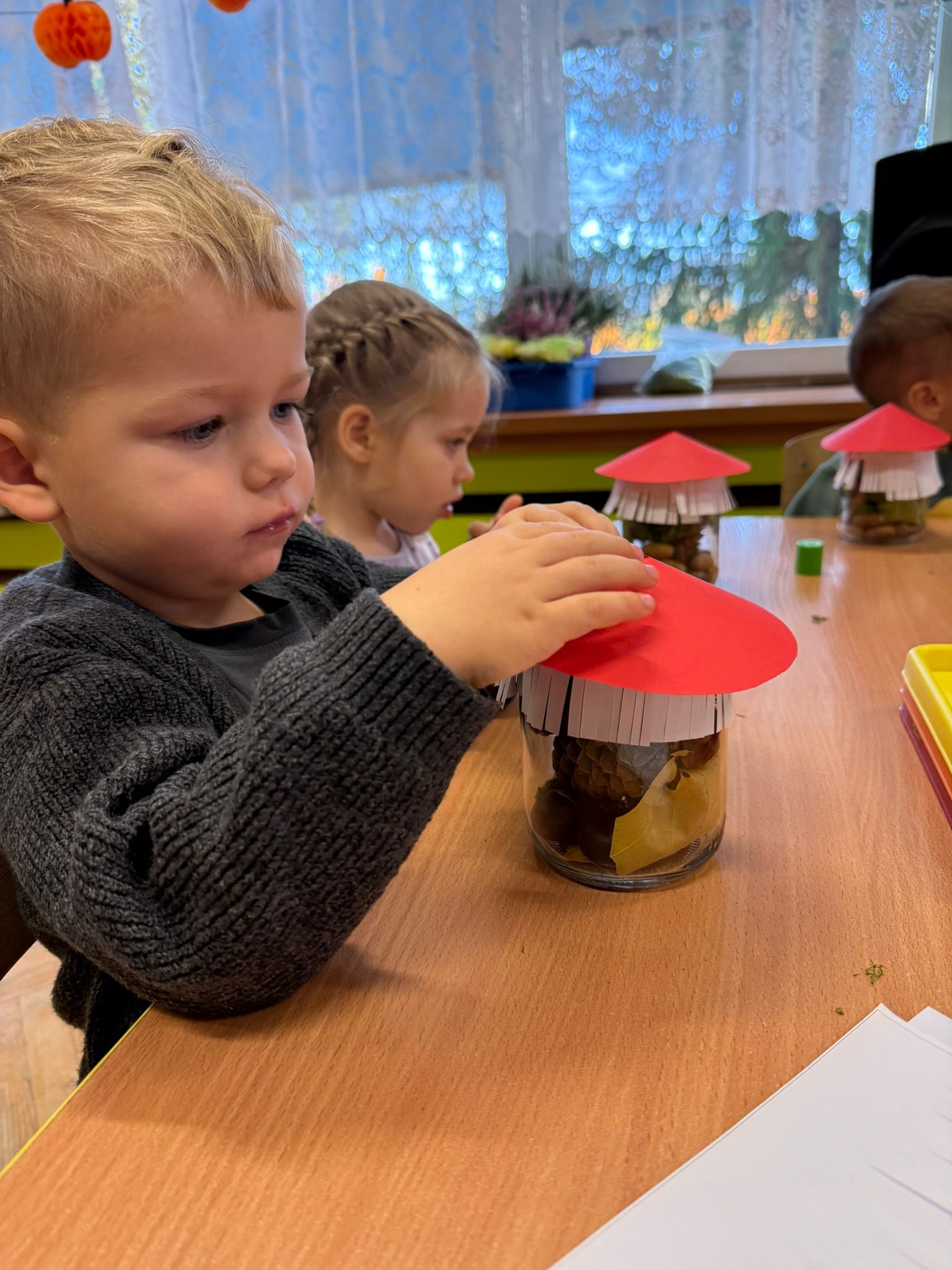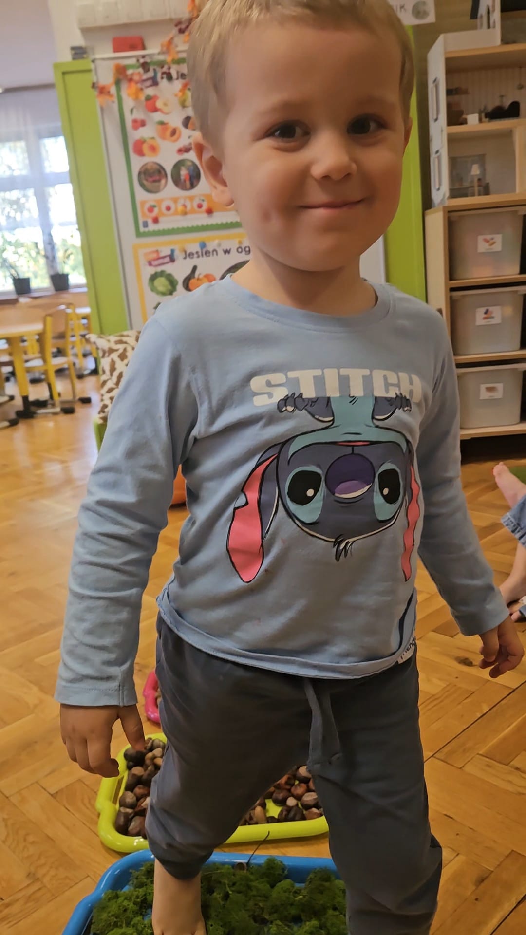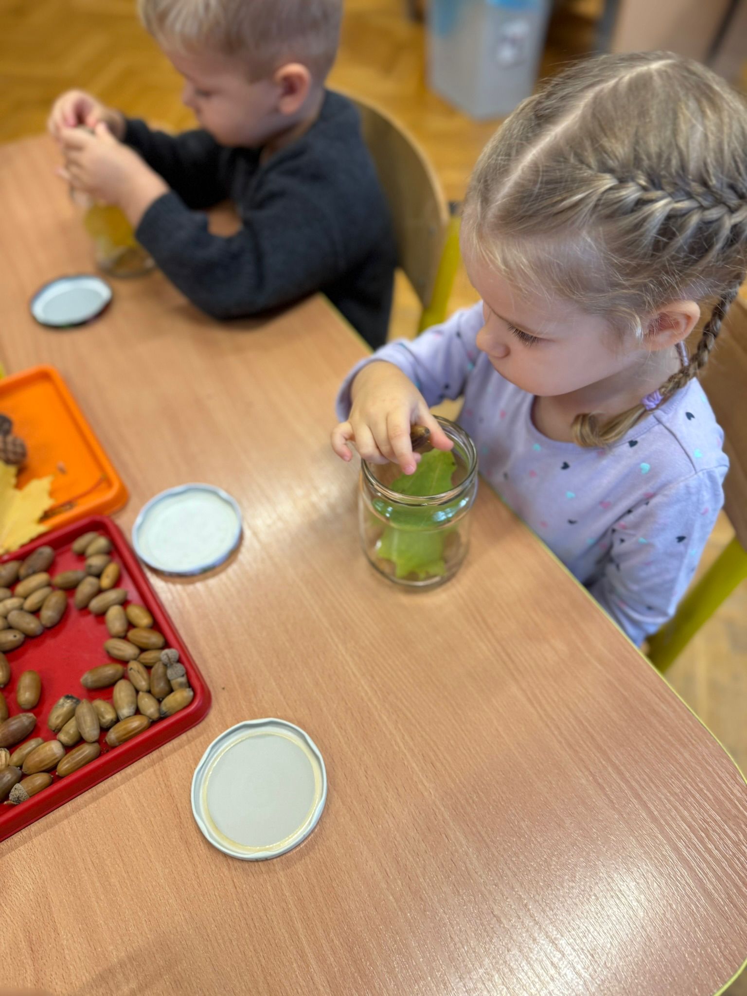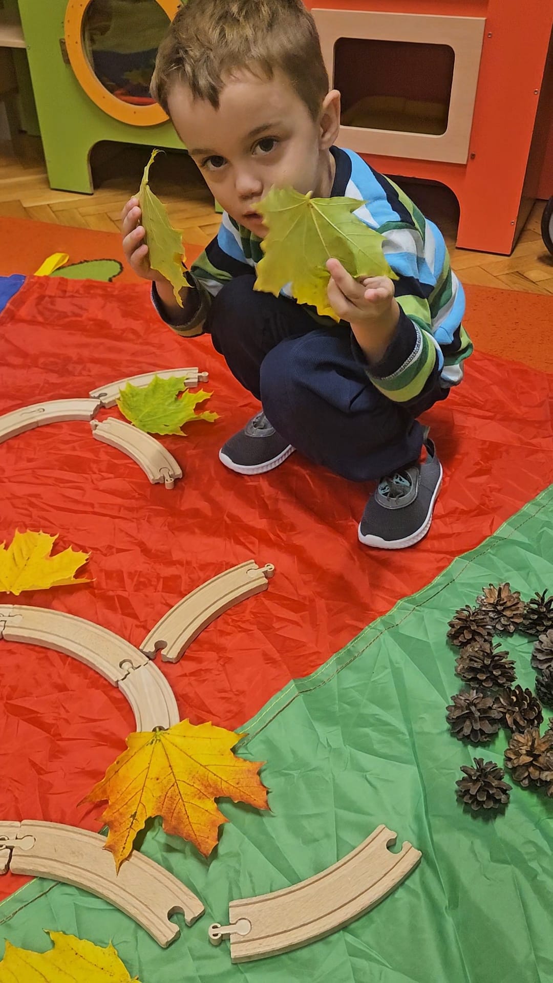 Przedszkolaki uczestniczyły w różnorodnych zabawach sensorycznych, dzięki którym mogły dotykać, wąchać, słuchać i obserwować zmiany zachodzące w przyrodzie. Dzieci badały fakturę liści, kasztanów, szyszek i żołędzi, słuchały odgłosów jesieni, , a także eksperymentowały z jesiennymi kolorami i materiałami przyrodniczymi. Zajęcia dostarczyły wszystkim mnóstwo radości, ciekawych wrażeń i nowych doświadczeń, rozwijając przy tym zmysły, kreatywność oraz umiejętność współpracy w grupie. Jesień może być naprawdę magiczna, gdy można jej dotknąć, posłuchać i poczuć!
