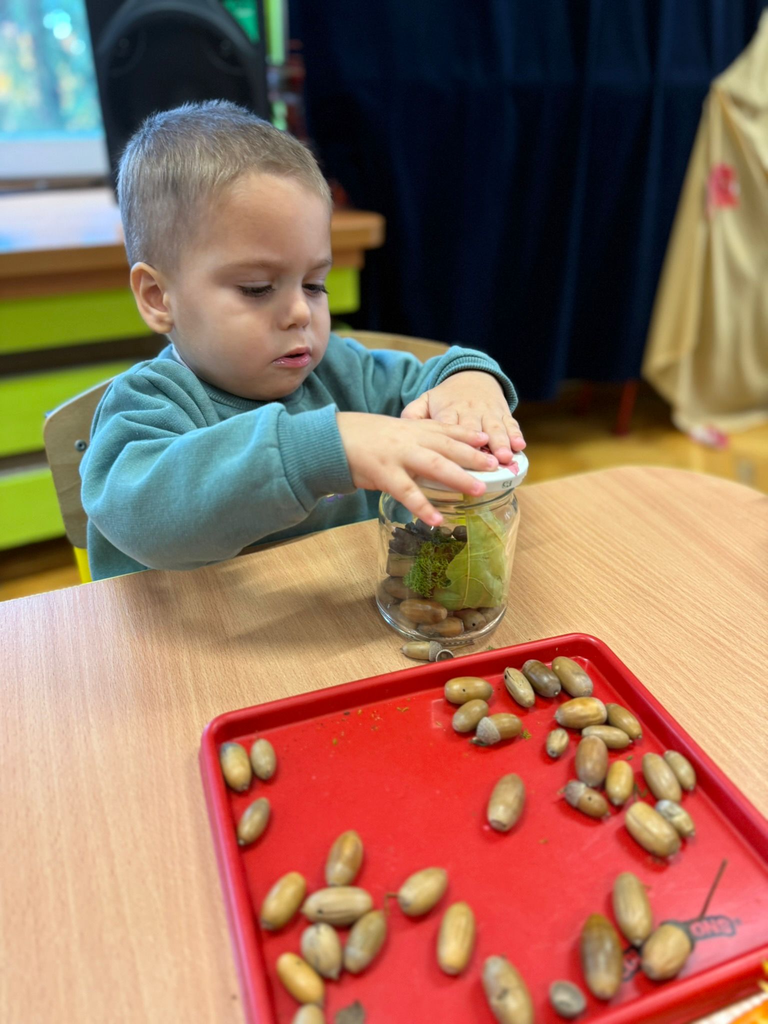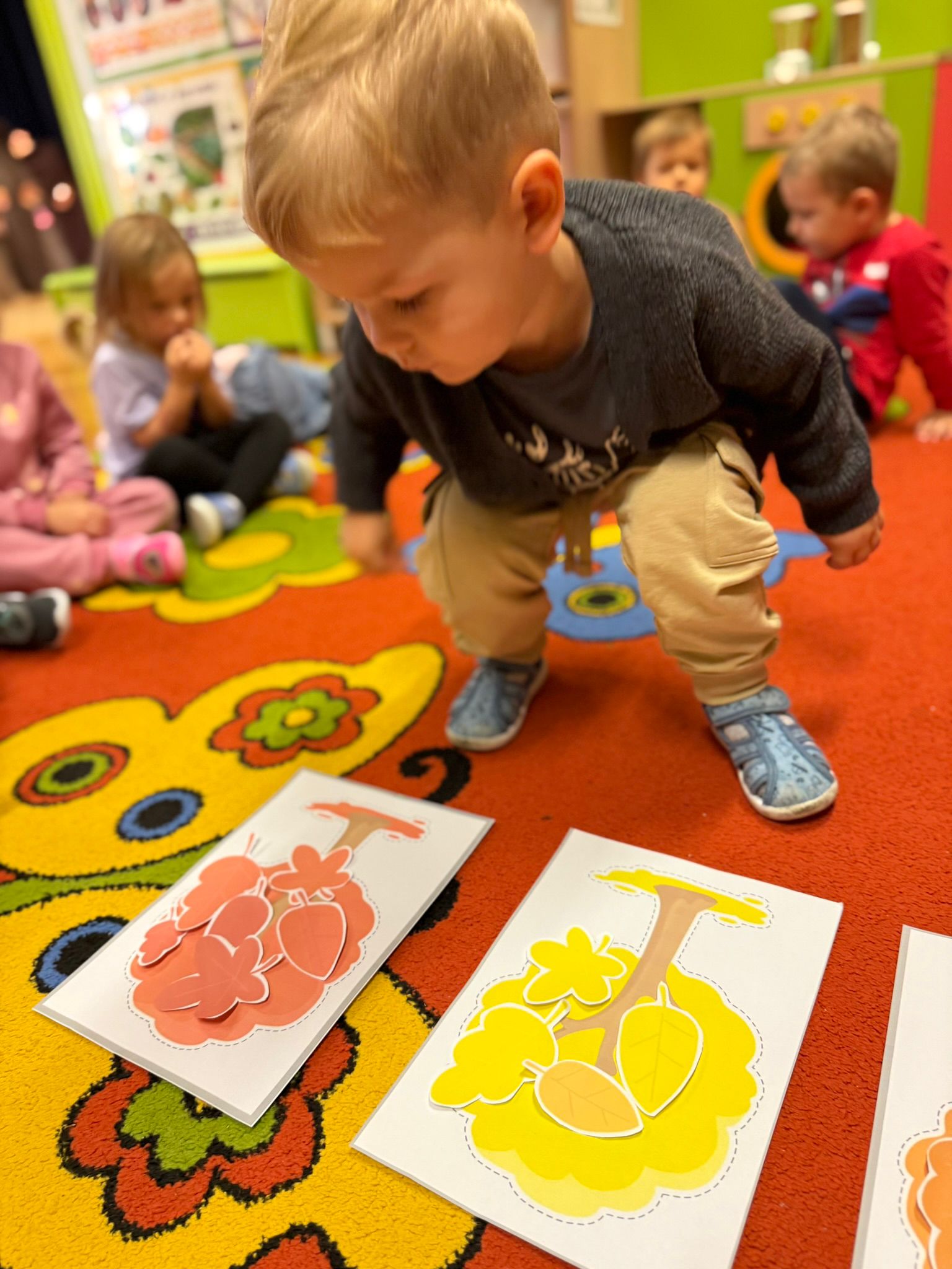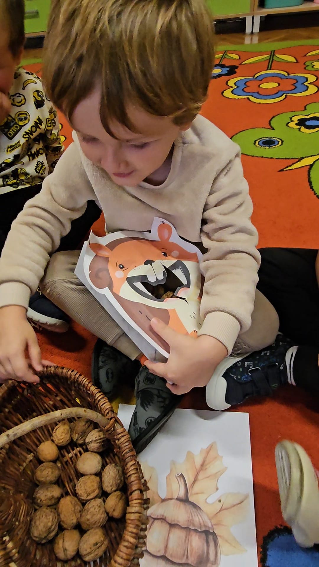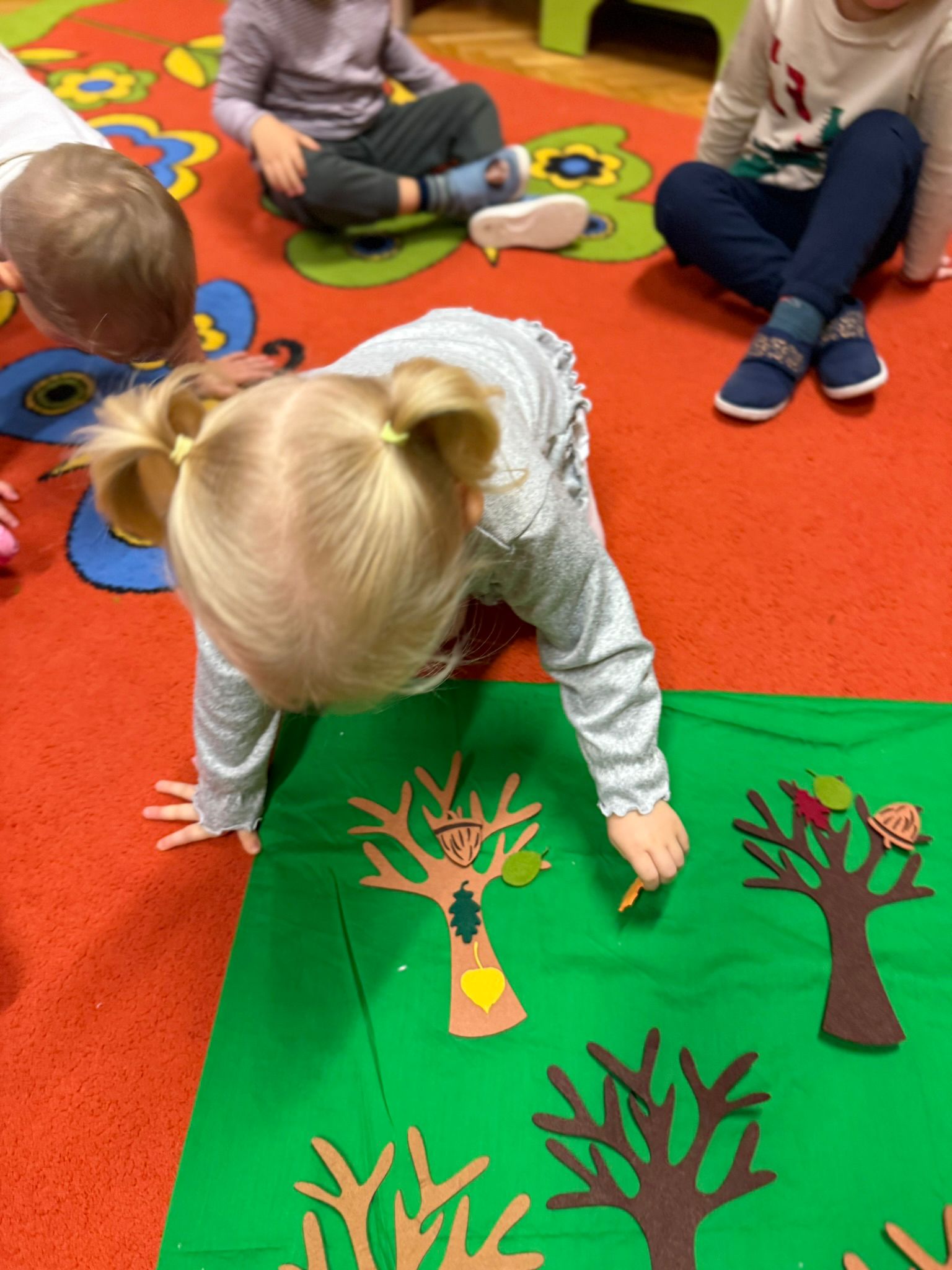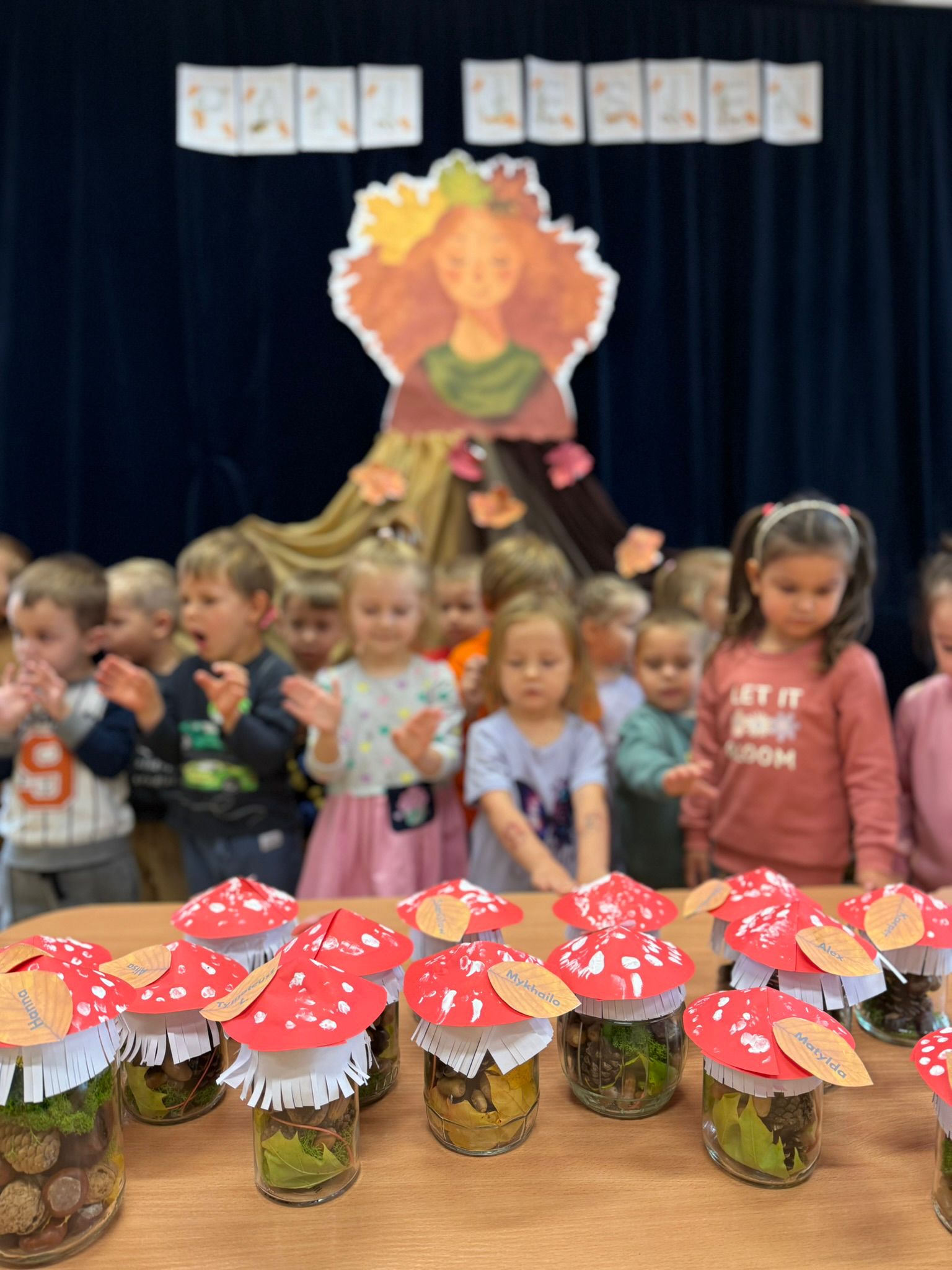 Przedszkolaki uczestniczyły w różnorodnych zabawach sensorycznych, dzięki którym mogły dotykać, wąchać, słuchać i obserwować zmiany zachodzące w przyrodzie. Dzieci badały fakturę liści, kasztanów, szyszek i żołędzi, słuchały odgłosów jesieni, , a także eksperymentowały z jesiennymi kolorami i materiałami przyrodniczymi. Zajęcia dostarczyły wszystkim mnóstwo radości, ciekawych wrażeń i nowych doświadczeń, rozwijając przy tym zmysły, kreatywność oraz umiejętność współpracy w grupie. Jesień może być naprawdę magiczna, gdy można jej dotknąć, posłuchać i poczuć!