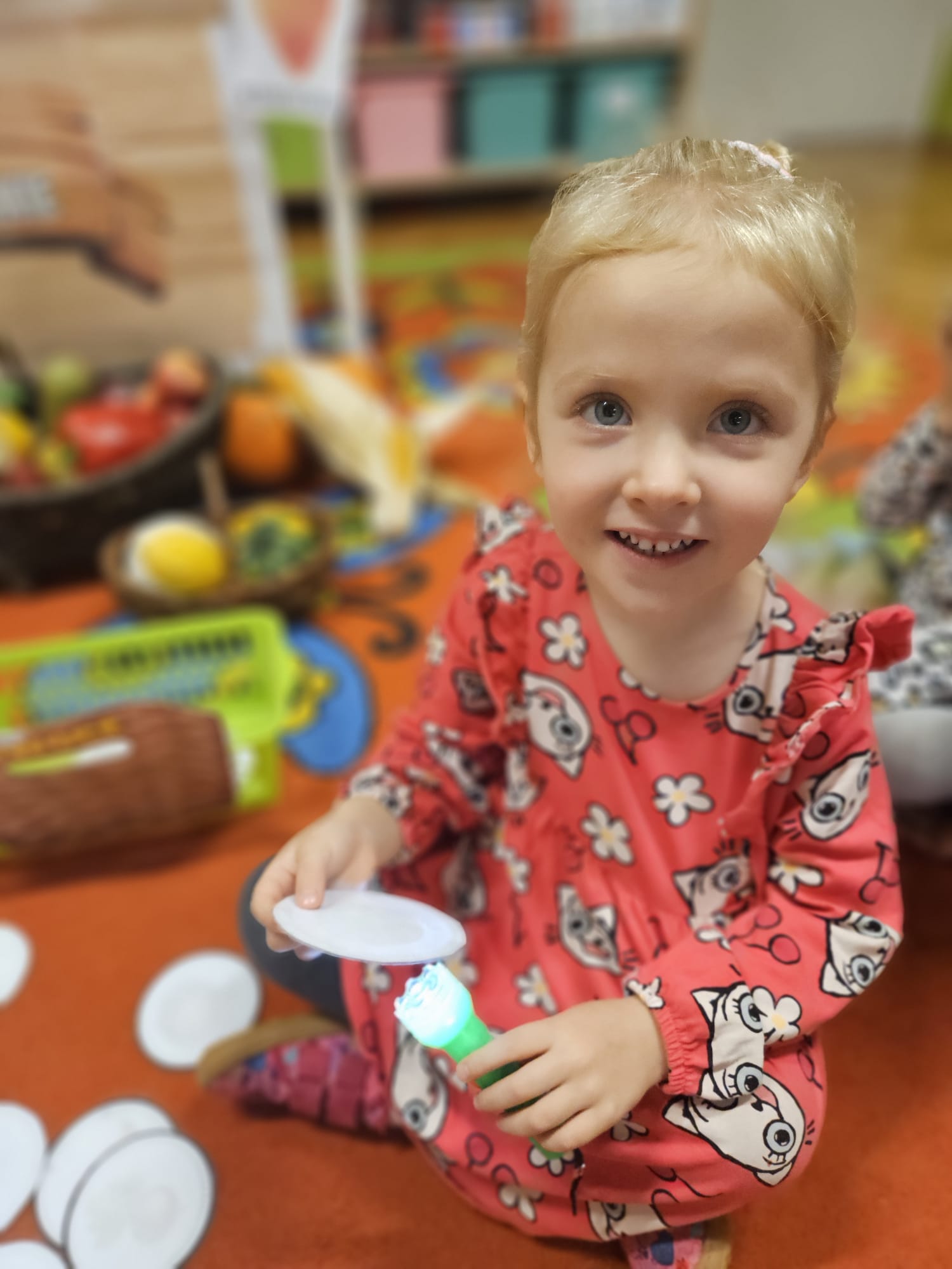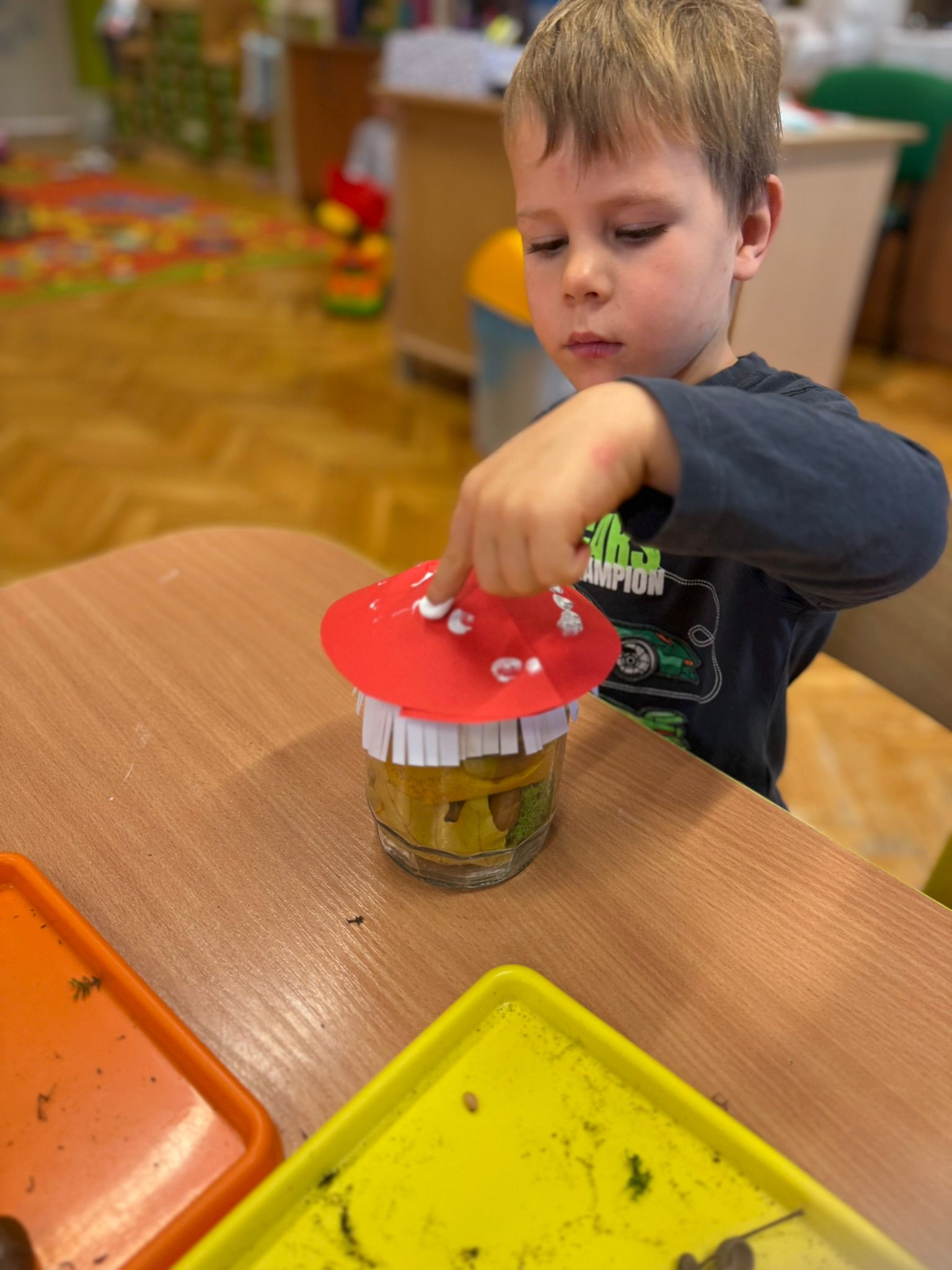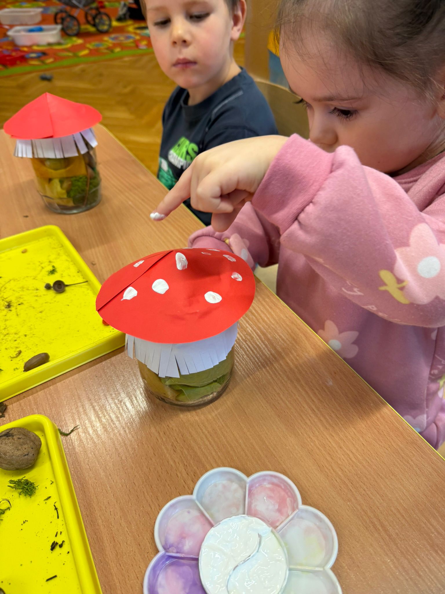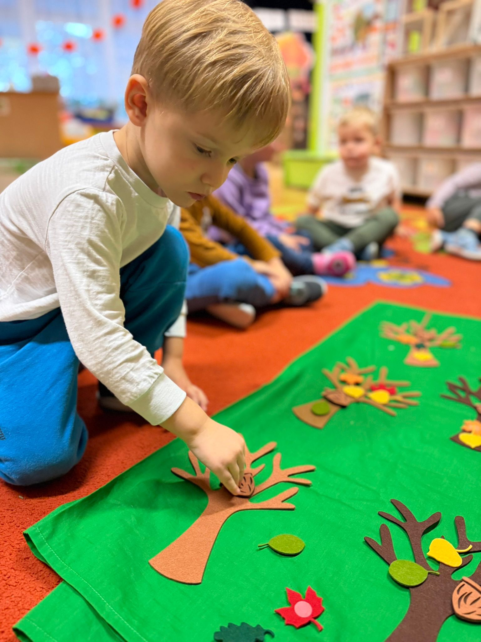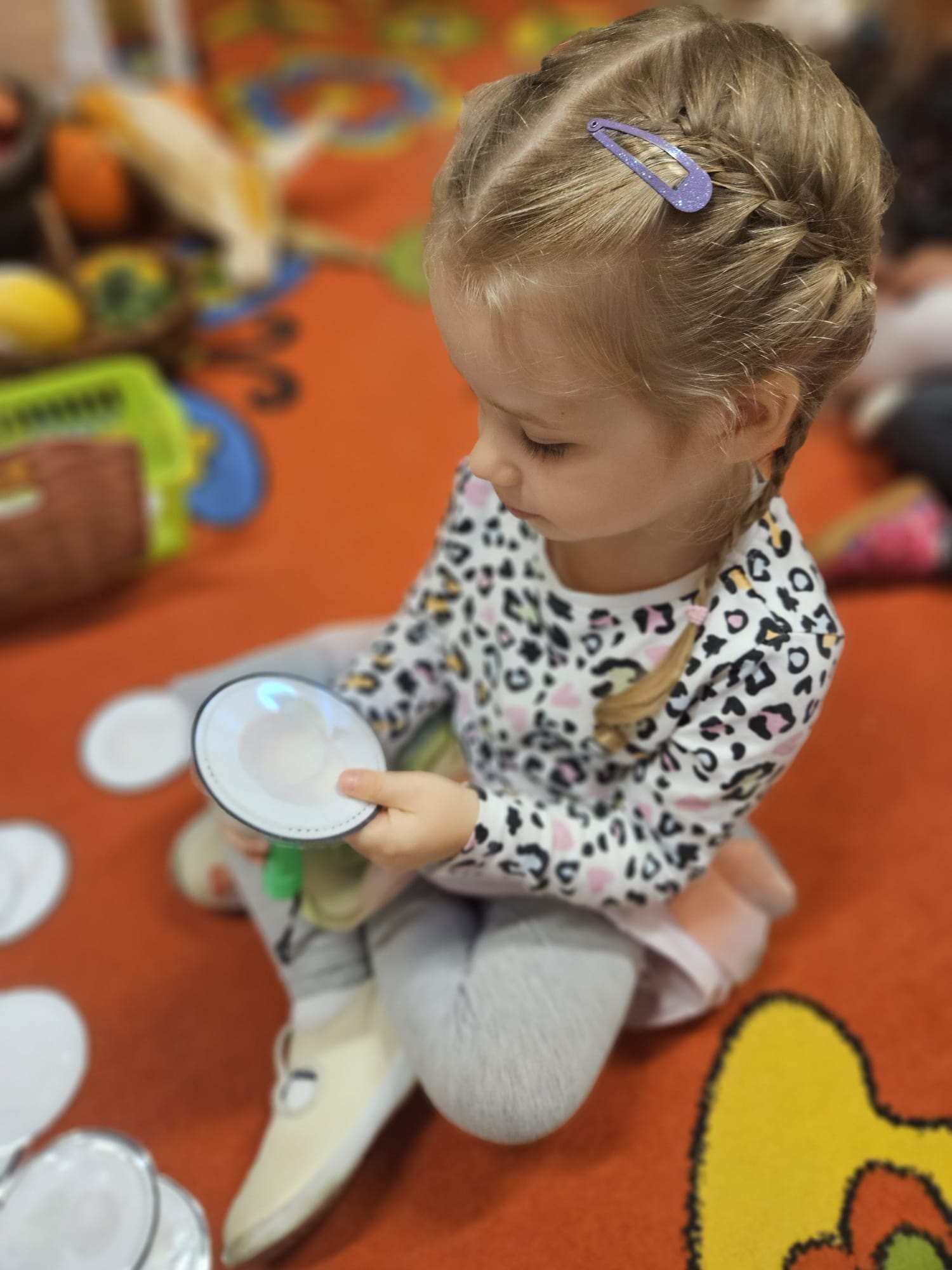 Przedszkolaki uczestniczyły w różnorodnych zabawach sensorycznych, dzięki którym mogły dotykać, wąchać, słuchać i obserwować zmiany zachodzące w przyrodzie. Dzieci badały fakturę liści, kasztanów, szyszek i żołędzi, słuchały odgłosów jesieni, , a także eksperymentowały z jesiennymi kolorami i materiałami przyrodniczymi. Zajęcia dostarczyły wszystkim mnóstwo radości, ciekawych wrażeń i nowych doświadczeń, rozwijając przy tym zmysły, kreatywność oraz umiejętność współpracy w grupie. Jesień może być naprawdę magiczna, gdy można jej dotknąć, posłuchać i poczuć!