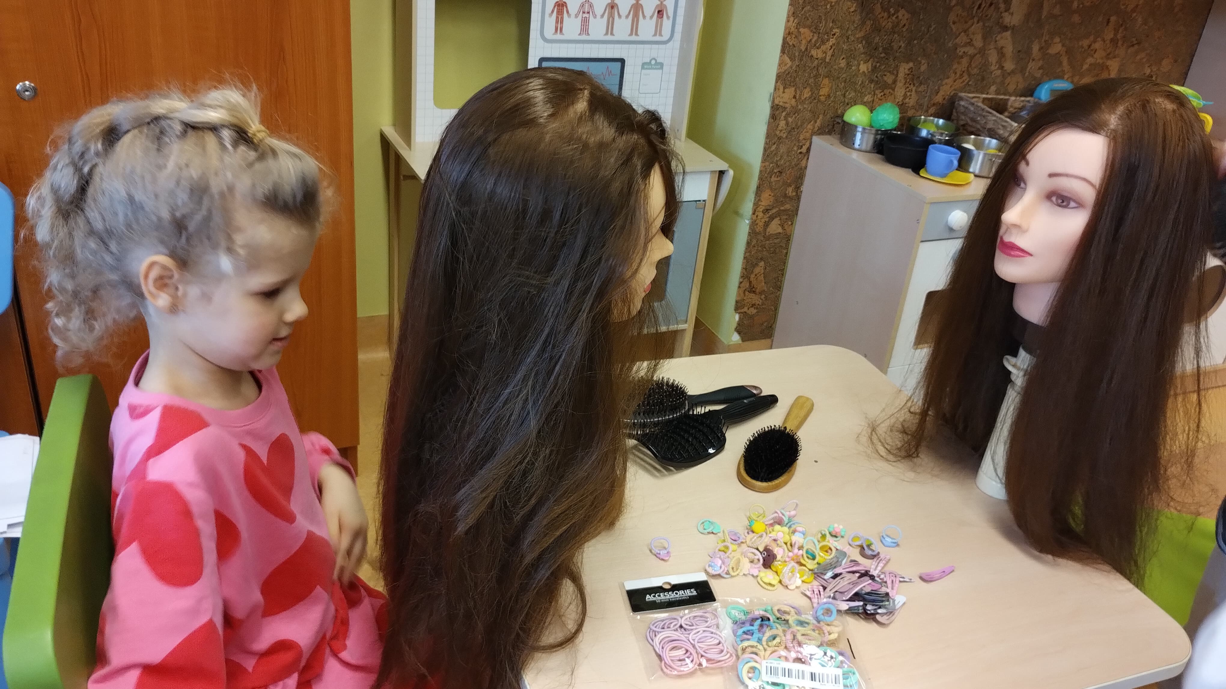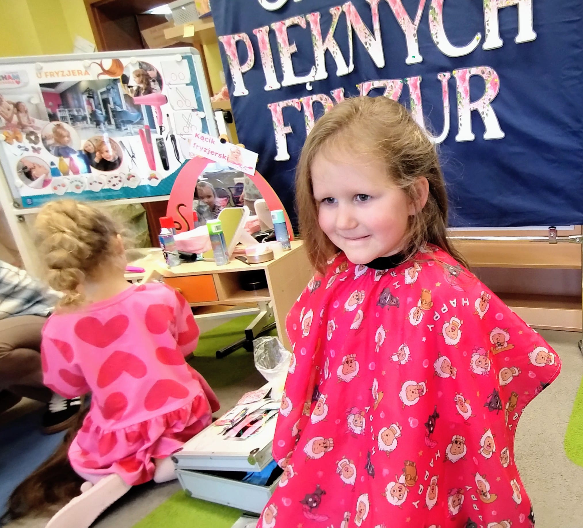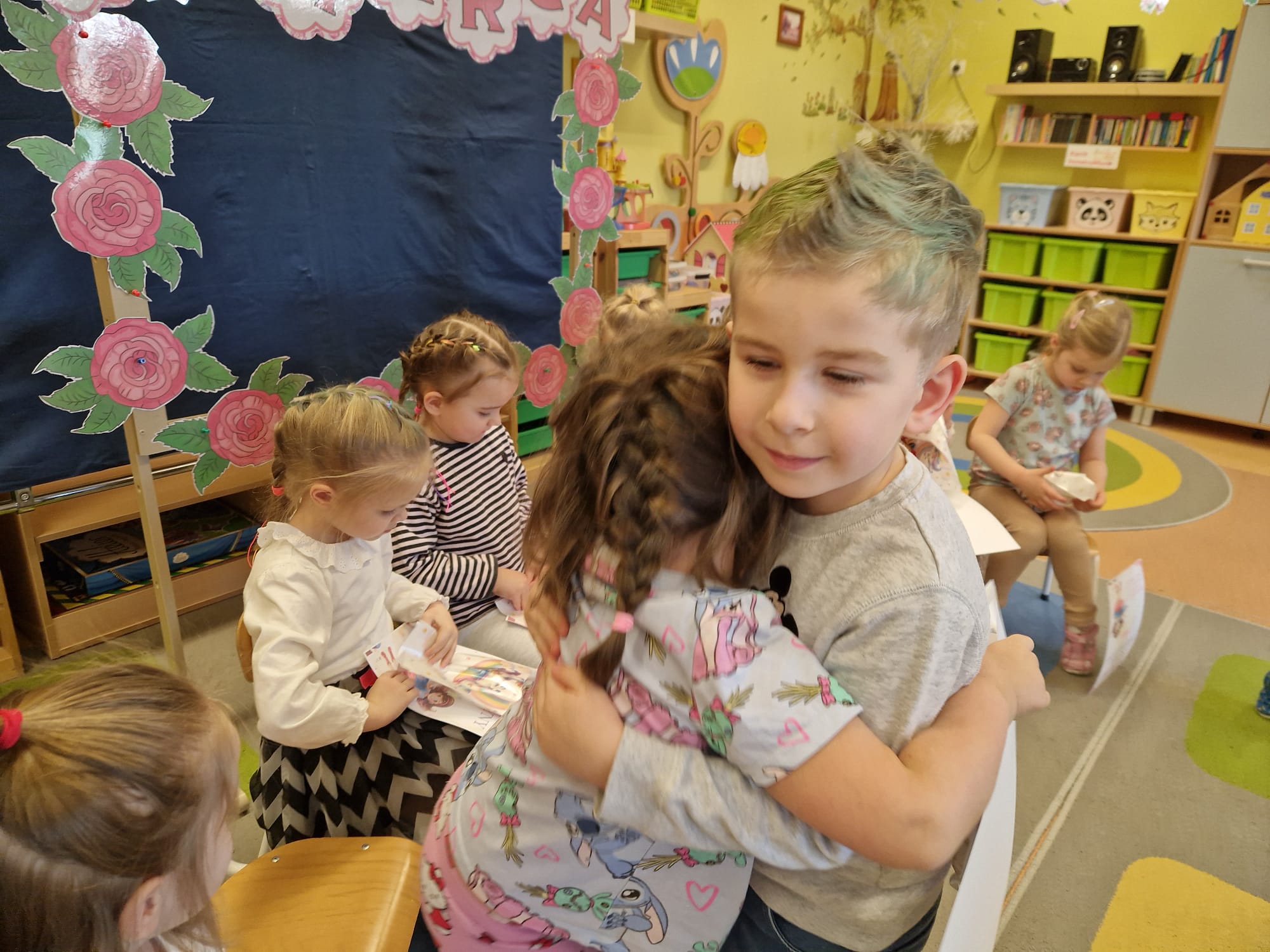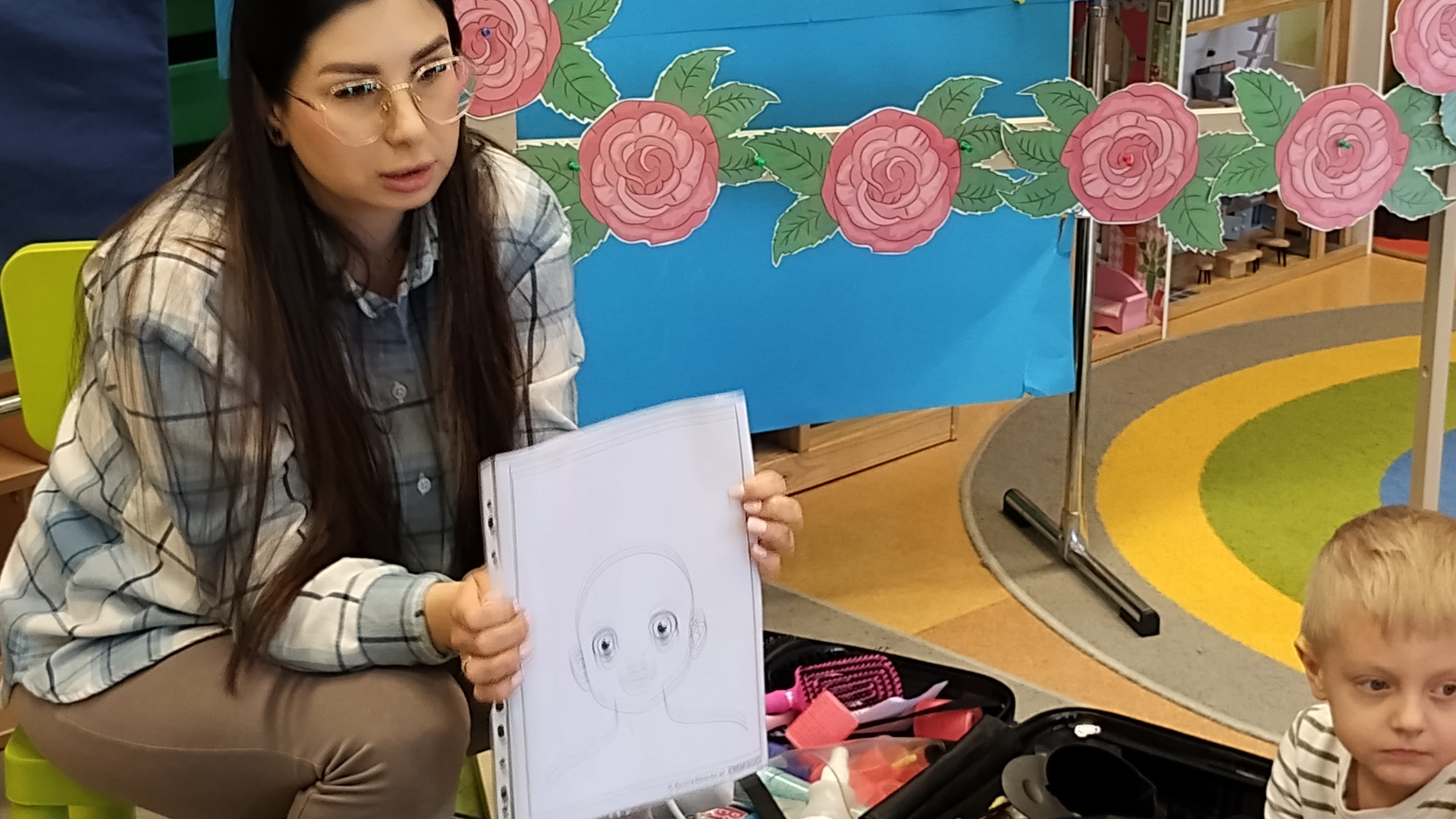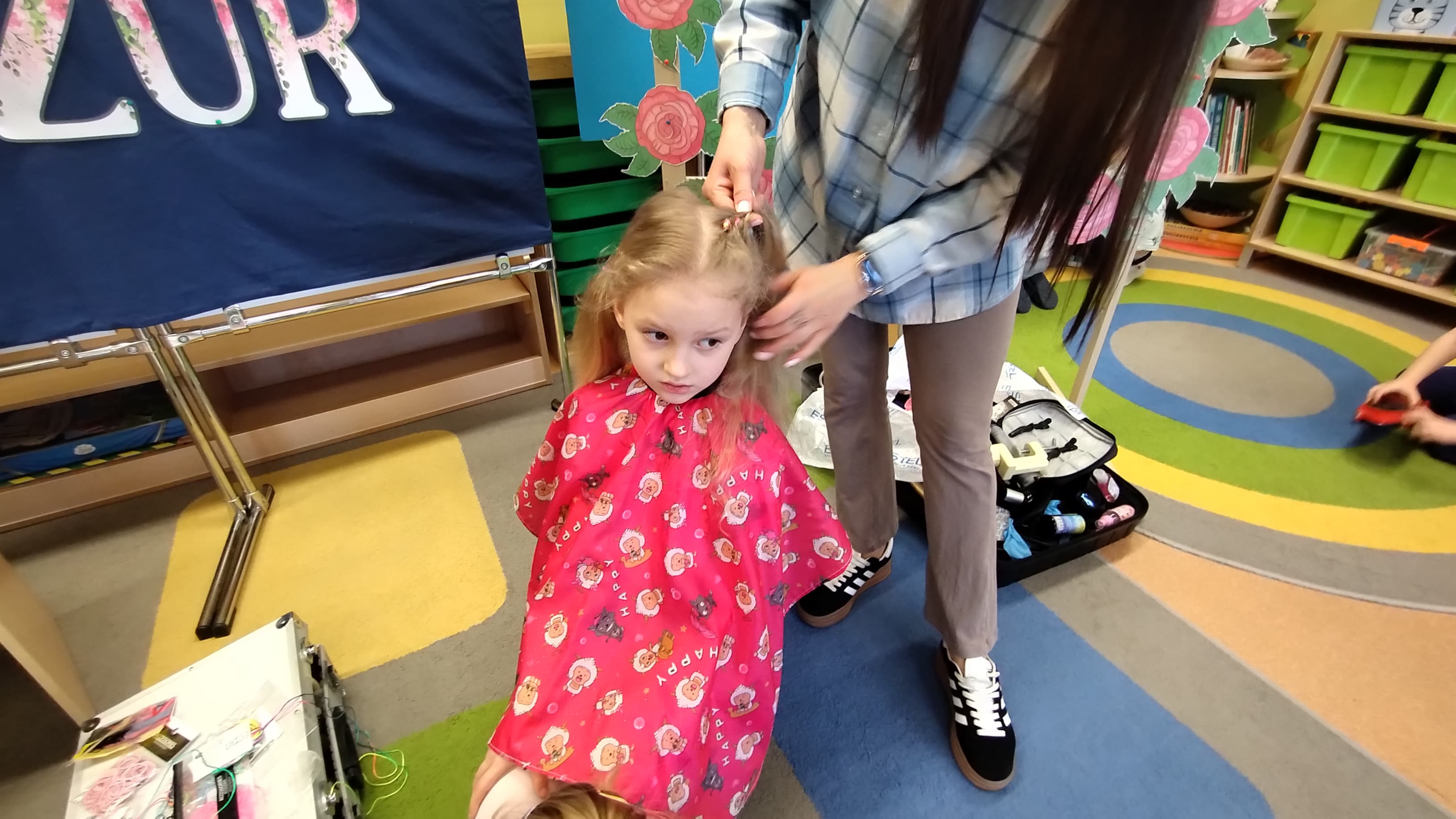 „ …. Być kobietą, być kobietą marzę ciągle będąc dzieckiem …” Która mała dziewczynka nie snuje wyobrażeń o byciu kobietą ??? Chyba każda, a celebrowanie Dnia Kobiet, na pewno pozwoliło przybliżyć te wyobrażenia. Choć Dzień Kobiet kojarzy nam się często z kwiatami, upominkami, których także nie zabrakło, to w grupie X tego dnia, dziewczynki mogły poczuć się, jak w prawdziwym salonie fryzjerskim, a to za sprawą spotkania z panią fryzjerką. Dnia 9. 03. 2026 odwiedziła nas mama Zuzi - pani Klaudia, której pasją i zawodem jest właśnie fryzjerstwo. I to dzięki pani Klaudii, dziewczynki mogły poczuć się tak wyjątkowo. Zanim jednak to nastąpiło, przedszkolaki miały wyjątkową okazję poznać zawód fryzjera! Podczas tej niezwykłej wizyty dzieci dowiedziały się, na czym polega praca fryzjera, jakie narzędzia są niezbędne w salonie fryzjerskim oraz jak prawidłowo dbać o włosy. Największą atrakcją spotkania był pokaz stylizacji fryzur, w którym modelkami zostały nasze dziewczynki oraz chłopcy. Dzieci z zaciekawieniem obserwowały, jak pani Klaudia - tworzy piękne upięcia, warkocze i loki, wykorzystując profesjonalne narzędzia. Same też mogły tworzyć fryzury na profesjonalnym manekinie fryzjerskim. Nie zabrakło również rozmów o różnych fryzjerskich trikach i porad na temat pielęgnacji włosów. Niespodzianka również czekała na chłopców …. „ kolorowy trik” na włosach. To spotkanie było nie tylko świetną zabawą, ale też cenną lekcją o jednym z ciekawszych, artystycznych zawodów. Kto wie, może wśród naszych przedszkolaków rośnie przyszła mistrzyni lub mistrz fryzjerstwa? Serdecznie dziękujemy naszemu gościowi za wizytę, za suuuper zabawę, wystrzałowe fryzury i poświęcony czas. Czekamy na kolejne inspirujące spotkania z naszymi rodzicami! A po obiadku nastąpił ciąg dalszy świętowania Dnia Kobiet w grupie X. Chłopcy wręczyli dziewczynkom upominki, po czym dzieci wspólnie rozpoczęły biesiadowanie przy słodkościach, o które zatroszczyli się niezawodni rodzice naszych przedszkolaków, za co serdecznie dziękujemy. To był naprawdę bardzo radosny, wypełniony wzajemnym szacunkiem i życzliwością dzień.