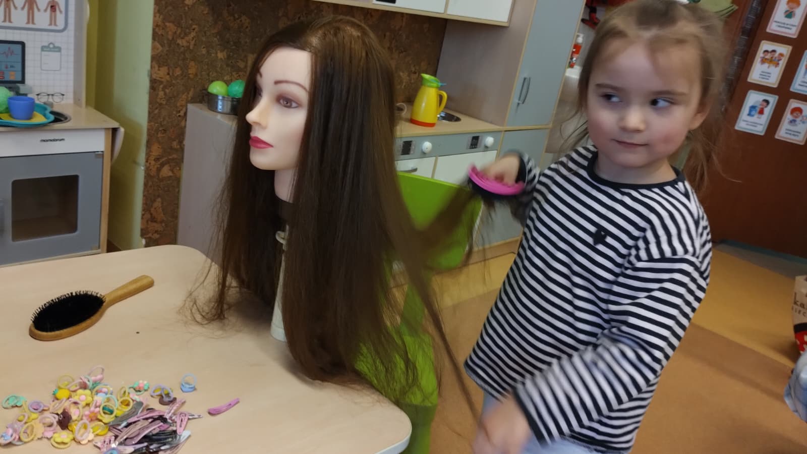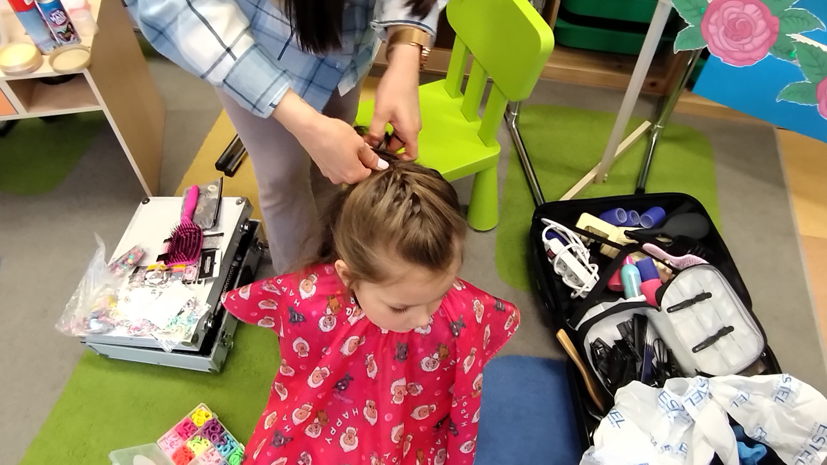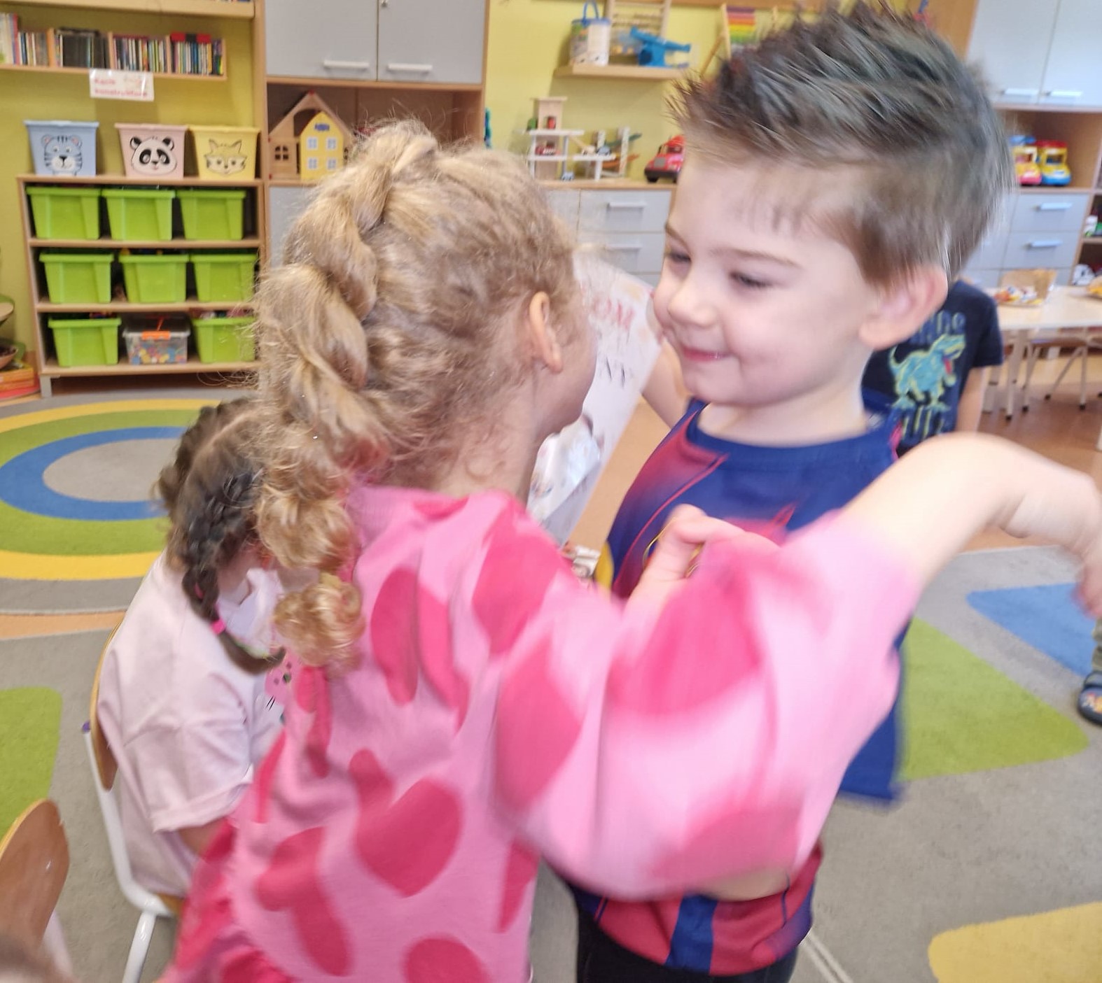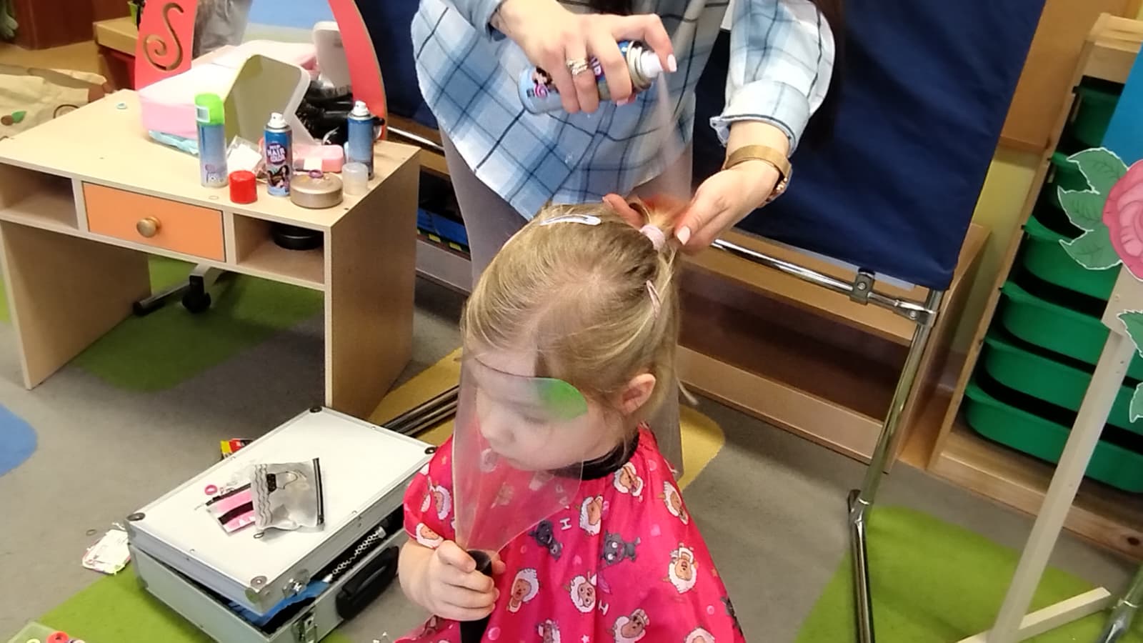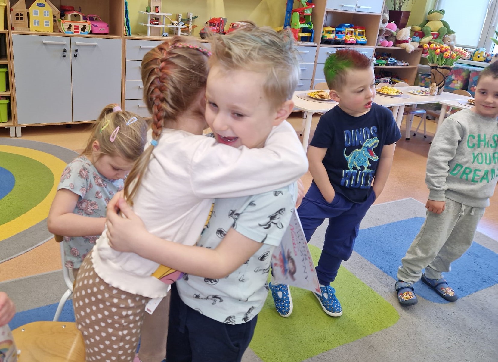 „ …. Być kobietą, być kobietą marzę ciągle będąc dzieckiem …” Która mała dziewczynka nie snuje wyobrażeń o byciu kobietą ??? Chyba każda, a celebrowanie Dnia Kobiet, na pewno pozwoliło przybliżyć te wyobrażenia. Choć Dzień Kobiet kojarzy nam się często z kwiatami, upominkami, których także nie zabrakło, to w grupie X tego dnia, dziewczynki mogły poczuć się, jak w prawdziwym salonie fryzjerskim, a to za sprawą spotkania z panią fryzjerką. Dnia 9. 03. 2026 odwiedziła nas mama Zuzi - pani Klaudia, której pasją i zawodem jest właśnie fryzjerstwo. I to dzięki pani Klaudii, dziewczynki mogły poczuć się tak wyjątkowo. Zanim jednak to nastąpiło, przedszkolaki miały wyjątkową okazję poznać zawód fryzjera! Podczas tej niezwykłej wizyty dzieci dowiedziały się, na czym polega praca fryzjera, jakie narzędzia są niezbędne w salonie fryzjerskim oraz jak prawidłowo dbać o włosy. Największą atrakcją spotkania był pokaz stylizacji fryzur, w którym modelkami zostały nasze dziewczynki oraz chłopcy. Dzieci z zaciekawieniem obserwowały, jak pani Klaudia - tworzy piękne upięcia, warkocze i loki, wykorzystując profesjonalne narzędzia. Same też mogły tworzyć fryzury na profesjonalnym manekinie fryzjerskim. Nie zabrakło również rozmów o różnych fryzjerskich trikach i porad na temat pielęgnacji włosów. Niespodzianka również czekała na chłopców …. „ kolorowy trik” na włosach. To spotkanie było nie tylko świetną zabawą, ale też cenną lekcją o jednym z ciekawszych, artystycznych zawodów. Kto wie, może wśród naszych przedszkolaków rośnie przyszła mistrzyni lub mistrz fryzjerstwa? Serdecznie dziękujemy naszemu gościowi za wizytę, za suuuper zabawę, wystrzałowe fryzury i poświęcony czas. Czekamy na kolejne inspirujące spotkania z naszymi rodzicami! A po obiadku nastąpił ciąg dalszy świętowania Dnia Kobiet w grupie X. Chłopcy wręczyli dziewczynkom upominki, po czym dzieci wspólnie rozpoczęły biesiadowanie przy słodkościach, o które zatroszczyli się niezawodni rodzice naszych przedszkolaków, za co serdecznie dziękujemy. To był naprawdę bardzo radosny, wypełniony wzajemnym szacunkiem i życzliwością dzień.