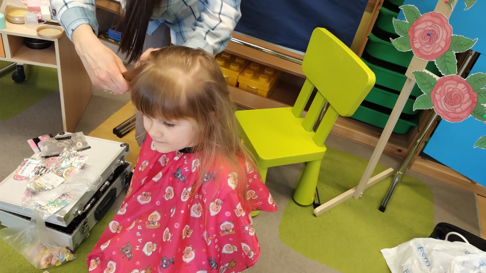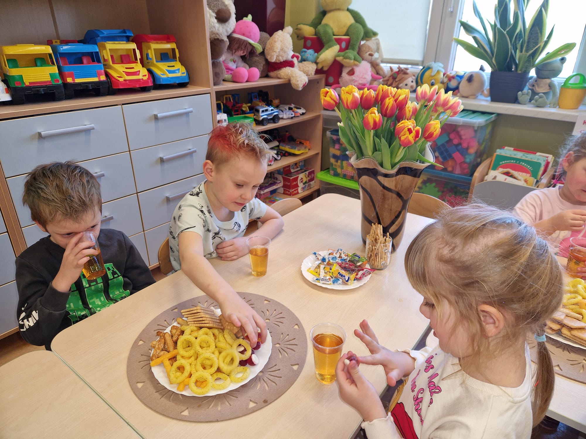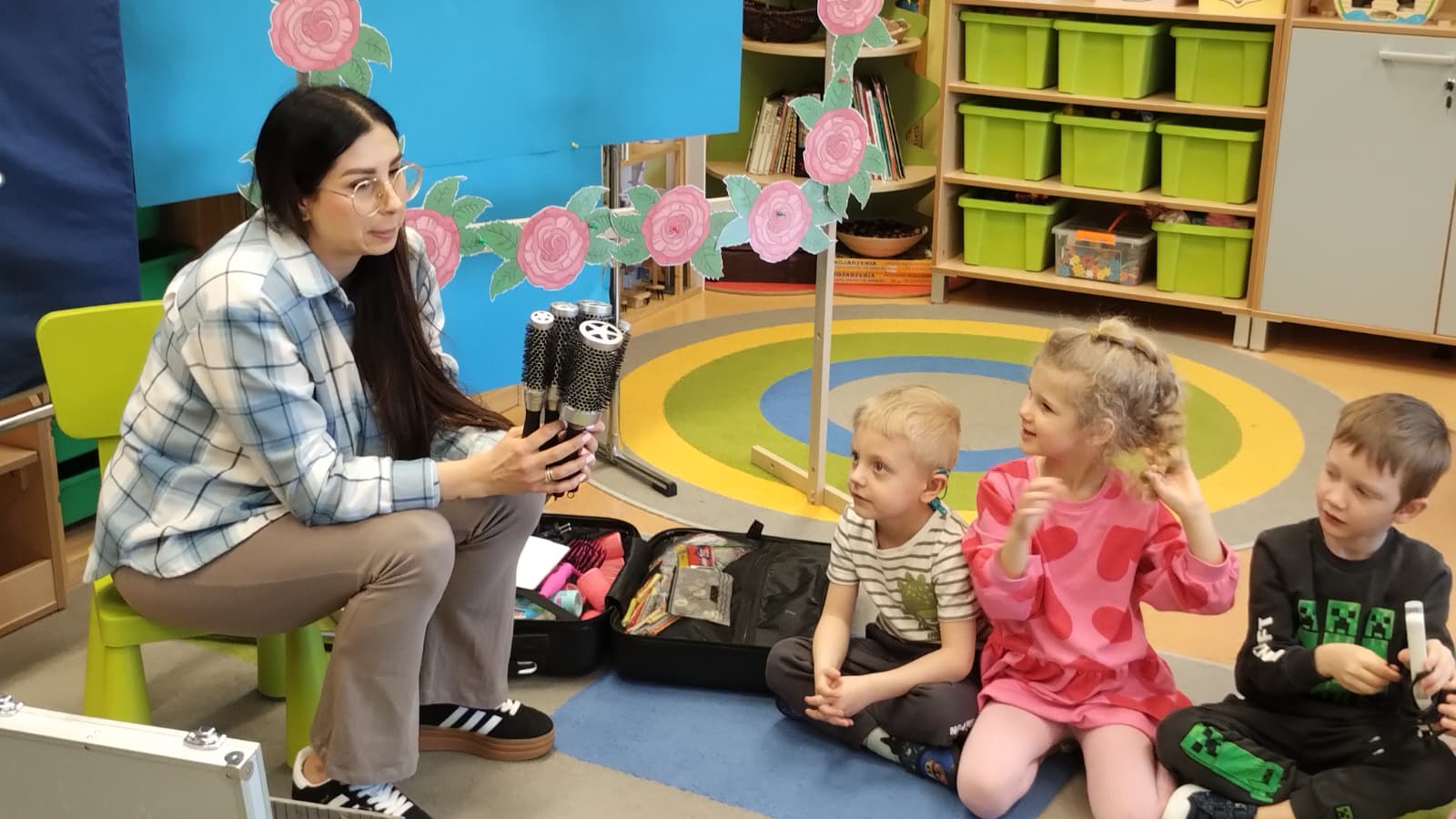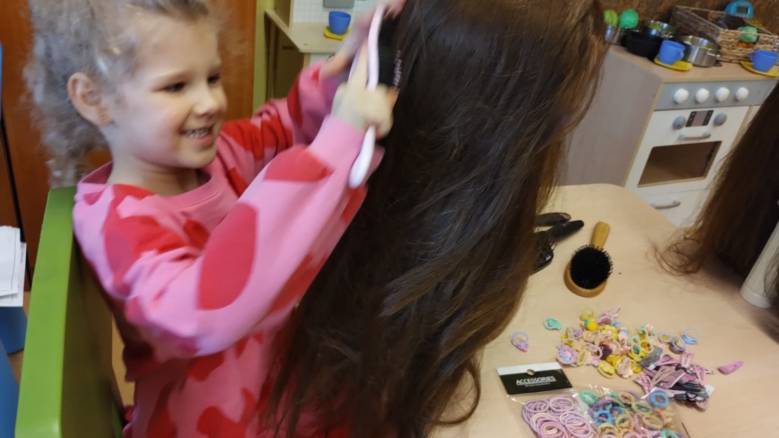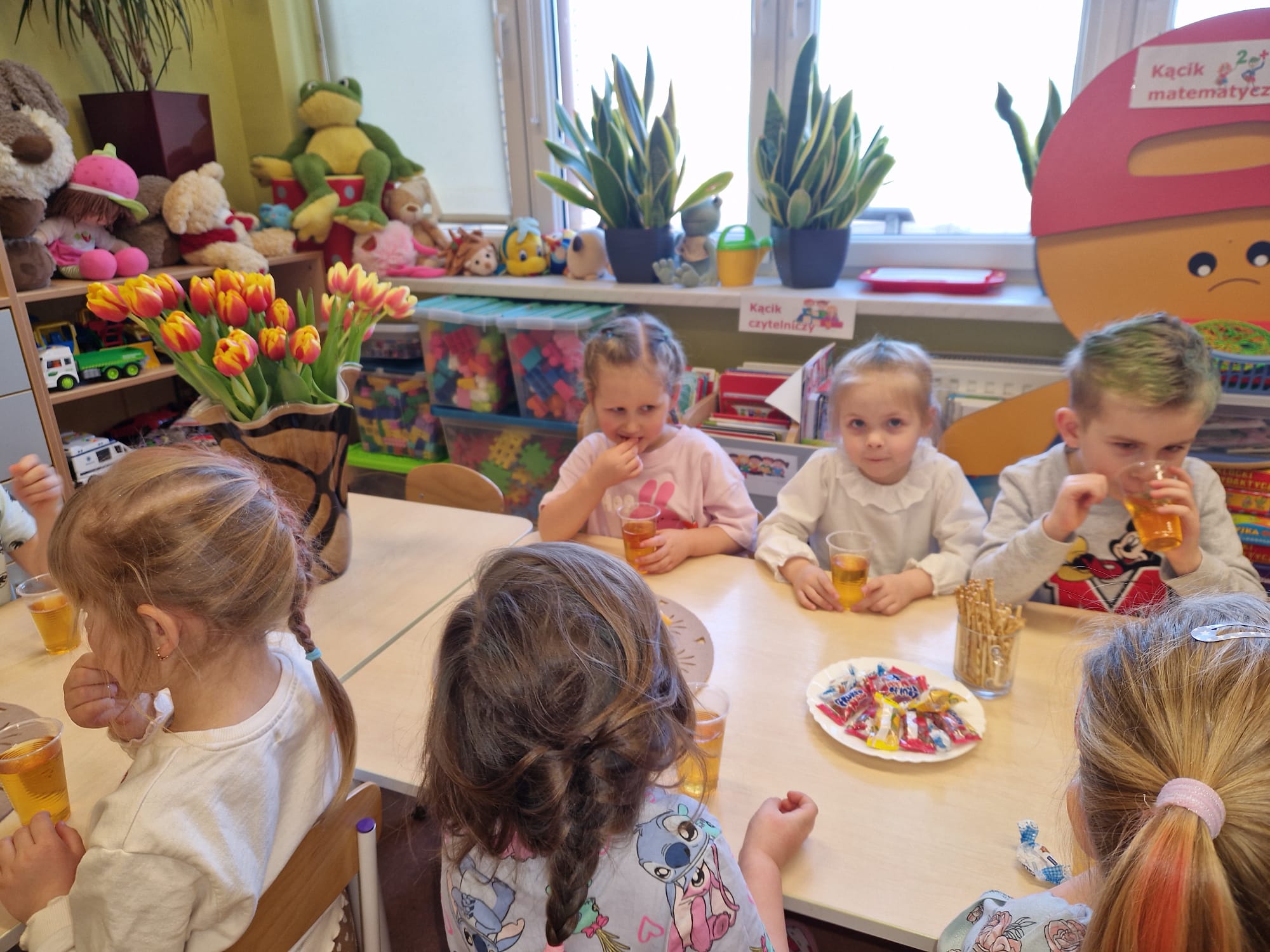 „ …. Być kobietą, być kobietą marzę ciągle będąc dzieckiem …” Która mała dziewczynka nie snuje wyobrażeń o byciu kobietą ??? Chyba każda, a celebrowanie Dnia Kobiet, na pewno pozwoliło przybliżyć te wyobrażenia. Choć Dzień Kobiet kojarzy nam się często z kwiatami, upominkami, których także nie zabrakło, to w grupie X tego dnia, dziewczynki mogły poczuć się, jak w prawdziwym salonie fryzjerskim, a to za sprawą spotkania z panią fryzjerką. Dnia 9. 03. 2026 odwiedziła nas mama Zuzi - pani Klaudia, której pasją i zawodem jest właśnie fryzjerstwo. I to dzięki pani Klaudii, dziewczynki mogły poczuć się tak wyjątkowo. Zanim jednak to nastąpiło, przedszkolaki miały wyjątkową okazję poznać zawód fryzjera! Podczas tej niezwykłej wizyty dzieci dowiedziały się, na czym polega praca fryzjera, jakie narzędzia są niezbędne w salonie fryzjerskim oraz jak prawidłowo dbać o włosy. Największą atrakcją spotkania był pokaz stylizacji fryzur, w którym modelkami zostały nasze dziewczynki oraz chłopcy. Dzieci z zaciekawieniem obserwowały, jak pani Klaudia - tworzy piękne upięcia, warkocze i loki, wykorzystując profesjonalne narzędzia. Same też mogły tworzyć fryzury na profesjonalnym manekinie fryzjerskim. Nie zabrakło również rozmów o różnych fryzjerskich trikach i porad na temat pielęgnacji włosów. Niespodzianka również czekała na chłopców …. „ kolorowy trik” na włosach. To spotkanie było nie tylko świetną zabawą, ale też cenną lekcją o jednym z ciekawszych, artystycznych zawodów. Kto wie, może wśród naszych przedszkolaków rośnie przyszła mistrzyni lub mistrz fryzjerstwa? Serdecznie dziękujemy naszemu gościowi za wizytę, za suuuper zabawę, wystrzałowe fryzury i poświęcony czas. Czekamy na kolejne inspirujące spotkania z naszymi rodzicami! A po obiadku nastąpił ciąg dalszy świętowania Dnia Kobiet w grupie X. Chłopcy wręczyli dziewczynkom upominki, po czym dzieci wspólnie rozpoczęły biesiadowanie przy słodkościach, o które zatroszczyli się niezawodni rodzice naszych przedszkolaków, za co serdecznie dziękujemy. To był naprawdę bardzo radosny, wypełniony wzajemnym szacunkiem i życzliwością dzień.