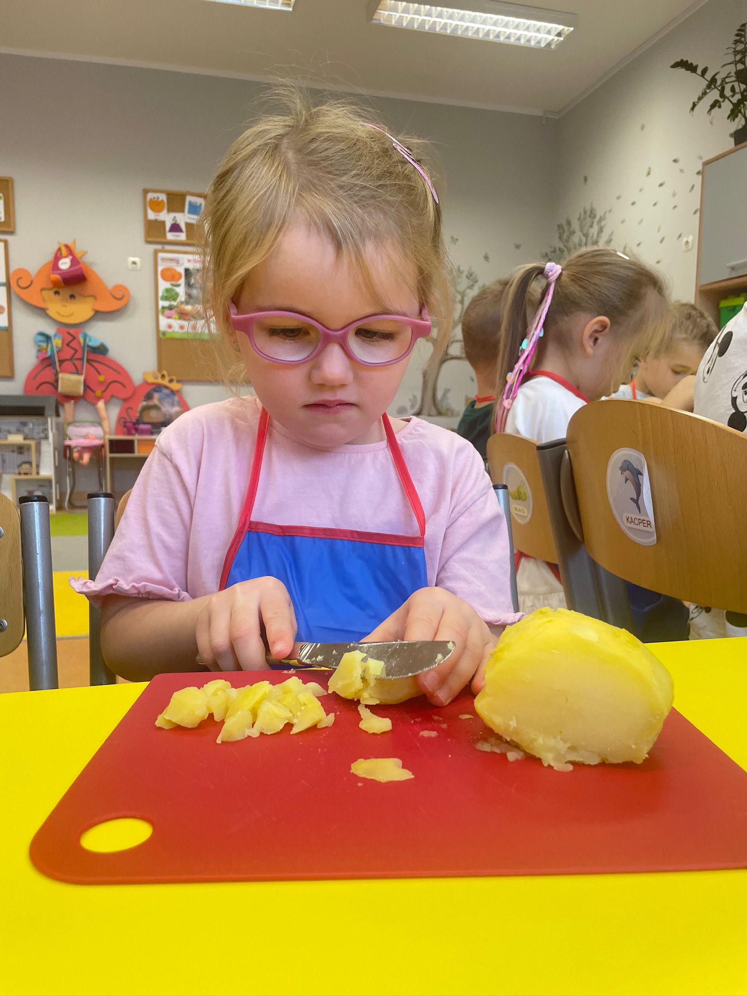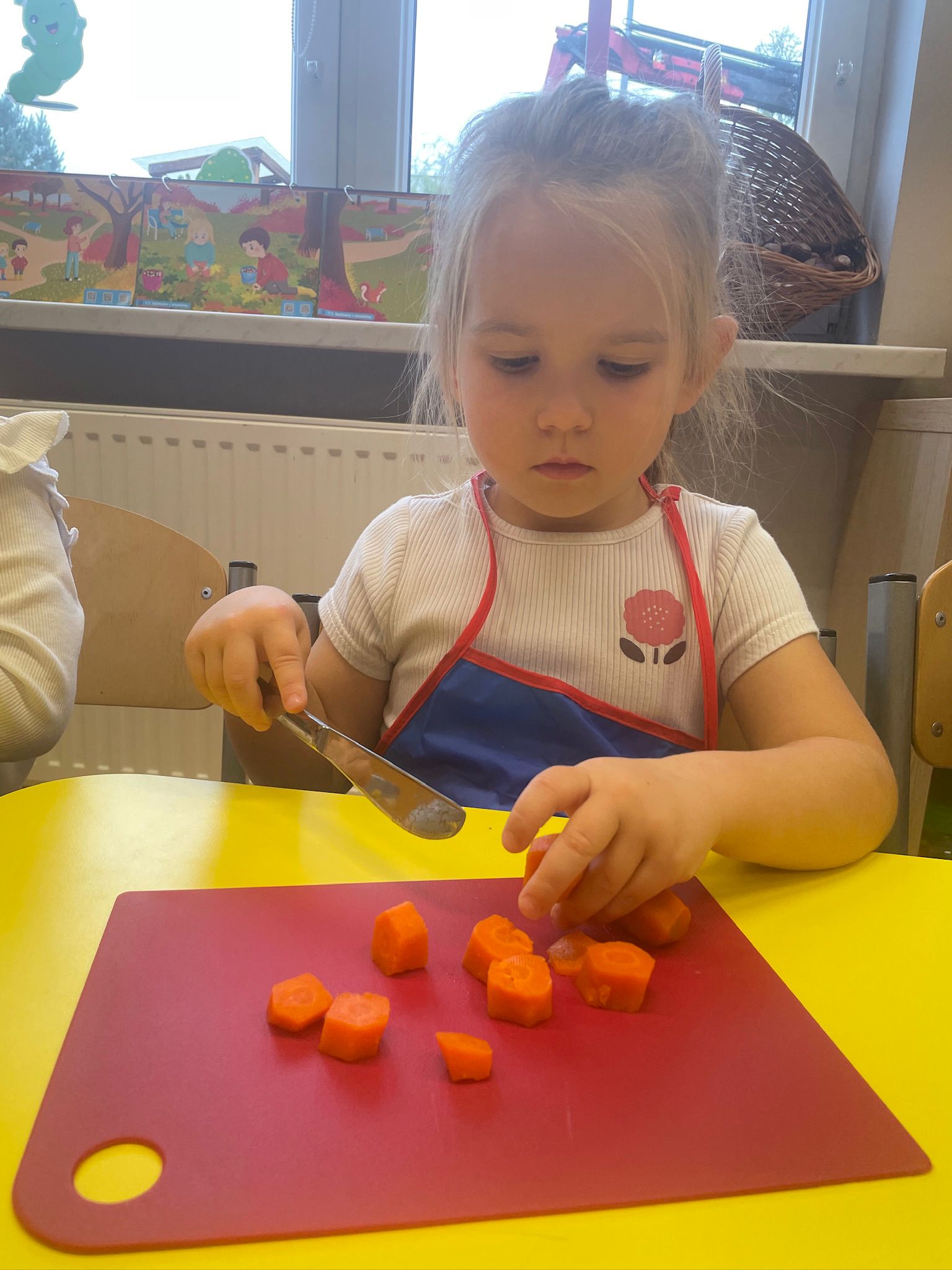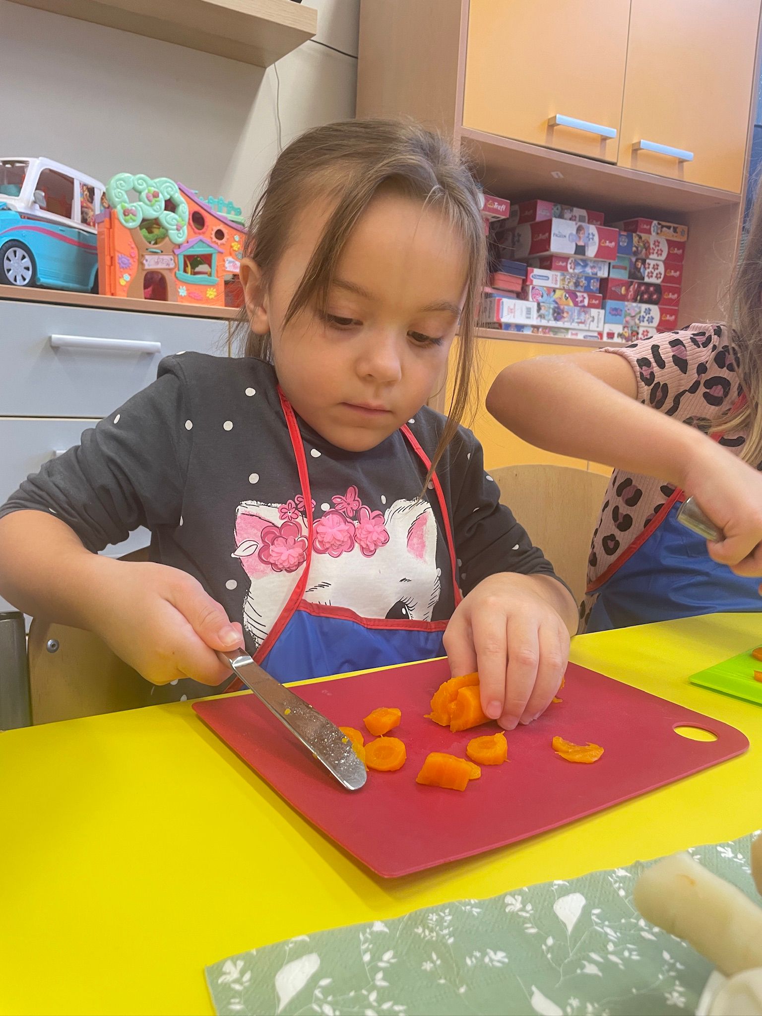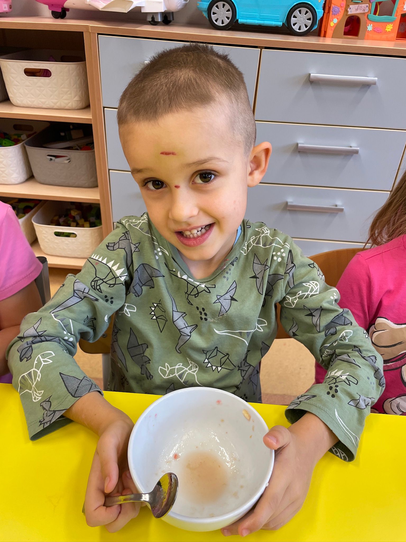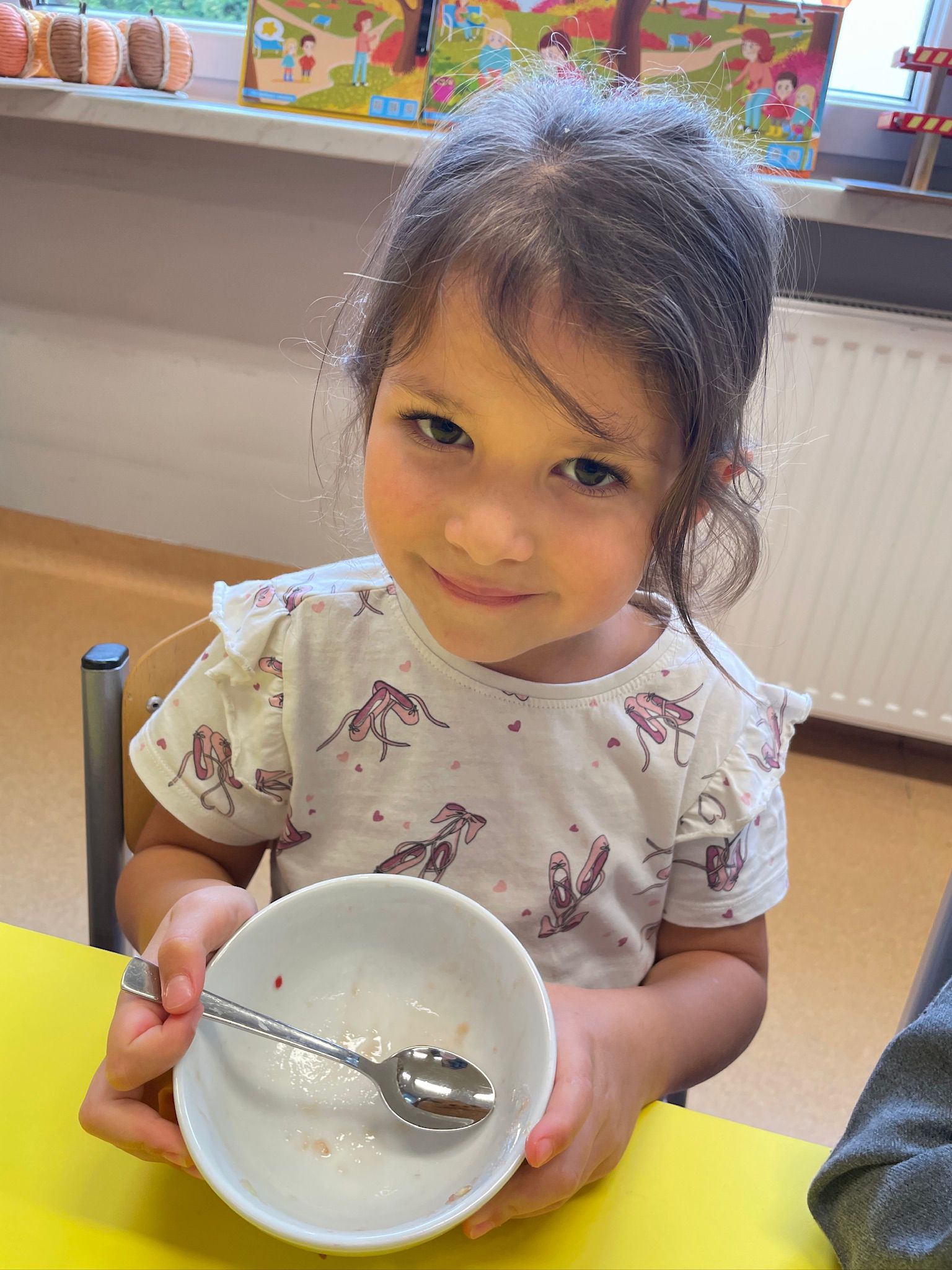 Jesień wielu kojarzy się z deszczową pogodą i szarugą. Ale w naszym przedszkolu udowodniliśmy już wiele razy, że ta pora roku potrafi być również niezwykle kolorowa. A co, jeśli kolory miałyby również smak i zapach? Realizując projekt edukacyjny „Smaki jesieni” , podczas jesiennych atrakcji kulinarnych w gr. XI przedszkolaki sprawdziły, że kolorowe warzywa i owoce, również te sezonowe, smakują i pachną wyśmienicie. Szczególnie jeśli się je ze sobą połączy. Wszyscy podkreślaliśmy walory zdrowotne owoców i warzyw. W ten oto sposób powstały zdrowe sałatki pełne pięknych barw, które przedszkolaki mogły samodzielnie spałaszować.