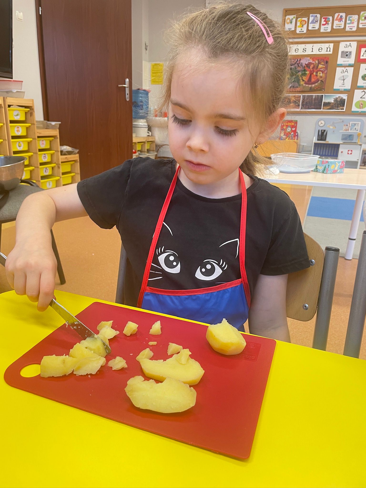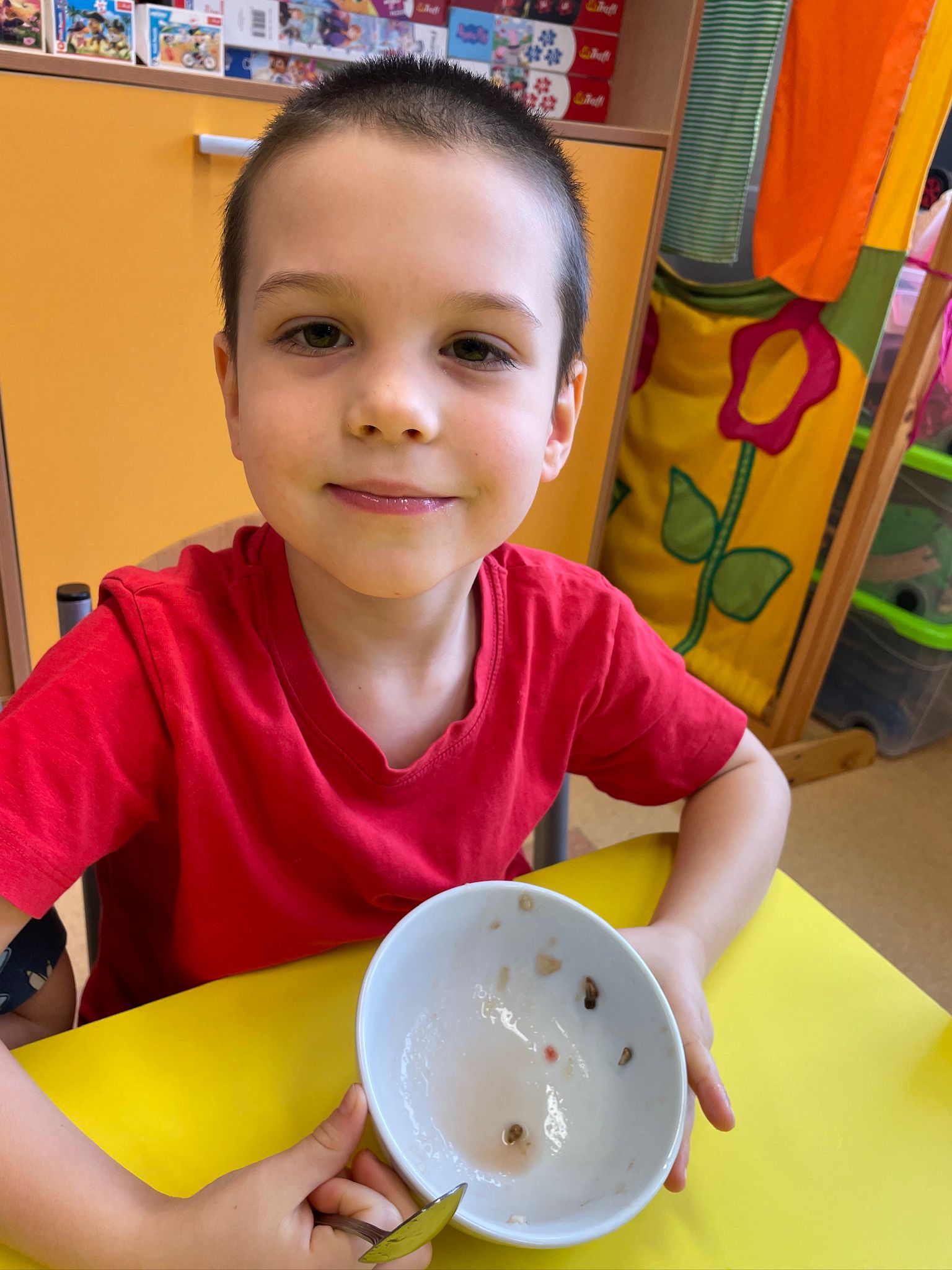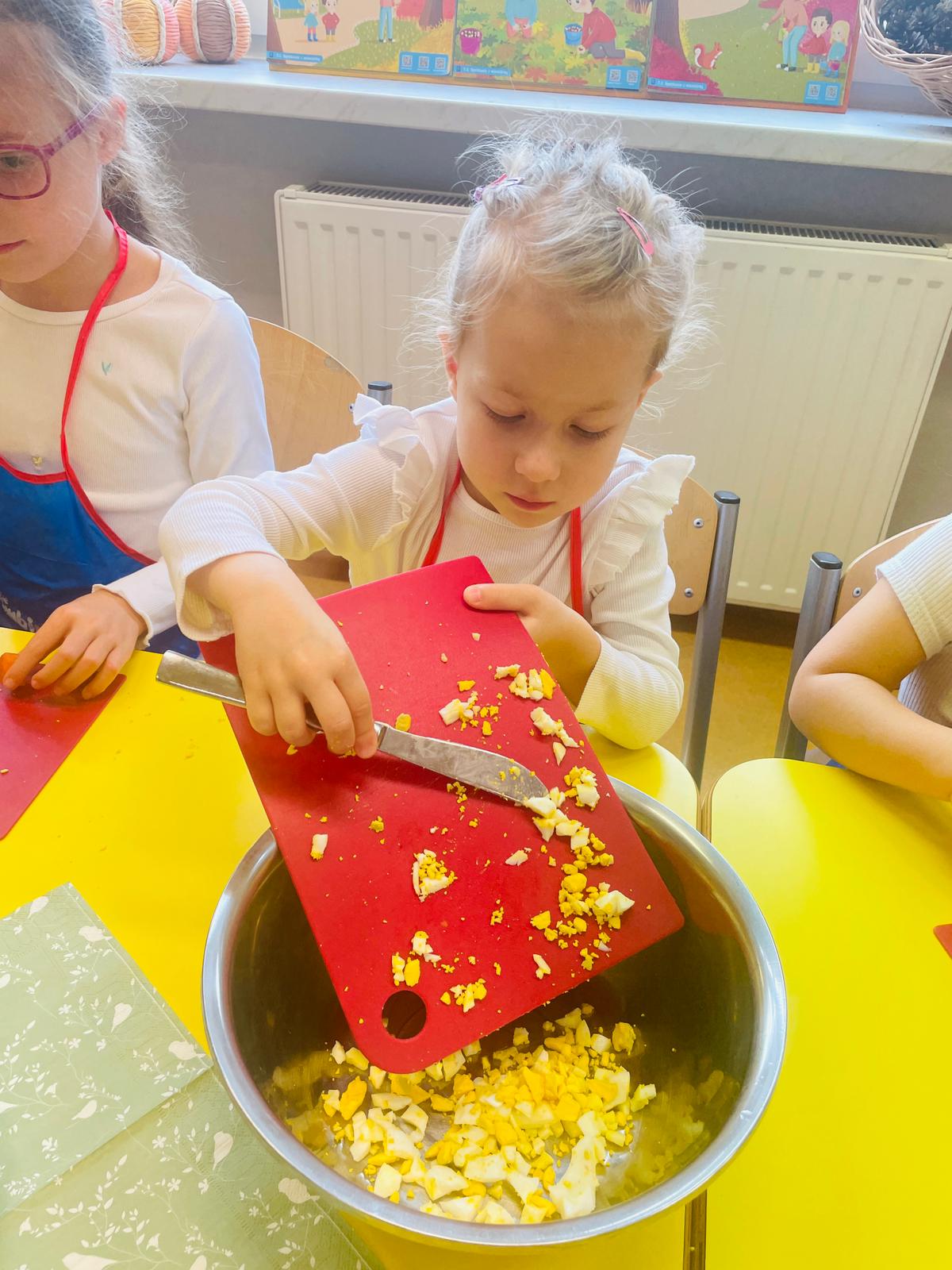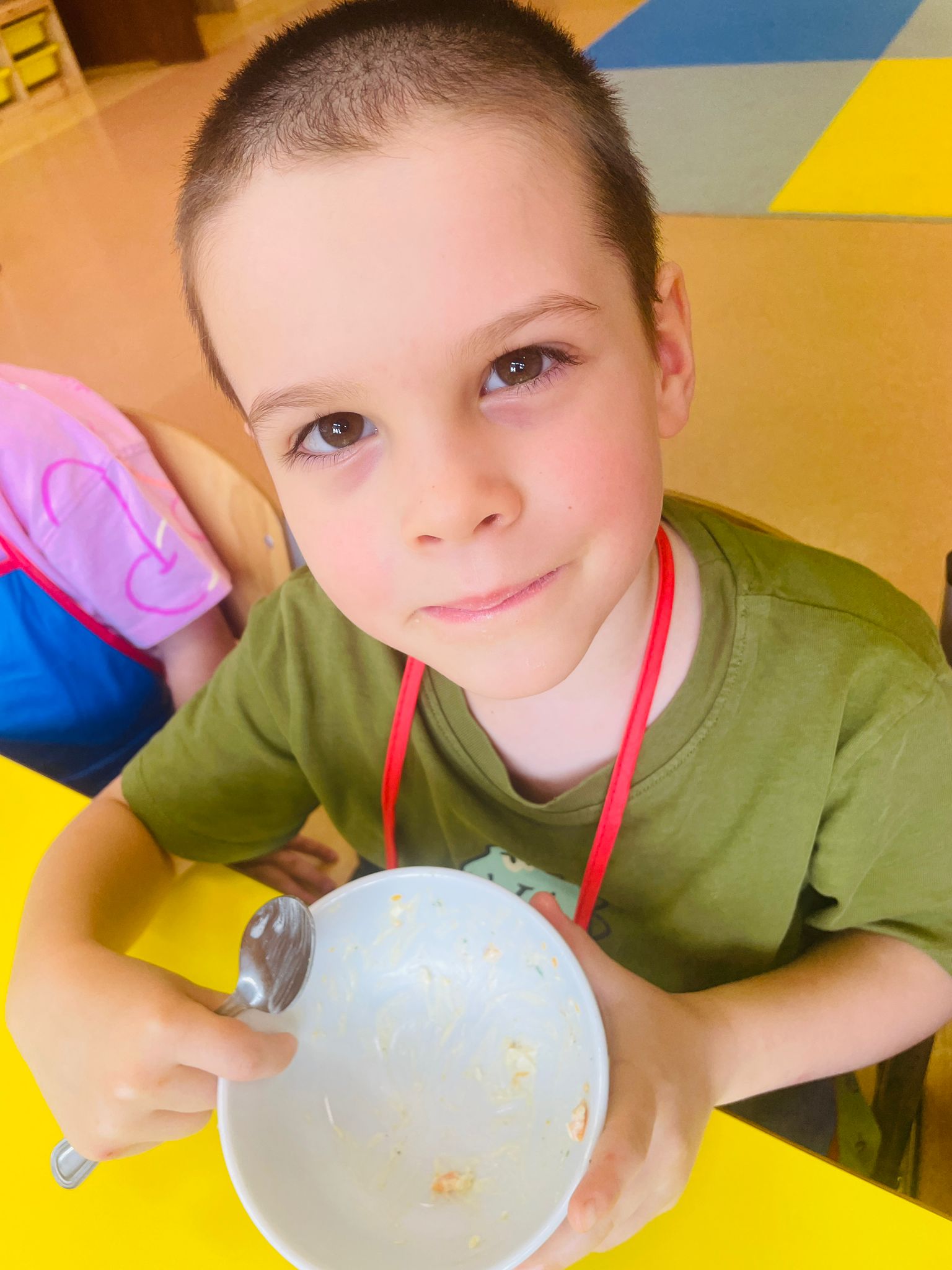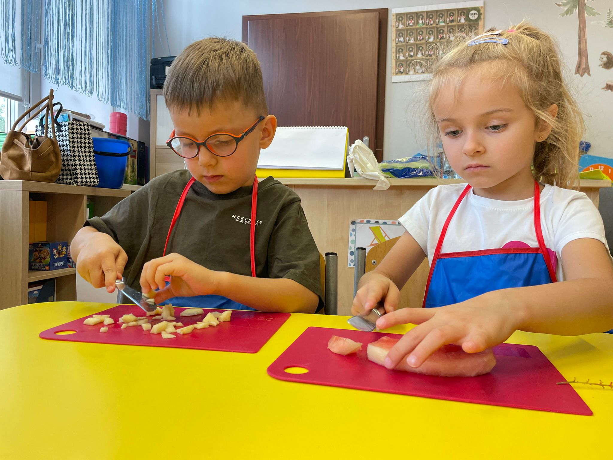 Jesień wielu kojarzy się z deszczową pogodą i szarugą. Ale w naszym przedszkolu udowodniliśmy już wiele razy, że ta pora roku potrafi być również niezwykle kolorowa. A co, jeśli kolory miałyby również smak i zapach? Realizując projekt edukacyjny „Smaki jesieni” , podczas jesiennych atrakcji kulinarnych w gr. XI przedszkolaki sprawdziły, że kolorowe warzywa i owoce, również te sezonowe, smakują i pachną wyśmienicie. Szczególnie jeśli się je ze sobą połączy. Wszyscy podkreślaliśmy walory zdrowotne owoców i warzyw. W ten oto sposób powstały zdrowe sałatki pełne pięknych barw, które przedszkolaki mogły samodzielnie spałaszować.