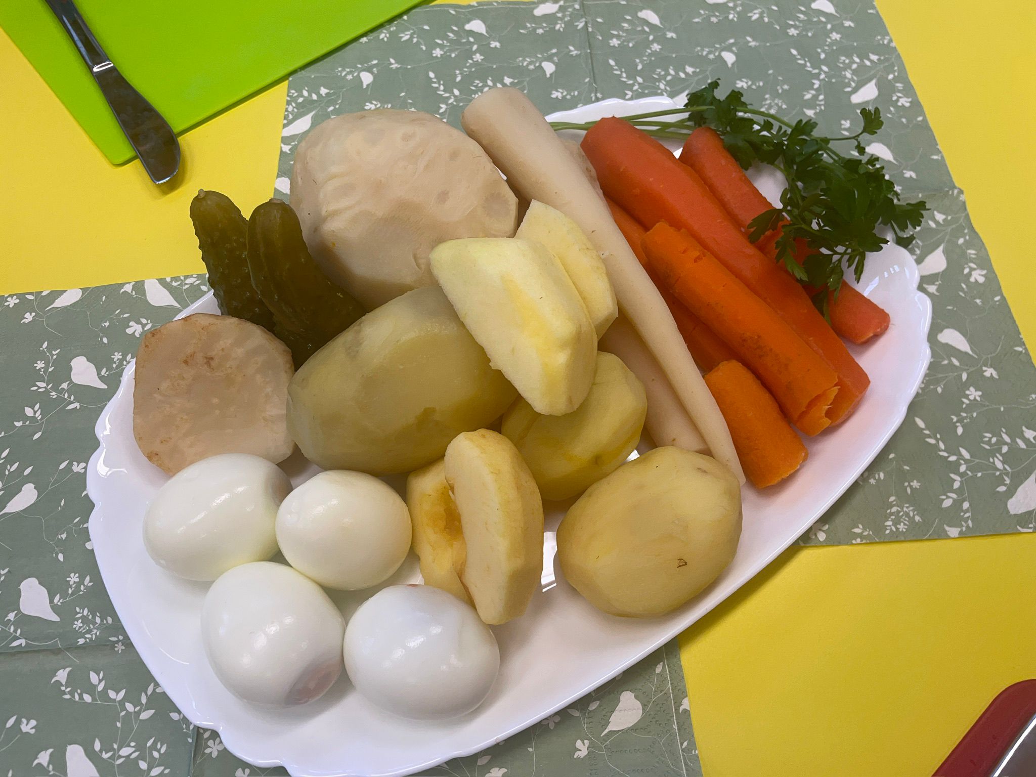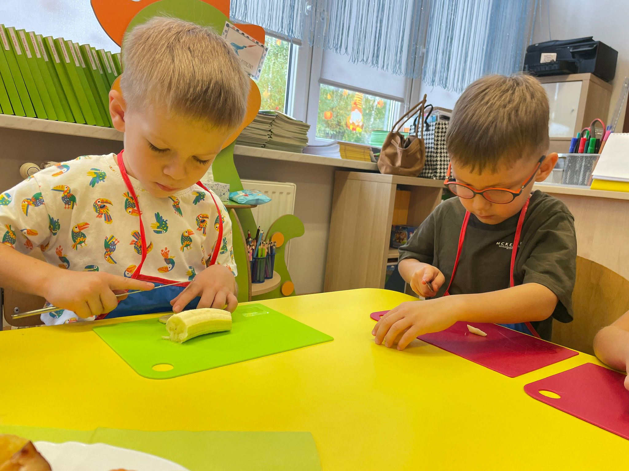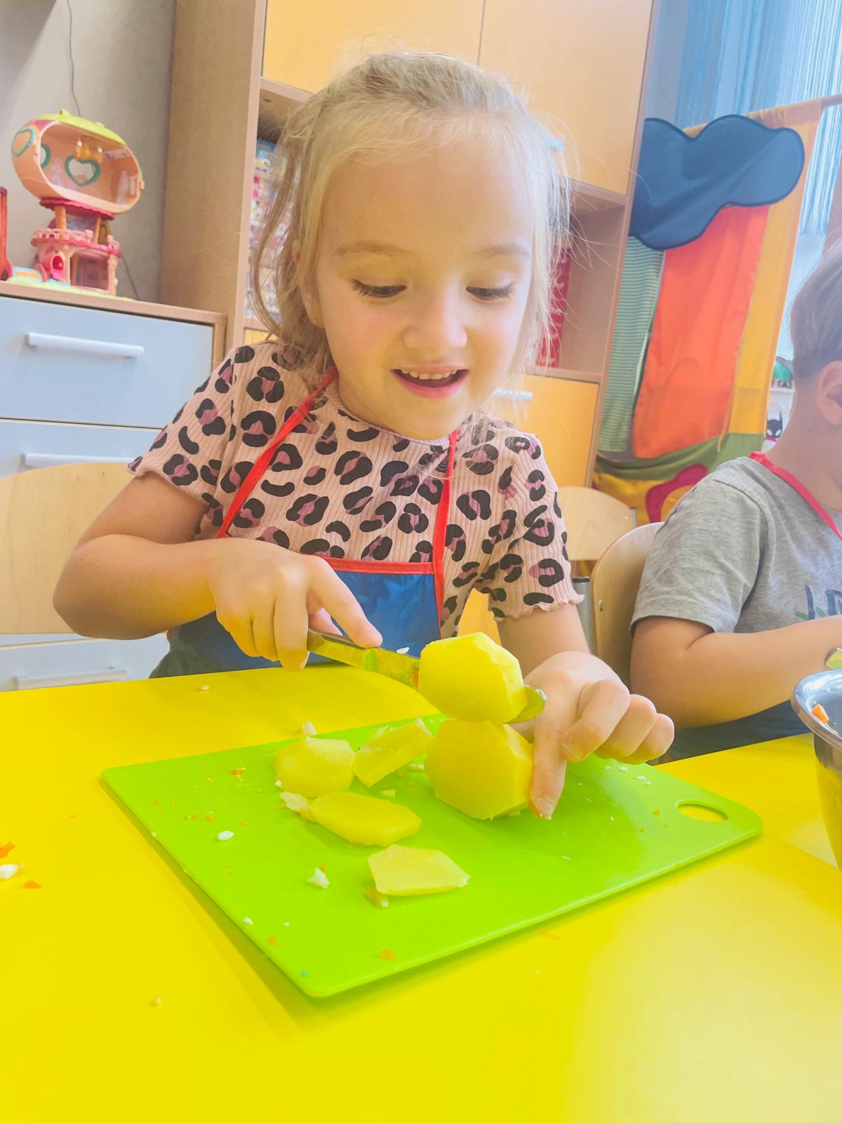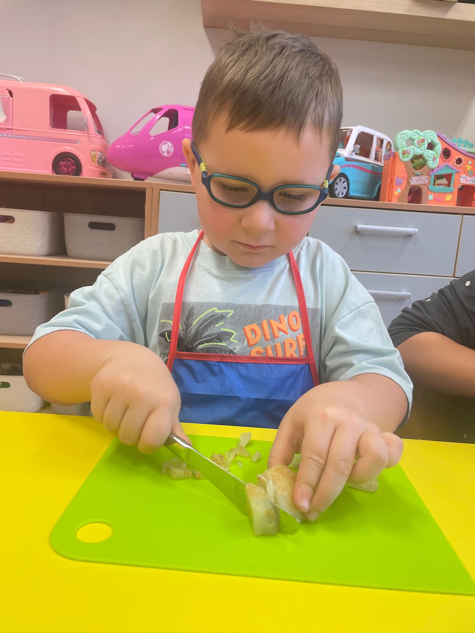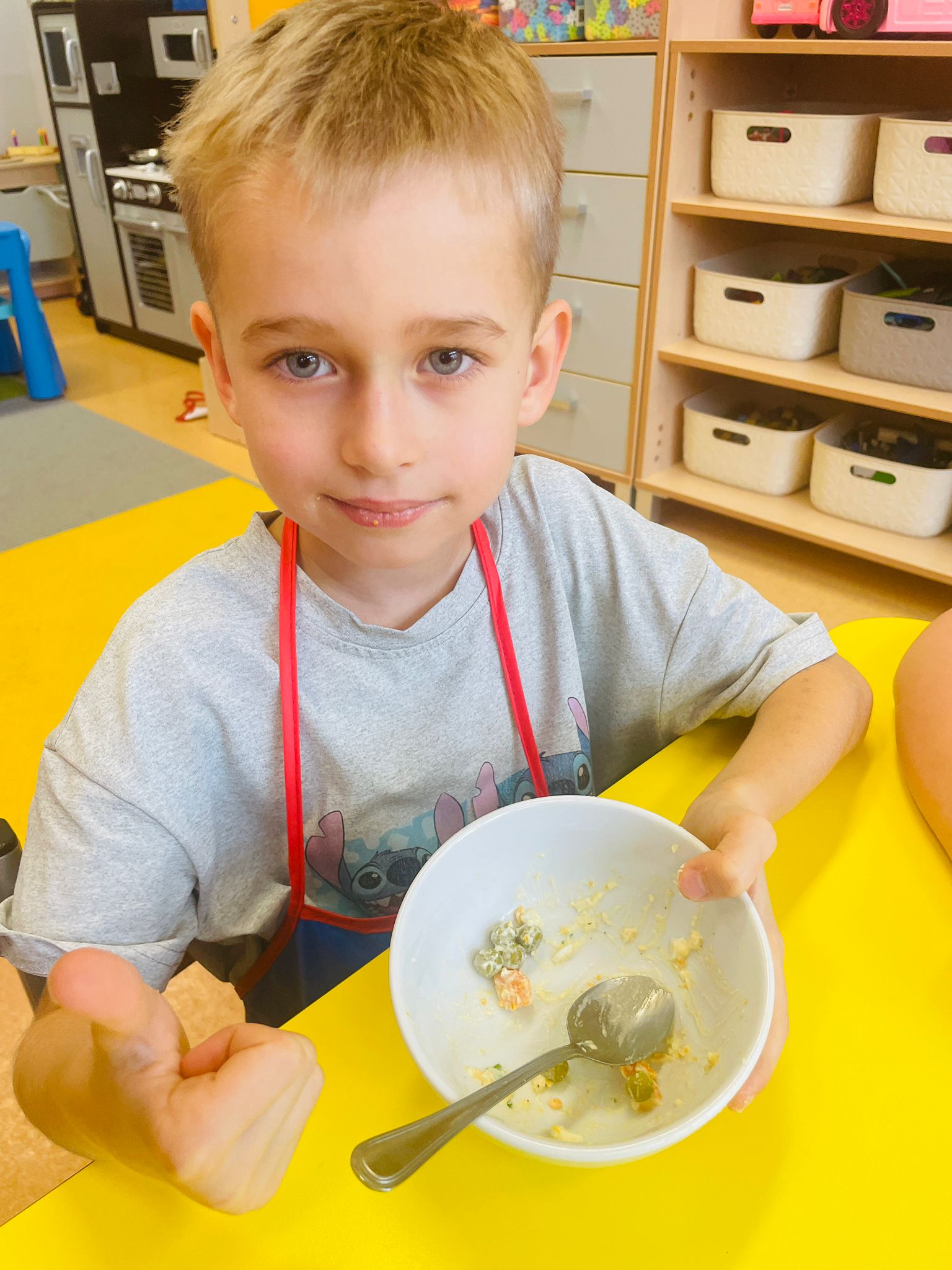 Jesień wielu kojarzy się z deszczową pogodą i szarugą. Ale w naszym przedszkolu udowodniliśmy już wiele razy, że ta pora roku potrafi być również niezwykle kolorowa. A co, jeśli kolory miałyby również smak i zapach? Realizując projekt edukacyjny „Smaki jesieni” , podczas jesiennych atrakcji kulinarnych w gr. XI przedszkolaki sprawdziły, że kolorowe warzywa i owoce, również te sezonowe, smakują i pachną wyśmienicie. Szczególnie jeśli się je ze sobą połączy. Wszyscy podkreślaliśmy walory zdrowotne owoców i warzyw. W ten oto sposób powstały zdrowe sałatki pełne pięknych barw, które przedszkolaki mogły samodzielnie spałaszować.