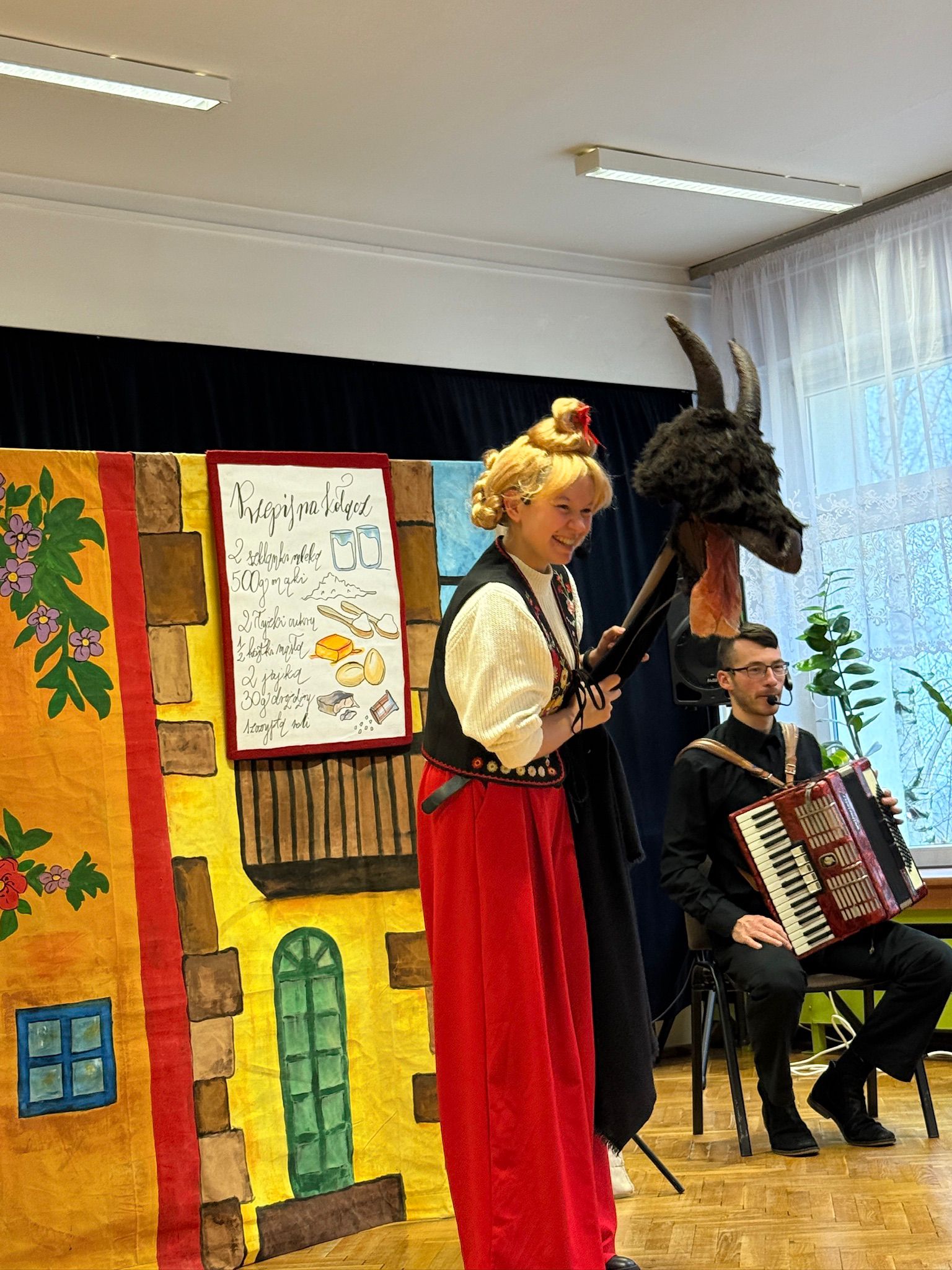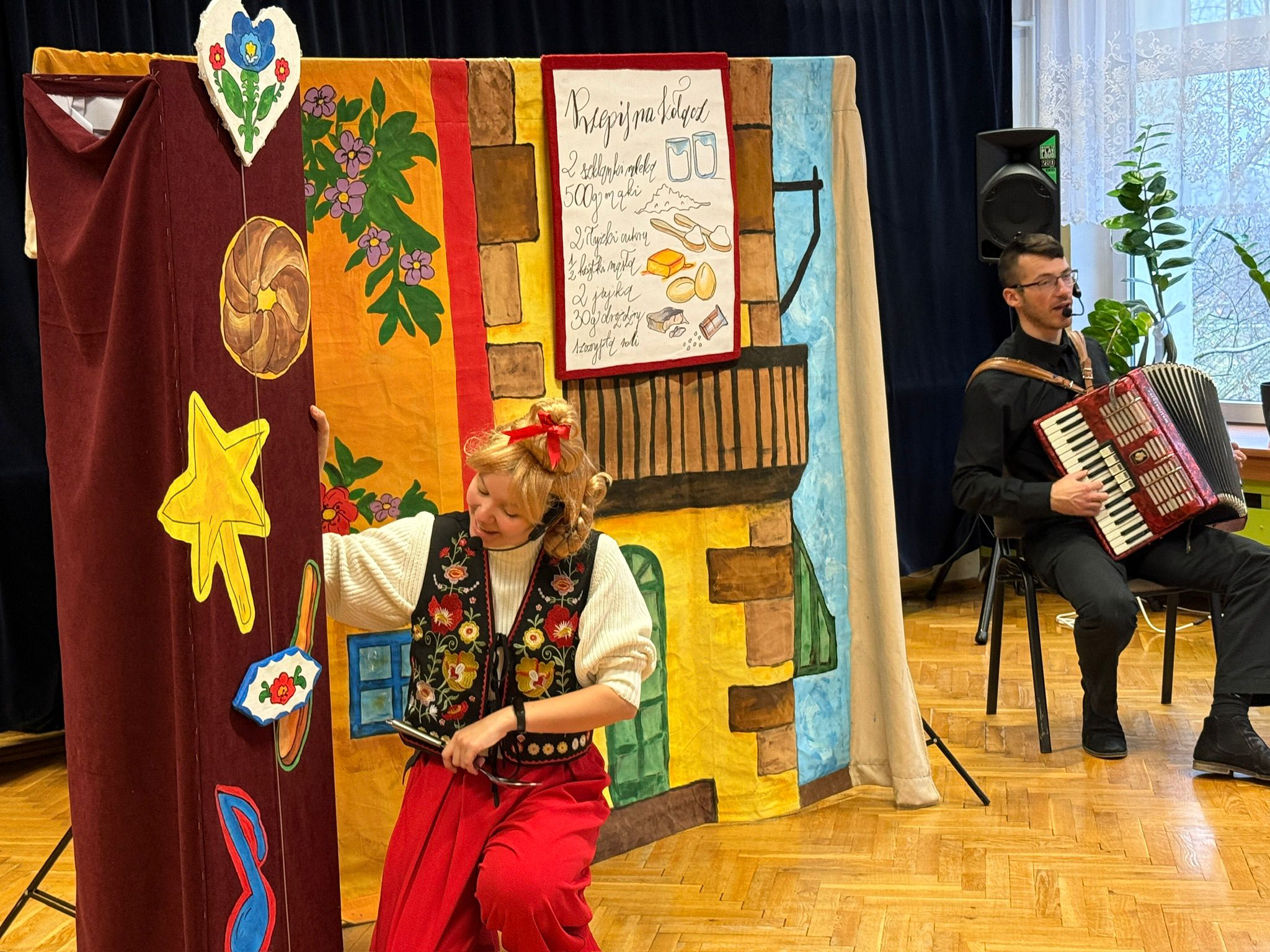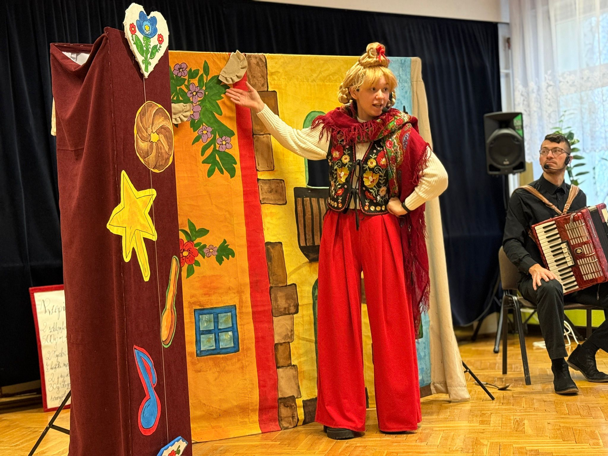 Na początku grudnia odwiedził nas Teatr Kulturka, który zabrał dzieci w barwną, pełną muzyki i uśmiechu podróż po polskich zimowych tradycjach. Jak Polska długa i szeroka — tak i u nas zrobiło się kolorowo, radośnie i bardzo magicznie! Dzieci oglądały pełne humoru scenki, słuchały pięknych melodii oraz poznawały zwyczaje związane z grudniowym kolędowaniem. Było mnóstwo śmiechu, wspólnego śpiewu i fantastycznej zabawy! Takie przedstawienia uczą, bawią i zostawiają cudowne wspomnienia. Ludowe, polskie tradycje i zwyczaje podane z muzyką, dużą dawką energii i radości pozwalającym przekazać kolejnym pokoleniom opowieści, które bawiły naszych przodków od pokoleń. Super spektakl w grudniu? Oczywiście — Teatr Kulturka sprawił, że to był naprawdę magiczny dzień!