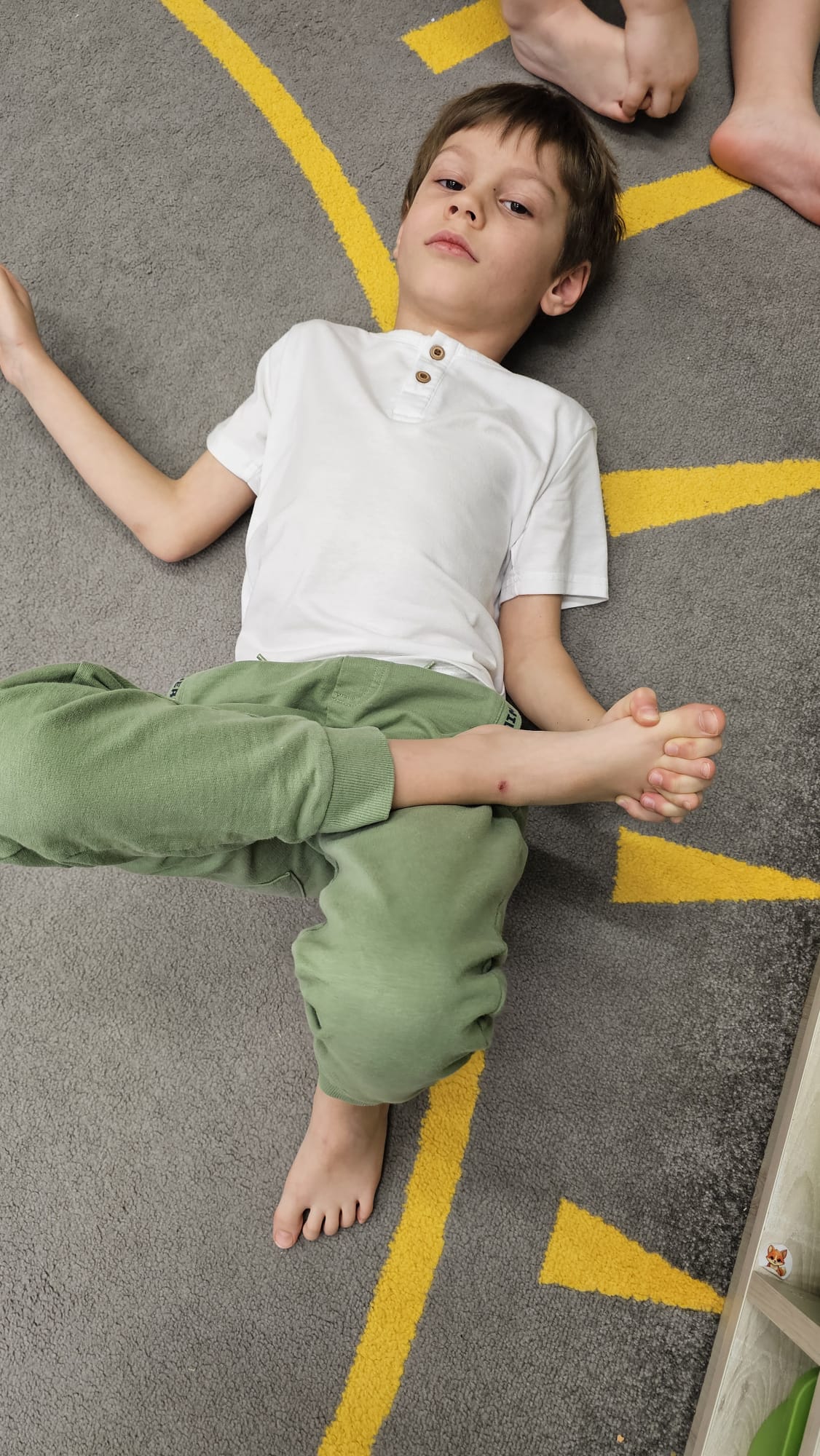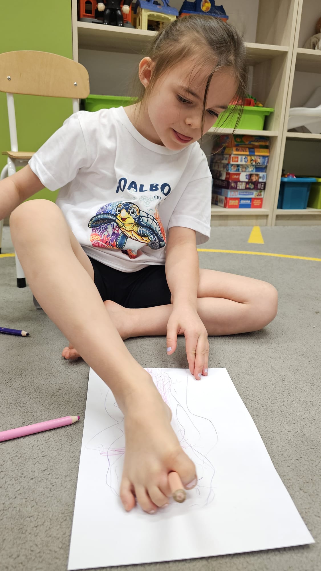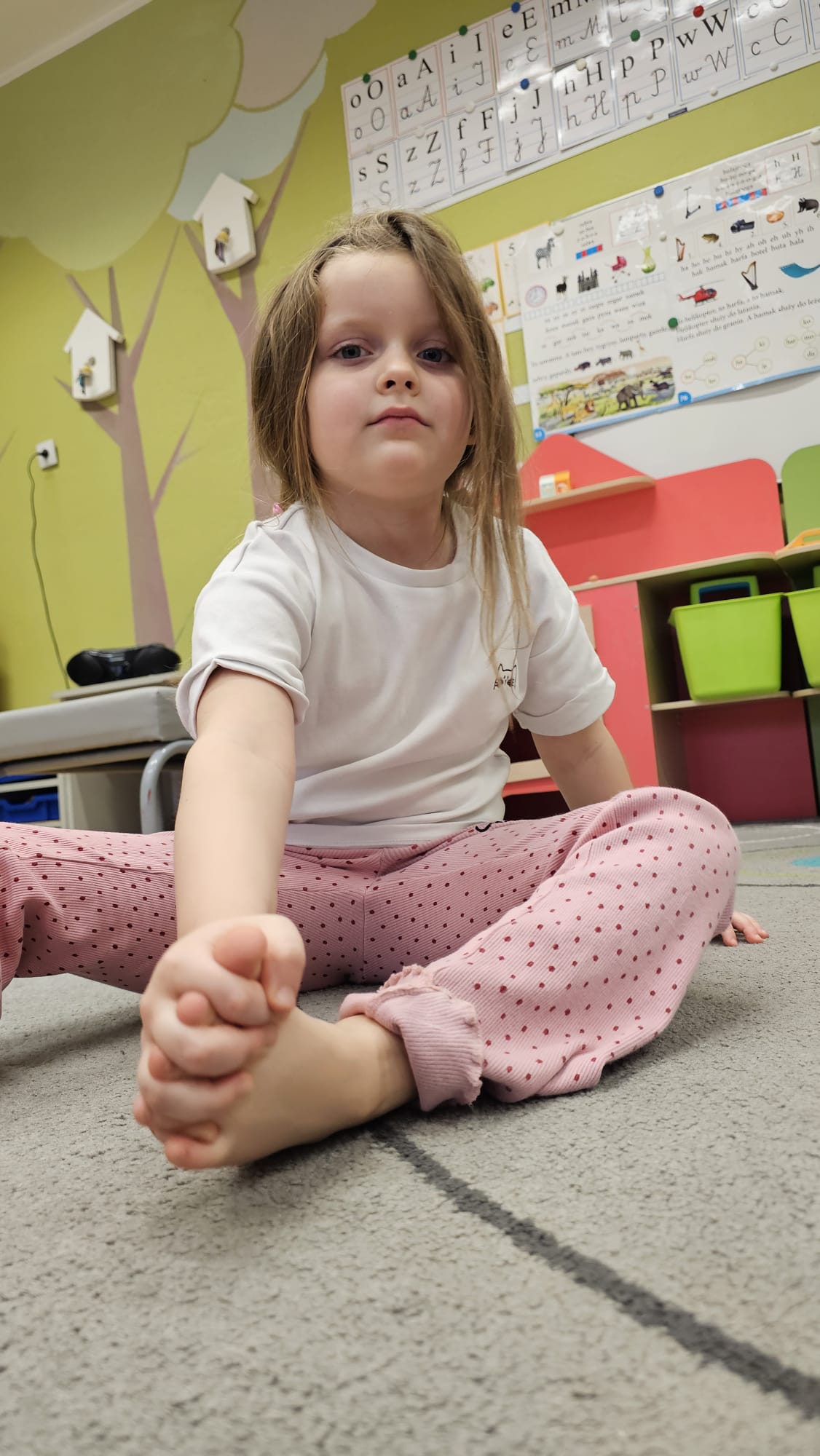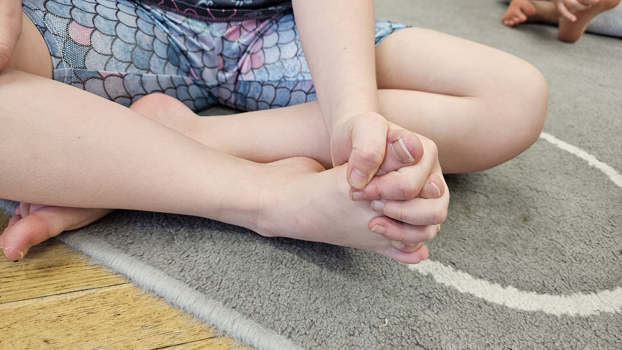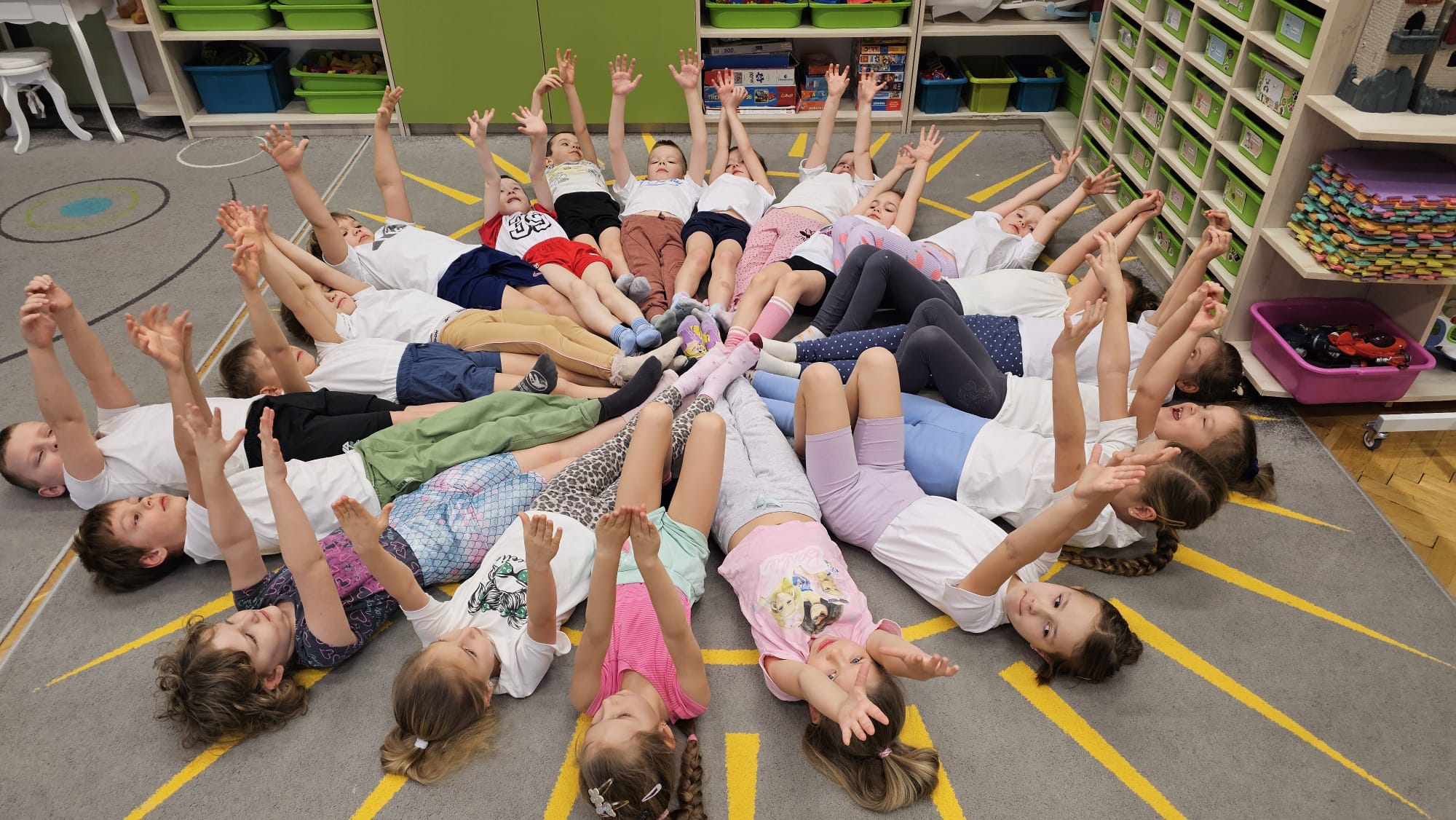 W oczekiwaniu na bardziej sprzyjającą aurę, by bezpiecznie uprawiać Nordic Walking w terenie, grupa IV starszaków nie próżnuje, ale ćwiczy i wzmacnia poszczególne grupy mięśniowe. Tym razem jest to stopa – bardzo ważna część, bo to przecież podstawa całego ciała. To ona jako pierwsza styka się z podłożem i przenosi ciężar na wyższe partie układu ruchu. Prawidłowo wykształcone mięśnie i sklepienia stopy zapewniają amortyzację, stabilność oraz właściwe ustawienie nóg, miednicy i kręgosłupa. Regularne ćwiczenia stóp mają bardzo duże znaczenie w przygotowaniu i prawidłowym uprawianiu Nordic Walkingu, ponieważ stopa stanowi podstawę całego łańcucha ruchu podczas marszu z kijkami. Wzmocnione mięśnie stóp zapewniają lepszą stabilizację i amortyzację, co pozwala na prawidłowe przetaczanie stopy od pięty do palców. Dzięki temu krok staje się dłuższy, bardziej sprężysty i ekonomiczny, a odbicie z palców skuteczniejsze, co bezpośrednio wpływa na tempo marszu i pracę kończyn górnych z kijkami. Dobra sprawność stóp poprawia równowagę i kontrolę postawy, szczególnie na nierównym podłożu, które często występuje podczas marszu w terenie. Zmniejsza to ryzyko przeciążeń stawów skokowych, kolan i kręgosłupa oraz zapobiega urazom. Prawidłowo funkcjonujące sklepienia stopy wspomagają stabilne ustawienie kończyn dolnych i miednicy, co umożliwia zachowanie wyprostowanej sylwetki, aktywnej pracy tułowia i efektywnej współpracy rąk z kijami. W efekcie Nordic Walking staje się bardziej płynny, bezpieczny i korzystny dla całego układu ruchu. Mając to wszystko na uwadze dzieci z ochotą i dużym zaangażowaniem wykonywały zaproponowane im ćwiczenia i zabawy czerpiąc radość oraz satysfakcję.