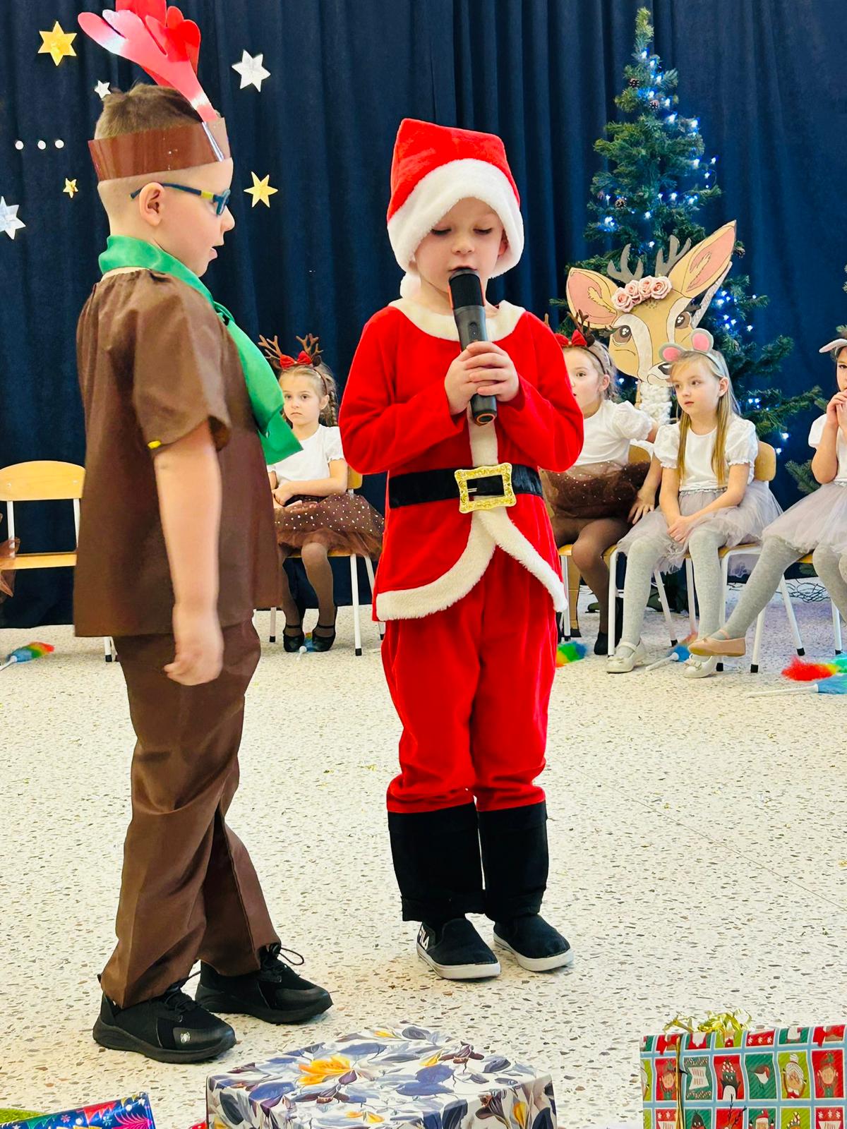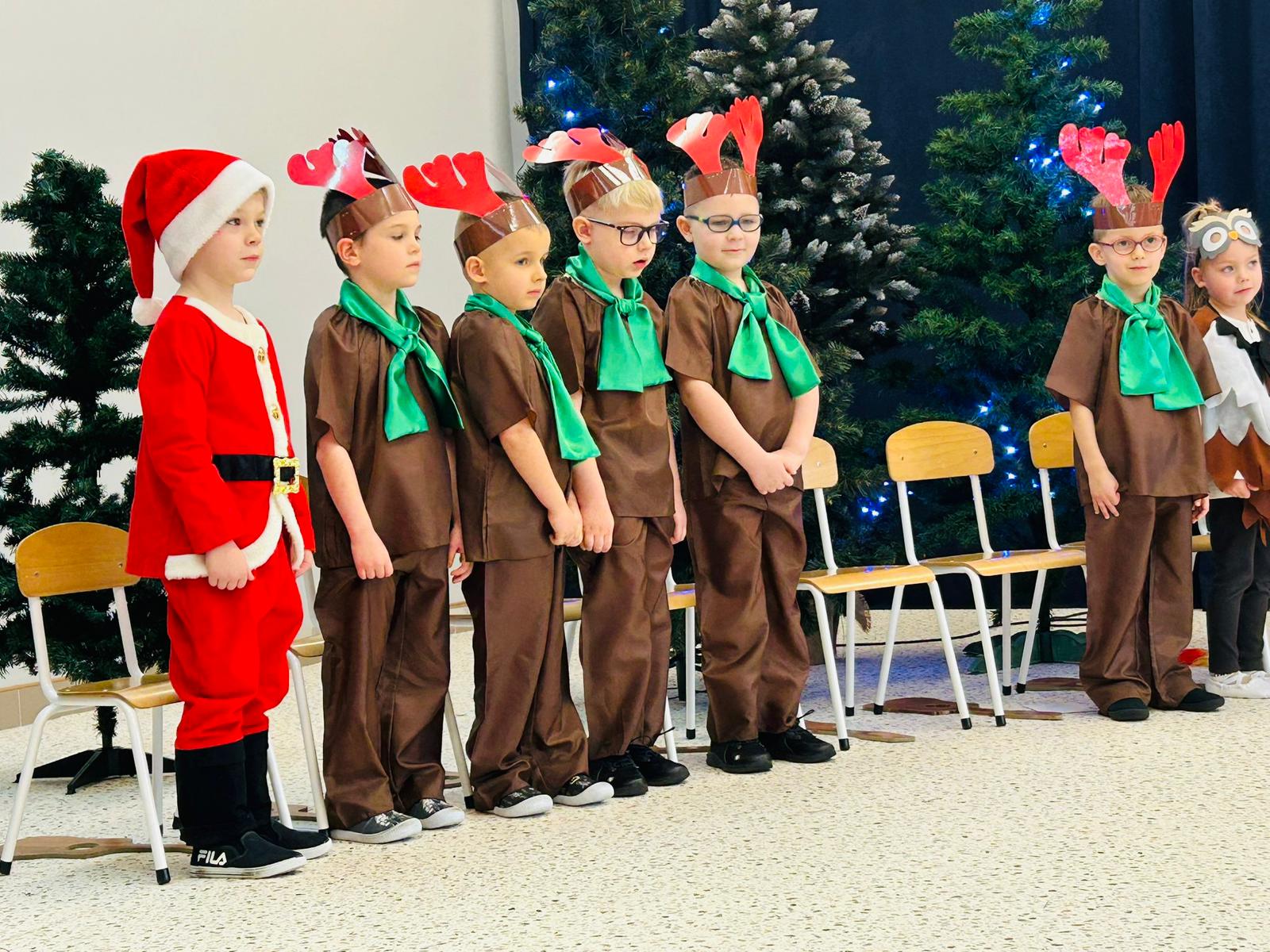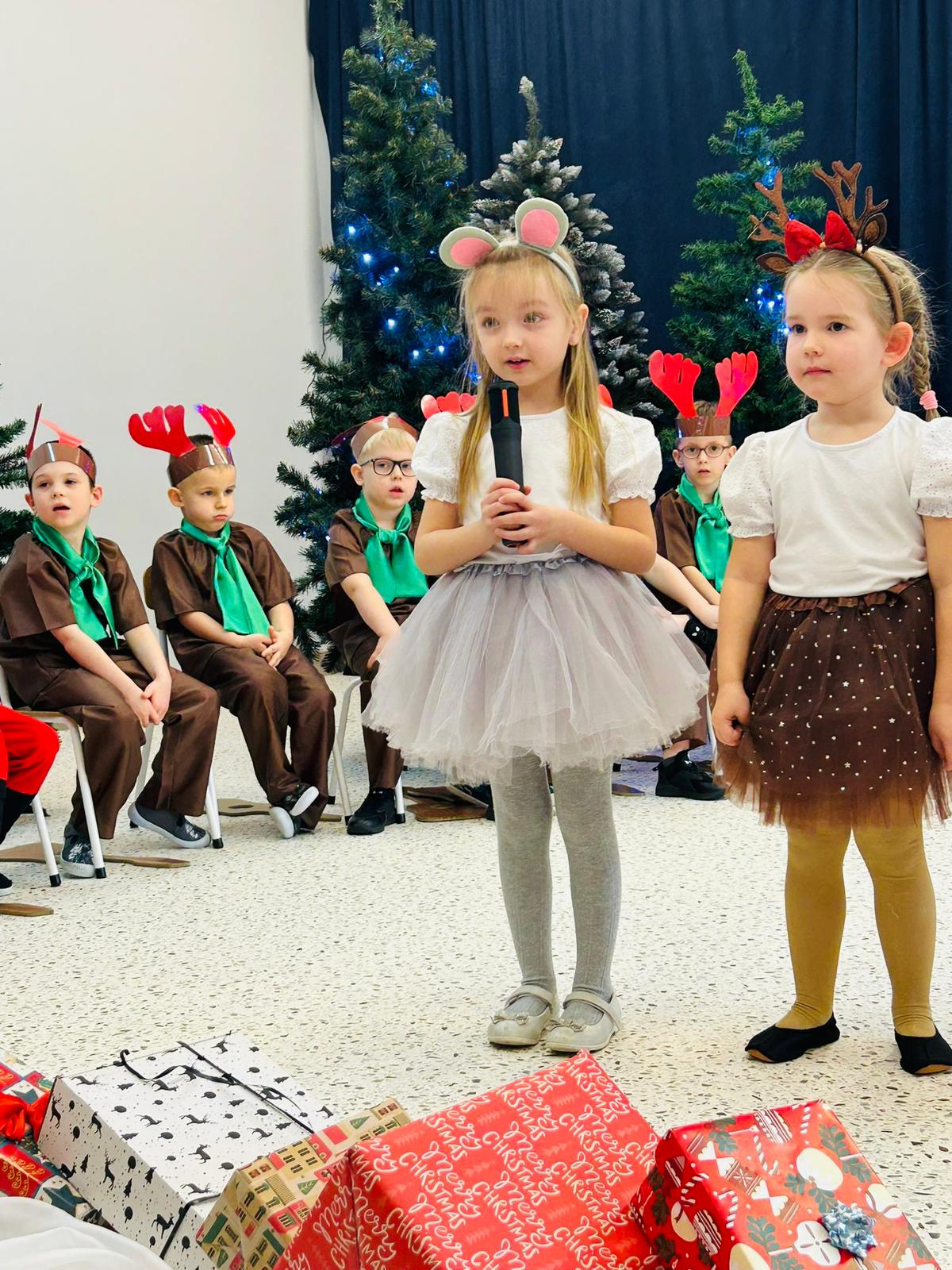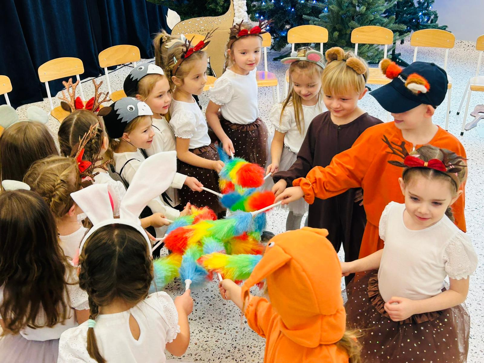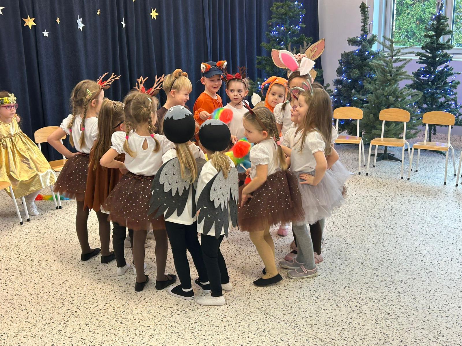 Kolejny raz spotkaliśmy się w rodzinnym gronie by celebrować świąteczny czas. Przedszkolaki z gr. XI ugościli dziś swoich najbliższych i w przedszkolnym przestawieniu przypomniały, co tak naprawdę jest ważne w święta. Dzieci wcieliły się w rolę zwierzątek, które ciężko pracują przygotowując się do świąt. W tym całym zgiełku zapominają o tym, co naprawdę ważne. Mała Gwiazdeczka przypomina im jednak, że istotne są nie smakołyki, prezenty i wytarte kurze, a obecność najbliższych i wspólnie spędzony czas. W tej historii nawet Mikołaj i renifery dołączają do wspólnej zabawy. Po wszystkim przedszkolaki odwiedził prawdziwy Mikołaj, a później dzieci mogły już tylko przytulić się do swoich najbliższych. To był niezwykły czas pełen wzruszeń i uśmiechów.