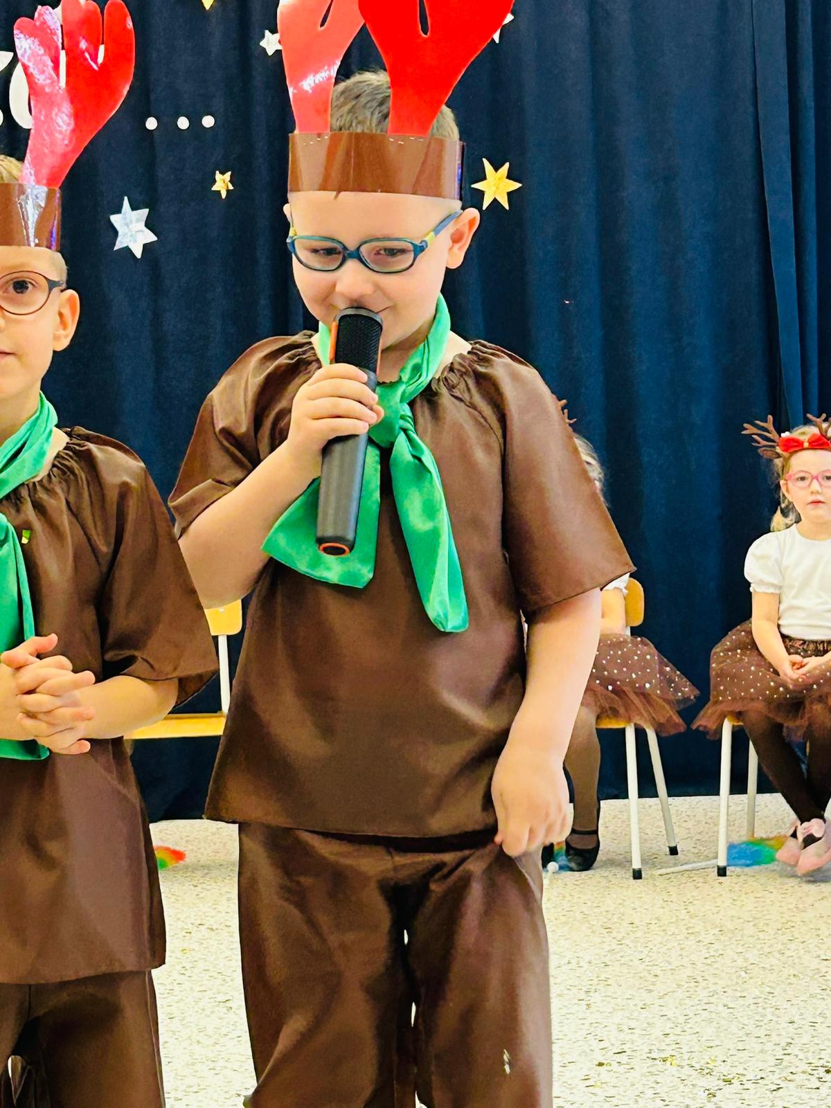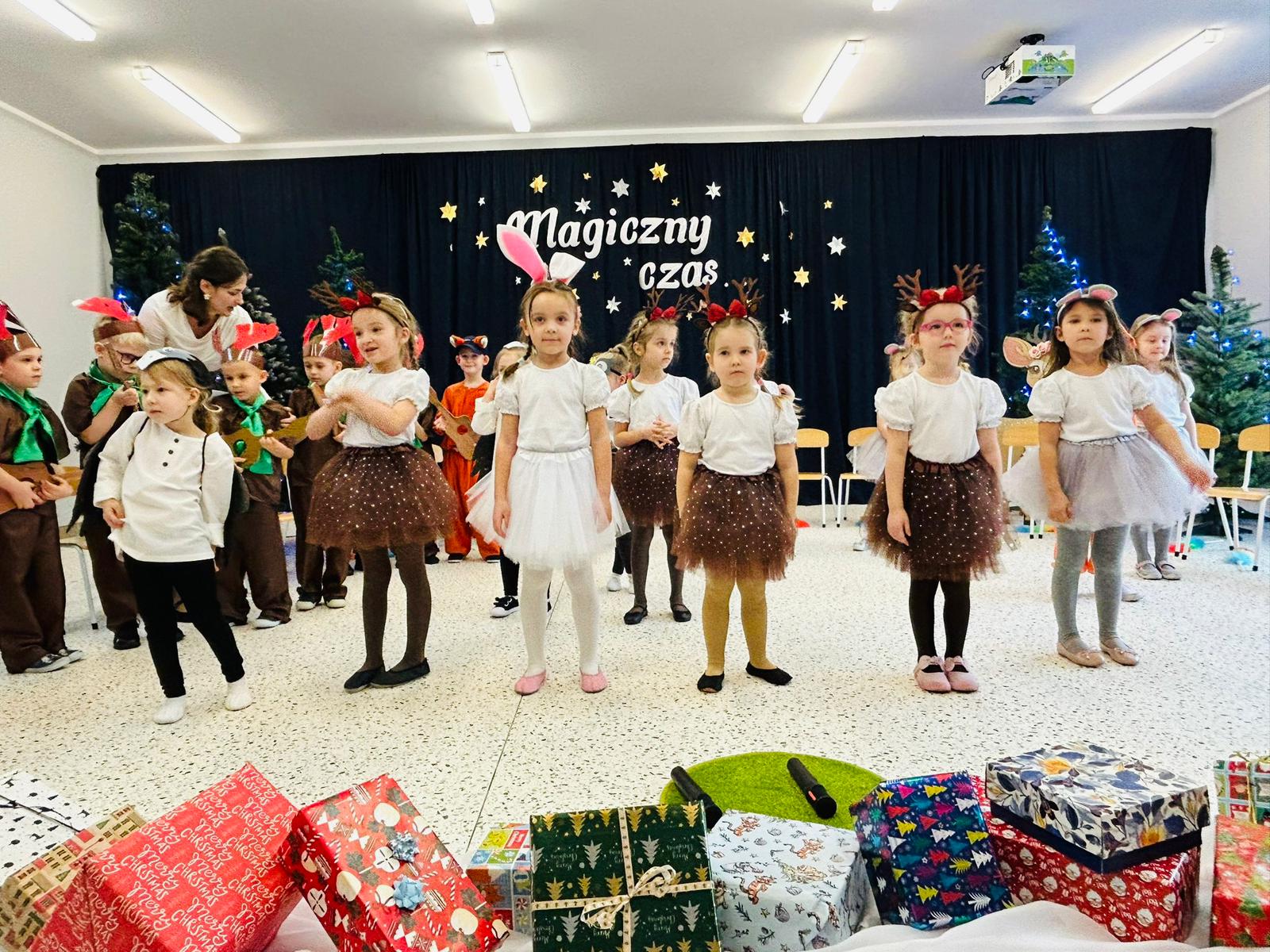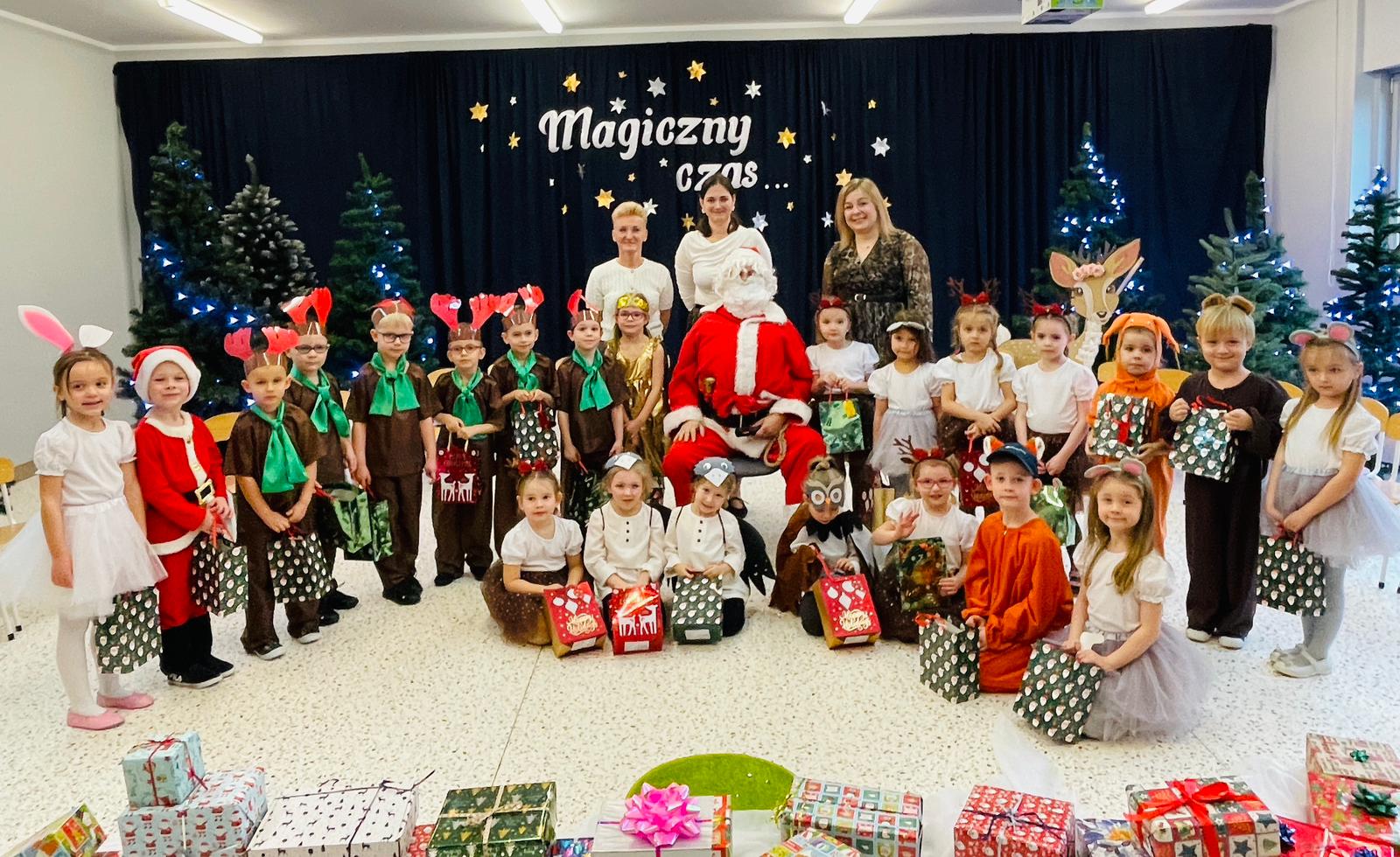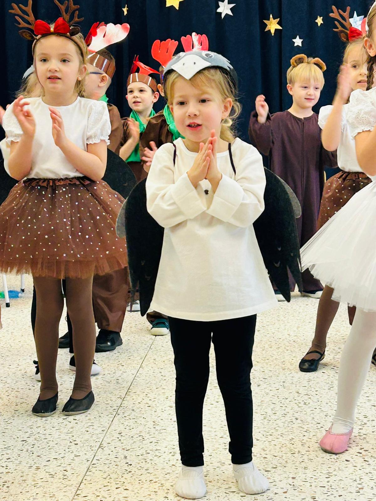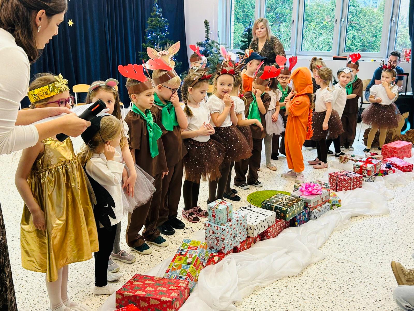 Kolejny raz spotkaliśmy się w rodzinnym gronie by celebrować świąteczny czas. Przedszkolaki z gr. XI ugościli dziś swoich najbliższych i w przedszkolnym przestawieniu przypomniały, co tak naprawdę jest ważne w święta. Dzieci wcieliły się w rolę zwierzątek, które ciężko pracują przygotowując się do świąt. W tym całym zgiełku zapominają o tym, co naprawdę ważne. Mała Gwiazdeczka przypomina im jednak, że istotne są nie smakołyki, prezenty i wytarte kurze, a obecność najbliższych i wspólnie spędzony czas. W tej historii nawet Mikołaj i renifery dołączają do wspólnej zabawy. Po wszystkim przedszkolaki odwiedził prawdziwy Mikołaj, a później dzieci mogły już tylko przytulić się do swoich najbliższych. To był niezwykły czas pełen wzruszeń i uśmiechów.