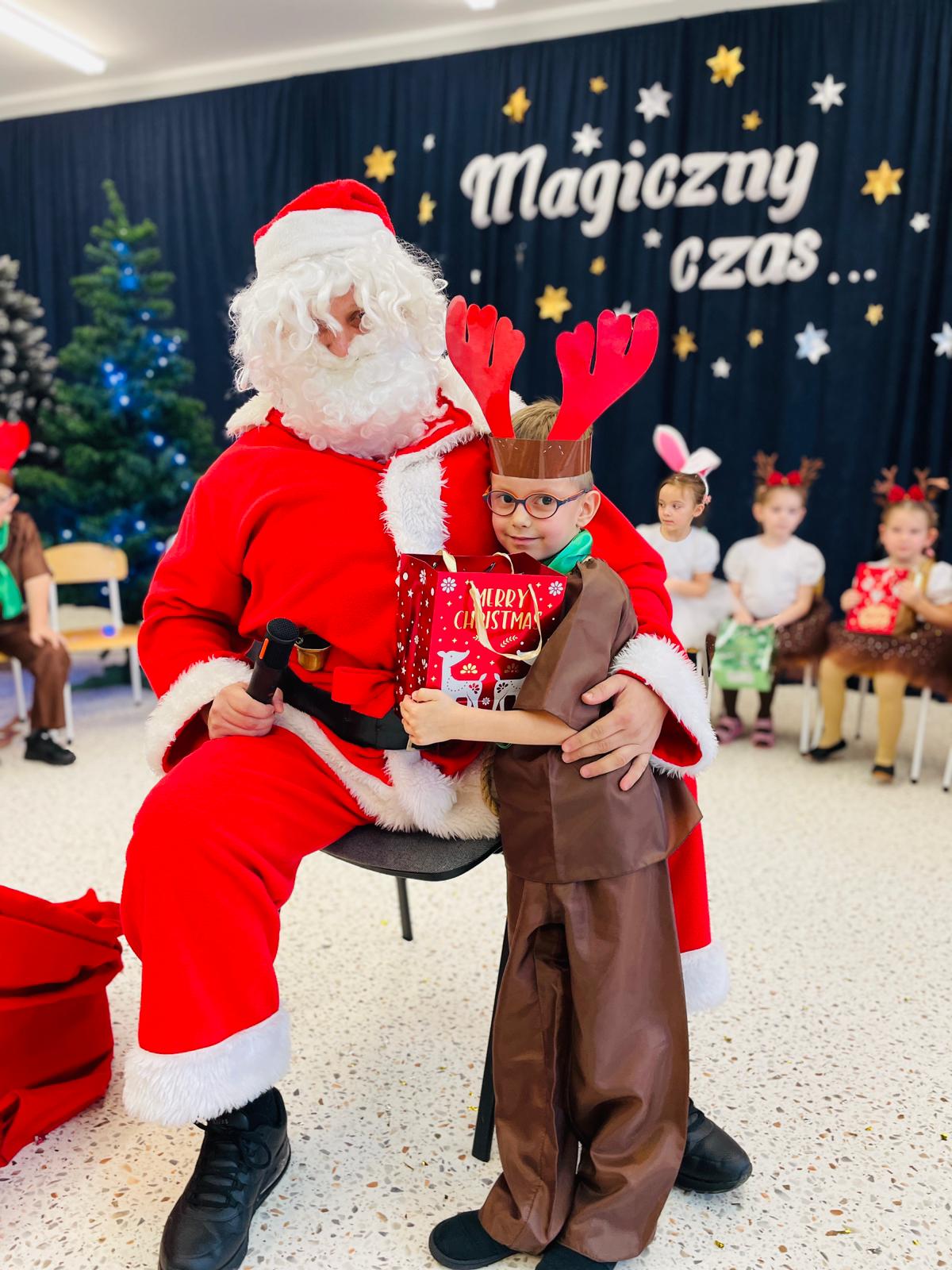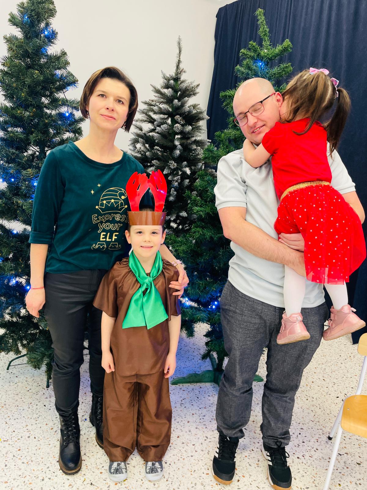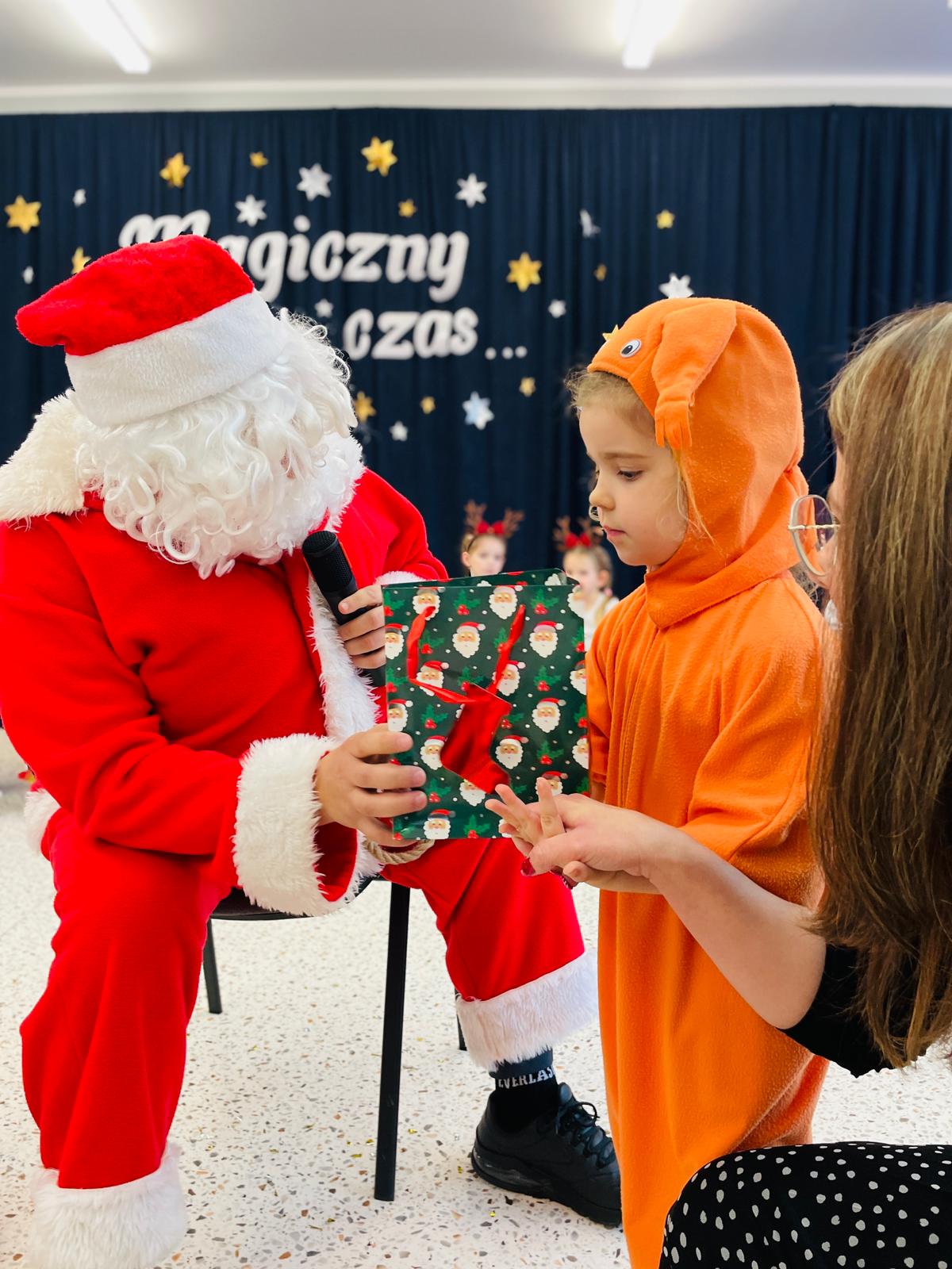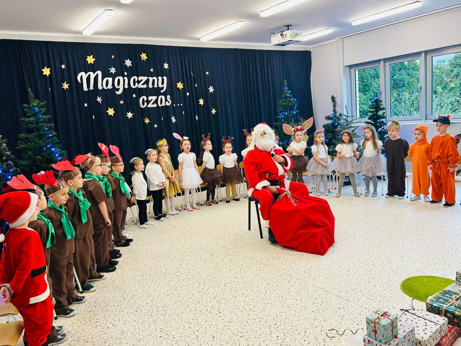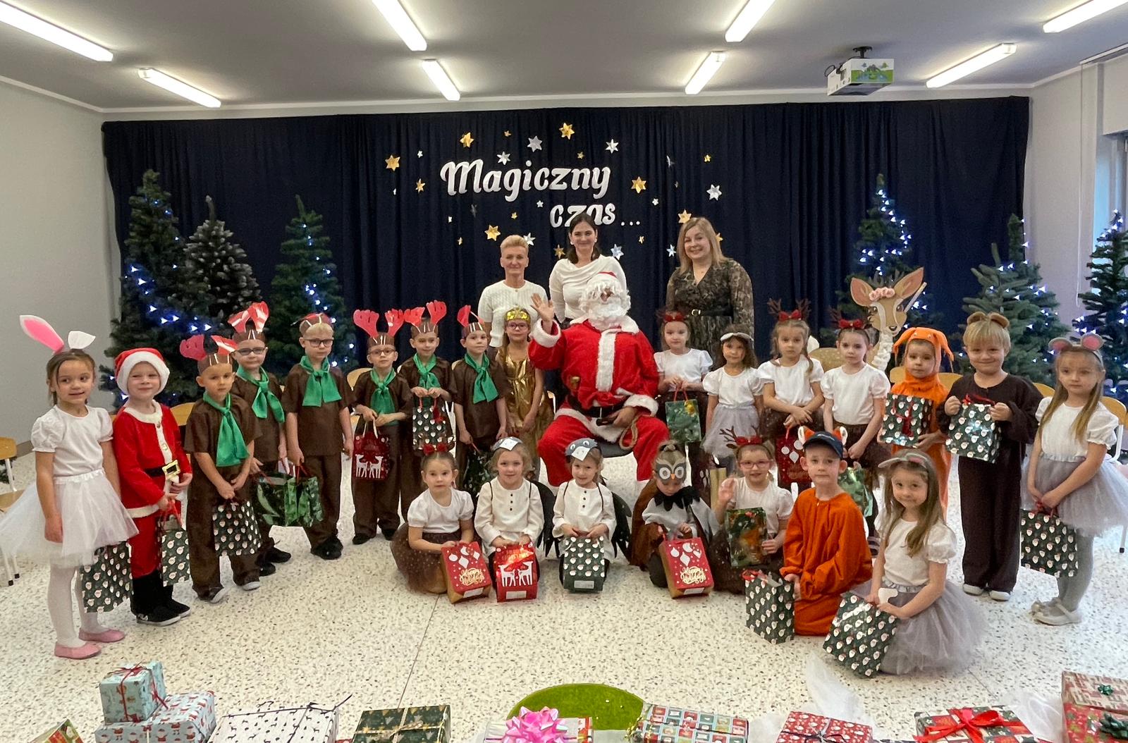 Kolejny raz spotkaliśmy się w rodzinnym gronie by celebrować świąteczny czas. Przedszkolaki z gr. XI ugościli dziś swoich najbliższych i w przedszkolnym przestawieniu przypomniały, co tak naprawdę jest ważne w święta. Dzieci wcieliły się w rolę zwierzątek, które ciężko pracują przygotowując się do świąt. W tym całym zgiełku zapominają o tym, co naprawdę ważne. Mała Gwiazdeczka przypomina im jednak, że istotne są nie smakołyki, prezenty i wytarte kurze, a obecność najbliższych i wspólnie spędzony czas. W tej historii nawet Mikołaj i renifery dołączają do wspólnej zabawy. Po wszystkim przedszkolaki odwiedził prawdziwy Mikołaj, a później dzieci mogły już tylko przytulić się do swoich najbliższych. To był niezwykły czas pełen wzruszeń i uśmiechów.