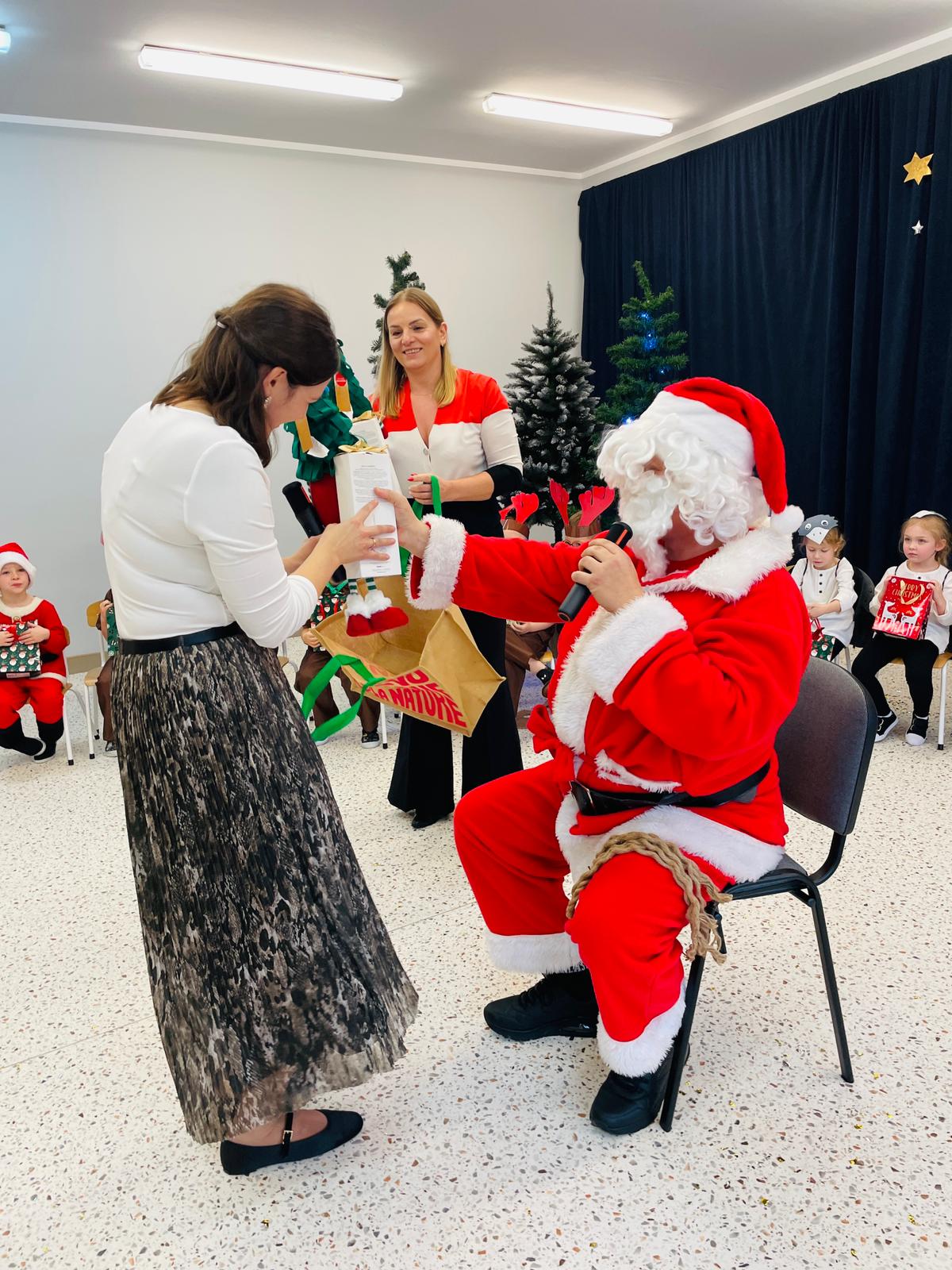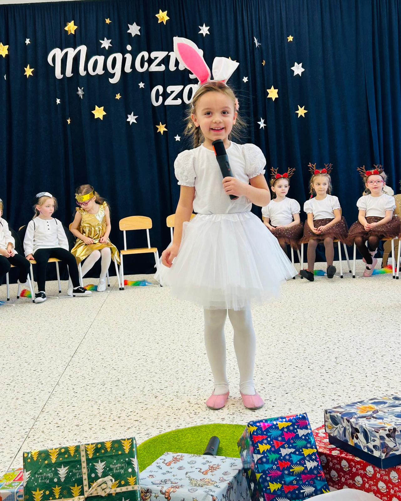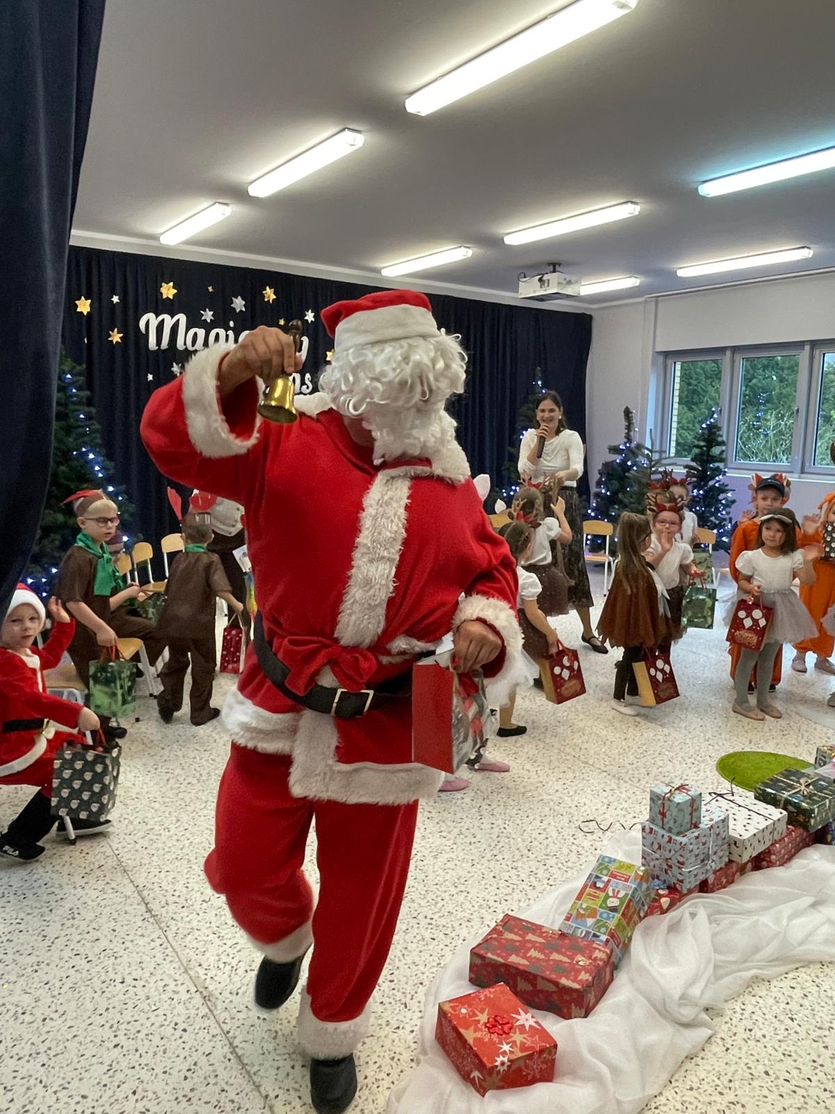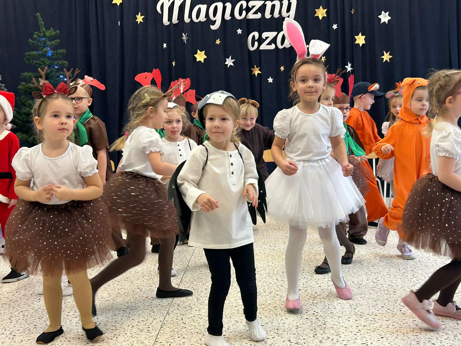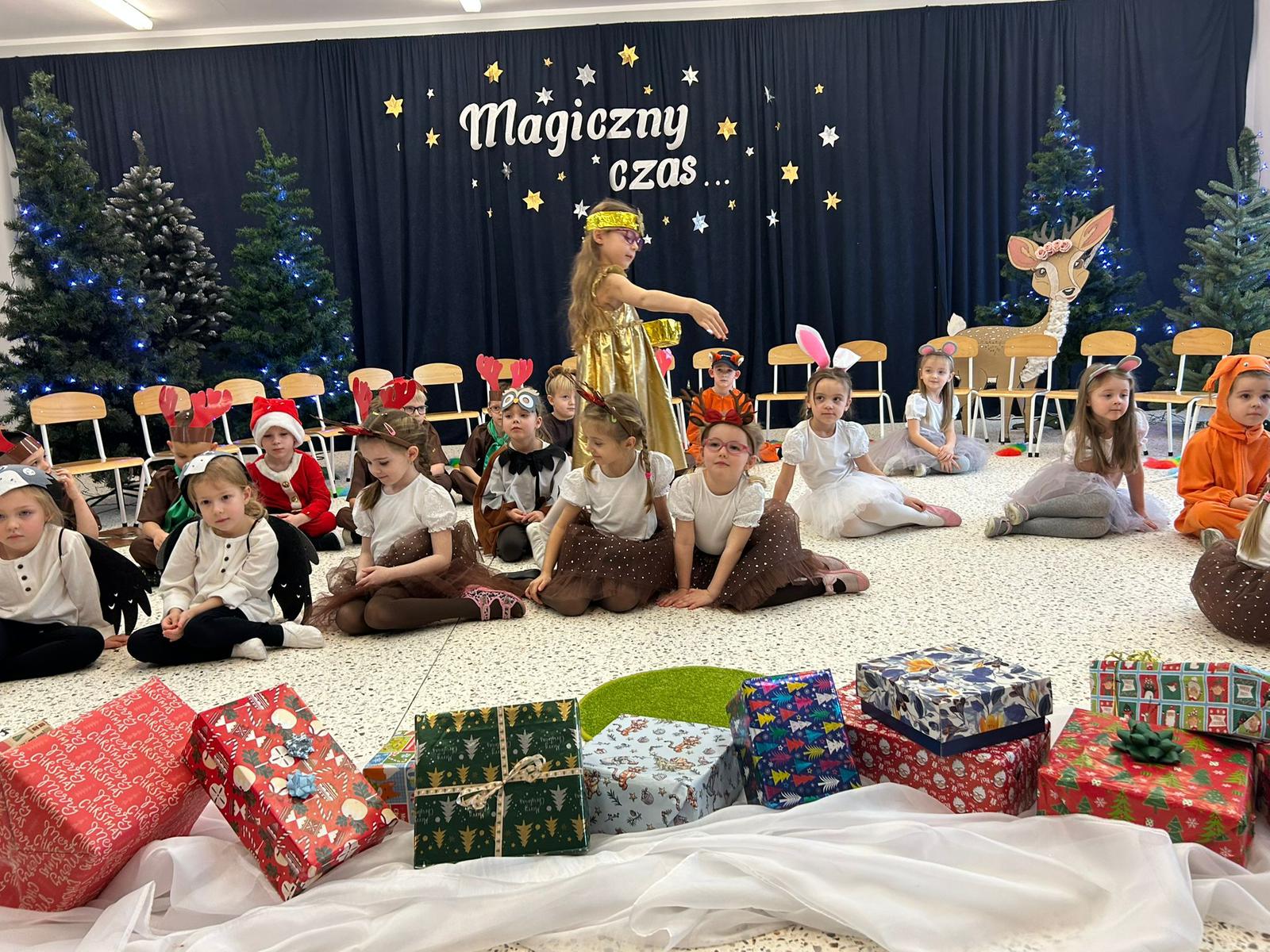 Kolejny raz spotkaliśmy się w rodzinnym gronie by celebrować świąteczny czas. Przedszkolaki z gr. XI ugościli dziś swoich najbliższych i w przedszkolnym przestawieniu przypomniały, co tak naprawdę jest ważne w święta. Dzieci wcieliły się w rolę zwierzątek, które ciężko pracują przygotowując się do świąt. W tym całym zgiełku zapominają o tym, co naprawdę ważne. Mała Gwiazdeczka przypomina im jednak, że istotne są nie smakołyki, prezenty i wytarte kurze, a obecność najbliższych i wspólnie spędzony czas. W tej historii nawet Mikołaj i renifery dołączają do wspólnej zabawy. Po wszystkim przedszkolaki odwiedził prawdziwy Mikołaj, a później dzieci mogły już tylko przytulić się do swoich najbliższych. To był niezwykły czas pełen wzruszeń i uśmiechów.