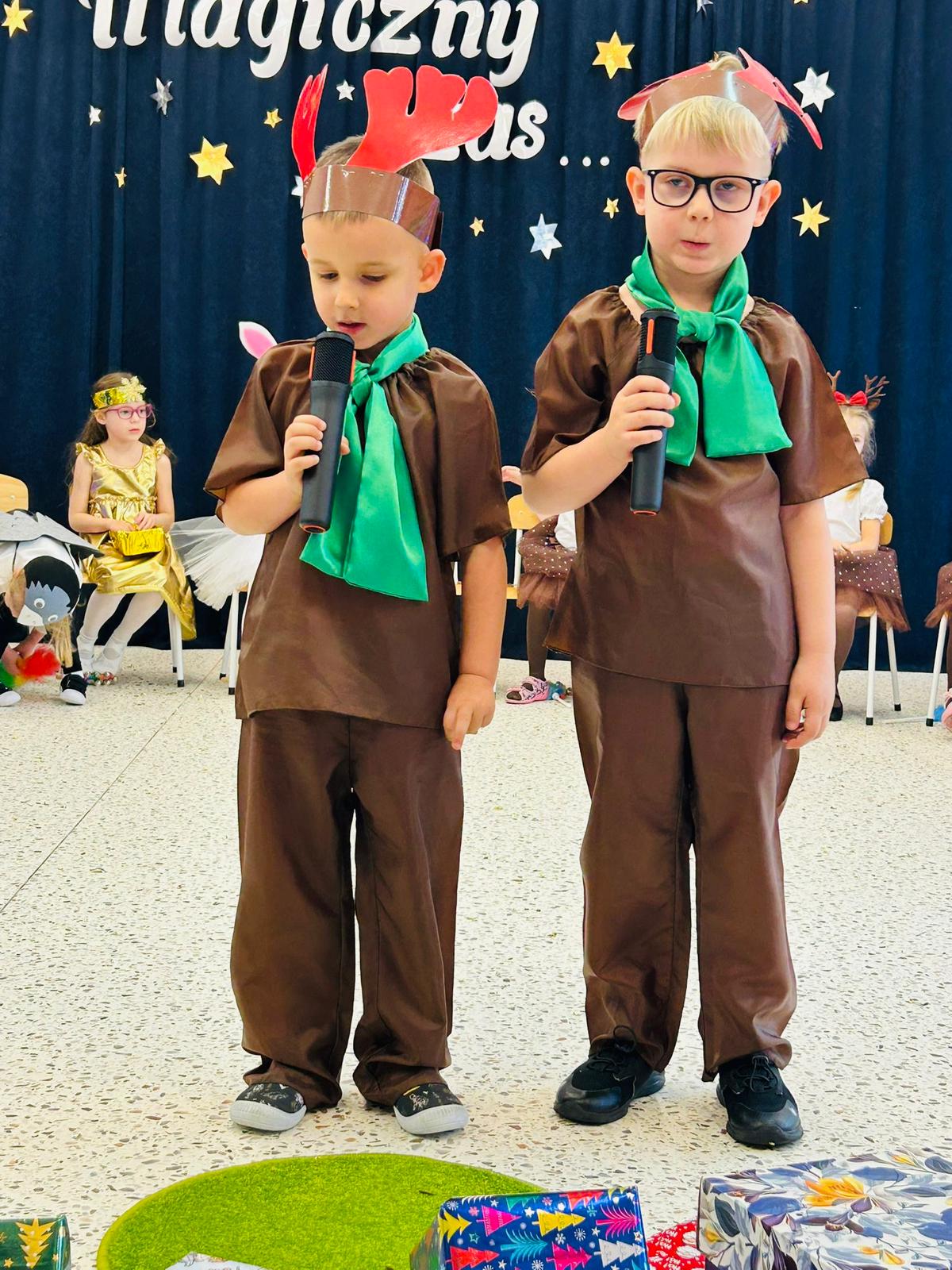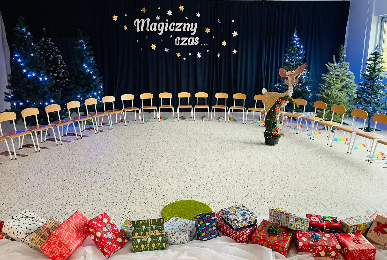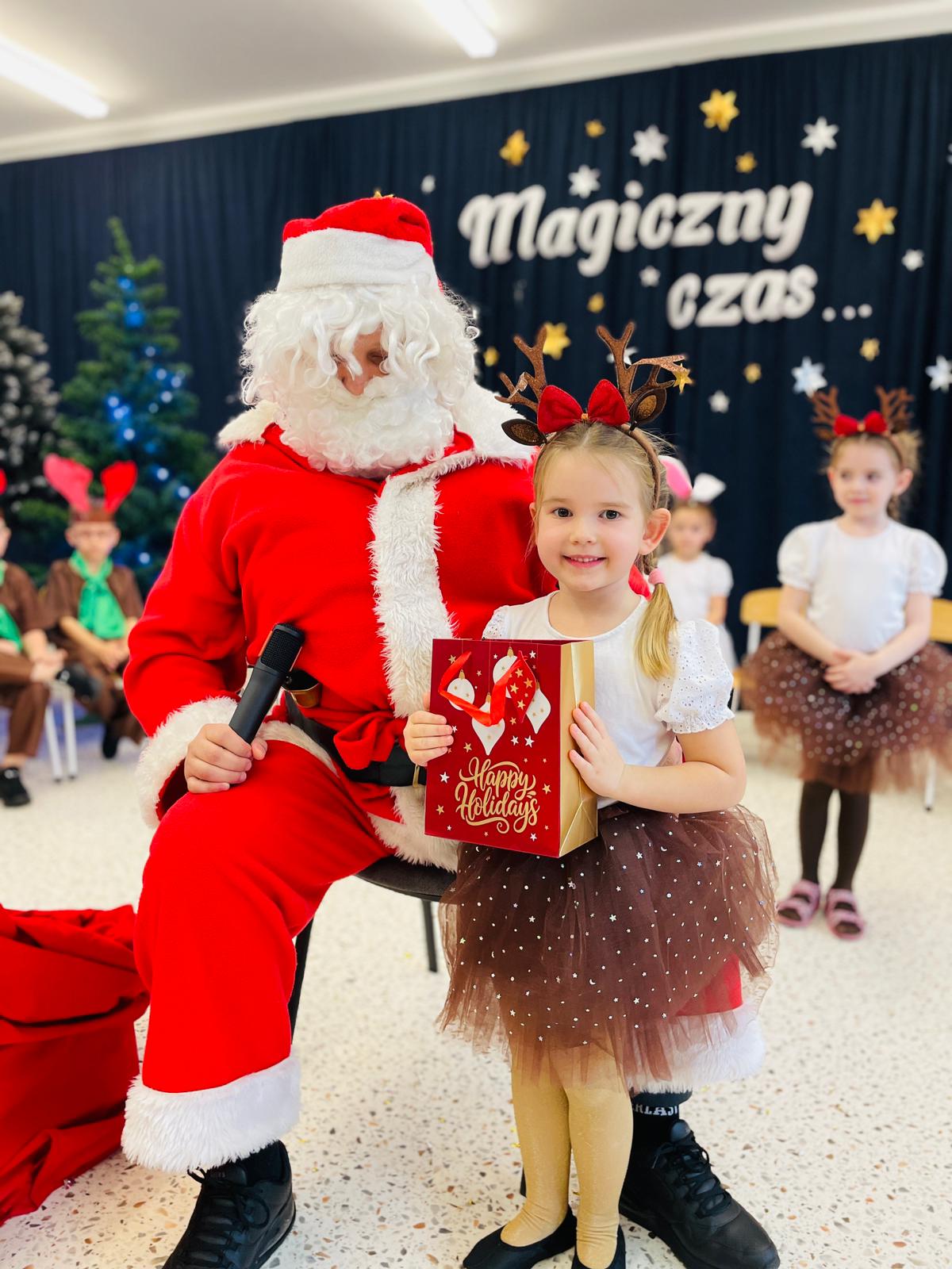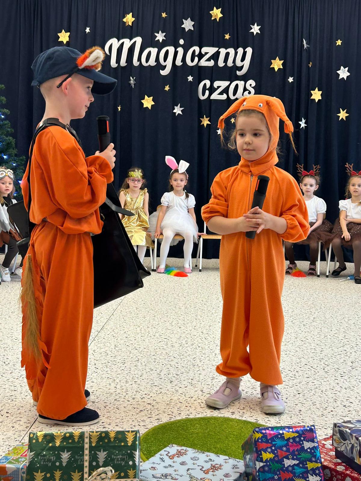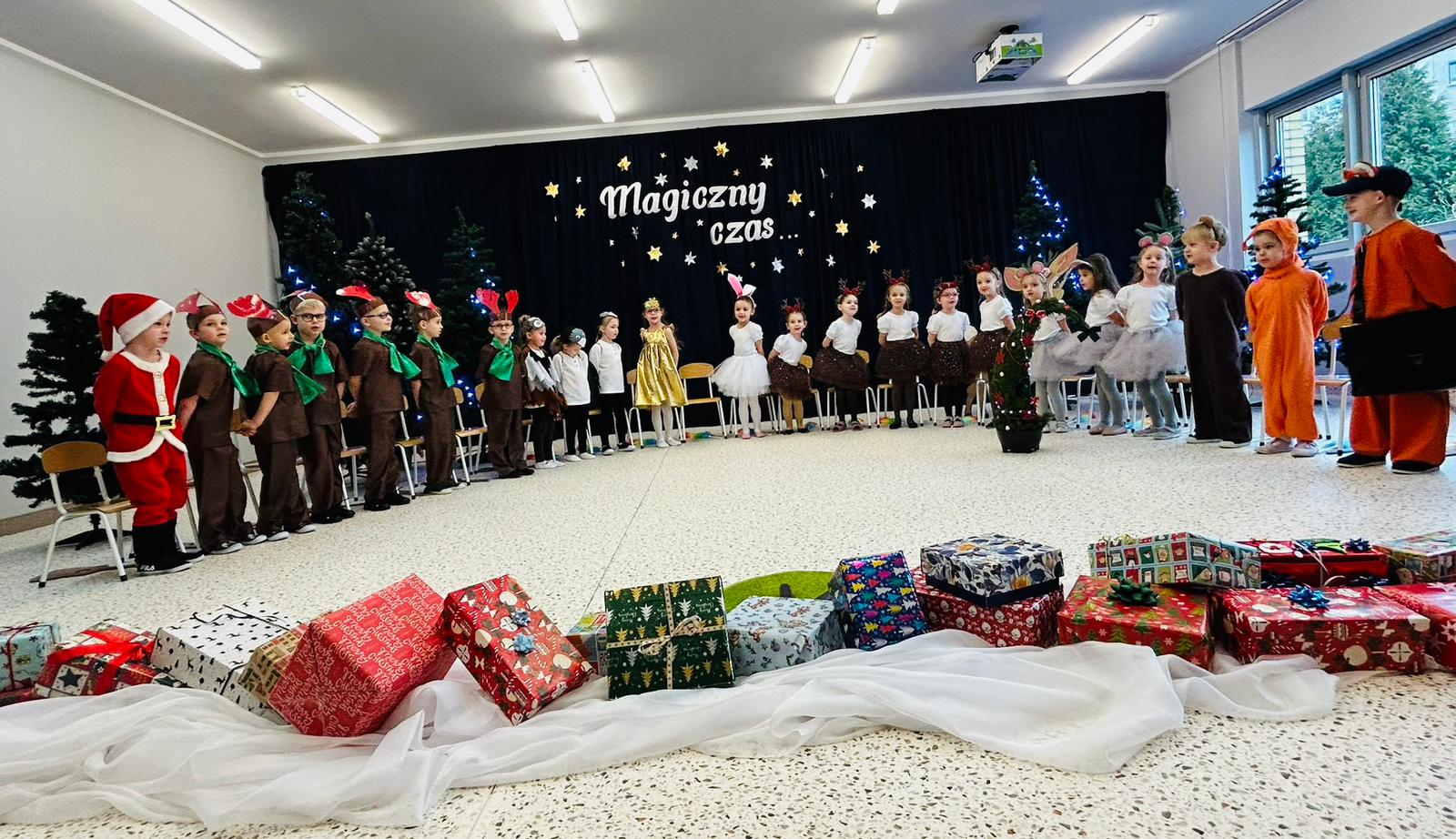 Kolejny raz spotkaliśmy się w rodzinnym gronie by celebrować świąteczny czas. Przedszkolaki z gr. XI ugościli dziś swoich najbliższych i w przedszkolnym przestawieniu przypomniały, co tak naprawdę jest ważne w święta. Dzieci wcieliły się w rolę zwierzątek, które ciężko pracują przygotowując się do świąt. W tym całym zgiełku zapominają o tym, co naprawdę ważne. Mała Gwiazdeczka przypomina im jednak, że istotne są nie smakołyki, prezenty i wytarte kurze, a obecność najbliższych i wspólnie spędzony czas. W tej historii nawet Mikołaj i renifery dołączają do wspólnej zabawy. Po wszystkim przedszkolaki odwiedził prawdziwy Mikołaj, a później dzieci mogły już tylko przytulić się do swoich najbliższych. To był niezwykły czas pełen wzruszeń i uśmiechów.