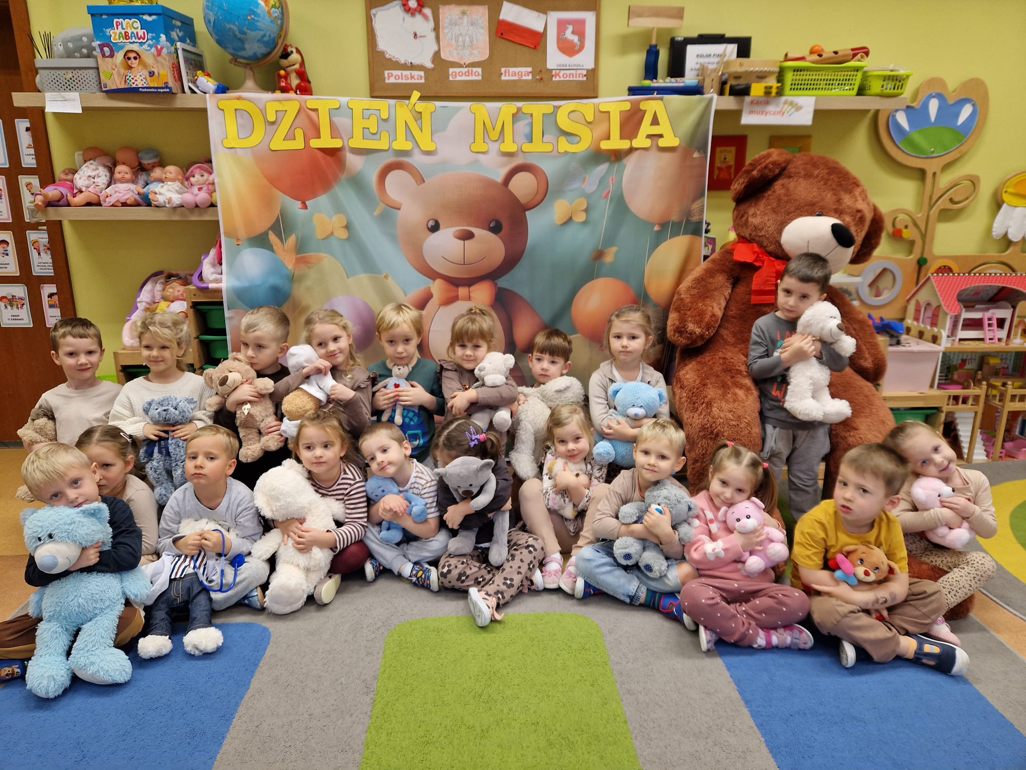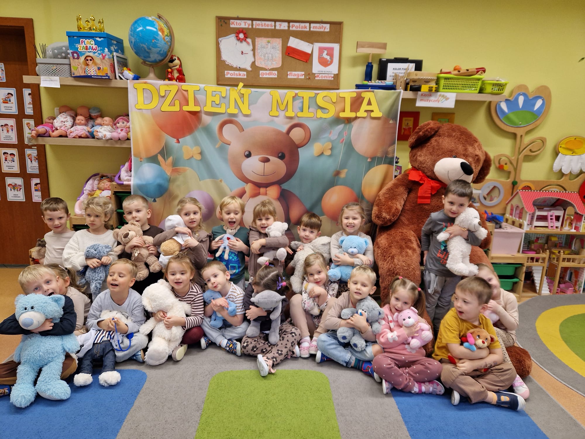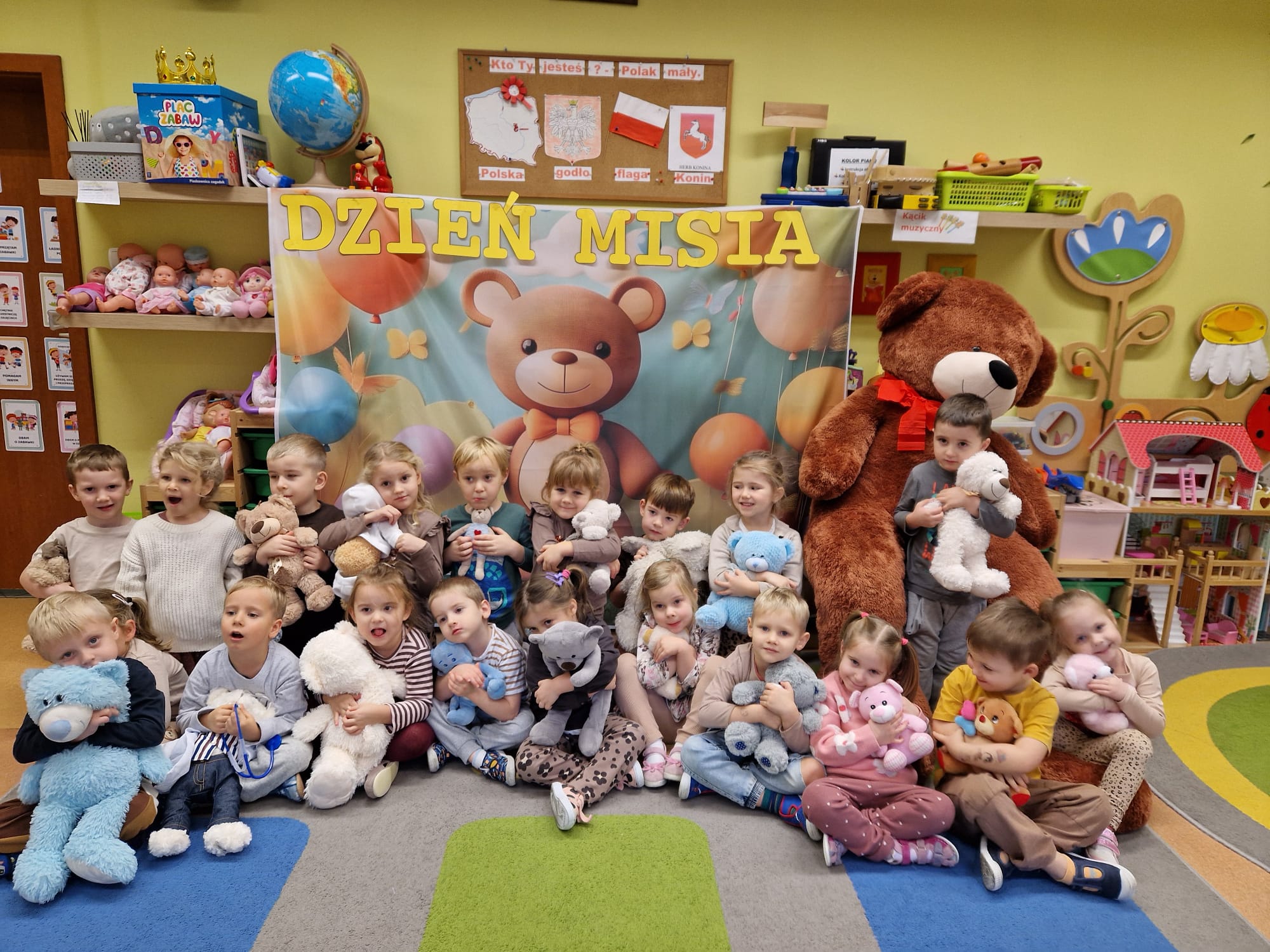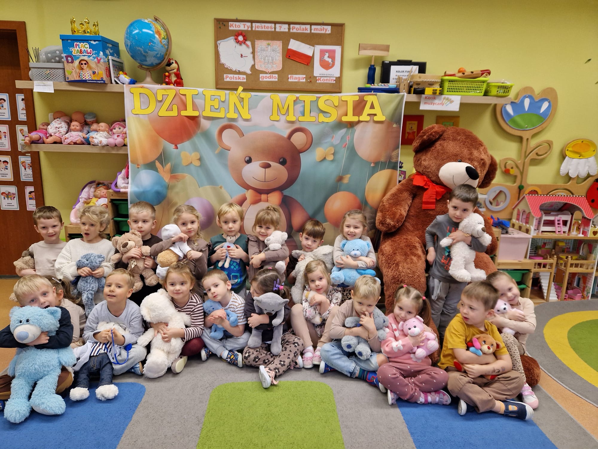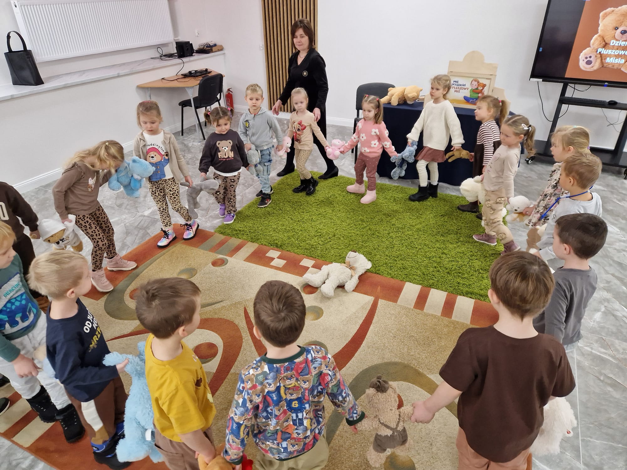 „Czy to jutro, czy to dziś, wszystkim jest potrzebny miś” – słowa Heleny Bechlerowej, autorki książek dla dzieci, trafnie oddają ponadczasowy urok pluszowego misia. Pluszowy Miś , to niewątpliwy symbol dzieciństwa. A ponieważ Miś oprócz tego, że jest przemiłą maskotką - przytulanką, jest także bohaterem wielu książek i bajek dla dzieci, a to zadecydowało, że średniaki z grupy X na miejsce świętowania Światowego Dnia Pluszowego Misia wybrały Publiczną Bibliotekę Pedagogiczną w Koninie. Oczywiście na wycieczkę nie pojechały tam same, albowiem w towarzystwie swoich „ pluszowych przyjaciół – MISIÓW” . Zabawy i wszelkie aktywności , które zaplanowała tego dnia dla najmłodszych Pani Dorota - pracownik tamtejszej biblioteki, zdominował oczywiście – MIŚ. Na początek dzieci z wielkim zainteresowaniem obejrzały teatrzyk kamishibai i bajkę pt „ Mój przyjaciel – Pluszowy Miś”, która stała się inspiracją do zabaw ruchowych, ze śpiewem oraz plastycznych. A misie? Jak to przystało na wiernych przyjaciół, w każdej aktywności towarzyszyły dzieciom …. MISIE bez wątpienia były dziś zaopiekowane, wytulone i wybawione. Każde dziecko ma swojego ukochanego misia – przyjaciela i powiernika sekretów, o którym dziś mogło opowiedzieć. Mimo bogactwa współczesnego rynku zabawek dzieci chętnie wybierają misie, jako towarzyszy zabaw. Niewiele rzeczy w dzisiejszym świecie wzrusza, pobudza ciepłe emocje i ma w sobie tyle łagodności i dobra, ile zawiera się w tej prostej zabawce, jaką jest pluszowy miś. Posiadanie takiego towarzysza w dzieciństwie często kształtuje empatię i rozwija opiekuńczość, a dla wielu miś staje się symbolem bezpieczeństwa i wsparcia, szczególnie w trudniejszych chwilach. Zapraszamy do galerii.
