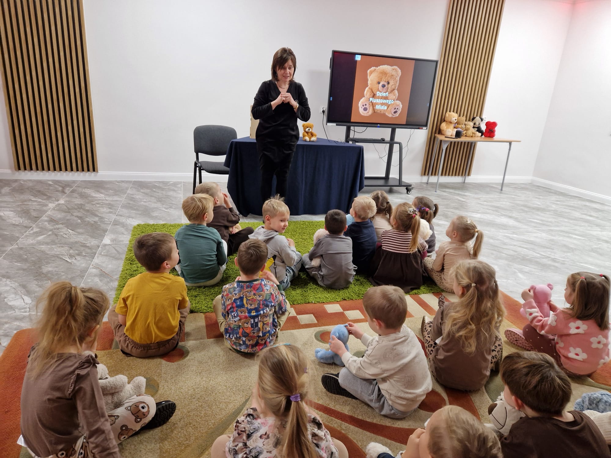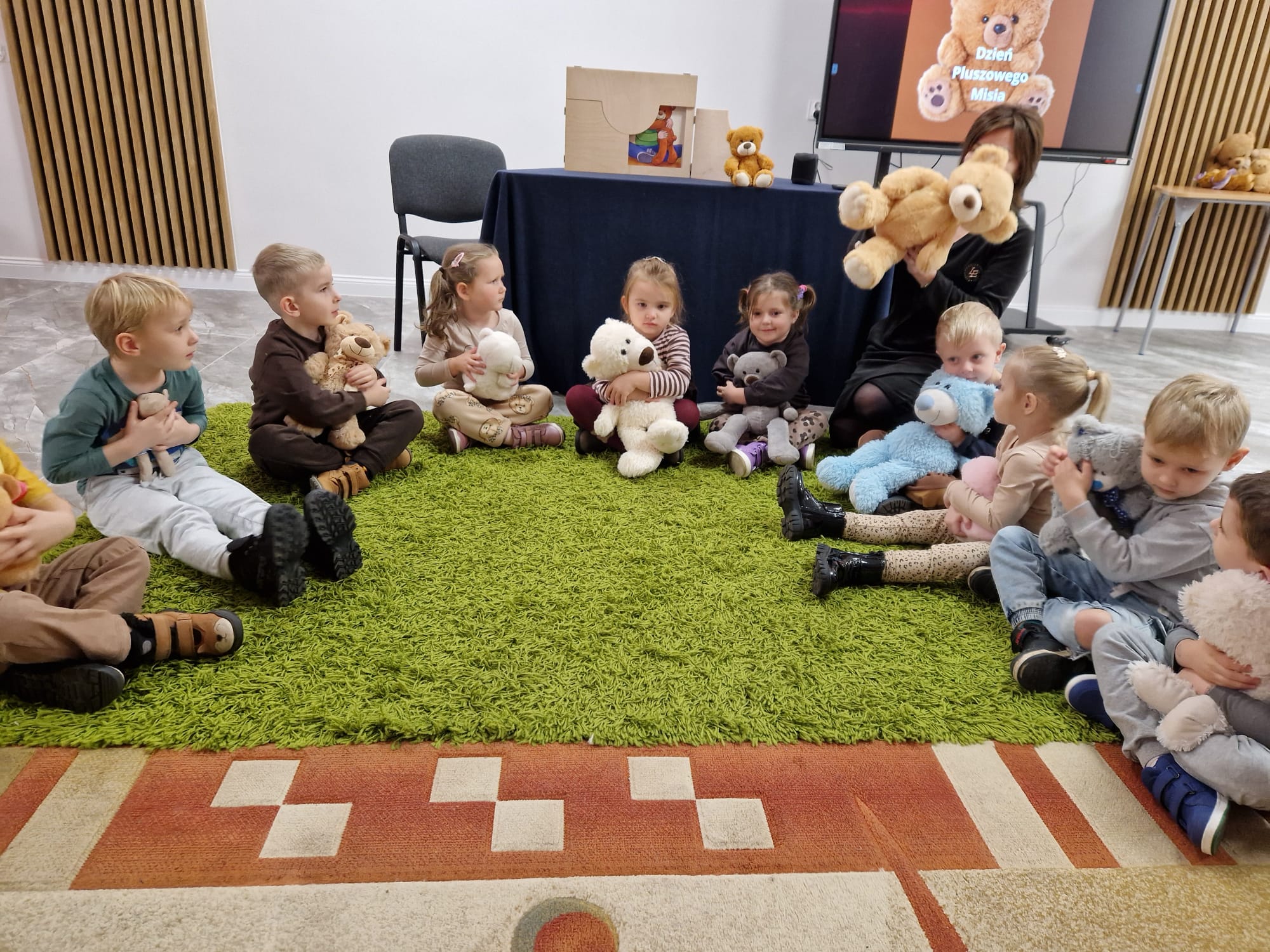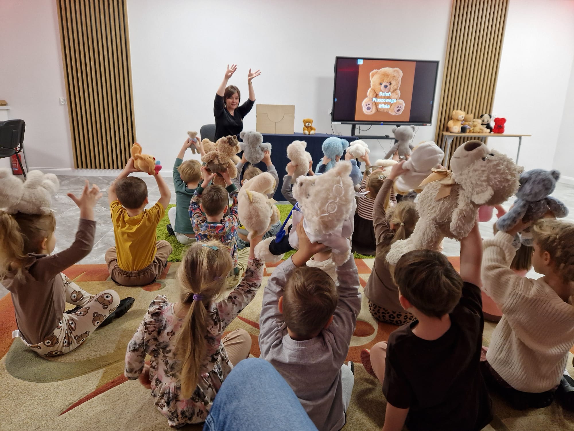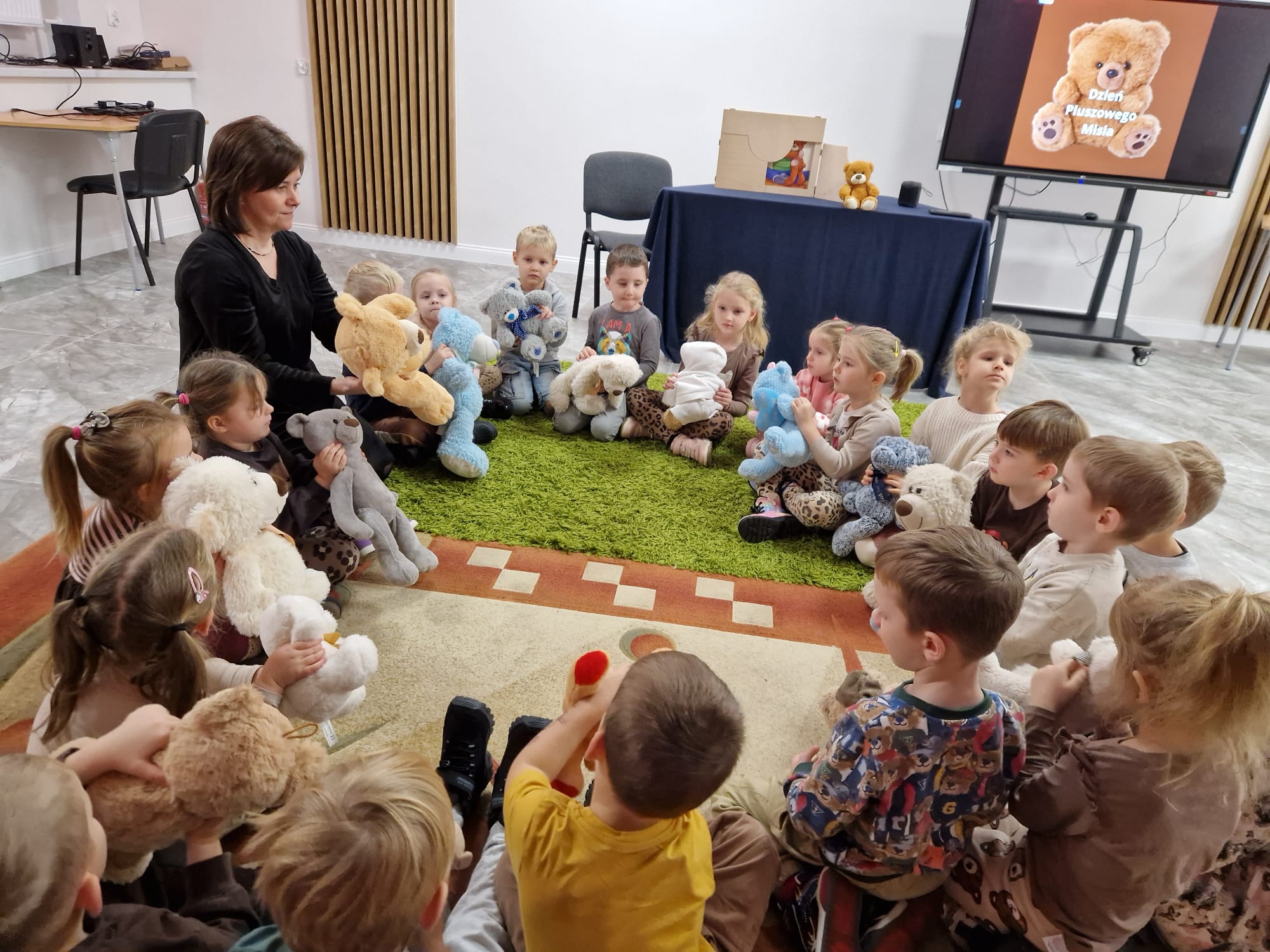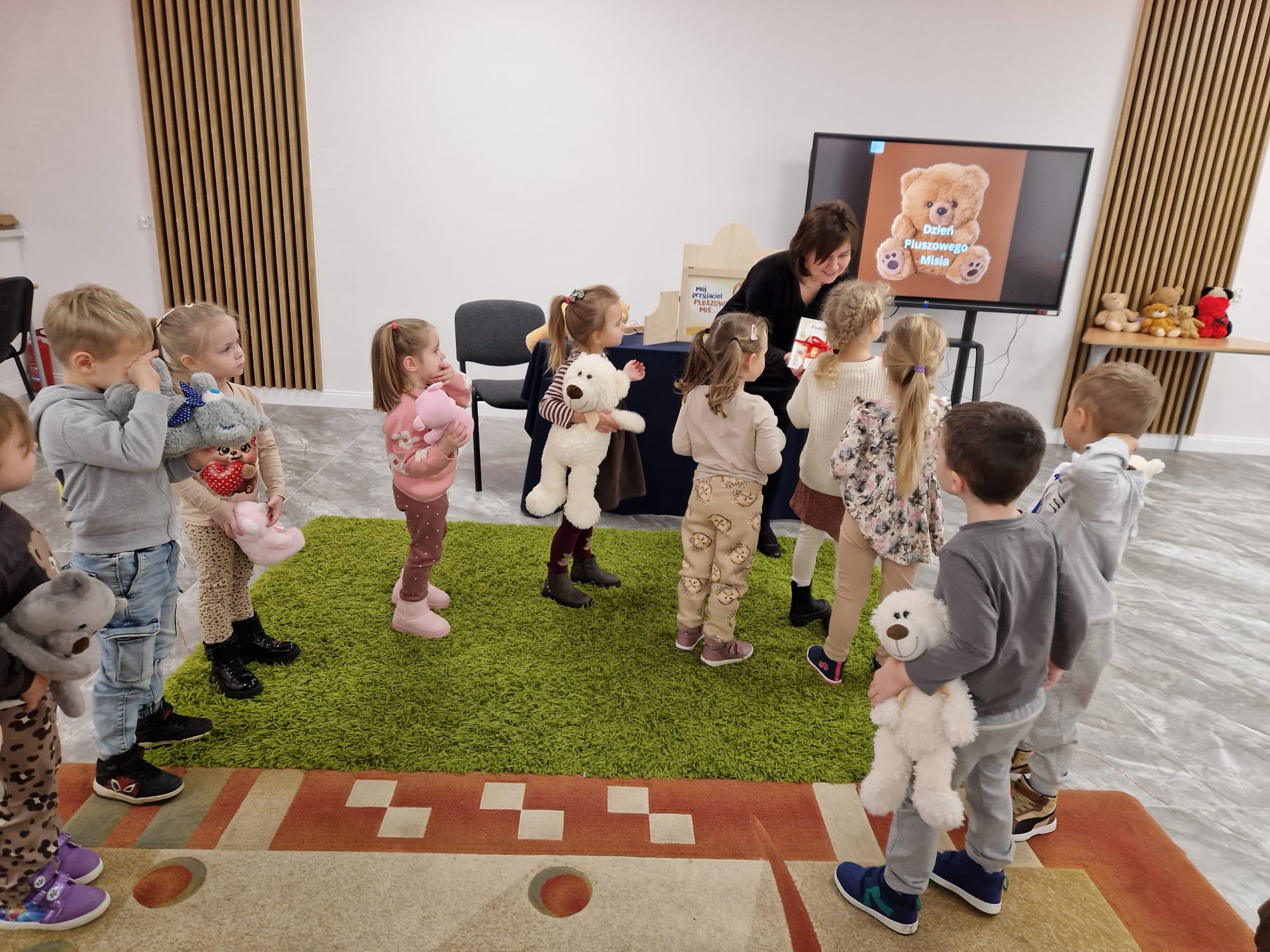 „Czy to jutro, czy to dziś, wszystkim jest potrzebny miś” – słowa Heleny Bechlerowej, autorki książek dla dzieci, trafnie oddają ponadczasowy urok pluszowego misia. Pluszowy Miś , to niewątpliwy symbol dzieciństwa. A ponieważ Miś oprócz tego, że jest przemiłą maskotką - przytulanką, jest także bohaterem wielu książek i bajek dla dzieci, a to zadecydowało, że średniaki z grupy X na miejsce świętowania Światowego Dnia Pluszowego Misia wybrały Publiczną Bibliotekę Pedagogiczną w Koninie. Oczywiście na wycieczkę nie pojechały tam same, albowiem w towarzystwie swoich „ pluszowych przyjaciół – MISIÓW” . Zabawy i wszelkie aktywności , które zaplanowała tego dnia dla najmłodszych Pani Dorota - pracownik tamtejszej biblioteki, zdominował oczywiście – MIŚ. Na początek dzieci z wielkim zainteresowaniem obejrzały teatrzyk kamishibai i bajkę pt „ Mój przyjaciel – Pluszowy Miś”, która stała się inspiracją do zabaw ruchowych, ze śpiewem oraz plastycznych. A misie? Jak to przystało na wiernych przyjaciół, w każdej aktywności towarzyszyły dzieciom …. MISIE bez wątpienia były dziś zaopiekowane, wytulone i wybawione. Każde dziecko ma swojego ukochanego misia – przyjaciela i powiernika sekretów, o którym dziś mogło opowiedzieć. Mimo bogactwa współczesnego rynku zabawek dzieci chętnie wybierają misie, jako towarzyszy zabaw. Niewiele rzeczy w dzisiejszym świecie wzrusza, pobudza ciepłe emocje i ma w sobie tyle łagodności i dobra, ile zawiera się w tej prostej zabawce, jaką jest pluszowy miś. Posiadanie takiego towarzysza w dzieciństwie często kształtuje empatię i rozwija opiekuńczość, a dla wielu miś staje się symbolem bezpieczeństwa i wsparcia, szczególnie w trudniejszych chwilach. Zapraszamy do galerii.