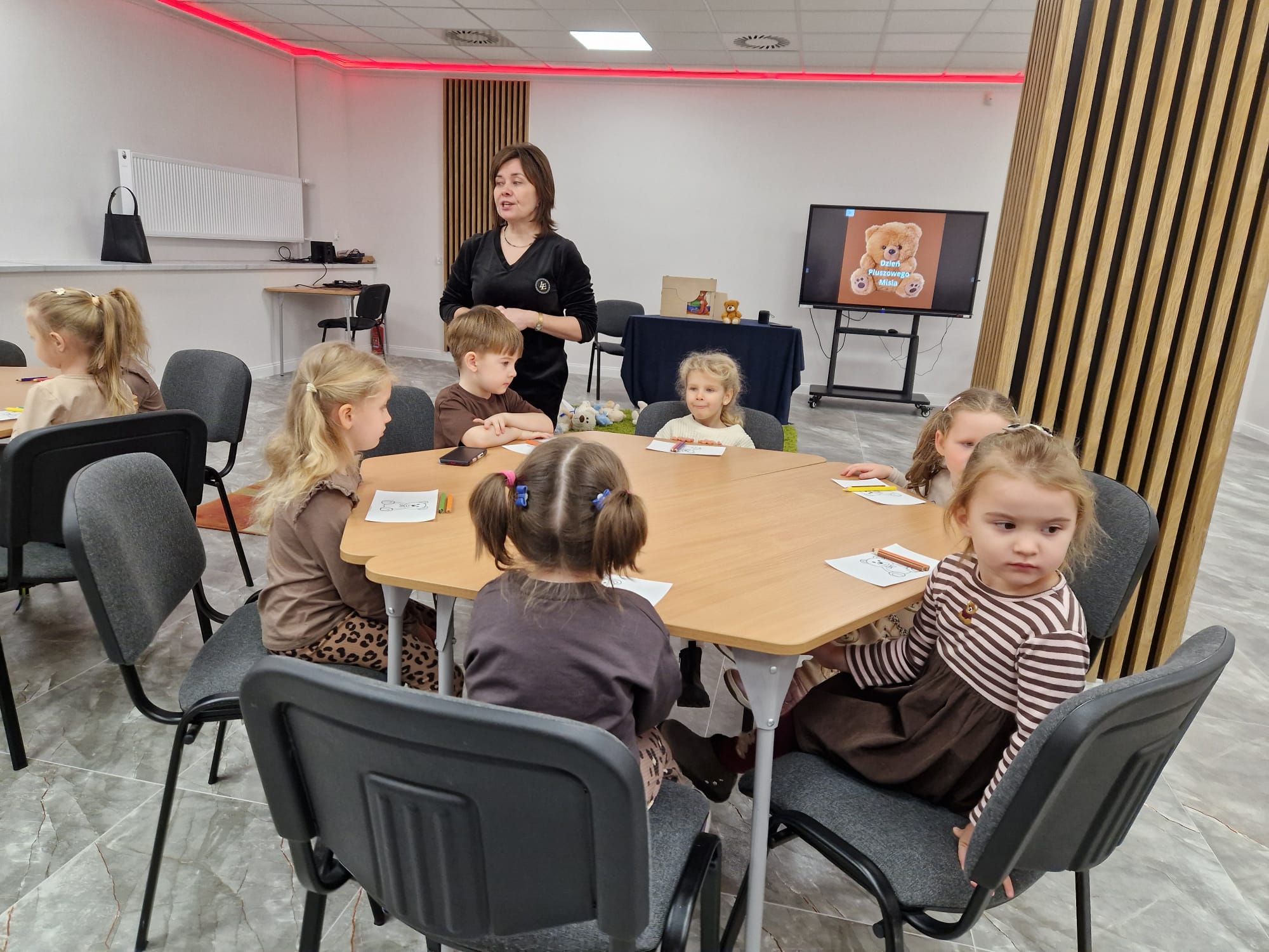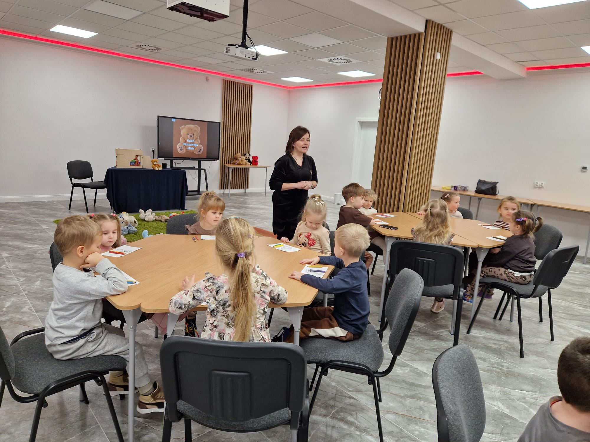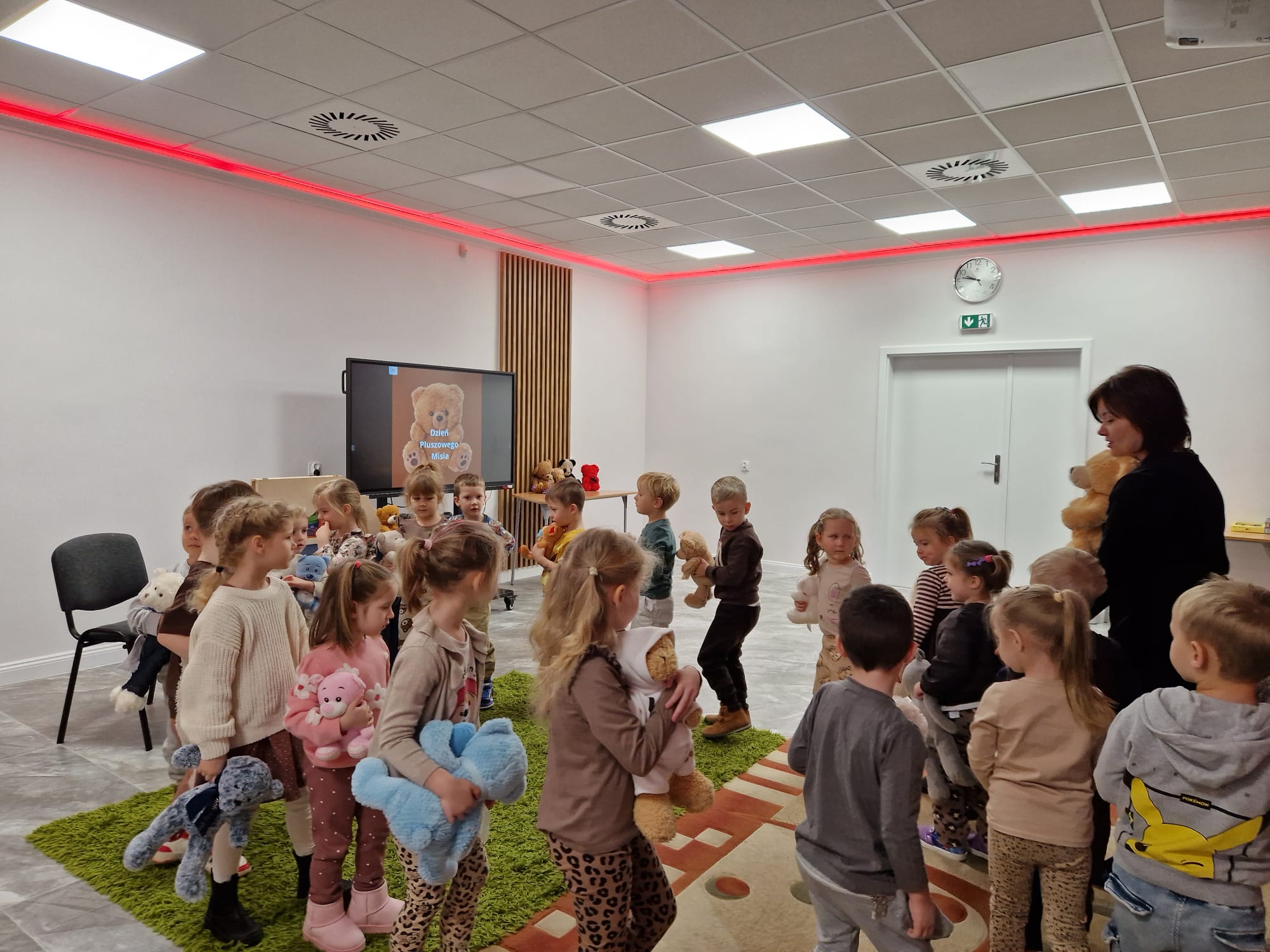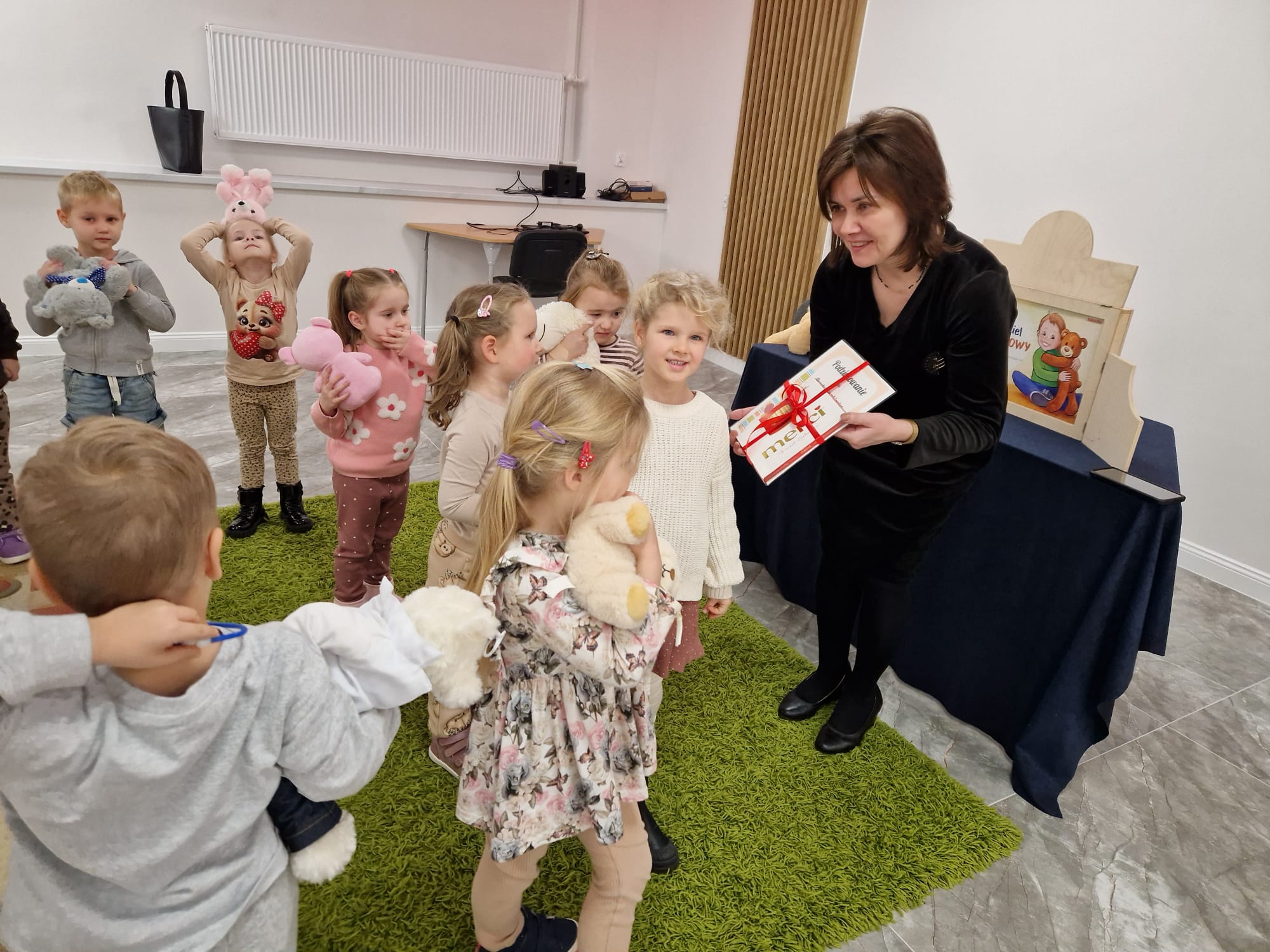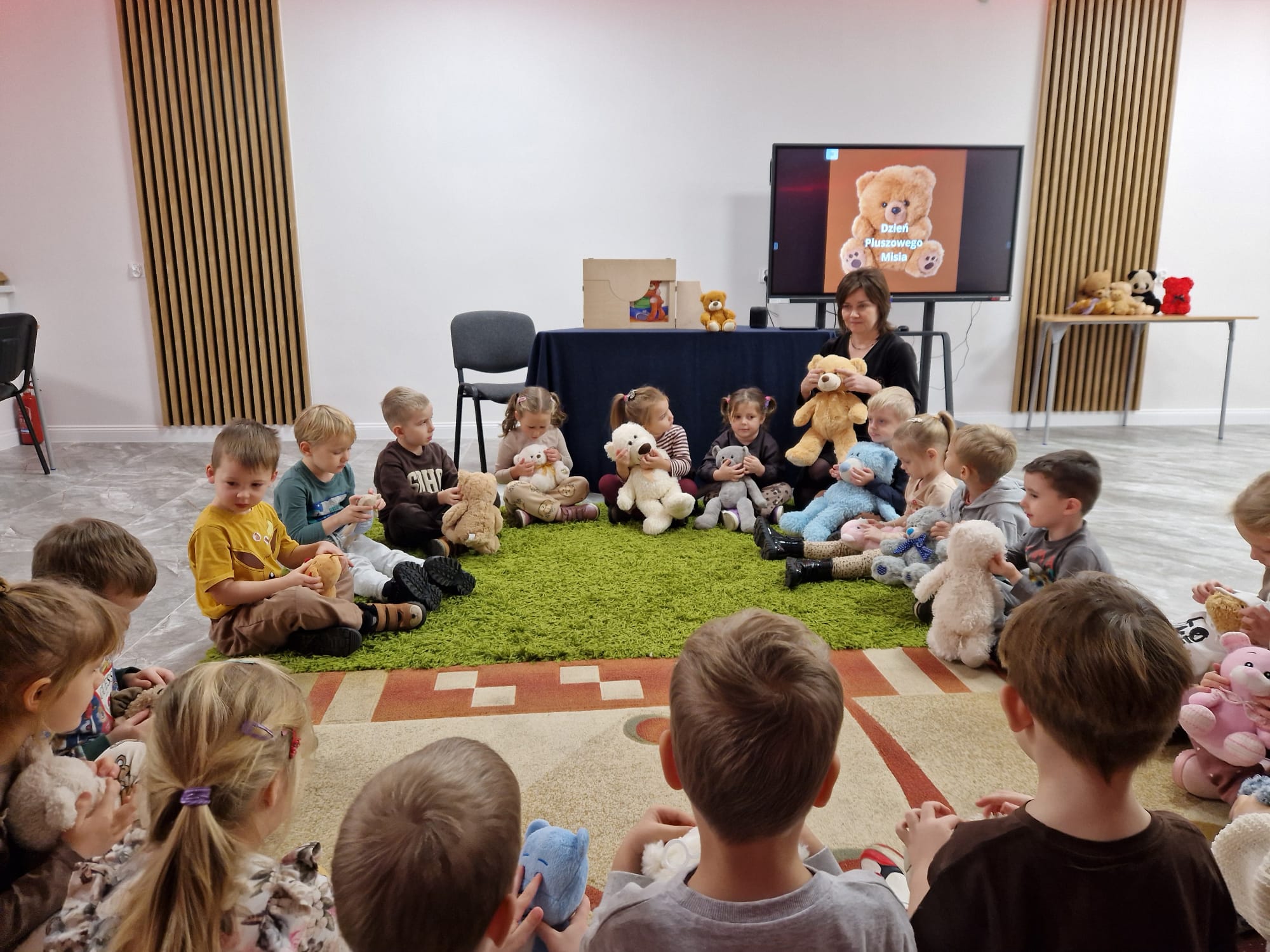 „Czy to jutro, czy to dziś, wszystkim jest potrzebny miś” – słowa Heleny Bechlerowej, autorki książek dla dzieci, trafnie oddają ponadczasowy urok pluszowego misia. Pluszowy Miś , to niewątpliwy symbol dzieciństwa. A ponieważ Miś oprócz tego, że jest przemiłą maskotką - przytulanką, jest także bohaterem wielu książek i bajek dla dzieci, a to zadecydowało, że średniaki z grupy X na miejsce świętowania Światowego Dnia Pluszowego Misia wybrały Publiczną Bibliotekę Pedagogiczną w Koninie. Oczywiście na wycieczkę nie pojechały tam same, albowiem w towarzystwie swoich „ pluszowych przyjaciół – MISIÓW” . Zabawy i wszelkie aktywności , które zaplanowała tego dnia dla najmłodszych Pani Dorota - pracownik tamtejszej biblioteki, zdominował oczywiście – MIŚ. Na początek dzieci z wielkim zainteresowaniem obejrzały teatrzyk kamishibai i bajkę pt „ Mój przyjaciel – Pluszowy Miś”, która stała się inspiracją do zabaw ruchowych, ze śpiewem oraz plastycznych. A misie? Jak to przystało na wiernych przyjaciół, w każdej aktywności towarzyszyły dzieciom …. MISIE bez wątpienia były dziś zaopiekowane, wytulone i wybawione. Każde dziecko ma swojego ukochanego misia – przyjaciela i powiernika sekretów, o którym dziś mogło opowiedzieć. Mimo bogactwa współczesnego rynku zabawek dzieci chętnie wybierają misie, jako towarzyszy zabaw. Niewiele rzeczy w dzisiejszym świecie wzrusza, pobudza ciepłe emocje i ma w sobie tyle łagodności i dobra, ile zawiera się w tej prostej zabawce, jaką jest pluszowy miś. Posiadanie takiego towarzysza w dzieciństwie często kształtuje empatię i rozwija opiekuńczość, a dla wielu miś staje się symbolem bezpieczeństwa i wsparcia, szczególnie w trudniejszych chwilach. Zapraszamy do galerii.