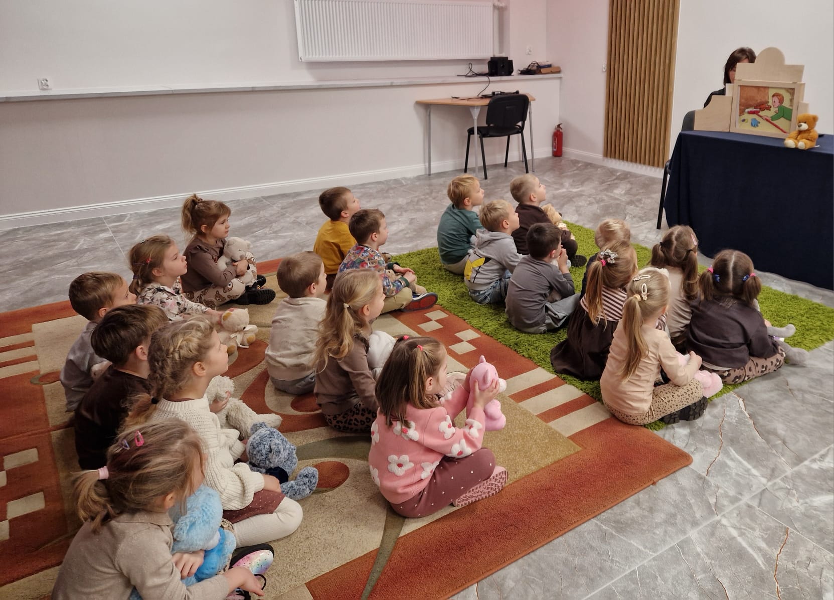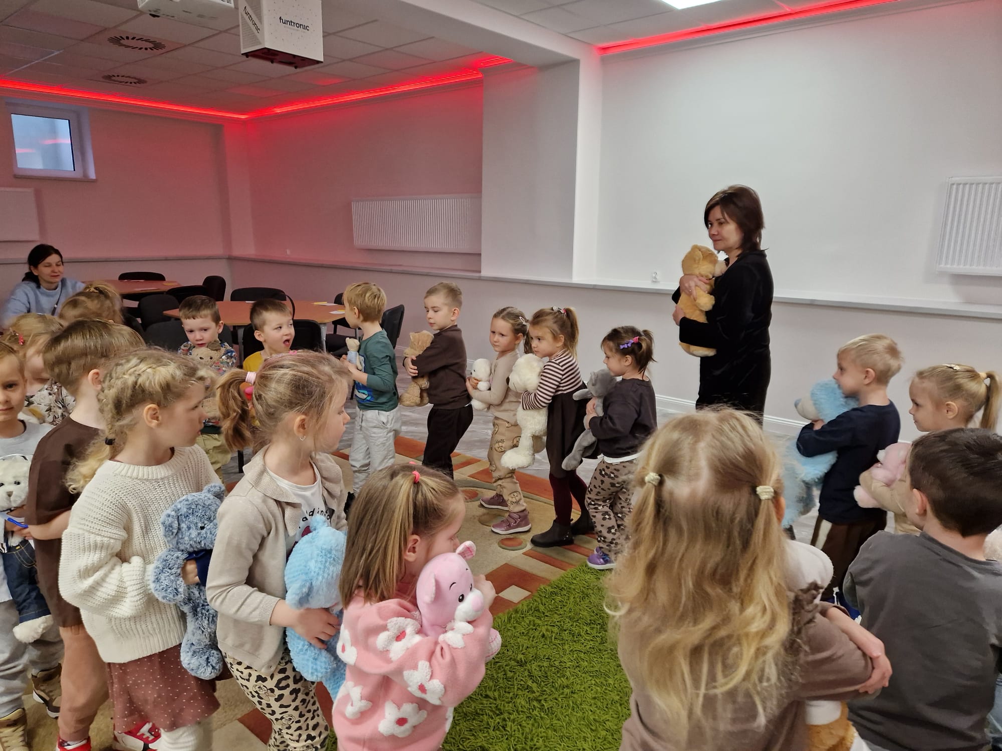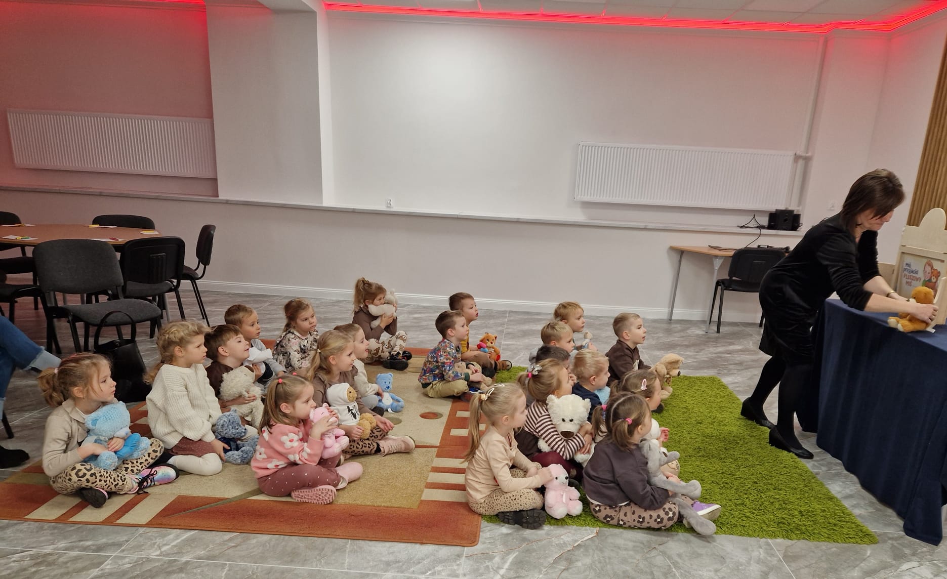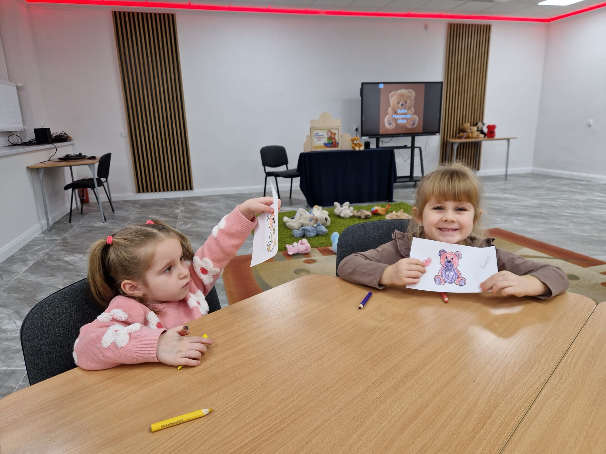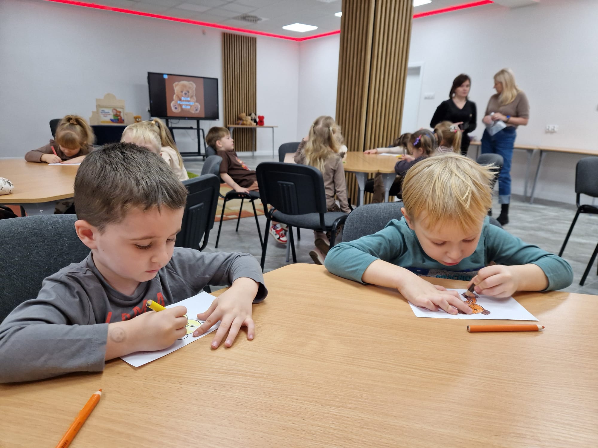 „Czy to jutro, czy to dziś, wszystkim jest potrzebny miś” – słowa Heleny Bechlerowej, autorki książek dla dzieci, trafnie oddają ponadczasowy urok pluszowego misia. Pluszowy Miś , to niewątpliwy symbol dzieciństwa. A ponieważ Miś oprócz tego, że jest przemiłą maskotką - przytulanką, jest także bohaterem wielu książek i bajek dla dzieci, a to zadecydowało, że średniaki z grupy X na miejsce świętowania Światowego Dnia Pluszowego Misia wybrały Publiczną Bibliotekę Pedagogiczną w Koninie. Oczywiście na wycieczkę nie pojechały tam same, albowiem w towarzystwie swoich „ pluszowych przyjaciół – MISIÓW” . Zabawy i wszelkie aktywności , które zaplanowała tego dnia dla najmłodszych Pani Dorota - pracownik tamtejszej biblioteki, zdominował oczywiście – MIŚ. Na początek dzieci z wielkim zainteresowaniem obejrzały teatrzyk kamishibai i bajkę pt „ Mój przyjaciel – Pluszowy Miś”, która stała się inspiracją do zabaw ruchowych, ze śpiewem oraz plastycznych. A misie? Jak to przystało na wiernych przyjaciół, w każdej aktywności towarzyszyły dzieciom …. MISIE bez wątpienia były dziś zaopiekowane, wytulone i wybawione. Każde dziecko ma swojego ukochanego misia – przyjaciela i powiernika sekretów, o którym dziś mogło opowiedzieć. Mimo bogactwa współczesnego rynku zabawek dzieci chętnie wybierają misie, jako towarzyszy zabaw. Niewiele rzeczy w dzisiejszym świecie wzrusza, pobudza ciepłe emocje i ma w sobie tyle łagodności i dobra, ile zawiera się w tej prostej zabawce, jaką jest pluszowy miś. Posiadanie takiego towarzysza w dzieciństwie często kształtuje empatię i rozwija opiekuńczość, a dla wielu miś staje się symbolem bezpieczeństwa i wsparcia, szczególnie w trudniejszych chwilach. Zapraszamy do galerii.