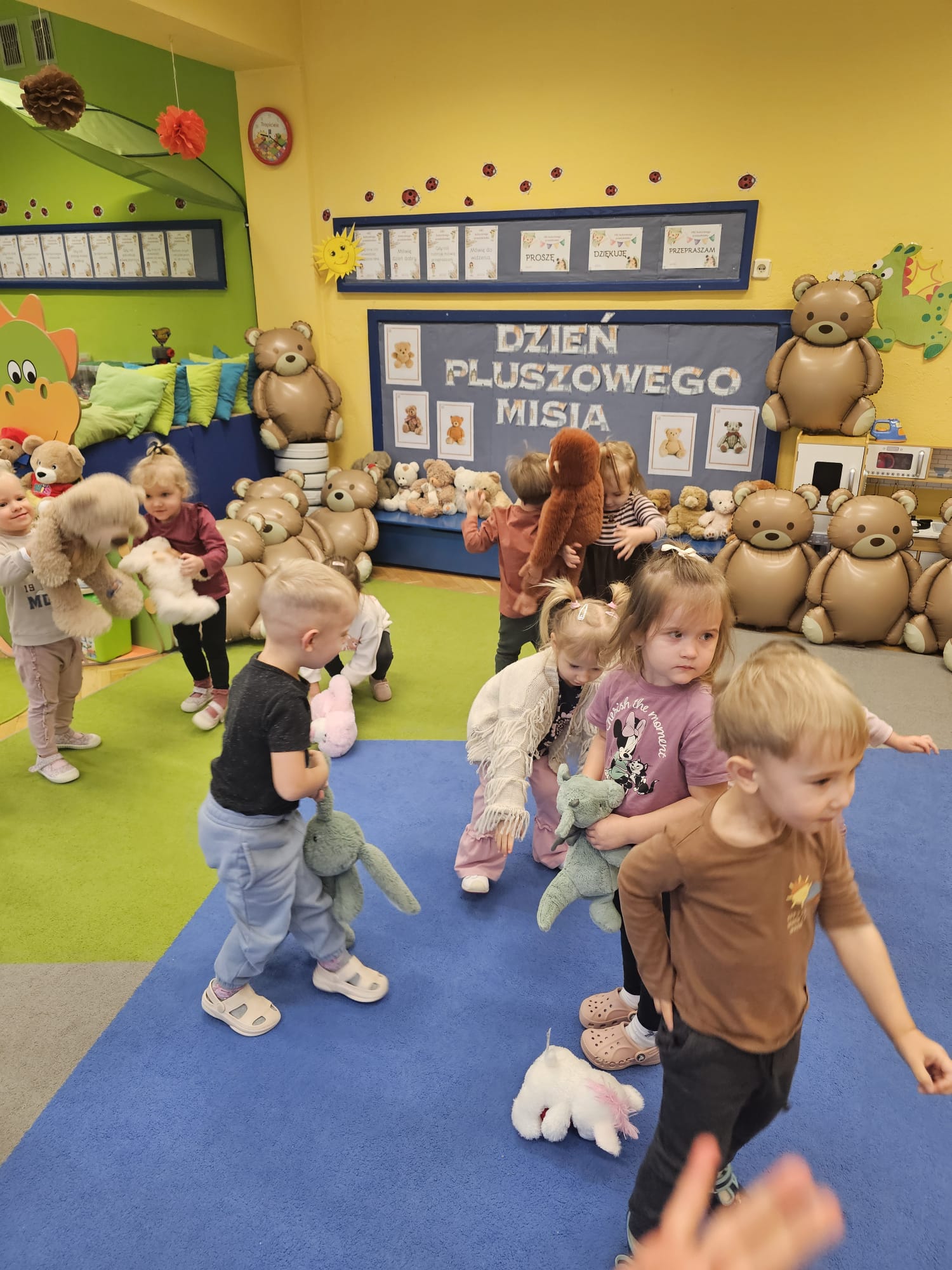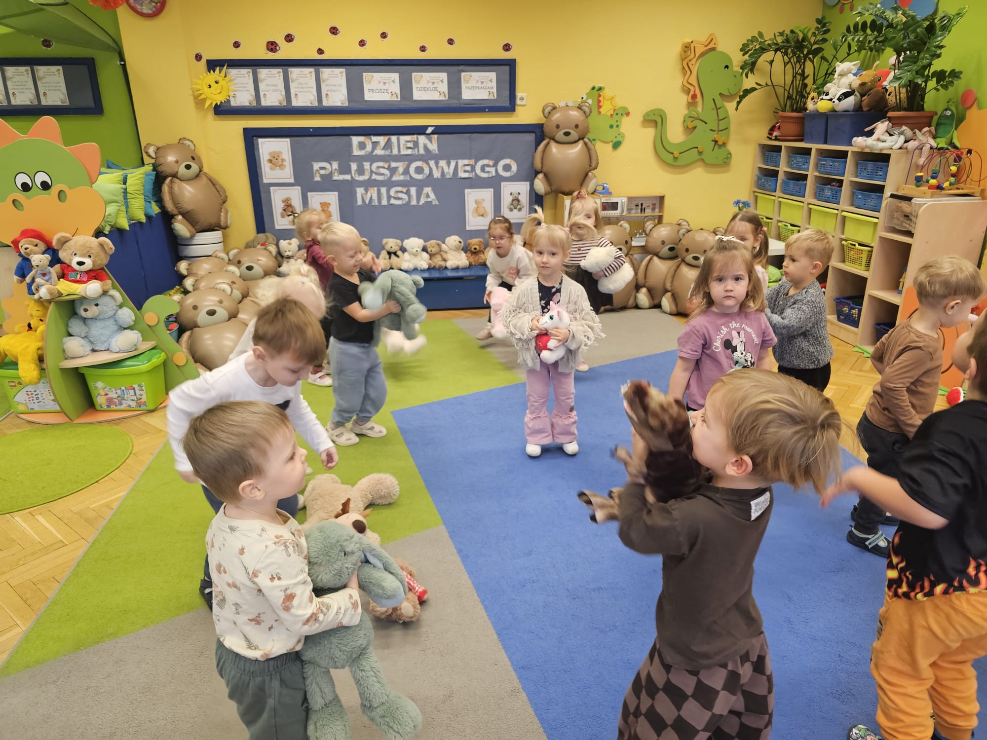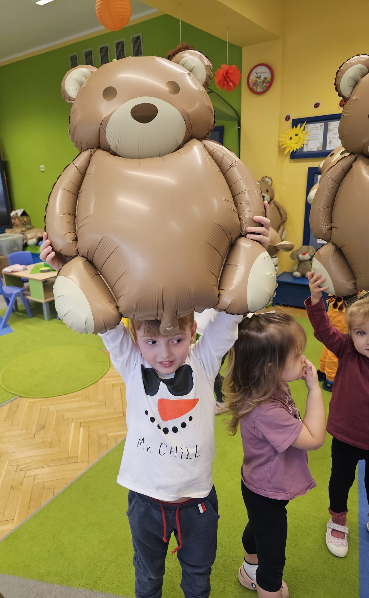„Czy to jutro, czy to dziś – wszystkim jest potrzebny miś!”. Te słowa Heleny Behlerowej były myślą przewodnią Światowego Dnia Pluszowego Misia obchodzonego dzisiaj w naszej grupie. To bardzo ważny dzień dla każdego przedszkolaka. Miś Pluszowy, a szczególnie ten własny, wyjątkowy i ukochany, nie jest przecież zwykłą, pluszową zabawką. Jest po to, żeby było się do kogo tulić, kiedy pada deszcz i jest smutno. Ma duże uszy, żeby mieć coś do targania i kochania. Ma też bardzo miękkie łapki, za które można trzymać, kiedy się tylko chce. Taki miękki, puchaty, czy taki z łatką, to najmilsza zabawka, najlepszy przyjaciel i niezastąpiona przytulanka przy zasypianiu. Trudno byłoby wyobrazić sobie świat dziecka bez pluszowego misia, bo to przecież towarzysz beztroskiej zabawy oraz przyjaciel i powiernik największych sekretów i tajemnic. Pluszowy Miś ma po prostu magiczne moce. Wierzymy, że potrafi odstraszyć złe duchy, jest wiernym kompanem zabawy i zawsze czuwa nad swoim przyjacielem. Jak mawiała Dominika Zielińska autorka wiersza pt.: „W świecie misia”- „Kto przytuli w ciemną noc? Kto ma pocieszania moc? Kto sekretów mych nie zdradzi? Kto w potrzebie mi doradzi? Mój przyjaciel Miś maleńki, co przegania wszystkie lęki.” (…) Nic więc dziwnego, że po prostu musi obchodzić swoje święto. STO LAT MISIU! – dziś tobie śpiewamy i pod sam sufit huśtamy.
