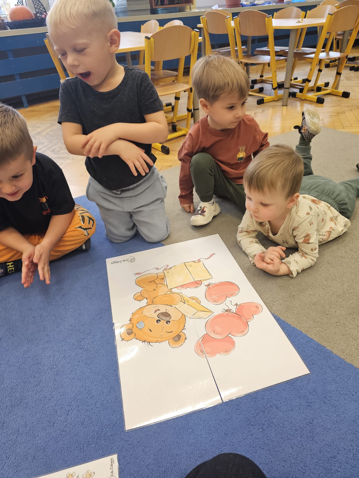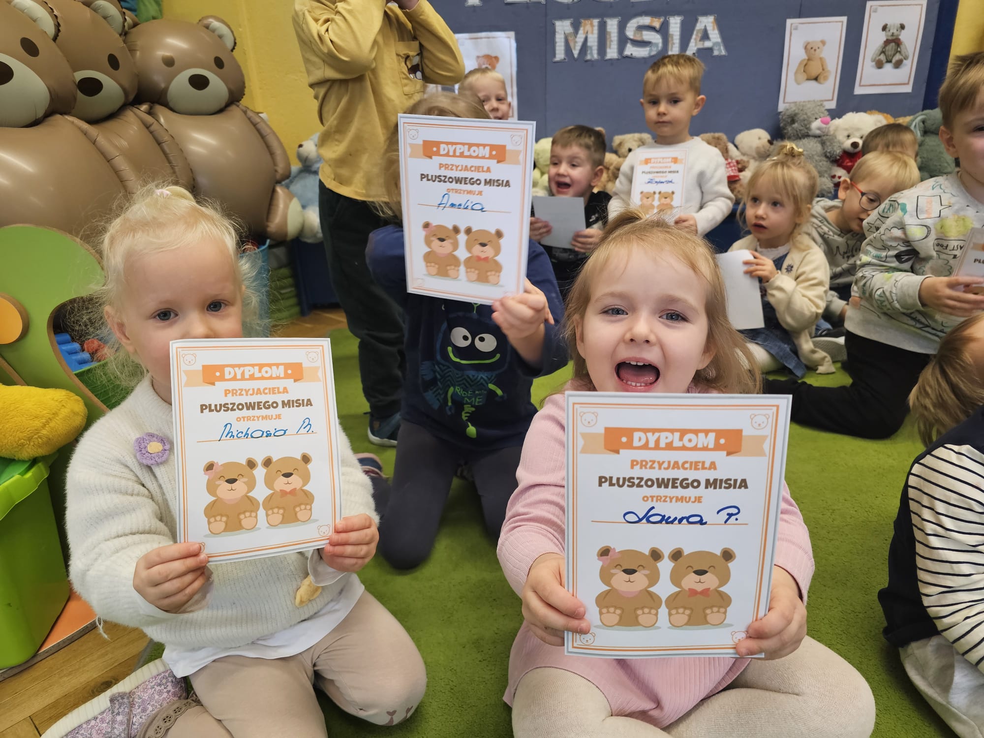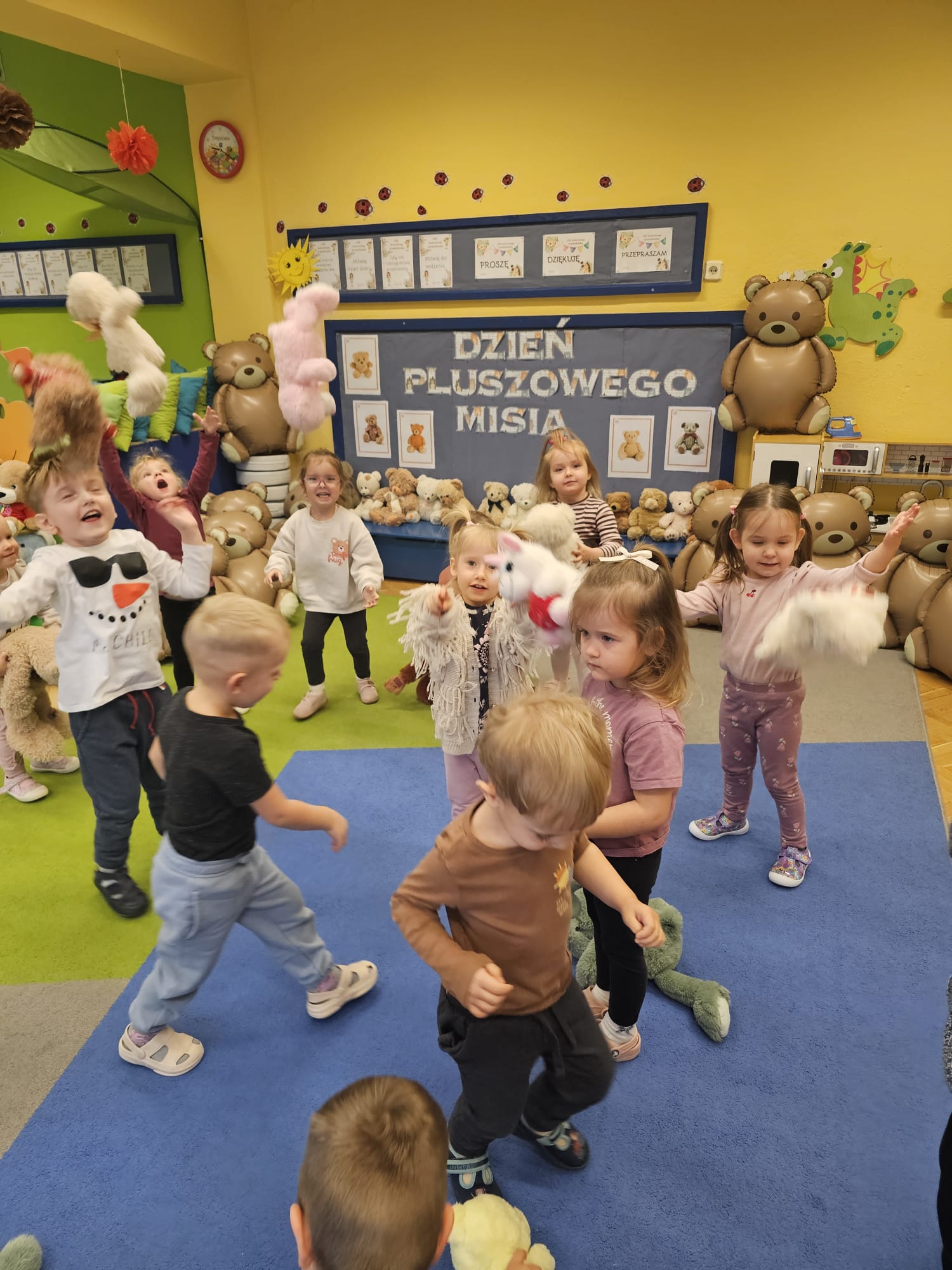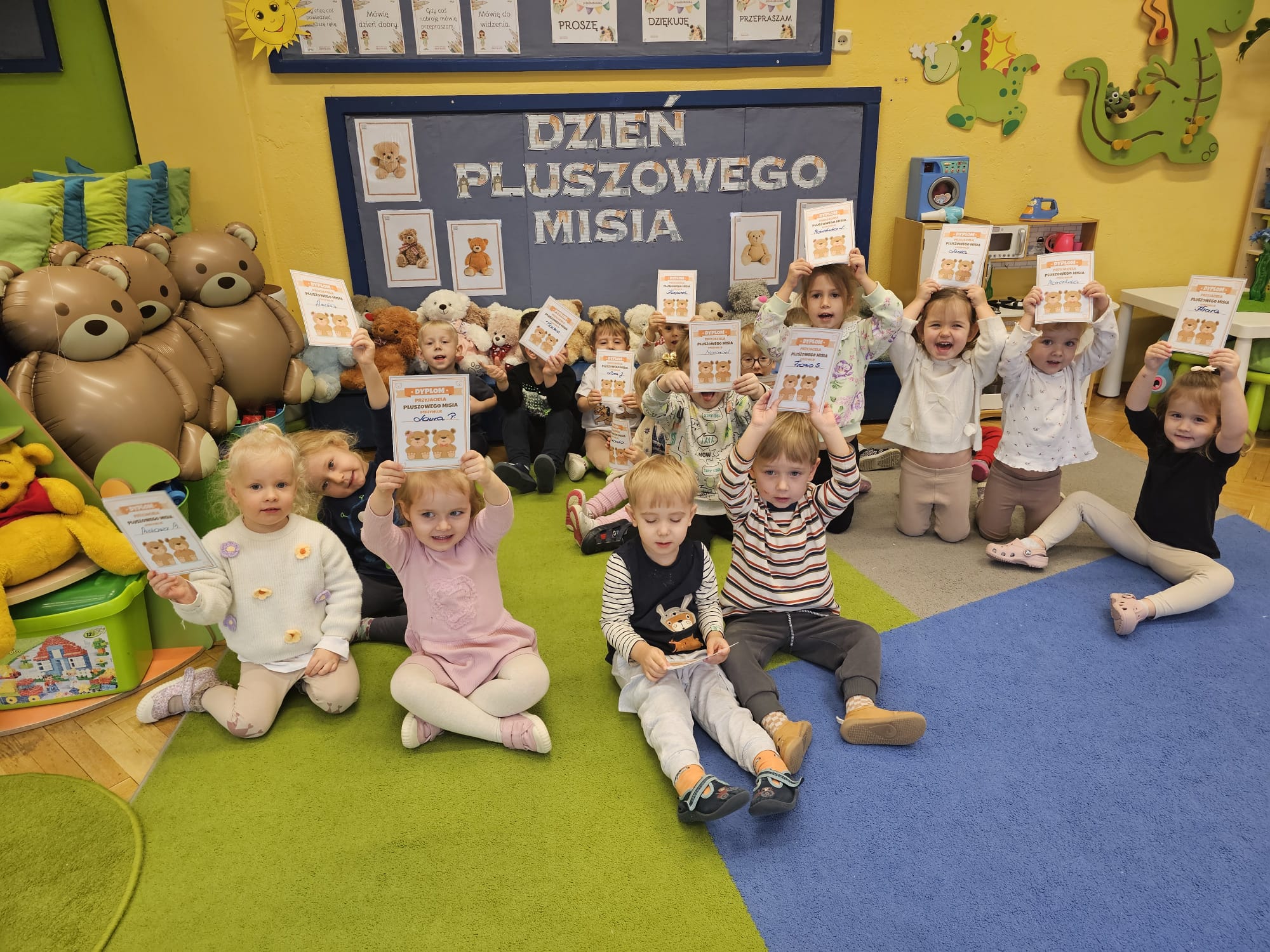 „Czy to jutro, czy to dziś – wszystkim jest potrzebny miś!”. Te słowa Heleny Behlerowej były myślą przewodnią Światowego Dnia Pluszowego Misia obchodzonego dzisiaj w naszej grupie. To bardzo ważny dzień dla każdego przedszkolaka. Miś Pluszowy, a szczególnie ten własny, wyjątkowy i ukochany, nie jest przecież zwykłą, pluszową zabawką. Jest po to, żeby było się do kogo tulić, kiedy pada deszcz i jest smutno. Ma duże uszy, żeby mieć coś do targania i kochania. Ma też bardzo miękkie łapki, za które można trzymać, kiedy się tylko chce. Taki miękki, puchaty, czy taki z łatką, to najmilsza zabawka, najlepszy przyjaciel i niezastąpiona przytulanka przy zasypianiu. Trudno byłoby wyobrazić sobie świat dziecka bez pluszowego misia, bo to przecież towarzysz beztroskiej zabawy oraz przyjaciel i powiernik największych sekretów i tajemnic. Pluszowy Miś ma po prostu magiczne moce. Wierzymy, że potrafi odstraszyć złe duchy, jest wiernym kompanem zabawy i zawsze czuwa nad swoim przyjacielem. Jak mawiała Dominika Zielińska autorka wiersza pt.: „W świecie misia”- „Kto przytuli w ciemną noc? Kto ma pocieszania moc? Kto sekretów mych nie zdradzi? Kto w potrzebie mi doradzi? Mój przyjaciel Miś maleńki, co przegania wszystkie lęki.” (…) Nic więc dziwnego, że po prostu musi obchodzić swoje święto. STO LAT MISIU! – dziś tobie śpiewamy i pod sam sufit huśtamy.