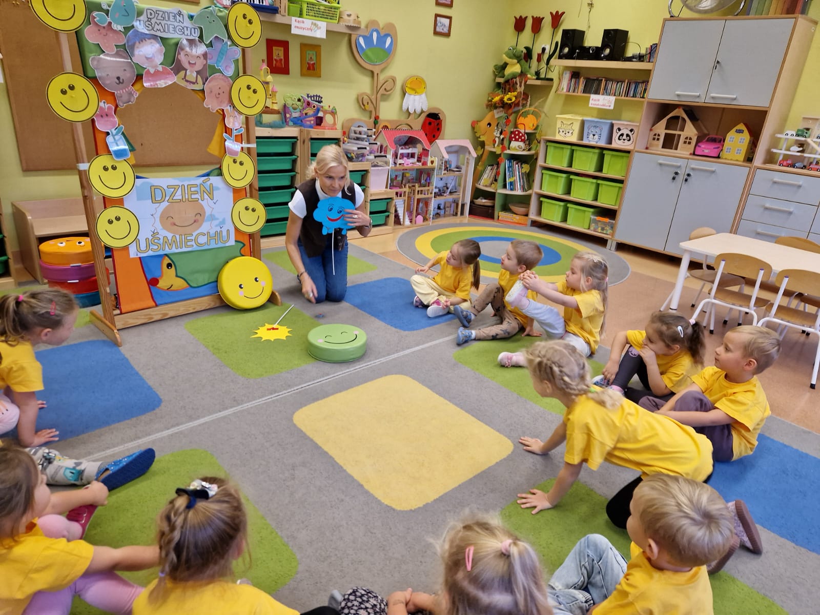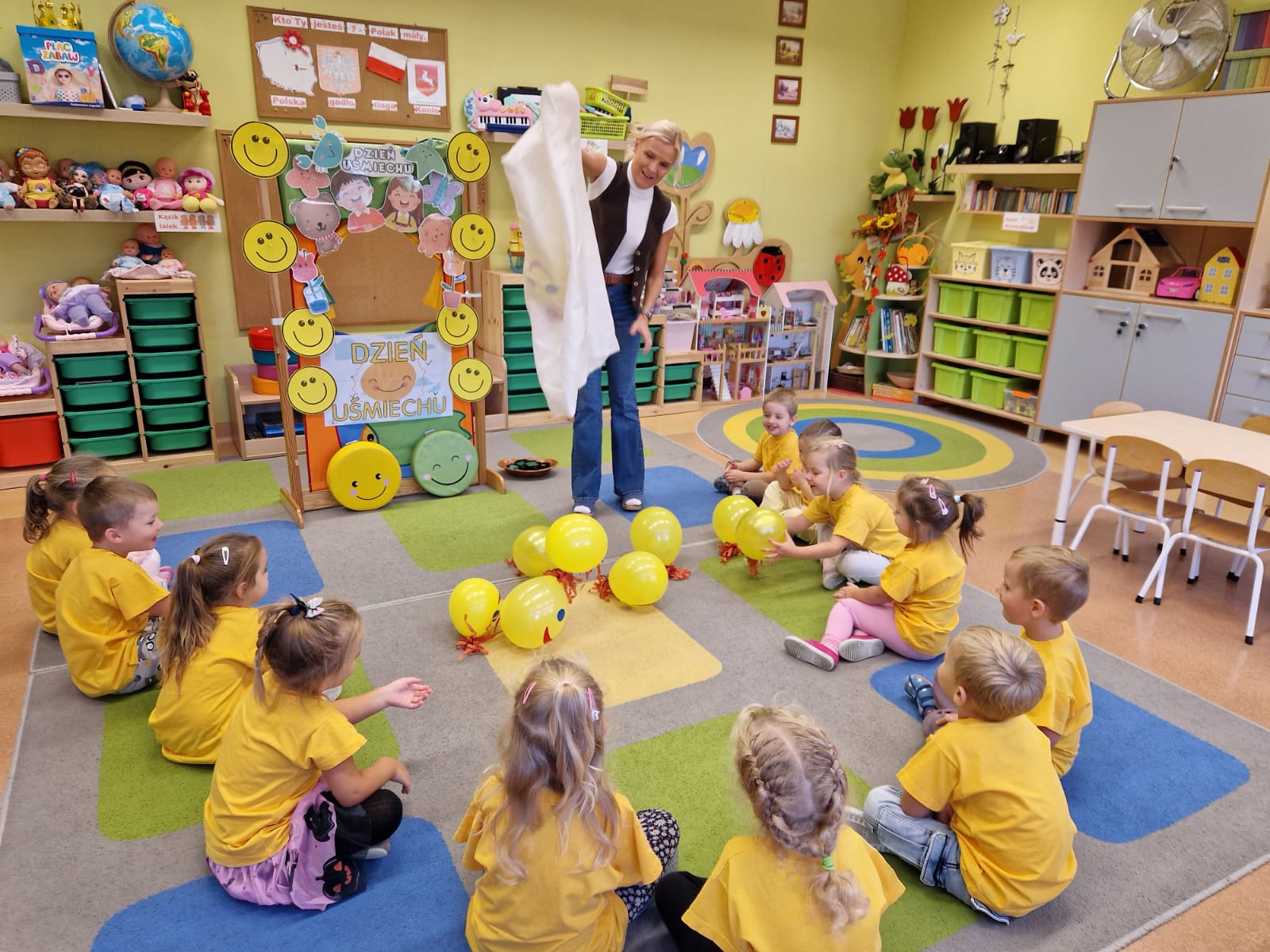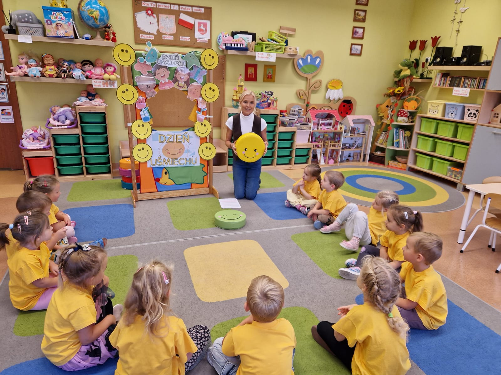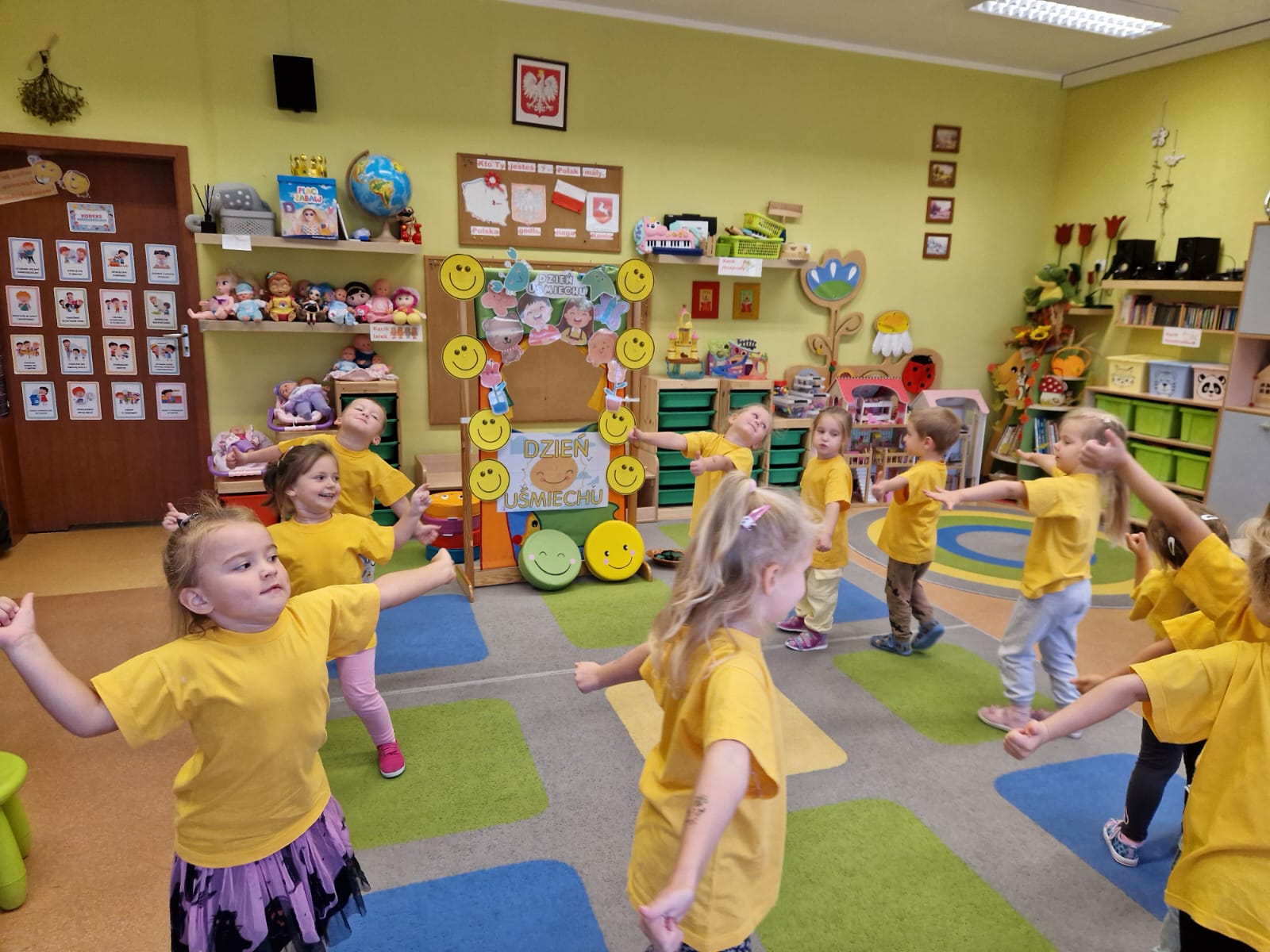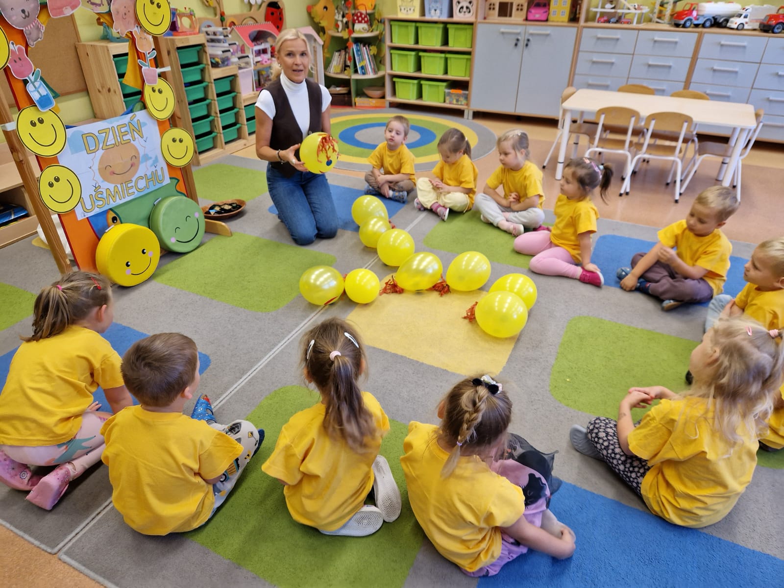 Czy wiecie, że w pierwszy piątek października każdego roku obchodzone jest bardzo wyjątkowe święto – Światowy Dzień Uśmiechu? W bieżącym roku szkolnym do świętowania Światowego Dnia Uśmiechu dołączyły przedszkolaki z grupy X i w piątek 03.10. 2025 r. uśmiech towarzyszył dzieciom już od rana. Ten radosny dzień został stworzony po to, abyśmy wszyscy przypomnieli sobie, jak ważny jest uśmiech w naszym życiu. Historia tego dnia sięga roku 1999, kiedy to amerykański artysta Harvey Ball, twórca słynnej żółtej, uśmiechniętej buzi, postanowił ogłosić jedno specjalne święto, które będzie przypominać ludziom na całym świecie, aby się więcej uśmiechali. Przedszkolne lata są niezwykle ważnym okresem w życiu każdego dziecka. To czas, w którym maluchy odkrywają świat, rozwijają swoje umiejętności społeczne, poznają emocje i uczą się jak budować relacje. Zamysł tego święta, realizowana innowacja pedagogiczna „ Kolorowe emocje”, a także tydzień budowania relacji stały się wyjątkową okazją, aby uświadomić najmłodszym, jaką moc ma UŚMIECH. Uśmiech, to przecież mały gest, który ma ogromne znaczenie dla dzieci w przedszkolu. To nie tylko wyraz sympatii czy radości, ale również narzędzie, które pomaga budować pozytywne relacje i sprzyja rozwojowi emocjonalnemu maluchów. Wszystkie zaaranżowane aktywności podczas świętowania Dnia Uśmiechu ... teatrzyk „ O wesołym słoneczku i smutnej chmurce”, zabawa” podaj uśmiech”, taniec z uśmiechem, czy też masażyk z „ uśmiechniętym dreszczykiem”, pozwoliły dzieciom poczuć moc uśmiechu, moc radości ze wspólnych zbaw. Razem uczyliśmy się, jak uśmiechać się i sprawiać, że inni się uśmiechają. Rozmawialiśmy o uśmiechu, tworzyliśmy uśmiechy, dzieliliśmy się uśmiechami i poznawaliśmy, jak uśmiech może sprawić, że świat staje się lepszy, przyjemniejszy i że uśmiech sprawia przyjemność nam i innym oraz niesie ze sobą dużo pozytywnej energii. Cele został osiągnięte zarówno w zakresie rozwijania umiejętności wyrażania pozytywnych emocji jak również w zakresie budowania relacji społecznych przez wspólną zabawę i wzmacniania własnej wartości. A jak było wesoło??? Zapraszamy do galerii.