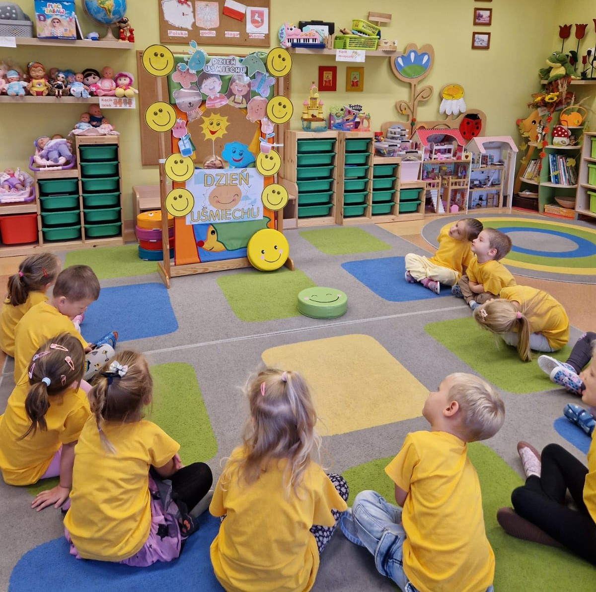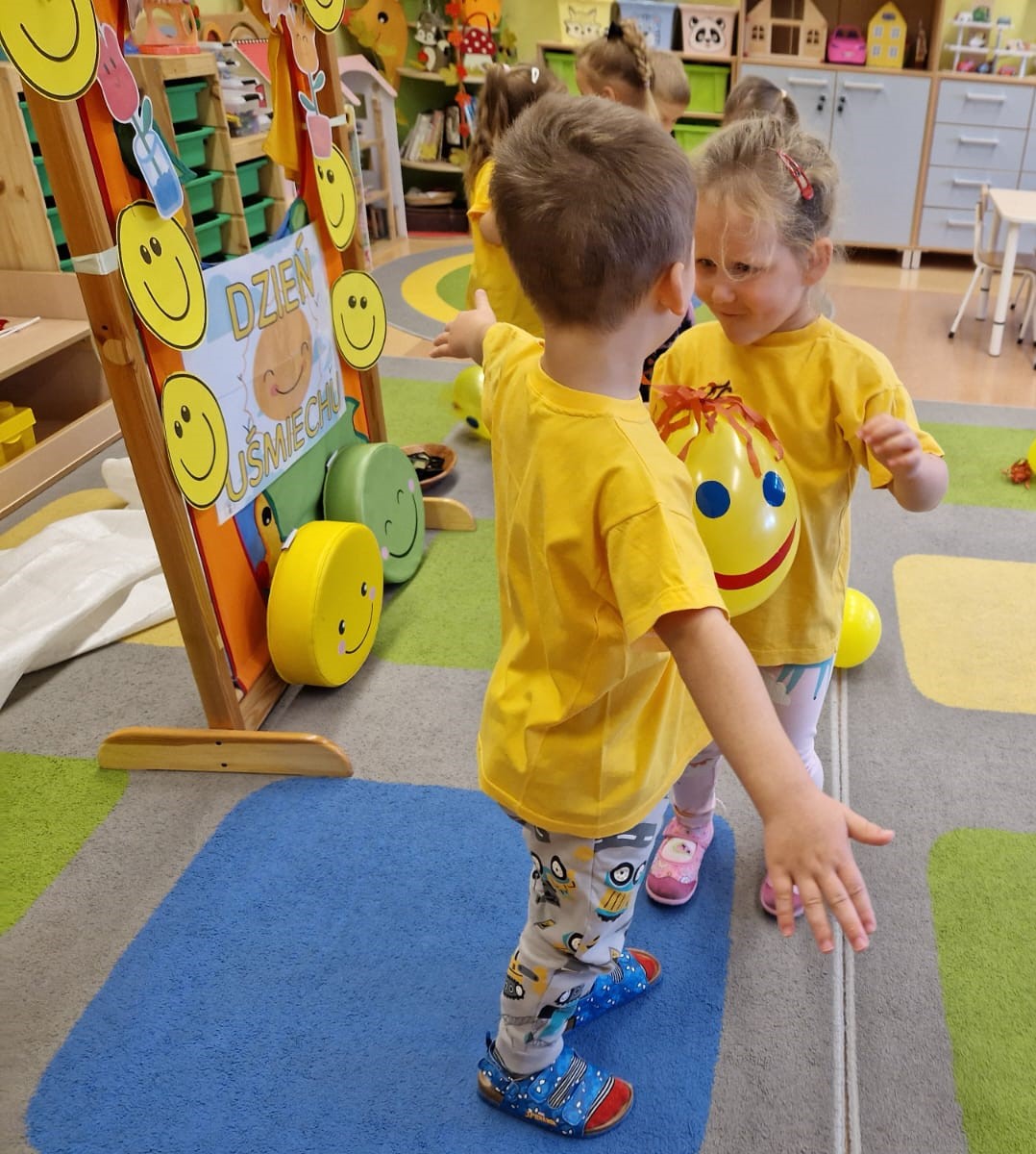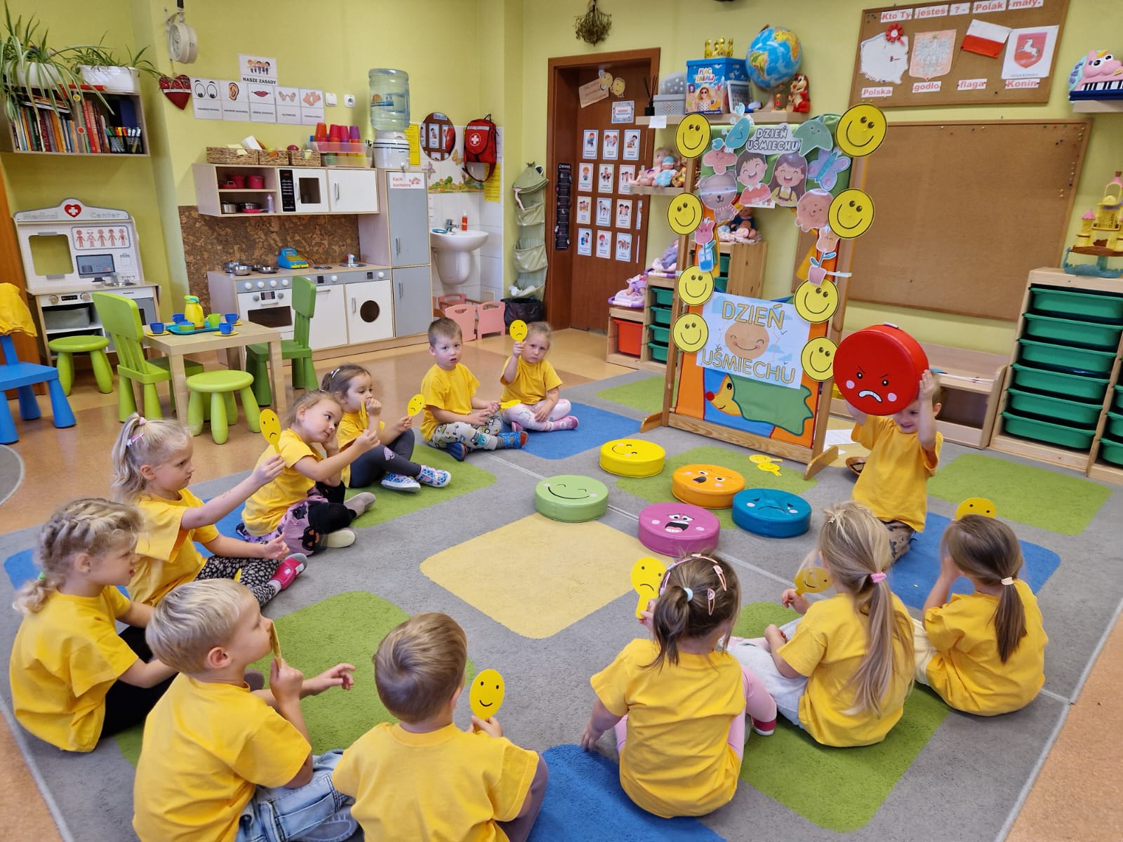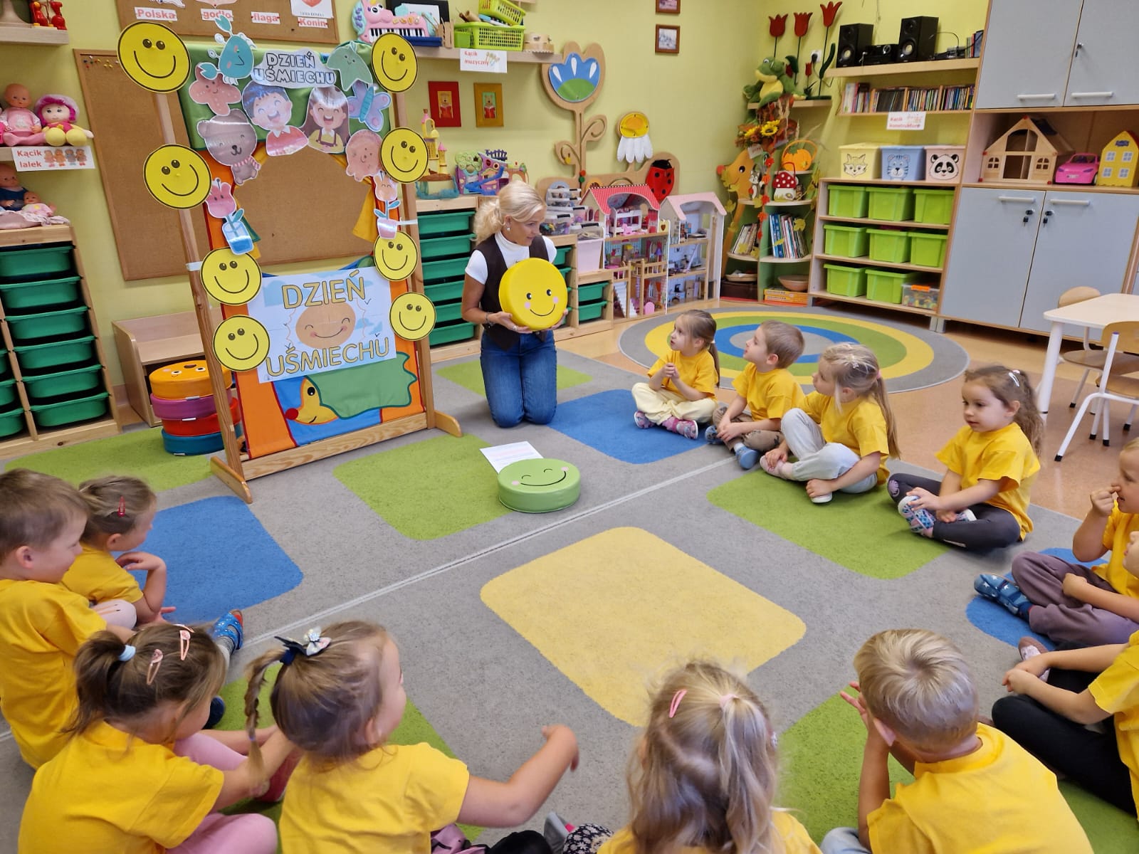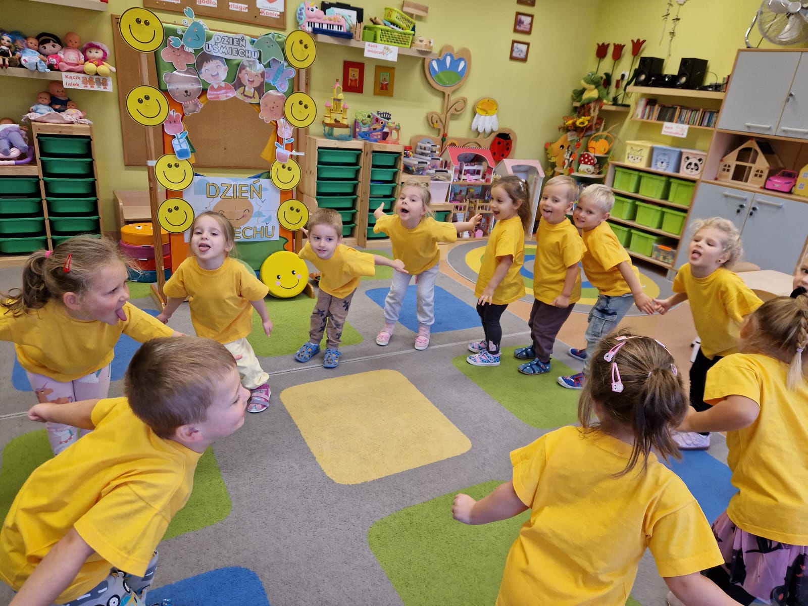 Czy wiecie, że w pierwszy piątek października każdego roku obchodzone jest bardzo wyjątkowe święto – Światowy Dzień Uśmiechu? W bieżącym roku szkolnym do świętowania Światowego Dnia Uśmiechu dołączyły przedszkolaki z grupy X i w piątek 03.10. 2025 r. uśmiech towarzyszył dzieciom już od rana. Ten radosny dzień został stworzony po to, abyśmy wszyscy przypomnieli sobie, jak ważny jest uśmiech w naszym życiu. Historia tego dnia sięga roku 1999, kiedy to amerykański artysta Harvey Ball, twórca słynnej żółtej, uśmiechniętej buzi, postanowił ogłosić jedno specjalne święto, które będzie przypominać ludziom na całym świecie, aby się więcej uśmiechali. Przedszkolne lata są niezwykle ważnym okresem w życiu każdego dziecka. To czas, w którym maluchy odkrywają świat, rozwijają swoje umiejętności społeczne, poznają emocje i uczą się jak budować relacje. Zamysł tego święta, realizowana innowacja pedagogiczna „ Kolorowe emocje”, a także tydzień budowania relacji stały się wyjątkową okazją, aby uświadomić najmłodszym, jaką moc ma UŚMIECH. Uśmiech, to przecież mały gest, który ma ogromne znaczenie dla dzieci w przedszkolu. To nie tylko wyraz sympatii czy radości, ale również narzędzie, które pomaga budować pozytywne relacje i sprzyja rozwojowi emocjonalnemu maluchów. Wszystkie zaaranżowane aktywności podczas świętowania Dnia Uśmiechu ... teatrzyk „ O wesołym słoneczku i smutnej chmurce”, zabawa” podaj uśmiech”, taniec z uśmiechem, czy też masażyk z „ uśmiechniętym dreszczykiem”, pozwoliły dzieciom poczuć moc uśmiechu, moc radości ze wspólnych zbaw. Razem uczyliśmy się, jak uśmiechać się i sprawiać, że inni się uśmiechają. Rozmawialiśmy o uśmiechu, tworzyliśmy uśmiechy, dzieliliśmy się uśmiechami i poznawaliśmy, jak uśmiech może sprawić, że świat staje się lepszy, przyjemniejszy i że uśmiech sprawia przyjemność nam i innym oraz niesie ze sobą dużo pozytywnej energii. Cele został osiągnięte zarówno w zakresie rozwijania umiejętności wyrażania pozytywnych emocji jak również w zakresie budowania relacji społecznych przez wspólną zabawę i wzmacniania własnej wartości. A jak było wesoło??? Zapraszamy do galerii.
