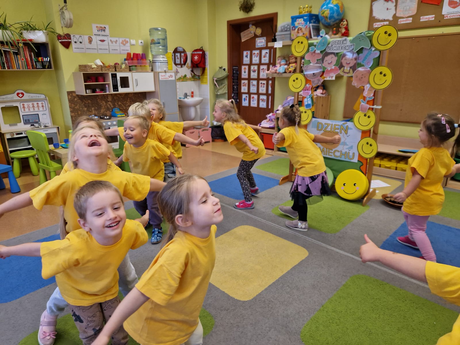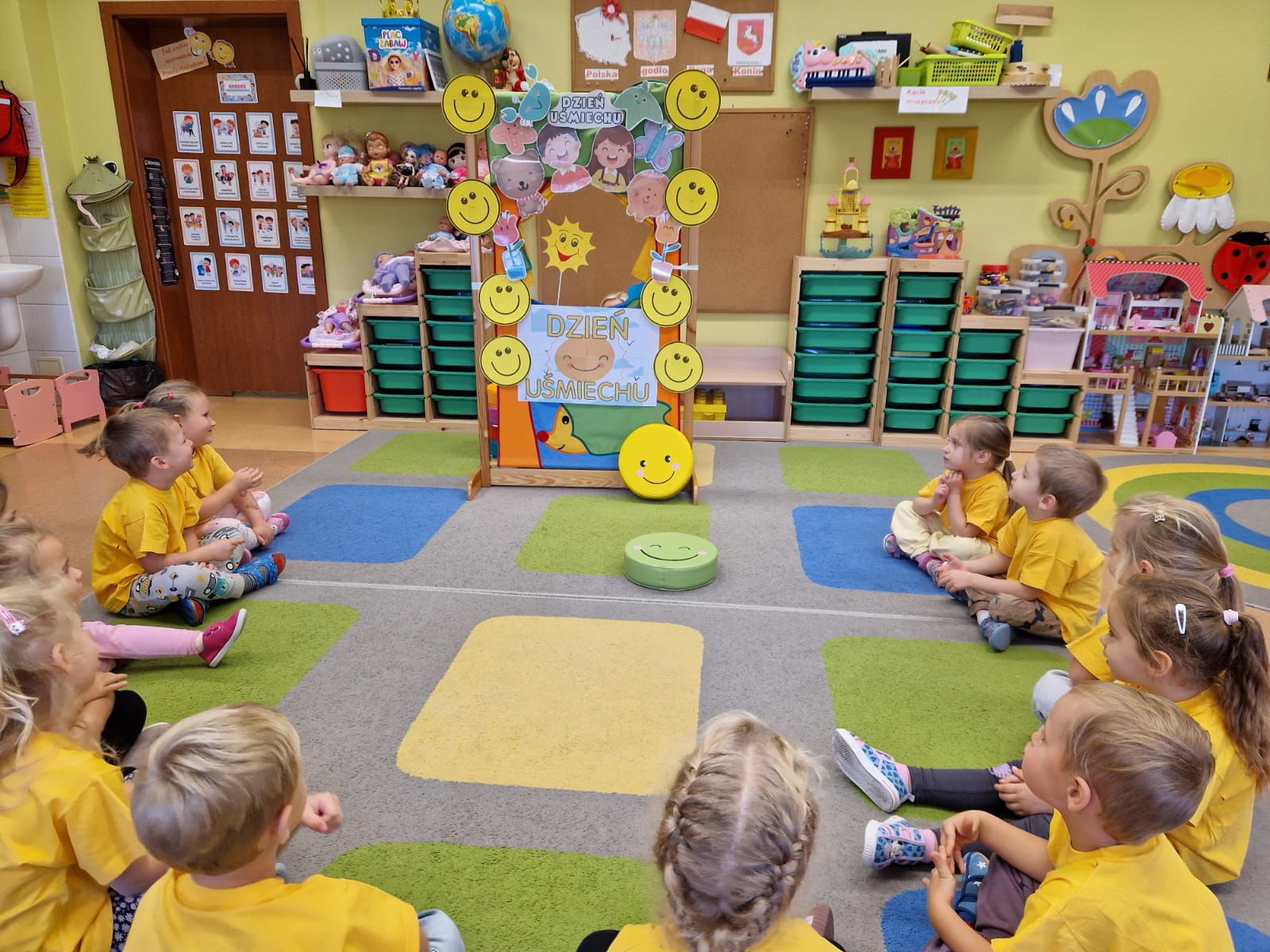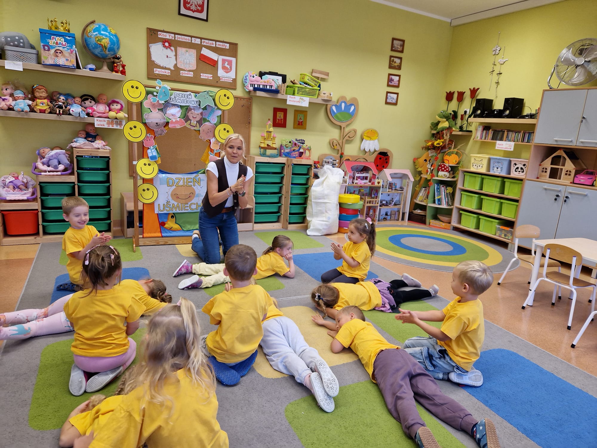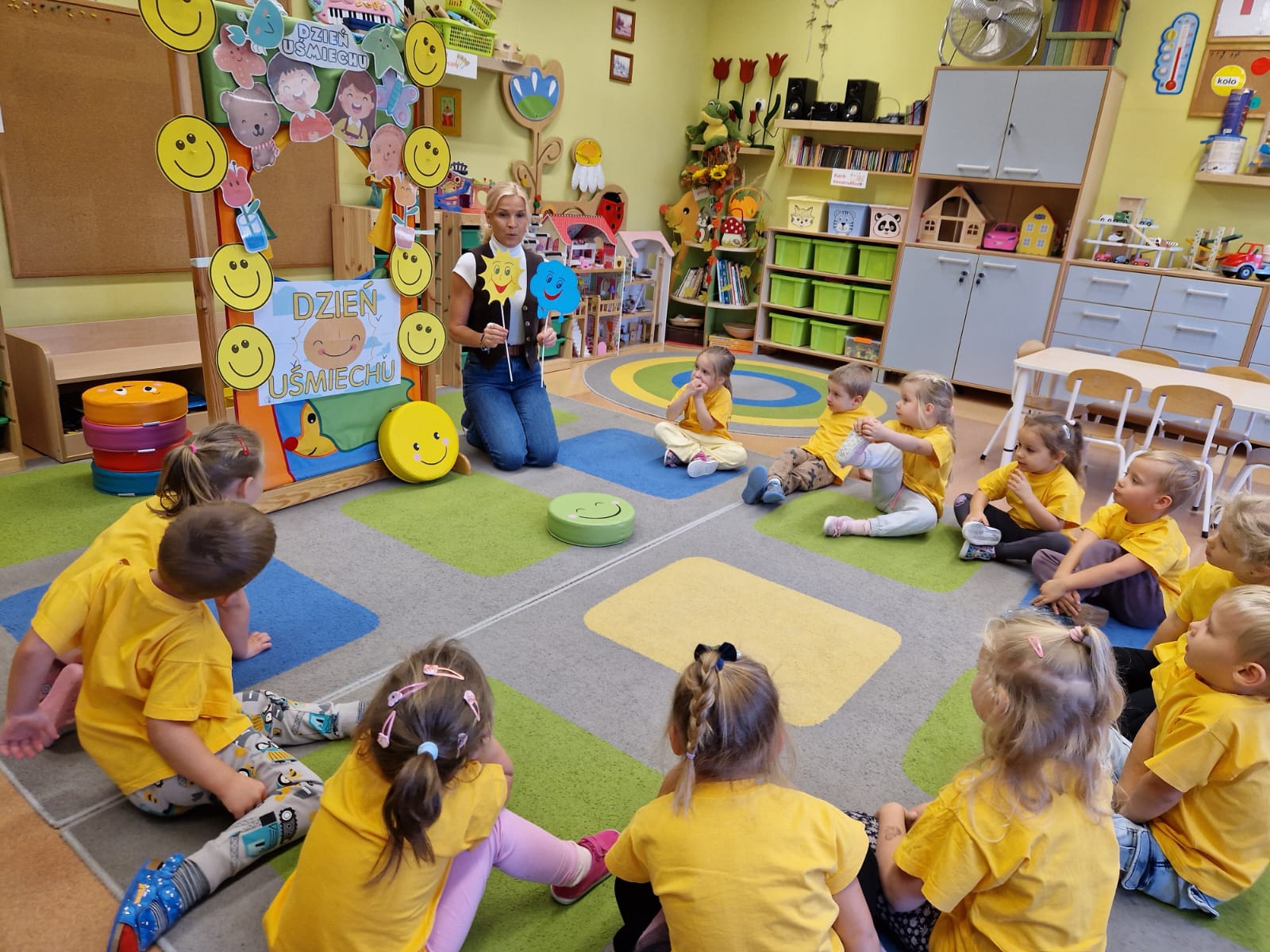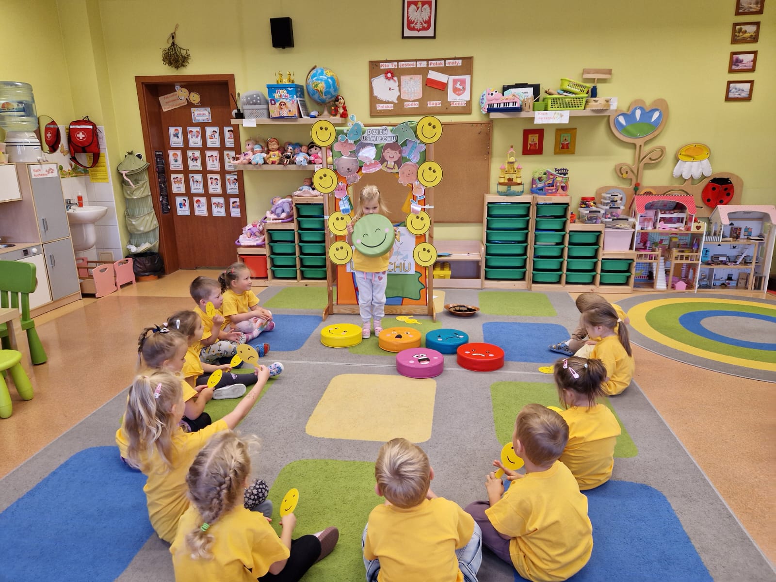 Czy wiecie, że w pierwszy piątek października każdego roku obchodzone jest bardzo wyjątkowe święto – Światowy Dzień Uśmiechu? W bieżącym roku szkolnym do świętowania Światowego Dnia Uśmiechu dołączyły przedszkolaki z grupy X i w piątek 03.10. 2025 r. uśmiech towarzyszył dzieciom już od rana. Ten radosny dzień został stworzony po to, abyśmy wszyscy przypomnieli sobie, jak ważny jest uśmiech w naszym życiu. Historia tego dnia sięga roku 1999, kiedy to amerykański artysta Harvey Ball, twórca słynnej żółtej, uśmiechniętej buzi, postanowił ogłosić jedno specjalne święto, które będzie przypominać ludziom na całym świecie, aby się więcej uśmiechali. Przedszkolne lata są niezwykle ważnym okresem w życiu każdego dziecka. To czas, w którym maluchy odkrywają świat, rozwijają swoje umiejętności społeczne, poznają emocje i uczą się jak budować relacje. Zamysł tego święta, realizowana innowacja pedagogiczna „ Kolorowe emocje”, a także tydzień budowania relacji stały się wyjątkową okazją, aby uświadomić najmłodszym, jaką moc ma UŚMIECH. Uśmiech, to przecież mały gest, który ma ogromne znaczenie dla dzieci w przedszkolu. To nie tylko wyraz sympatii czy radości, ale również narzędzie, które pomaga budować pozytywne relacje i sprzyja rozwojowi emocjonalnemu maluchów. Wszystkie zaaranżowane aktywności podczas świętowania Dnia Uśmiechu ... teatrzyk „ O wesołym słoneczku i smutnej chmurce”, zabawa” podaj uśmiech”, taniec z uśmiechem, czy też masażyk z „ uśmiechniętym dreszczykiem”, pozwoliły dzieciom poczuć moc uśmiechu, moc radości ze wspólnych zbaw. Razem uczyliśmy się, jak uśmiechać się i sprawiać, że inni się uśmiechają. Rozmawialiśmy o uśmiechu, tworzyliśmy uśmiechy, dzieliliśmy się uśmiechami i poznawaliśmy, jak uśmiech może sprawić, że świat staje się lepszy, przyjemniejszy i że uśmiech sprawia przyjemność nam i innym oraz niesie ze sobą dużo pozytywnej energii. Cele został osiągnięte zarówno w zakresie rozwijania umiejętności wyrażania pozytywnych emocji jak również w zakresie budowania relacji społecznych przez wspólną zabawę i wzmacniania własnej wartości. A jak było wesoło??? Zapraszamy do galerii.