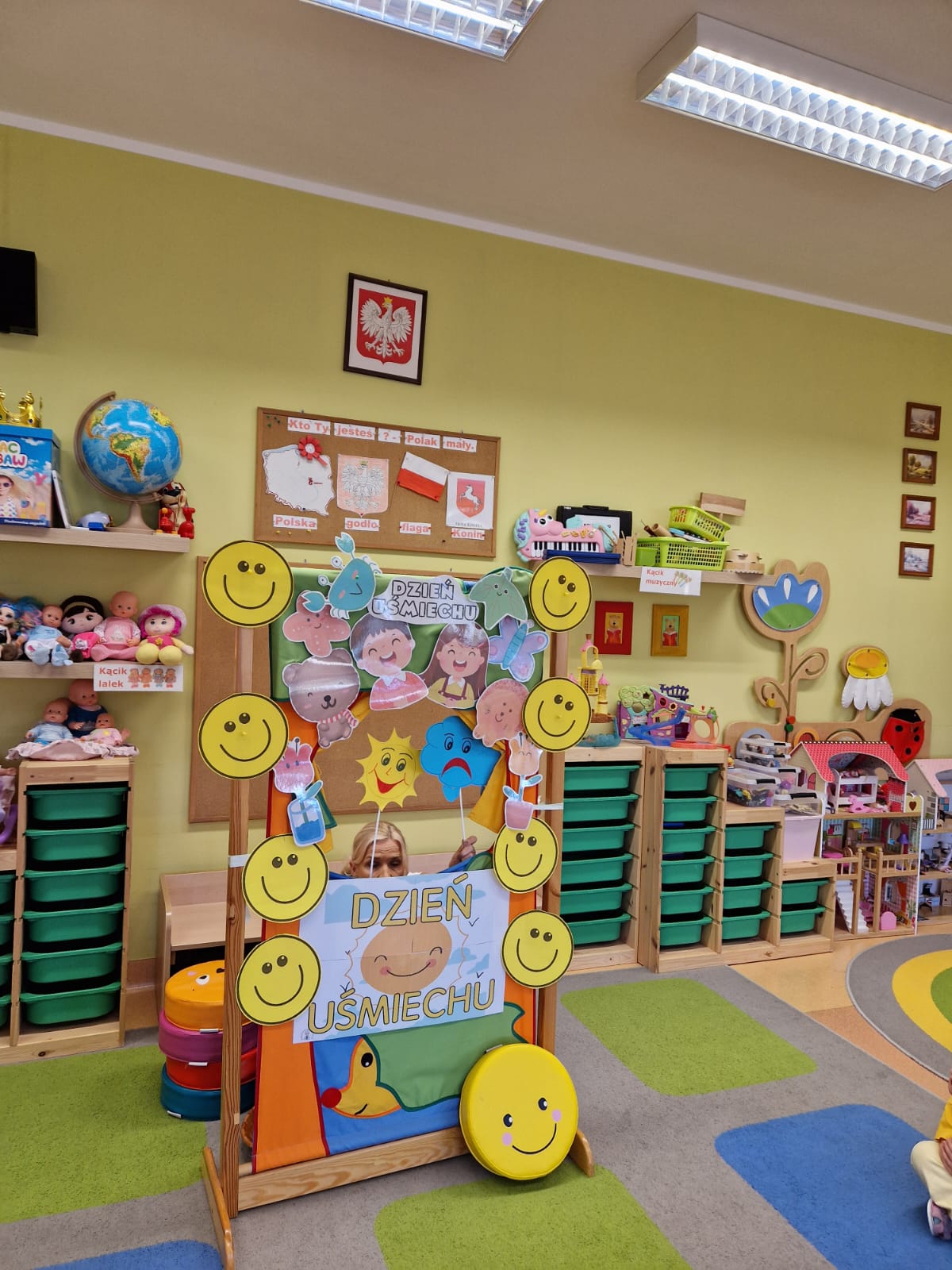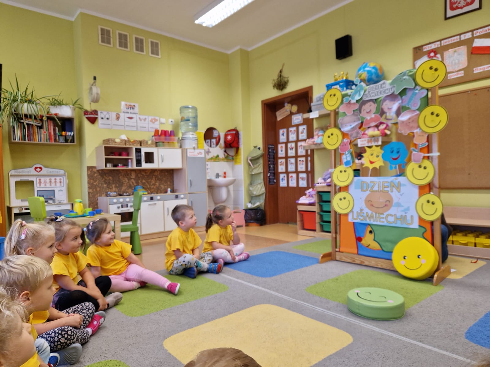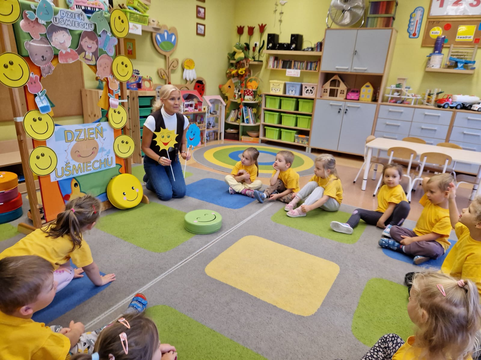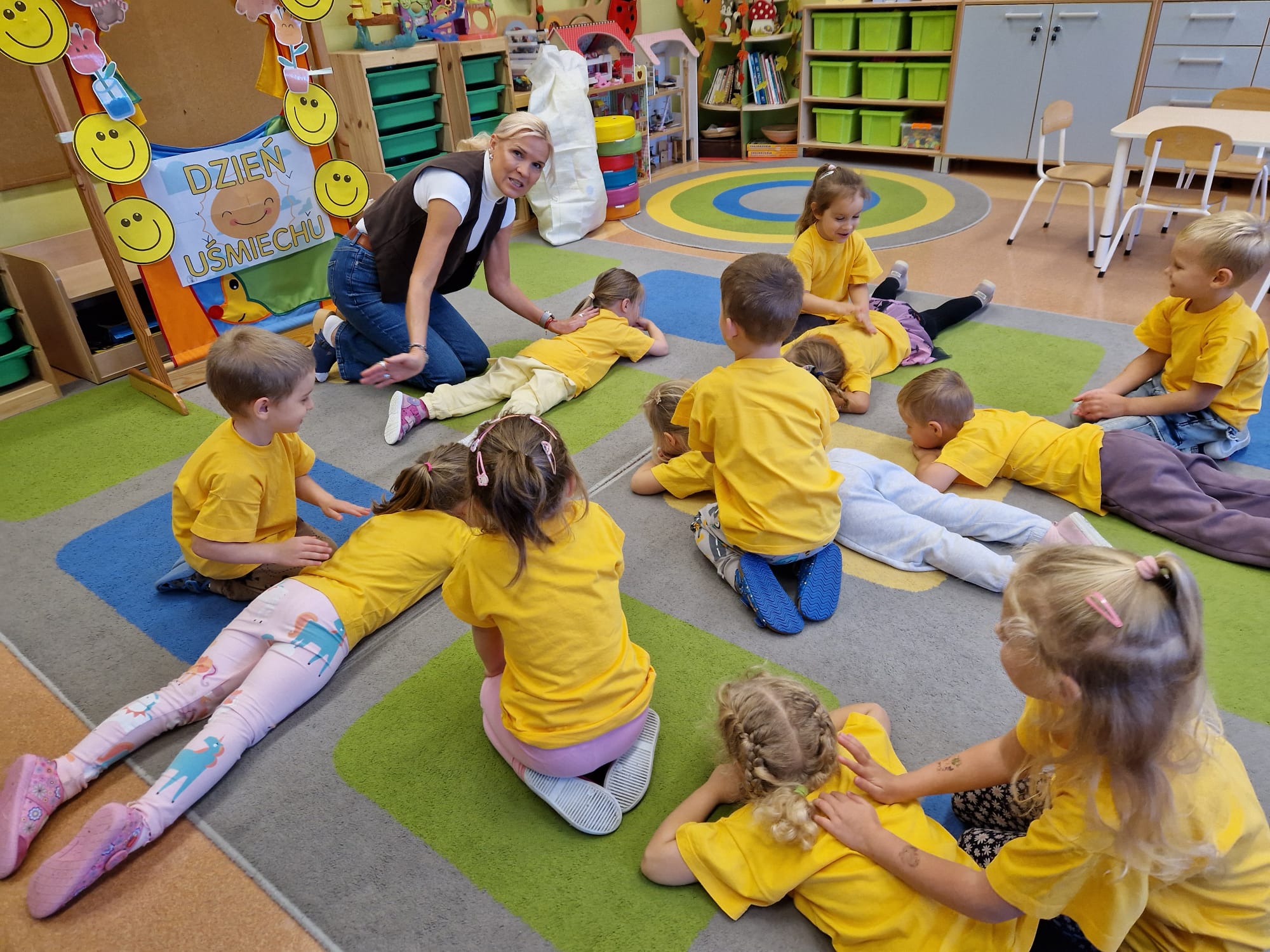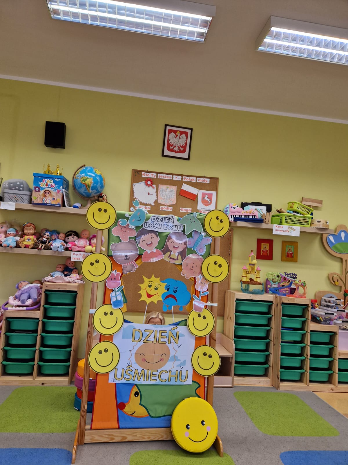 Czy wiecie, że w pierwszy piątek października każdego roku obchodzone jest bardzo wyjątkowe święto – Światowy Dzień Uśmiechu? W bieżącym roku szkolnym do świętowania Światowego Dnia Uśmiechu dołączyły przedszkolaki z grupy X i w piątek 03.10. 2025 r. uśmiech towarzyszył dzieciom już od rana. Ten radosny dzień został stworzony po to, abyśmy wszyscy przypomnieli sobie, jak ważny jest uśmiech w naszym życiu. Historia tego dnia sięga roku 1999, kiedy to amerykański artysta Harvey Ball, twórca słynnej żółtej, uśmiechniętej buzi, postanowił ogłosić jedno specjalne święto, które będzie przypominać ludziom na całym świecie, aby się więcej uśmiechali. Przedszkolne lata są niezwykle ważnym okresem w życiu każdego dziecka. To czas, w którym maluchy odkrywają świat, rozwijają swoje umiejętności społeczne, poznają emocje i uczą się jak budować relacje. Zamysł tego święta, realizowana innowacja pedagogiczna „ Kolorowe emocje”, a także tydzień budowania relacji stały się wyjątkową okazją, aby uświadomić najmłodszym, jaką moc ma UŚMIECH. Uśmiech, to przecież mały gest, który ma ogromne znaczenie dla dzieci w przedszkolu. To nie tylko wyraz sympatii czy radości, ale również narzędzie, które pomaga budować pozytywne relacje i sprzyja rozwojowi emocjonalnemu maluchów. Wszystkie zaaranżowane aktywności podczas świętowania Dnia Uśmiechu ... teatrzyk „ O wesołym słoneczku i smutnej chmurce”, zabawa” podaj uśmiech”, taniec z uśmiechem, czy też masażyk z „ uśmiechniętym dreszczykiem”, pozwoliły dzieciom poczuć moc uśmiechu, moc radości ze wspólnych zbaw. Razem uczyliśmy się, jak uśmiechać się i sprawiać, że inni się uśmiechają. Rozmawialiśmy o uśmiechu, tworzyliśmy uśmiechy, dzieliliśmy się uśmiechami i poznawaliśmy, jak uśmiech może sprawić, że świat staje się lepszy, przyjemniejszy i że uśmiech sprawia przyjemność nam i innym oraz niesie ze sobą dużo pozytywnej energii. Cele został osiągnięte zarówno w zakresie rozwijania umiejętności wyrażania pozytywnych emocji jak również w zakresie budowania relacji społecznych przez wspólną zabawę i wzmacniania własnej wartości. A jak było wesoło??? Zapraszamy do galerii.