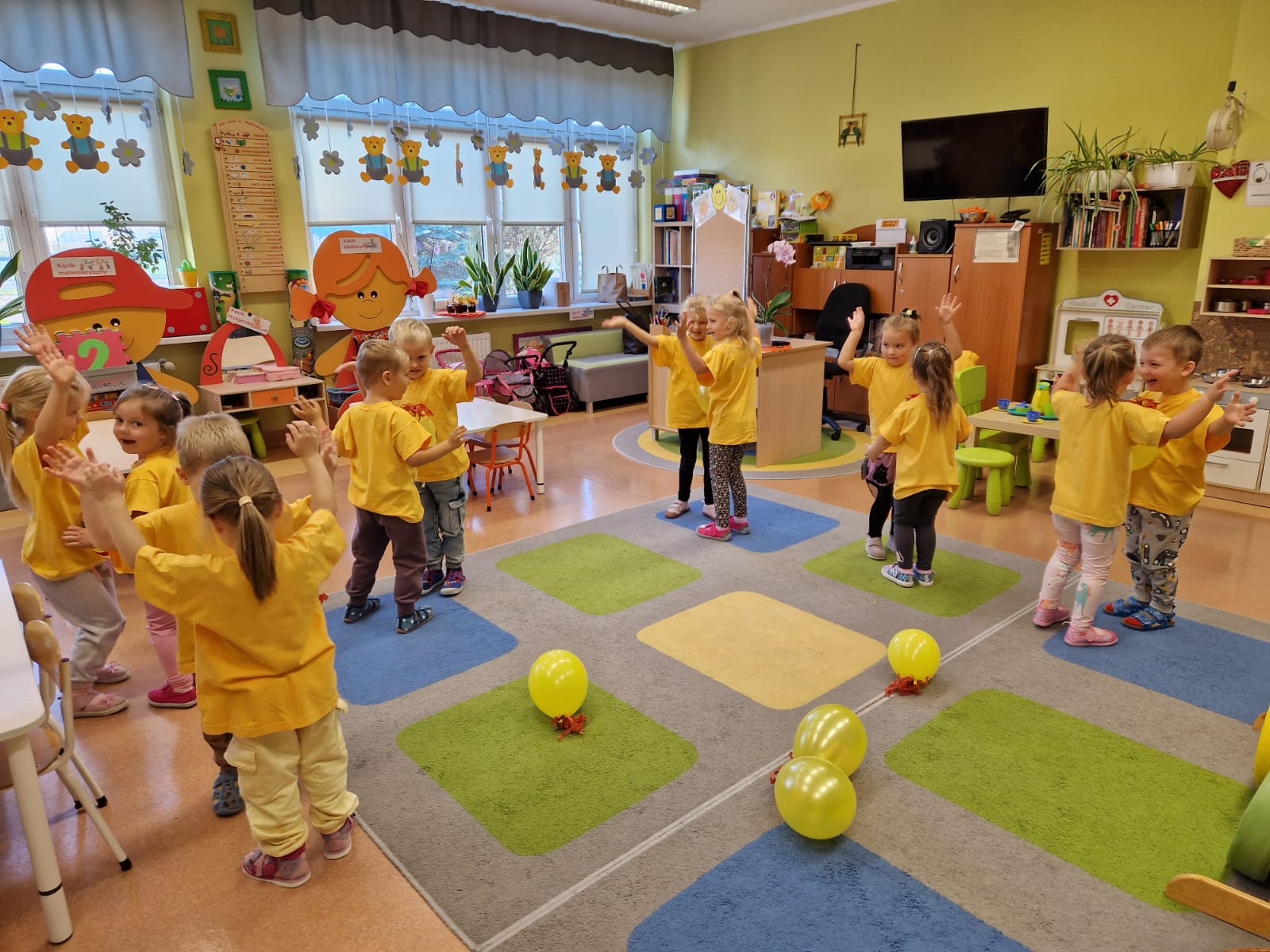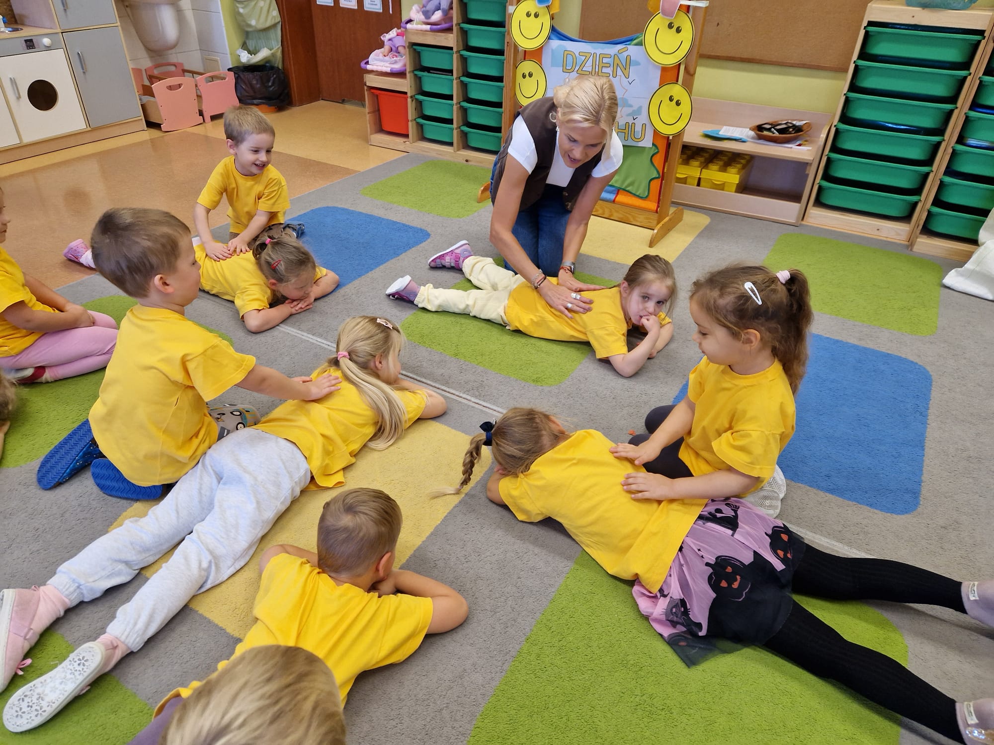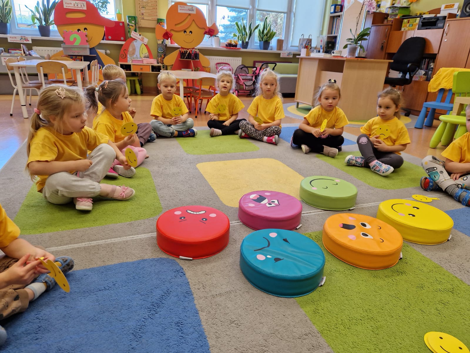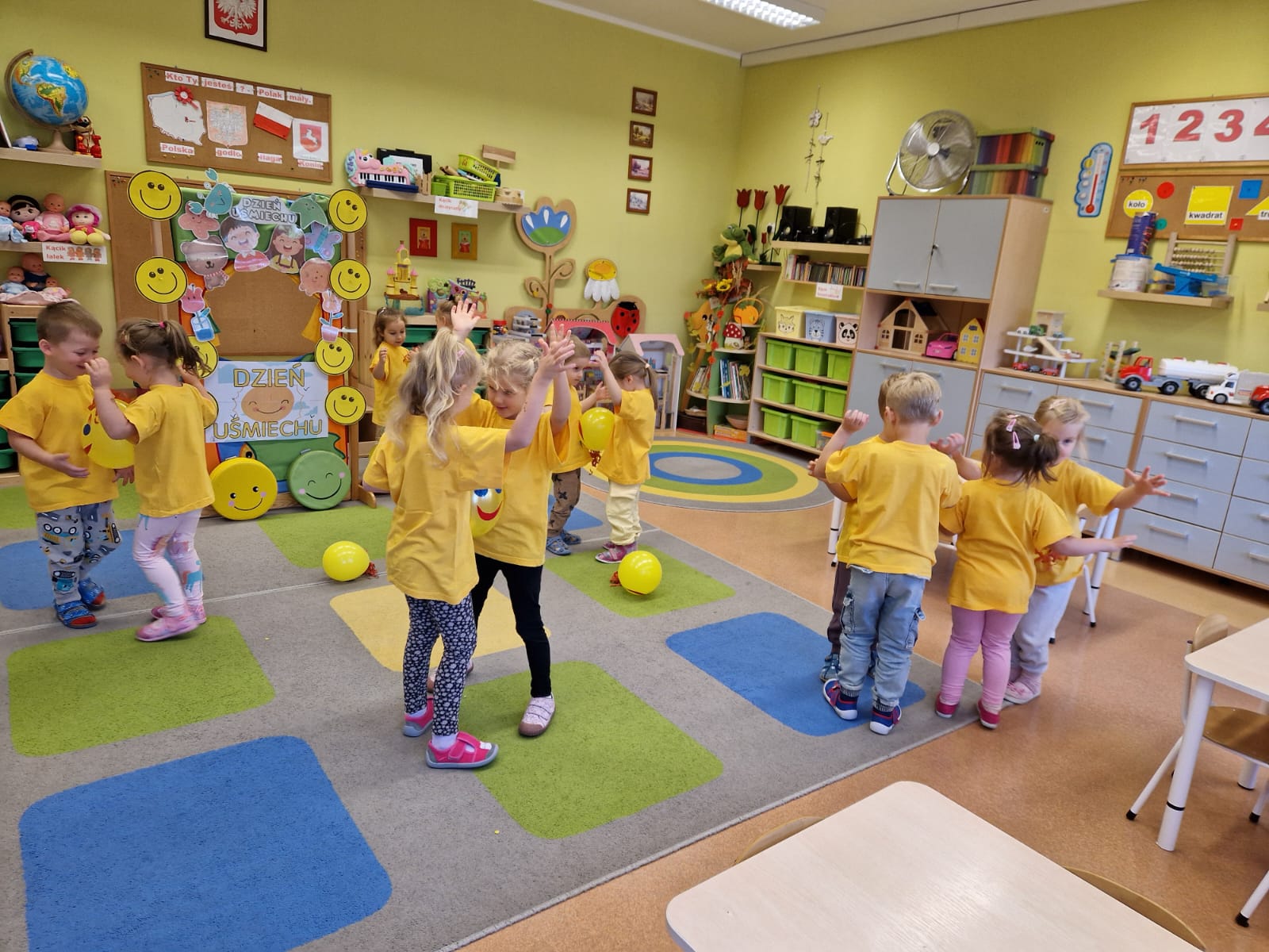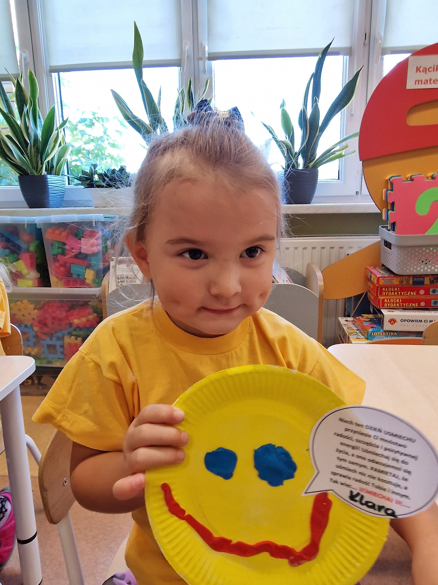 Czy wiecie, że w pierwszy piątek października każdego roku obchodzone jest bardzo wyjątkowe święto – Światowy Dzień Uśmiechu? W bieżącym roku szkolnym do świętowania Światowego Dnia Uśmiechu dołączyły przedszkolaki z grupy X i w piątek 03.10. 2025 r. uśmiech towarzyszył dzieciom już od rana. Ten radosny dzień został stworzony po to, abyśmy wszyscy przypomnieli sobie, jak ważny jest uśmiech w naszym życiu. Historia tego dnia sięga roku 1999, kiedy to amerykański artysta Harvey Ball, twórca słynnej żółtej, uśmiechniętej buzi, postanowił ogłosić jedno specjalne święto, które będzie przypominać ludziom na całym świecie, aby się więcej uśmiechali. Przedszkolne lata są niezwykle ważnym okresem w życiu każdego dziecka. To czas, w którym maluchy odkrywają świat, rozwijają swoje umiejętności społeczne, poznają emocje i uczą się jak budować relacje. Zamysł tego święta, realizowana innowacja pedagogiczna „ Kolorowe emocje”, a także tydzień budowania relacji stały się wyjątkową okazją, aby uświadomić najmłodszym, jaką moc ma UŚMIECH. Uśmiech, to przecież mały gest, który ma ogromne znaczenie dla dzieci w przedszkolu. To nie tylko wyraz sympatii czy radości, ale również narzędzie, które pomaga budować pozytywne relacje i sprzyja rozwojowi emocjonalnemu maluchów. Wszystkie zaaranżowane aktywności podczas świętowania Dnia Uśmiechu ... teatrzyk „ O wesołym słoneczku i smutnej chmurce”, zabawa” podaj uśmiech”, taniec z uśmiechem, czy też masażyk z „ uśmiechniętym dreszczykiem”, pozwoliły dzieciom poczuć moc uśmiechu, moc radości ze wspólnych zbaw. Razem uczyliśmy się, jak uśmiechać się i sprawiać, że inni się uśmiechają. Rozmawialiśmy o uśmiechu, tworzyliśmy uśmiechy, dzieliliśmy się uśmiechami i poznawaliśmy, jak uśmiech może sprawić, że świat staje się lepszy, przyjemniejszy i że uśmiech sprawia przyjemność nam i innym oraz niesie ze sobą dużo pozytywnej energii. Cele został osiągnięte zarówno w zakresie rozwijania umiejętności wyrażania pozytywnych emocji jak również w zakresie budowania relacji społecznych przez wspólną zabawę i wzmacniania własnej wartości. A jak było wesoło??? Zapraszamy do galerii.