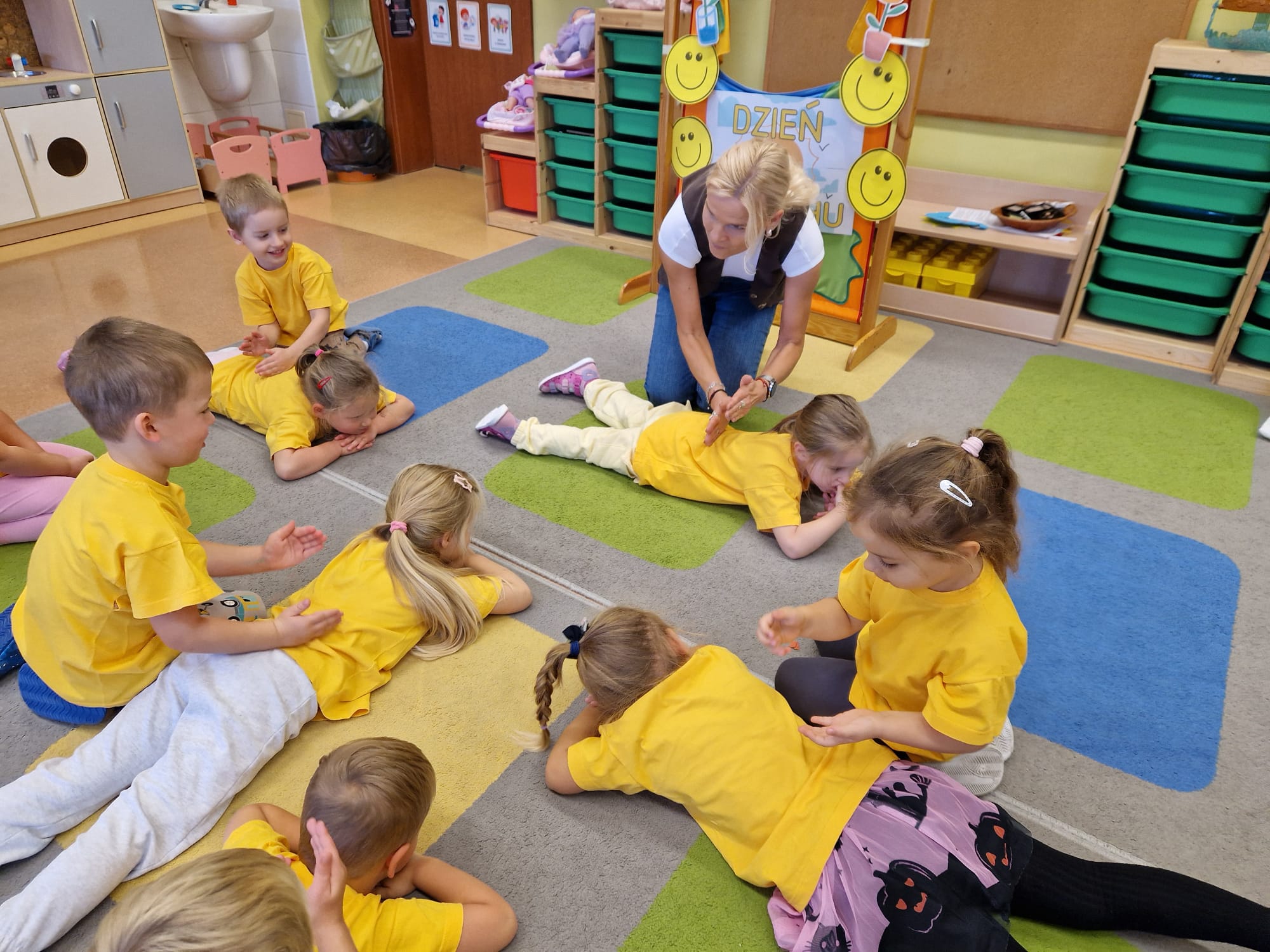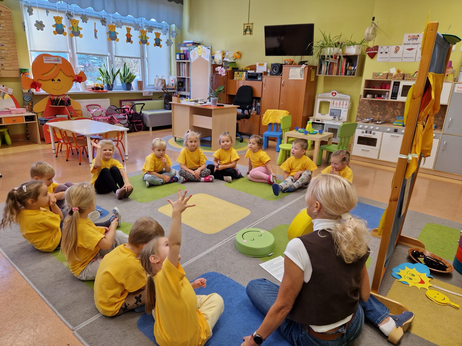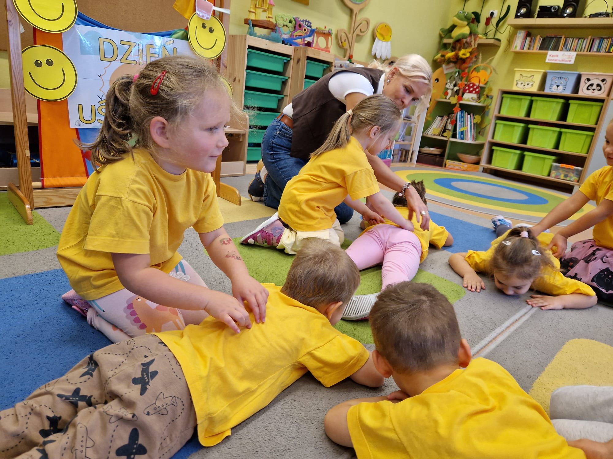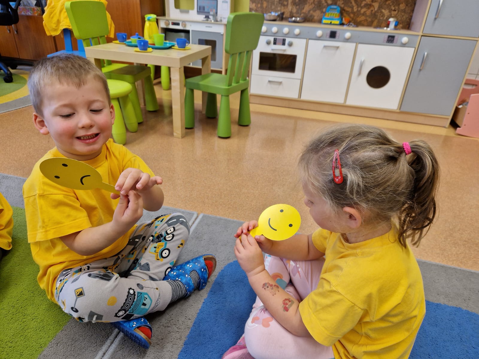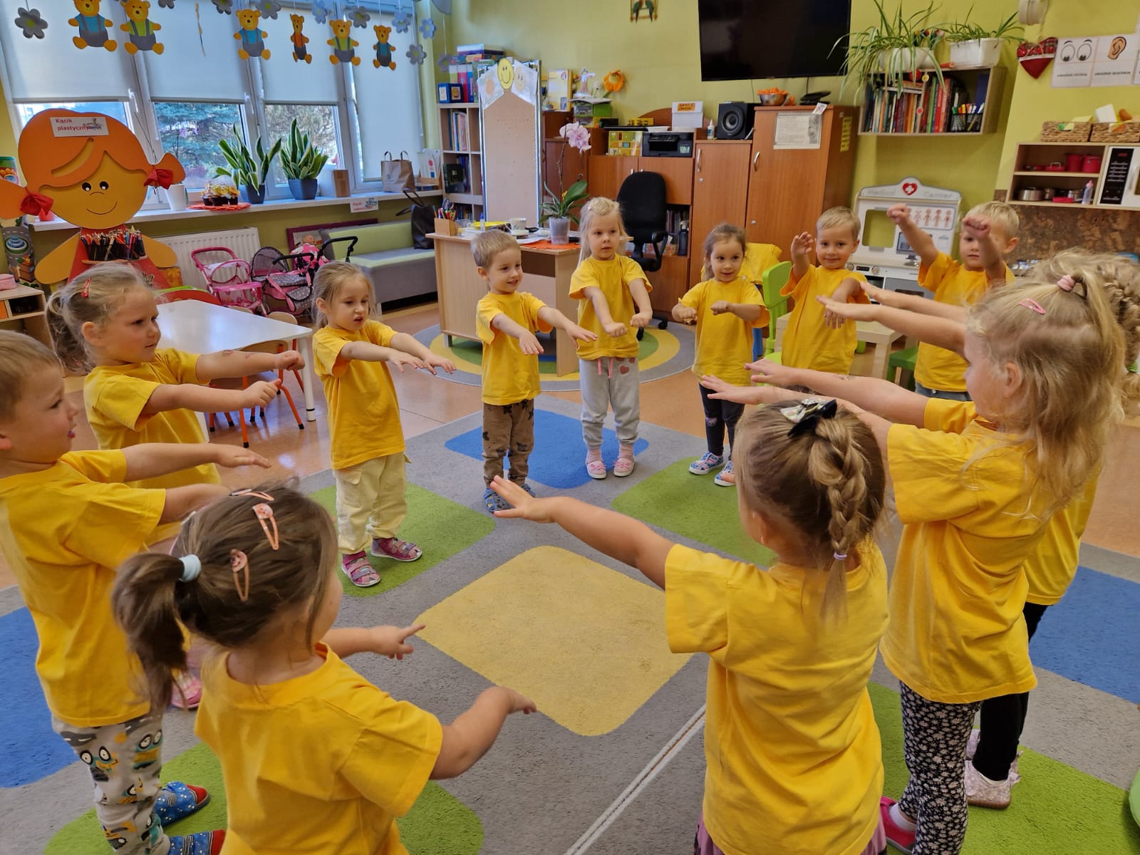 Czy wiecie, że w pierwszy piątek października każdego roku obchodzone jest bardzo wyjątkowe święto – Światowy Dzień Uśmiechu? W bieżącym roku szkolnym do świętowania Światowego Dnia Uśmiechu dołączyły przedszkolaki z grupy X i w piątek 03.10. 2025 r. uśmiech towarzyszył dzieciom już od rana. Ten radosny dzień został stworzony po to, abyśmy wszyscy przypomnieli sobie, jak ważny jest uśmiech w naszym życiu. Historia tego dnia sięga roku 1999, kiedy to amerykański artysta Harvey Ball, twórca słynnej żółtej, uśmiechniętej buzi, postanowił ogłosić jedno specjalne święto, które będzie przypominać ludziom na całym świecie, aby się więcej uśmiechali. Przedszkolne lata są niezwykle ważnym okresem w życiu każdego dziecka. To czas, w którym maluchy odkrywają świat, rozwijają swoje umiejętności społeczne, poznają emocje i uczą się jak budować relacje. Zamysł tego święta, realizowana innowacja pedagogiczna „ Kolorowe emocje”, a także tydzień budowania relacji stały się wyjątkową okazją, aby uświadomić najmłodszym, jaką moc ma UŚMIECH. Uśmiech, to przecież mały gest, który ma ogromne znaczenie dla dzieci w przedszkolu. To nie tylko wyraz sympatii czy radości, ale również narzędzie, które pomaga budować pozytywne relacje i sprzyja rozwojowi emocjonalnemu maluchów. Wszystkie zaaranżowane aktywności podczas świętowania Dnia Uśmiechu ... teatrzyk „ O wesołym słoneczku i smutnej chmurce”, zabawa” podaj uśmiech”, taniec z uśmiechem, czy też masażyk z „ uśmiechniętym dreszczykiem”, pozwoliły dzieciom poczuć moc uśmiechu, moc radości ze wspólnych zbaw. Razem uczyliśmy się, jak uśmiechać się i sprawiać, że inni się uśmiechają. Rozmawialiśmy o uśmiechu, tworzyliśmy uśmiechy, dzieliliśmy się uśmiechami i poznawaliśmy, jak uśmiech może sprawić, że świat staje się lepszy, przyjemniejszy i że uśmiech sprawia przyjemność nam i innym oraz niesie ze sobą dużo pozytywnej energii. Cele został osiągnięte zarówno w zakresie rozwijania umiejętności wyrażania pozytywnych emocji jak również w zakresie budowania relacji społecznych przez wspólną zabawę i wzmacniania własnej wartości. A jak było wesoło??? Zapraszamy do galerii.
