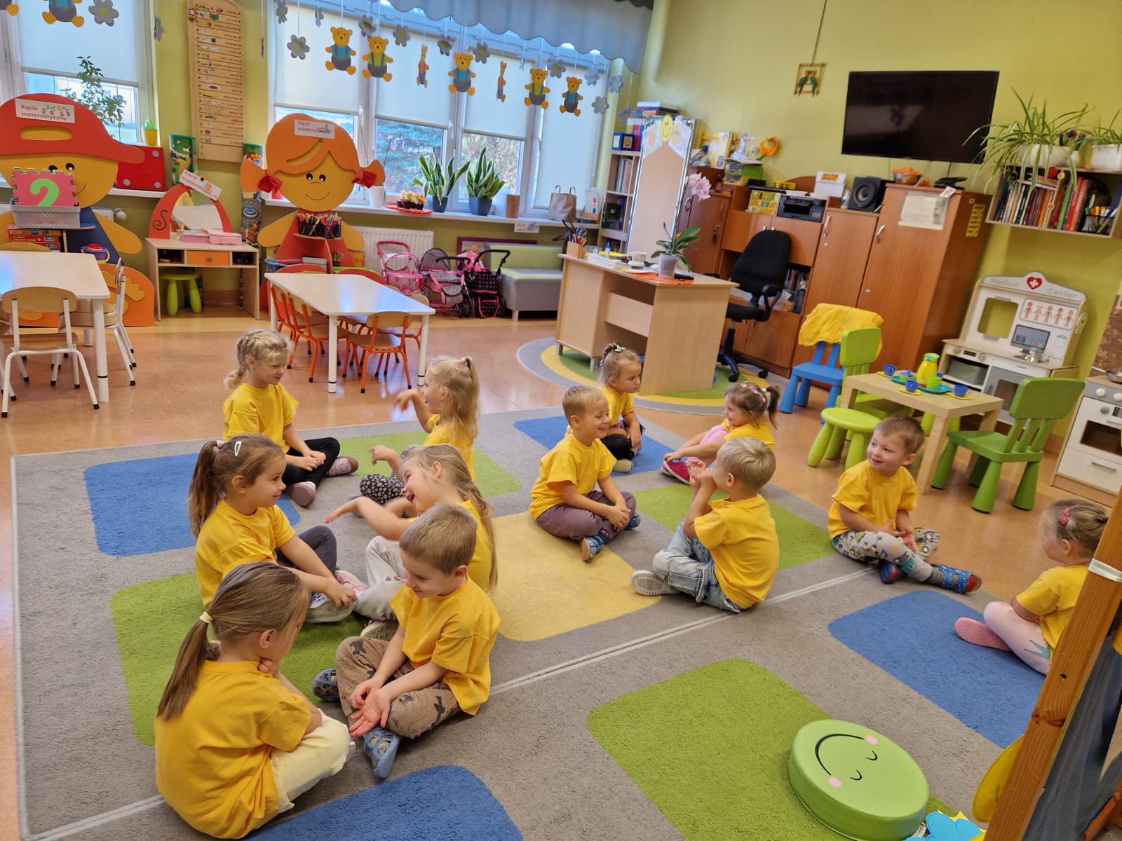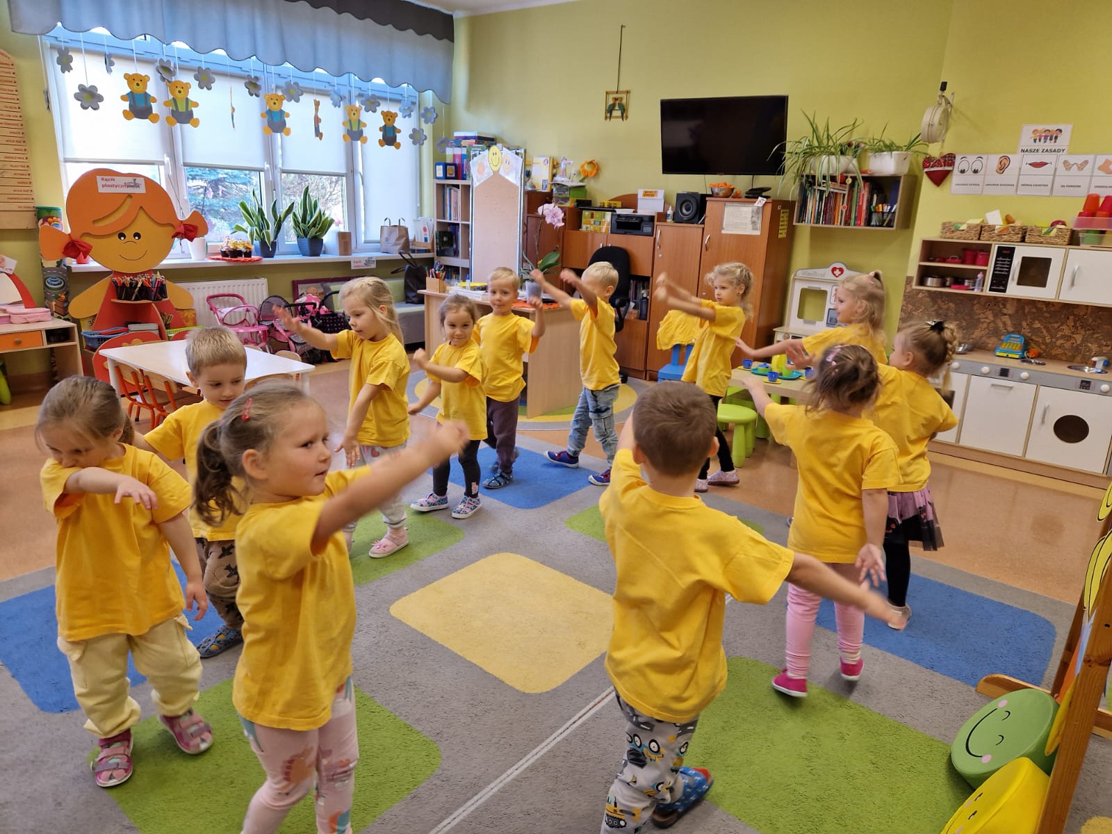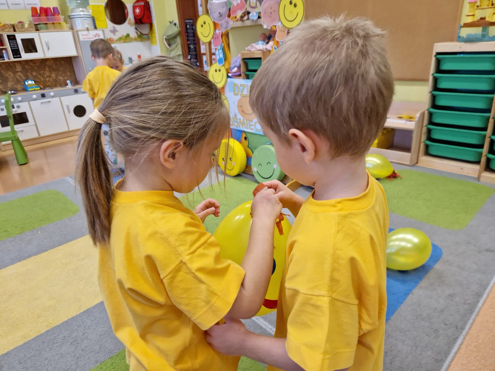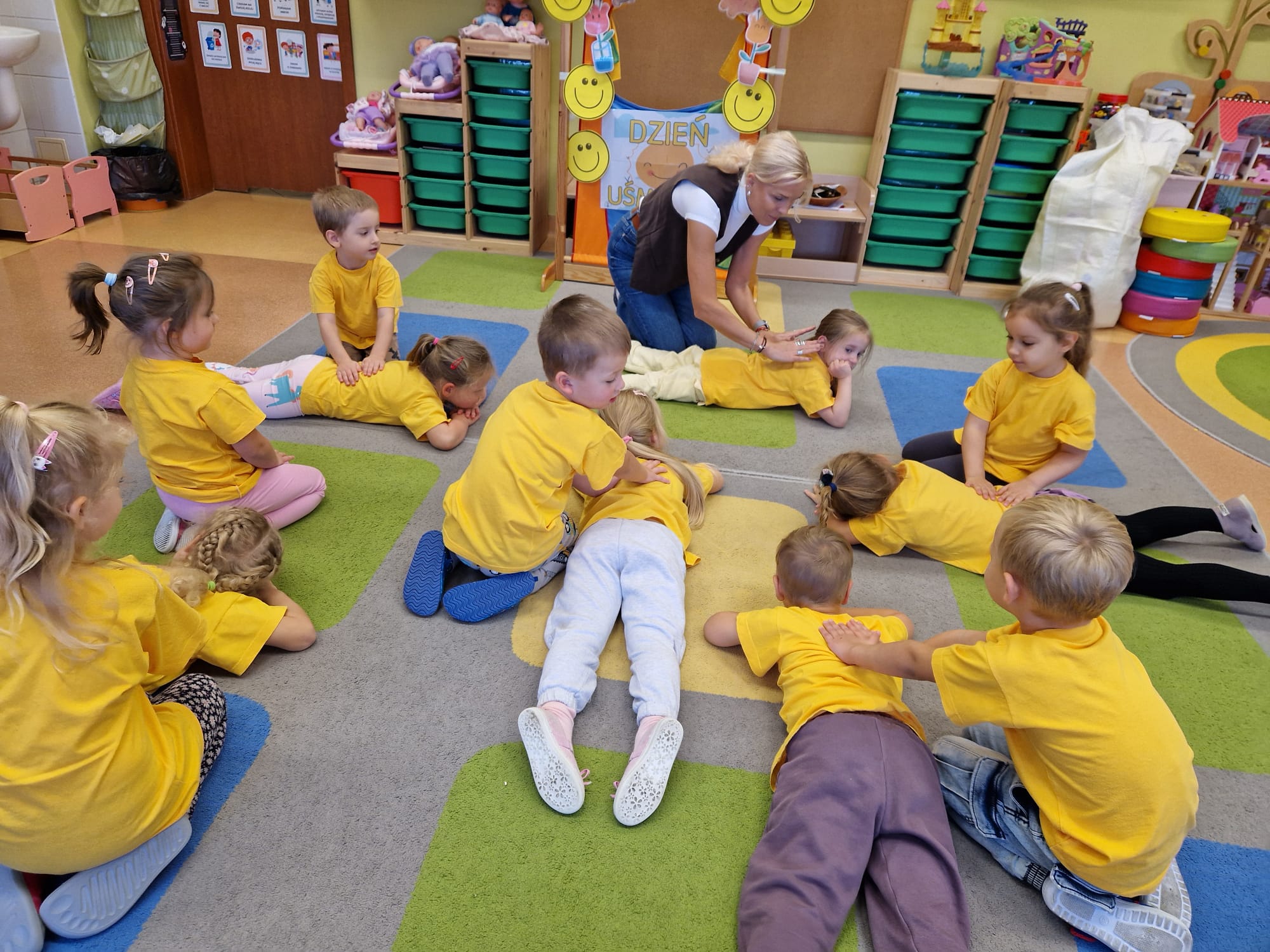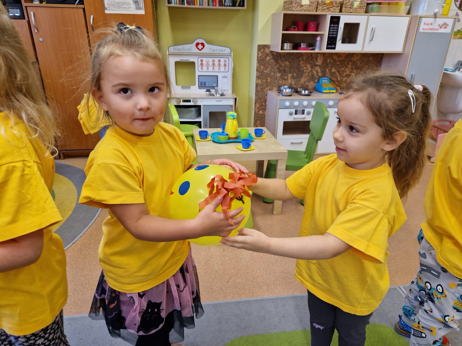 Czy wiecie, że w pierwszy piątek października każdego roku obchodzone jest bardzo wyjątkowe święto – Światowy Dzień Uśmiechu? W bieżącym roku szkolnym do świętowania Światowego Dnia Uśmiechu dołączyły przedszkolaki z grupy X i w piątek 03.10. 2025 r. uśmiech towarzyszył dzieciom już od rana. Ten radosny dzień został stworzony po to, abyśmy wszyscy przypomnieli sobie, jak ważny jest uśmiech w naszym życiu. Historia tego dnia sięga roku 1999, kiedy to amerykański artysta Harvey Ball, twórca słynnej żółtej, uśmiechniętej buzi, postanowił ogłosić jedno specjalne święto, które będzie przypominać ludziom na całym świecie, aby się więcej uśmiechali. Przedszkolne lata są niezwykle ważnym okresem w życiu każdego dziecka. To czas, w którym maluchy odkrywają świat, rozwijają swoje umiejętności społeczne, poznają emocje i uczą się jak budować relacje. Zamysł tego święta, realizowana innowacja pedagogiczna „ Kolorowe emocje”, a także tydzień budowania relacji stały się wyjątkową okazją, aby uświadomić najmłodszym, jaką moc ma UŚMIECH. Uśmiech, to przecież mały gest, który ma ogromne znaczenie dla dzieci w przedszkolu. To nie tylko wyraz sympatii czy radości, ale również narzędzie, które pomaga budować pozytywne relacje i sprzyja rozwojowi emocjonalnemu maluchów. Wszystkie zaaranżowane aktywności podczas świętowania Dnia Uśmiechu ... teatrzyk „ O wesołym słoneczku i smutnej chmurce”, zabawa” podaj uśmiech”, taniec z uśmiechem, czy też masażyk z „ uśmiechniętym dreszczykiem”, pozwoliły dzieciom poczuć moc uśmiechu, moc radości ze wspólnych zbaw. Razem uczyliśmy się, jak uśmiechać się i sprawiać, że inni się uśmiechają. Rozmawialiśmy o uśmiechu, tworzyliśmy uśmiechy, dzieliliśmy się uśmiechami i poznawaliśmy, jak uśmiech może sprawić, że świat staje się lepszy, przyjemniejszy i że uśmiech sprawia przyjemność nam i innym oraz niesie ze sobą dużo pozytywnej energii. Cele został osiągnięte zarówno w zakresie rozwijania umiejętności wyrażania pozytywnych emocji jak również w zakresie budowania relacji społecznych przez wspólną zabawę i wzmacniania własnej wartości. A jak było wesoło??? Zapraszamy do galerii.