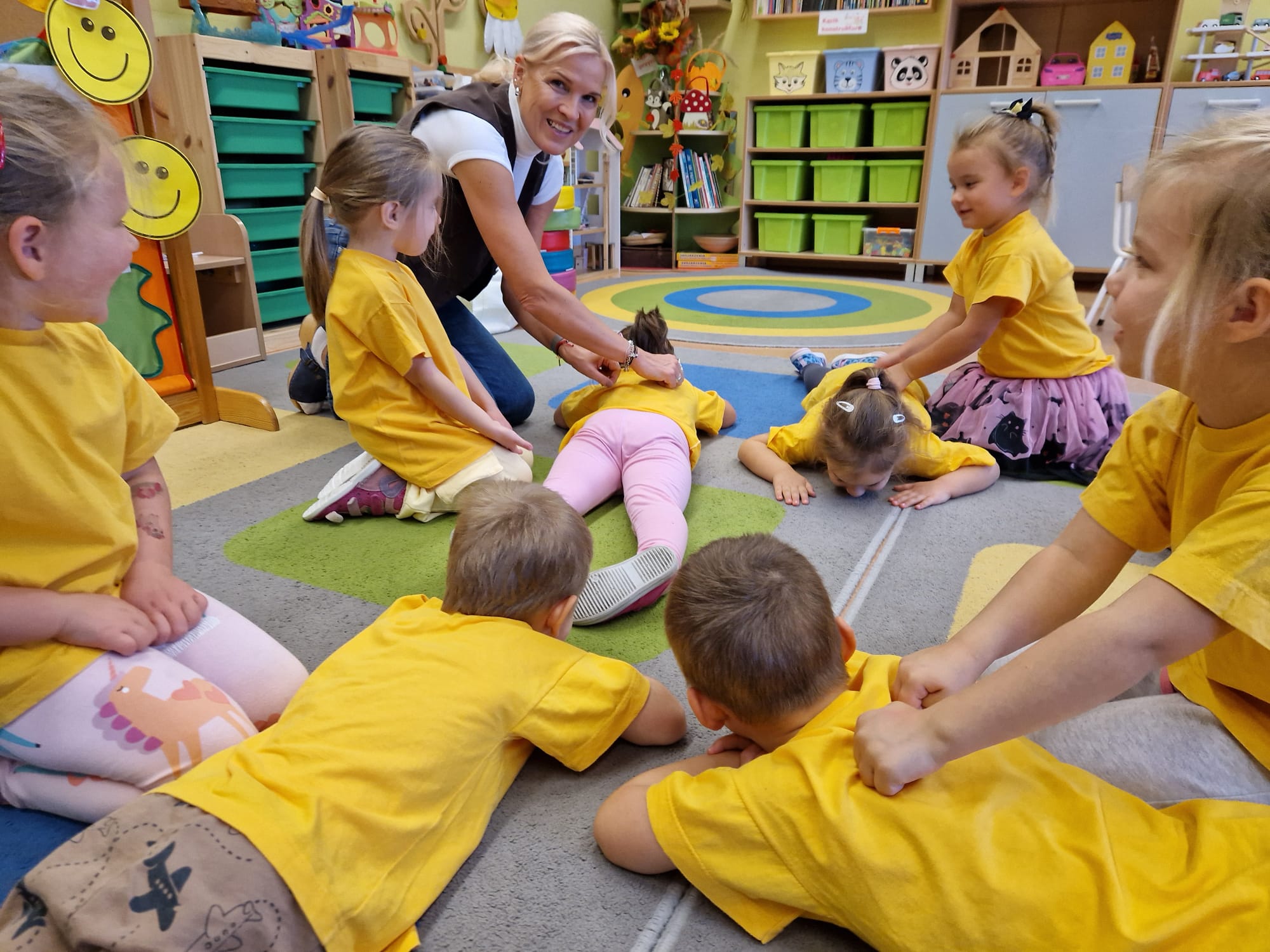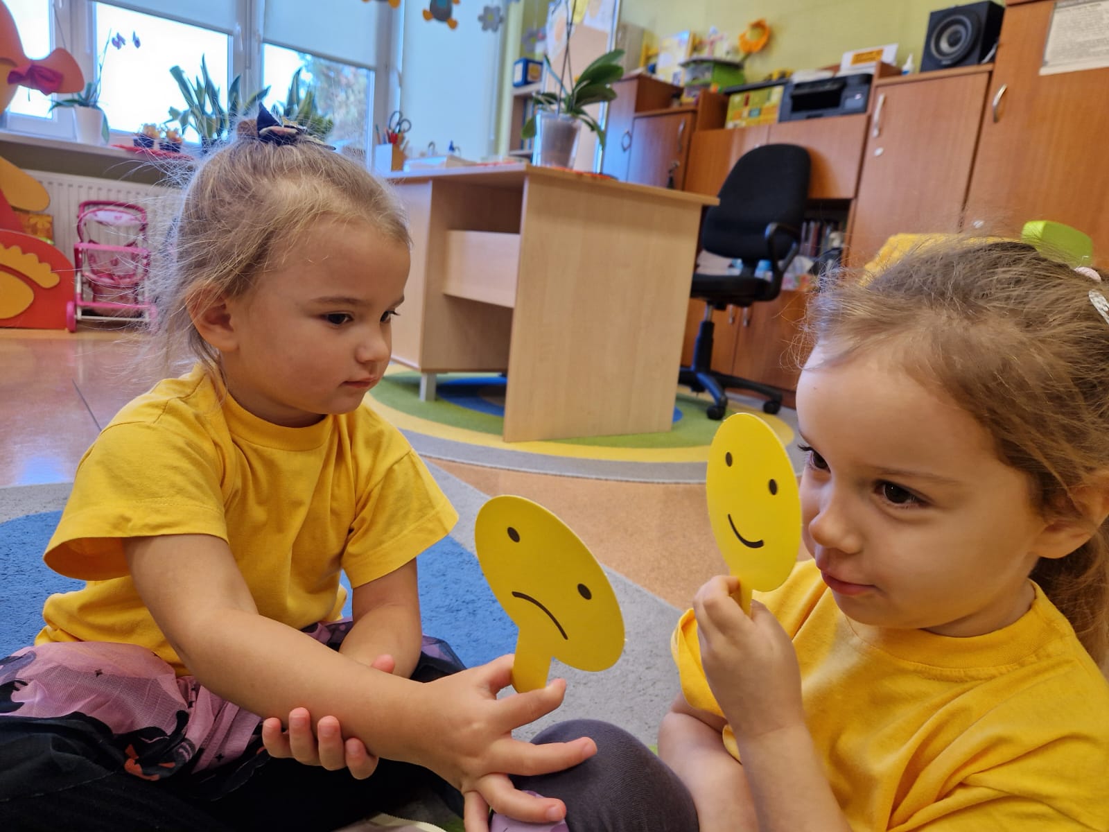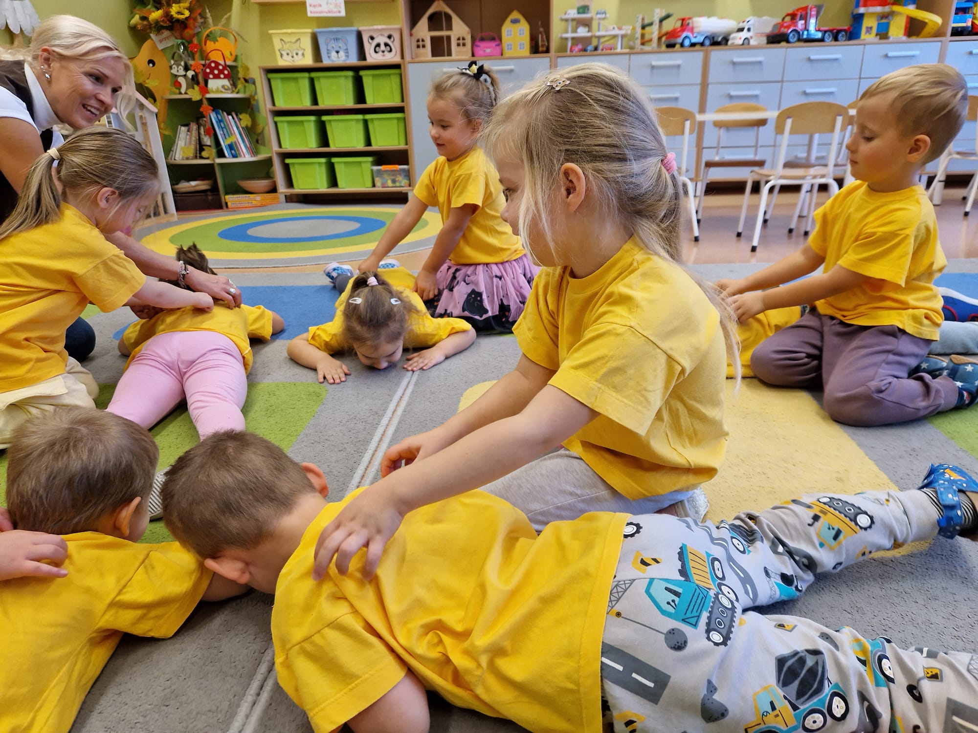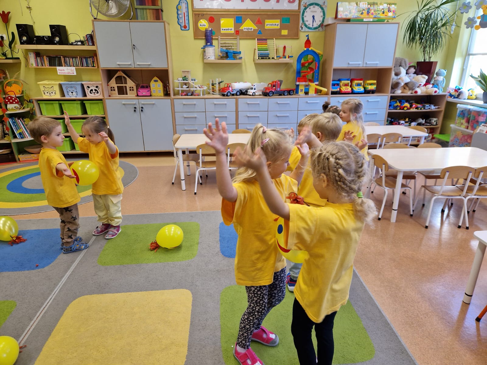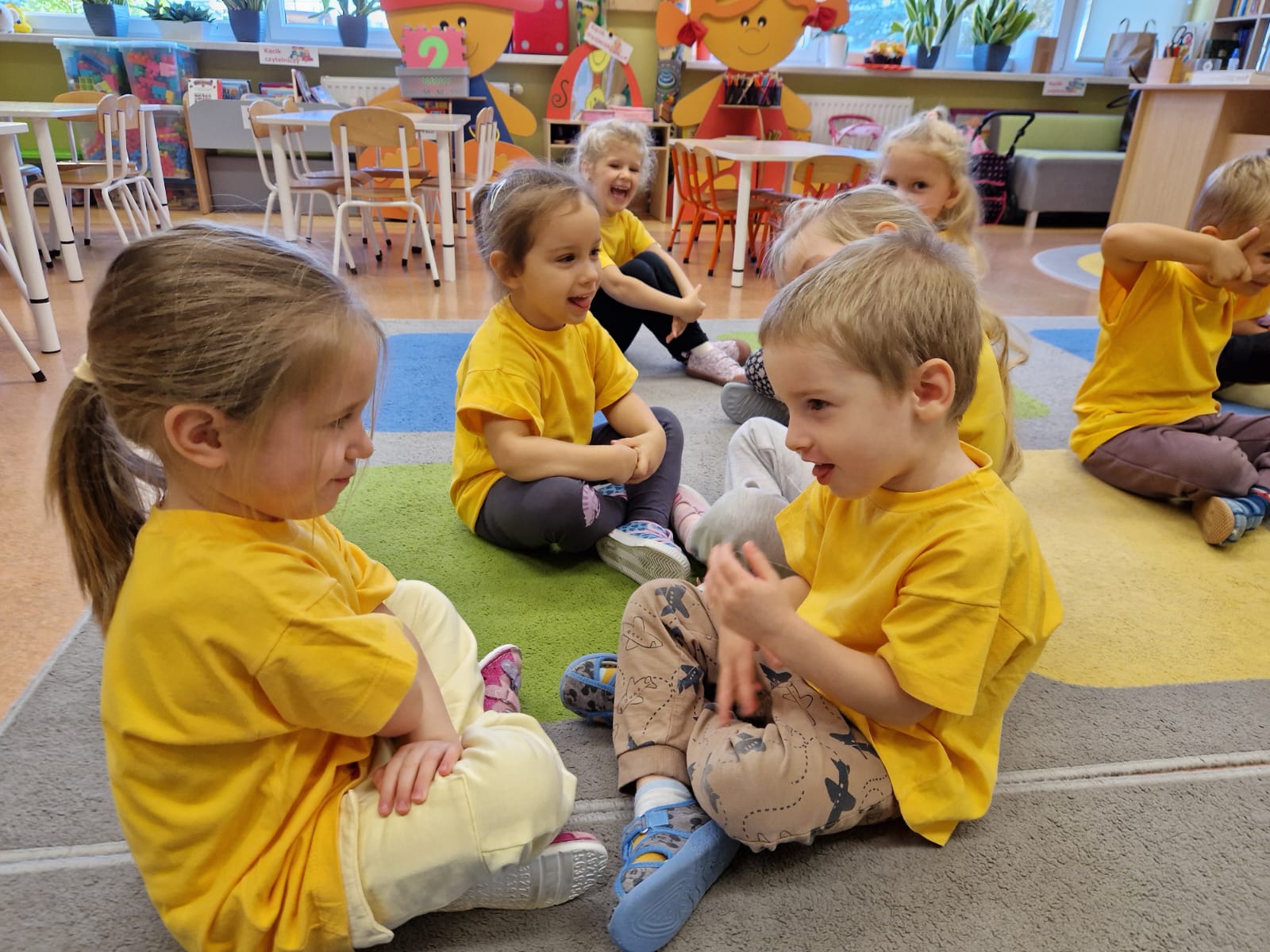 Czy wiecie, że w pierwszy piątek października każdego roku obchodzone jest bardzo wyjątkowe święto – Światowy Dzień Uśmiechu? W bieżącym roku szkolnym do świętowania Światowego Dnia Uśmiechu dołączyły przedszkolaki z grupy X i w piątek 03.10. 2025 r. uśmiech towarzyszył dzieciom już od rana. Ten radosny dzień został stworzony po to, abyśmy wszyscy przypomnieli sobie, jak ważny jest uśmiech w naszym życiu. Historia tego dnia sięga roku 1999, kiedy to amerykański artysta Harvey Ball, twórca słynnej żółtej, uśmiechniętej buzi, postanowił ogłosić jedno specjalne święto, które będzie przypominać ludziom na całym świecie, aby się więcej uśmiechali. Przedszkolne lata są niezwykle ważnym okresem w życiu każdego dziecka. To czas, w którym maluchy odkrywają świat, rozwijają swoje umiejętności społeczne, poznają emocje i uczą się jak budować relacje. Zamysł tego święta, realizowana innowacja pedagogiczna „ Kolorowe emocje”, a także tydzień budowania relacji stały się wyjątkową okazją, aby uświadomić najmłodszym, jaką moc ma UŚMIECH. Uśmiech, to przecież mały gest, który ma ogromne znaczenie dla dzieci w przedszkolu. To nie tylko wyraz sympatii czy radości, ale również narzędzie, które pomaga budować pozytywne relacje i sprzyja rozwojowi emocjonalnemu maluchów. Wszystkie zaaranżowane aktywności podczas świętowania Dnia Uśmiechu ... teatrzyk „ O wesołym słoneczku i smutnej chmurce”, zabawa” podaj uśmiech”, taniec z uśmiechem, czy też masażyk z „ uśmiechniętym dreszczykiem”, pozwoliły dzieciom poczuć moc uśmiechu, moc radości ze wspólnych zbaw. Razem uczyliśmy się, jak uśmiechać się i sprawiać, że inni się uśmiechają. Rozmawialiśmy o uśmiechu, tworzyliśmy uśmiechy, dzieliliśmy się uśmiechami i poznawaliśmy, jak uśmiech może sprawić, że świat staje się lepszy, przyjemniejszy i że uśmiech sprawia przyjemność nam i innym oraz niesie ze sobą dużo pozytywnej energii. Cele został osiągnięte zarówno w zakresie rozwijania umiejętności wyrażania pozytywnych emocji jak również w zakresie budowania relacji społecznych przez wspólną zabawę i wzmacniania własnej wartości. A jak było wesoło??? Zapraszamy do galerii.