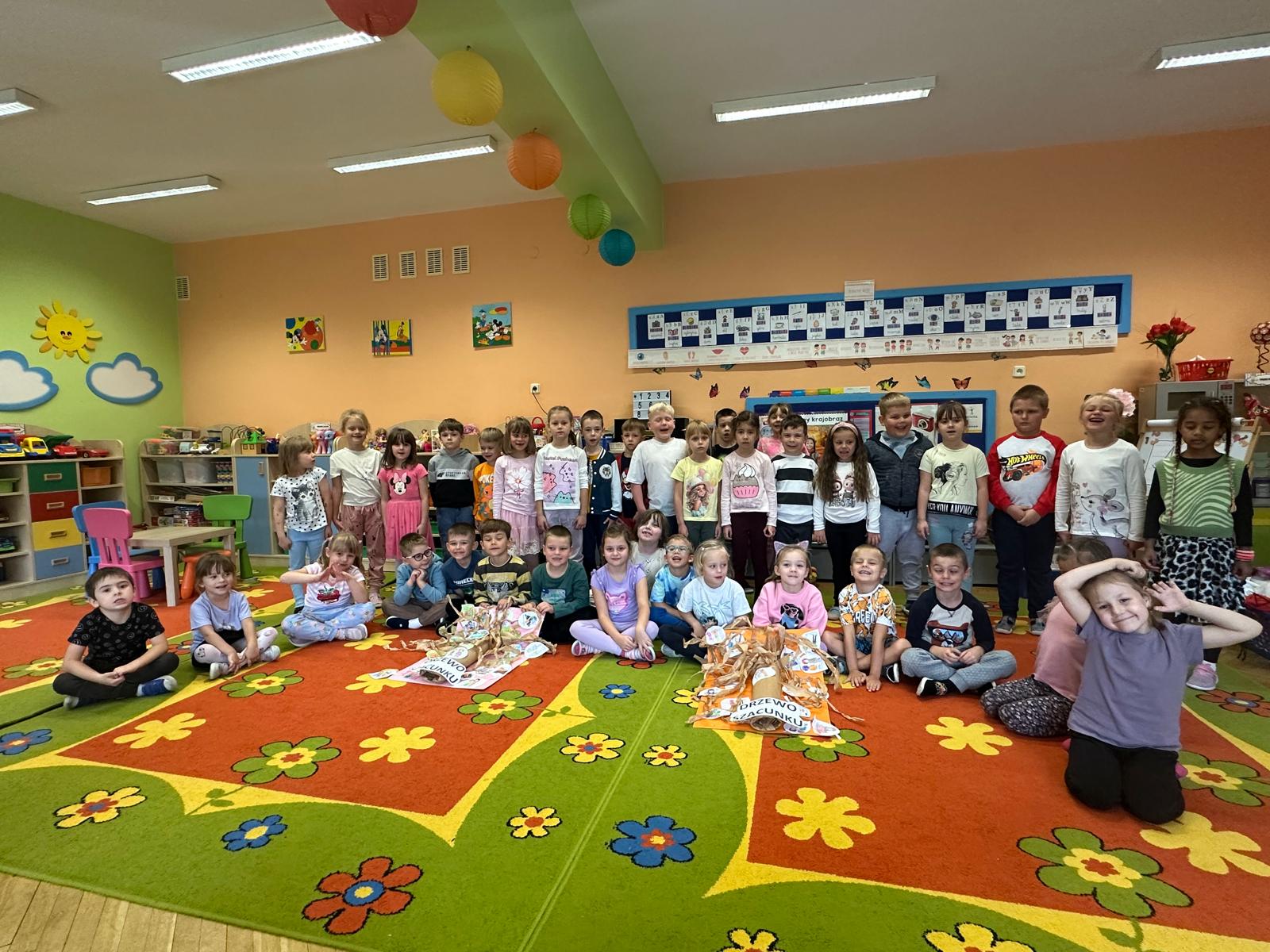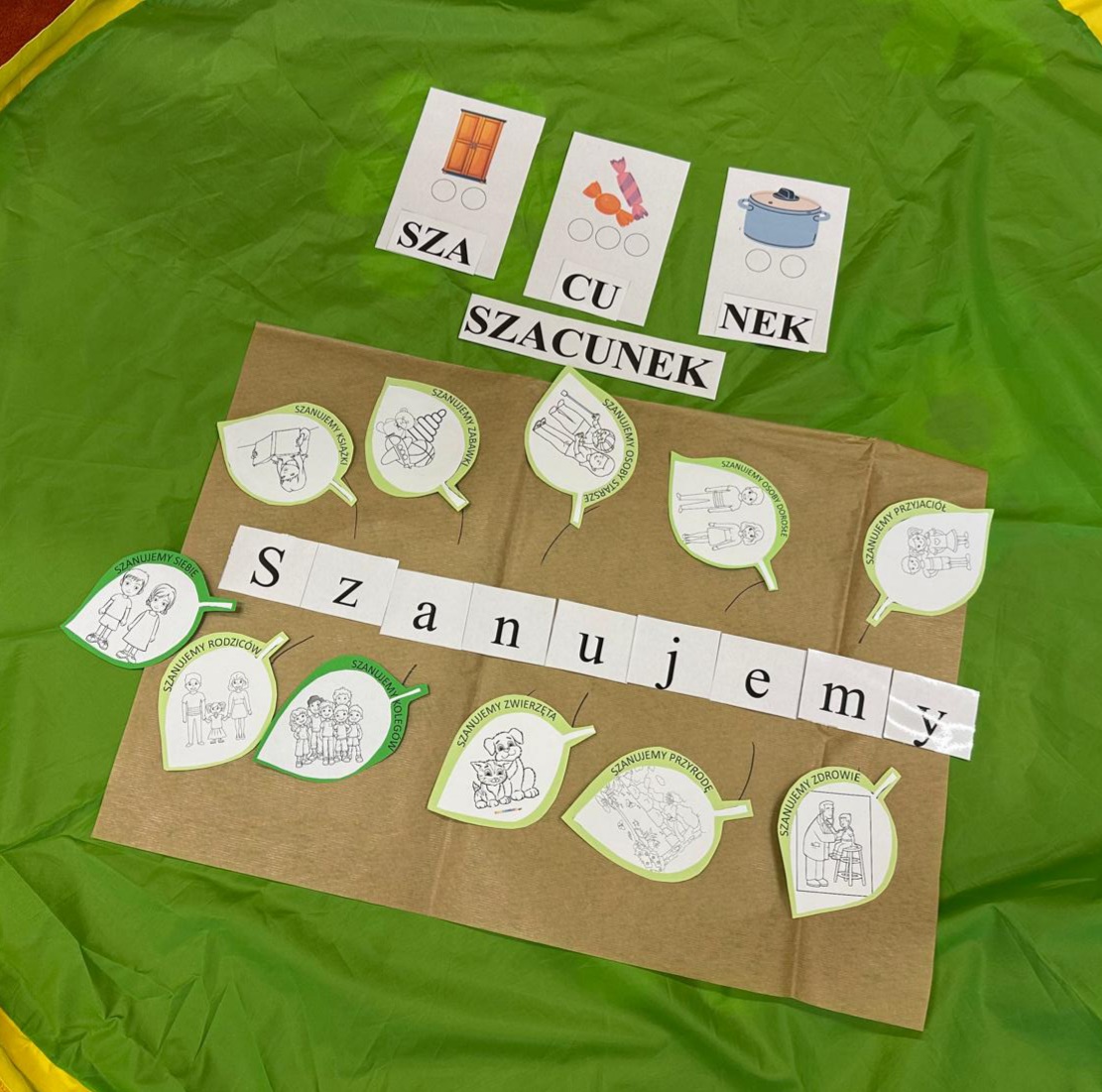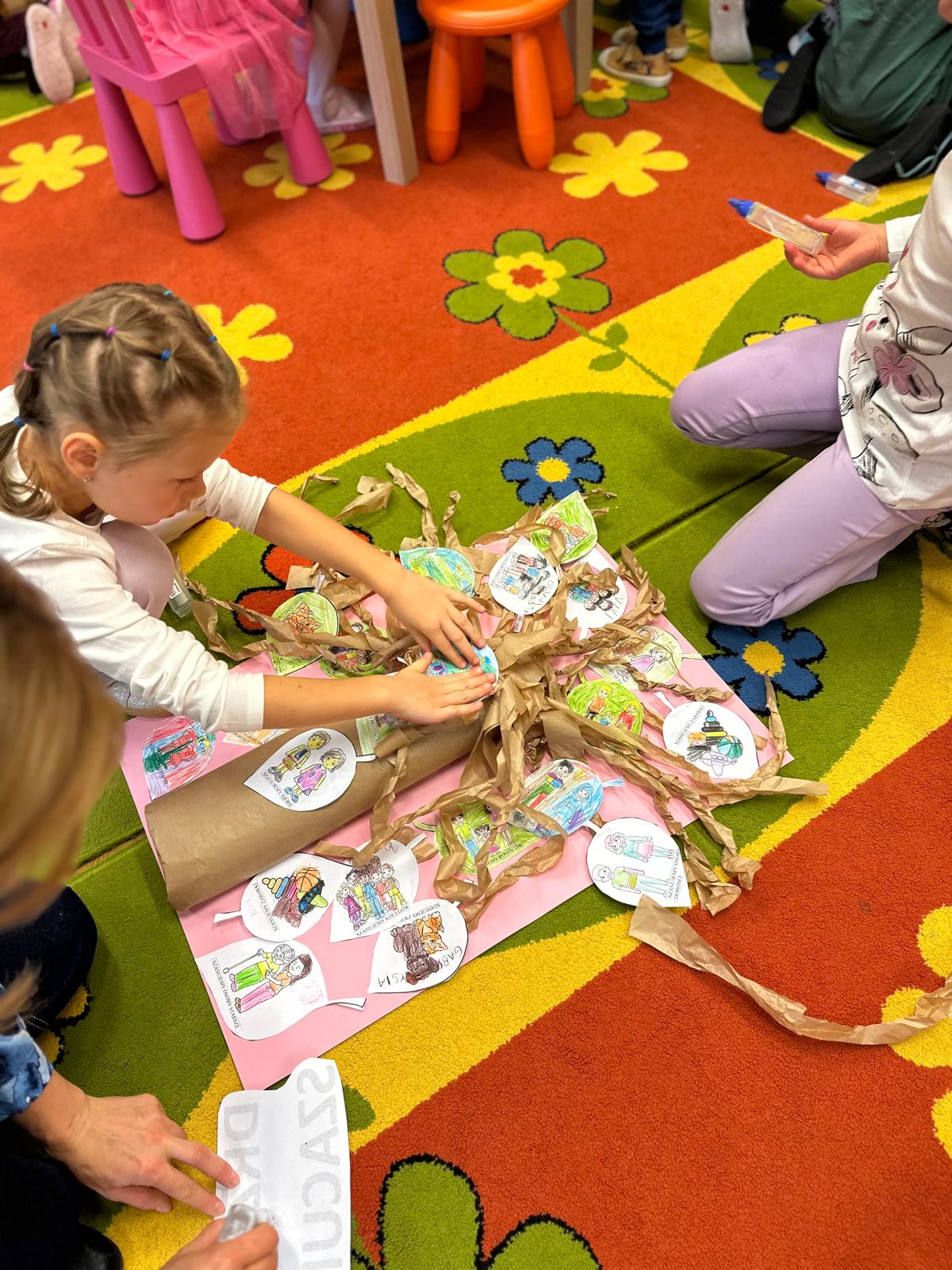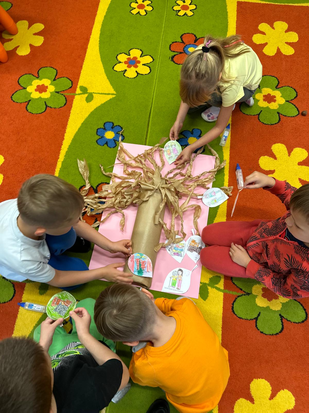 Przedszkolaki z grupy V i III uczestniczyły w zajęciach edukacyjno – profilaktycznych o tematyce „Szanujmy siebie i innych”. Dzieci z wielkim zainteresowaniem wysłuchały opowiadania z „Elementarza ważnych słów. Szacunek” H. Mortimer i C. Trapanese. Poprzez różnorodne działania dowiedziały się dlaczego powinniśmy szanować innych ludzi: rówieśników, osoby starsze, osoby niepełnosprawne, zwierzęta oraz samych siebie. Na zakończenie dzieci wykonały plakat „Drzewo szacunku”, gdzie w sposób graficzny zobrazowały na liściach różne postawy i zachowania świadczące o szacunku do ludzi i otoczenia. To był bardzo dobry dzień i ważna lekcja, podczas której wszyscy doszliśmy do jednego wniosku „Szanujmy się !”.