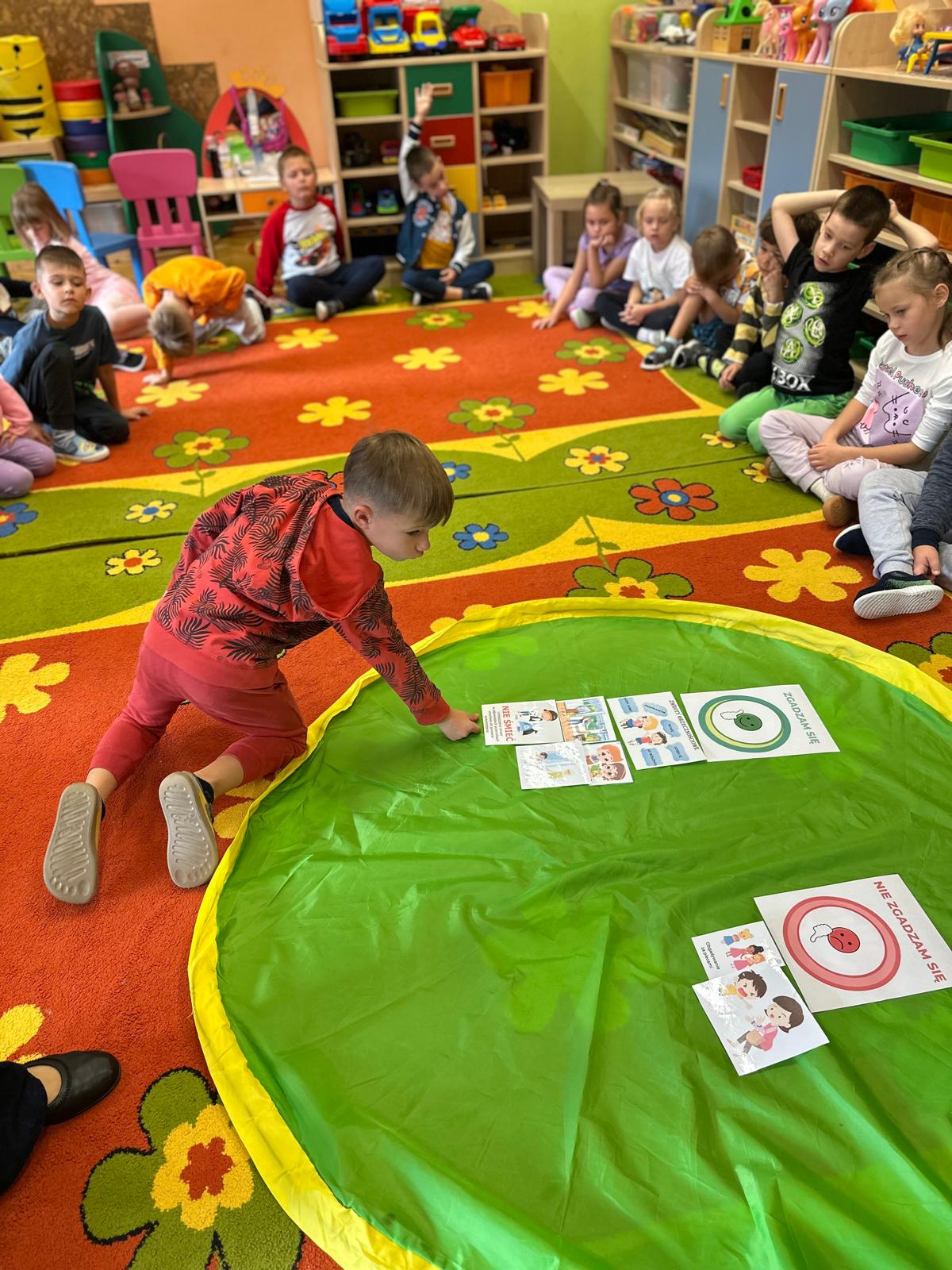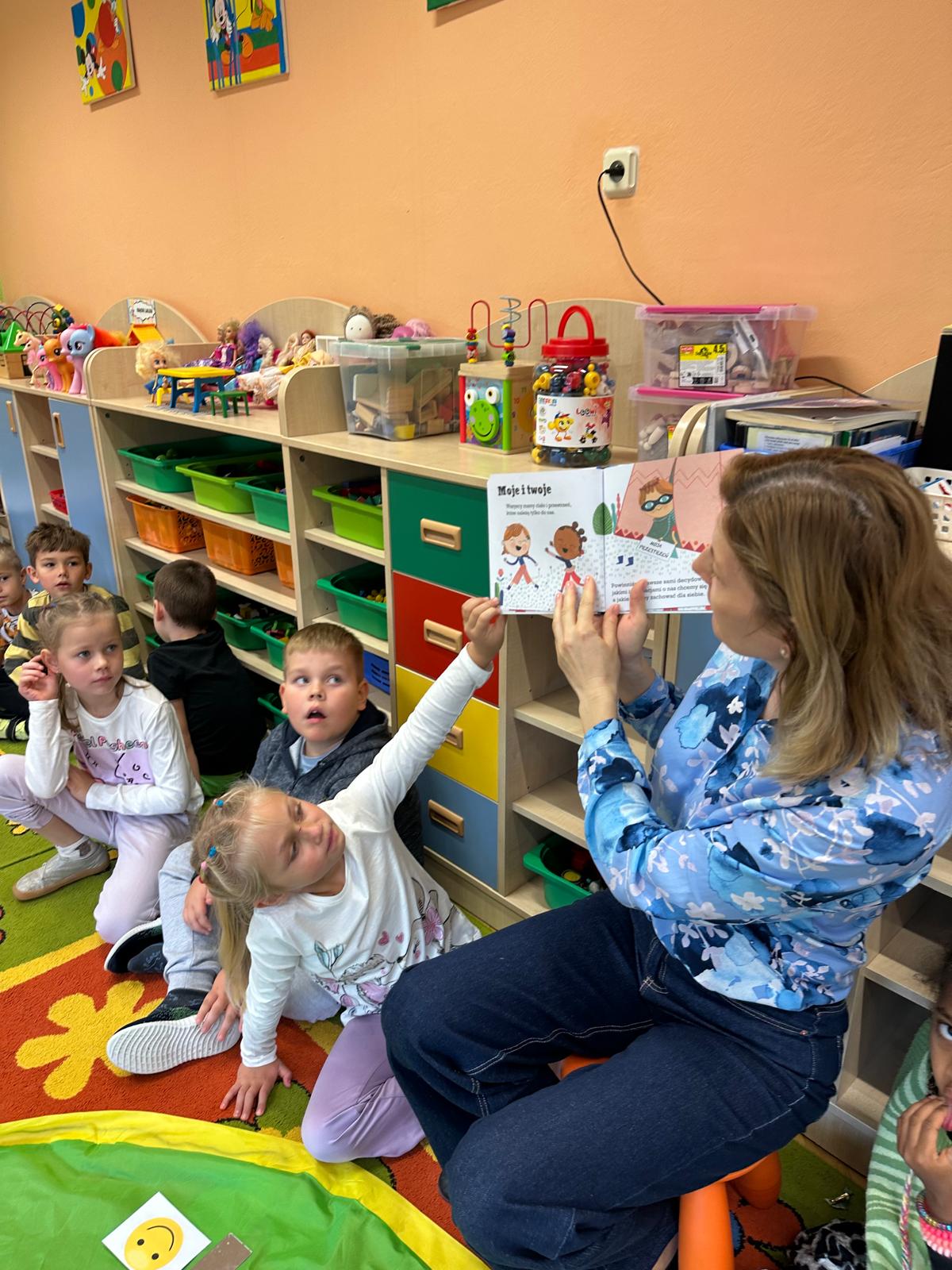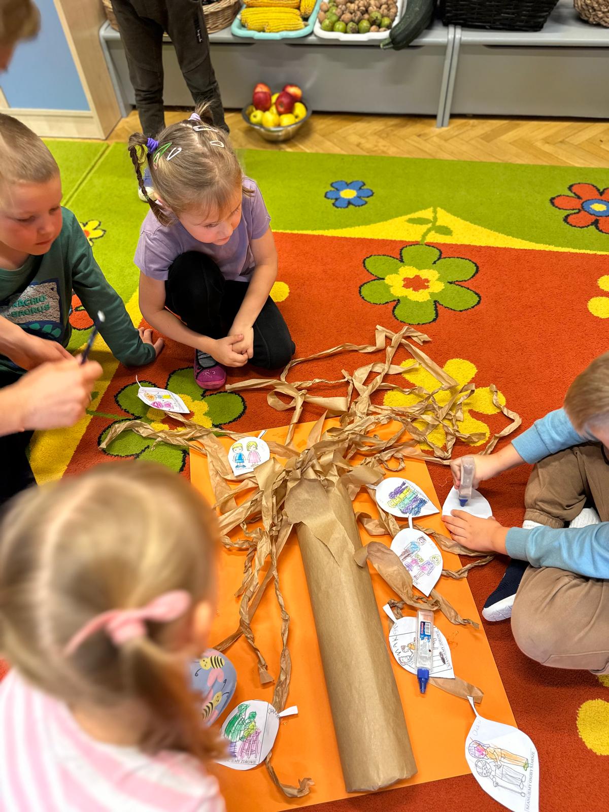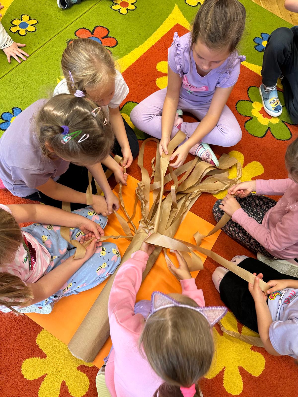 Przedszkolaki z grupy V i III uczestniczyły w zajęciach edukacyjno – profilaktycznych o tematyce „Szanujmy siebie i innych”. Dzieci z wielkim zainteresowaniem wysłuchały opowiadania z „Elementarza ważnych słów. Szacunek” H. Mortimer i C. Trapanese. Poprzez różnorodne działania dowiedziały się dlaczego powinniśmy szanować innych ludzi: rówieśników, osoby starsze, osoby niepełnosprawne, zwierzęta oraz samych siebie. Na zakończenie dzieci wykonały plakat „Drzewo szacunku”, gdzie w sposób graficzny zobrazowały na liściach różne postawy i zachowania świadczące o szacunku do ludzi i otoczenia. To był bardzo dobry dzień i ważna lekcja, podczas której wszyscy doszliśmy do jednego wniosku „Szanujmy się !”.