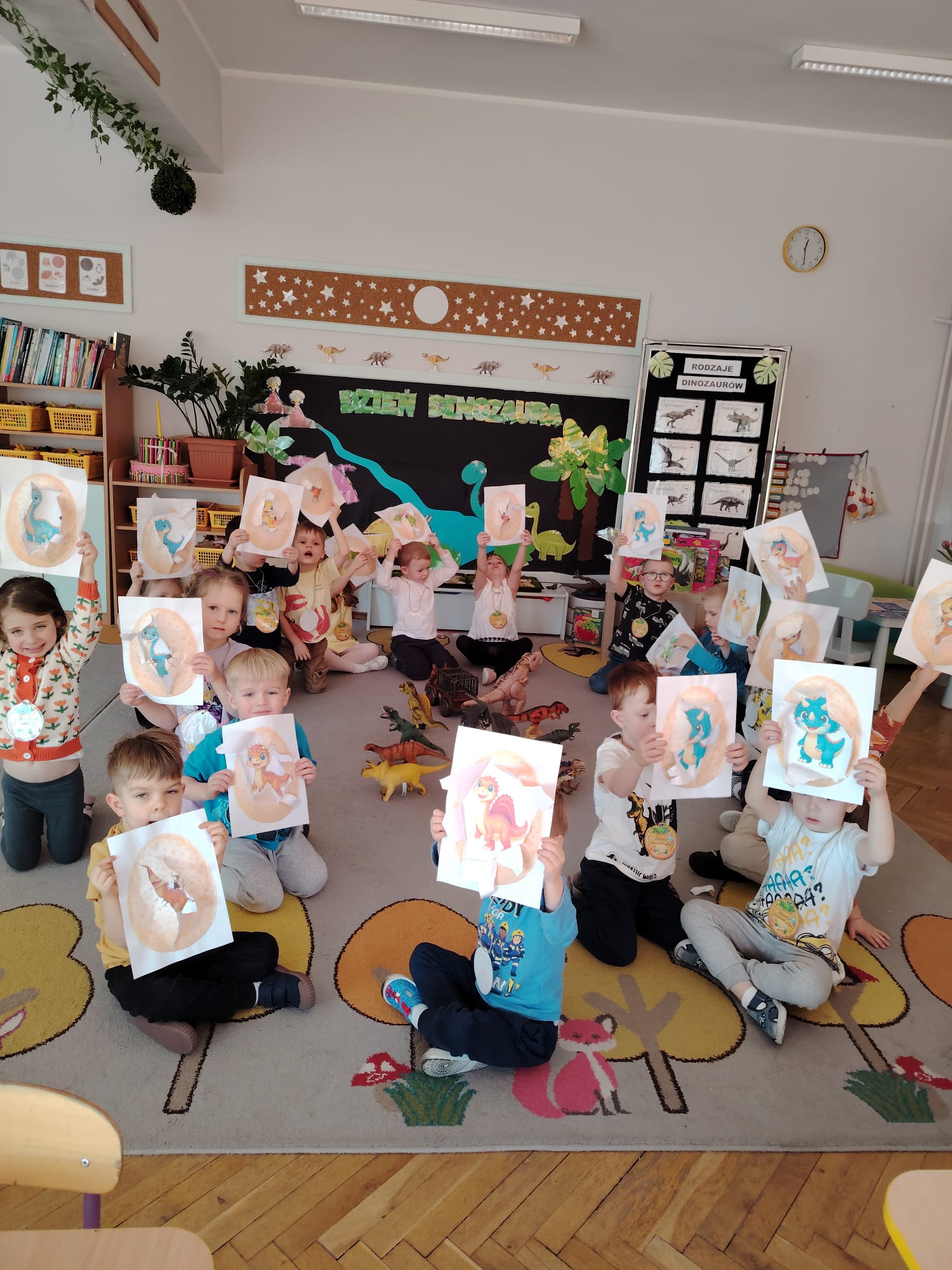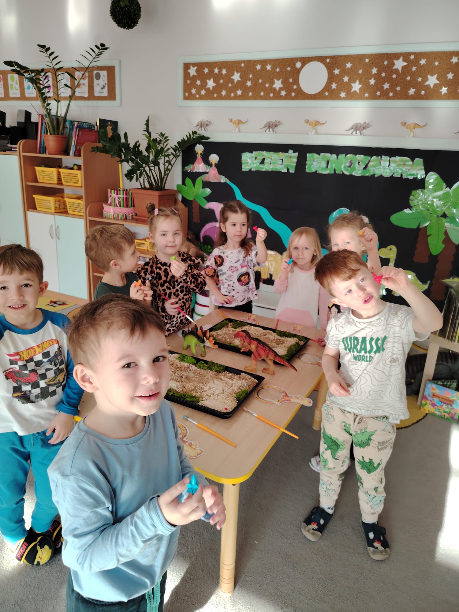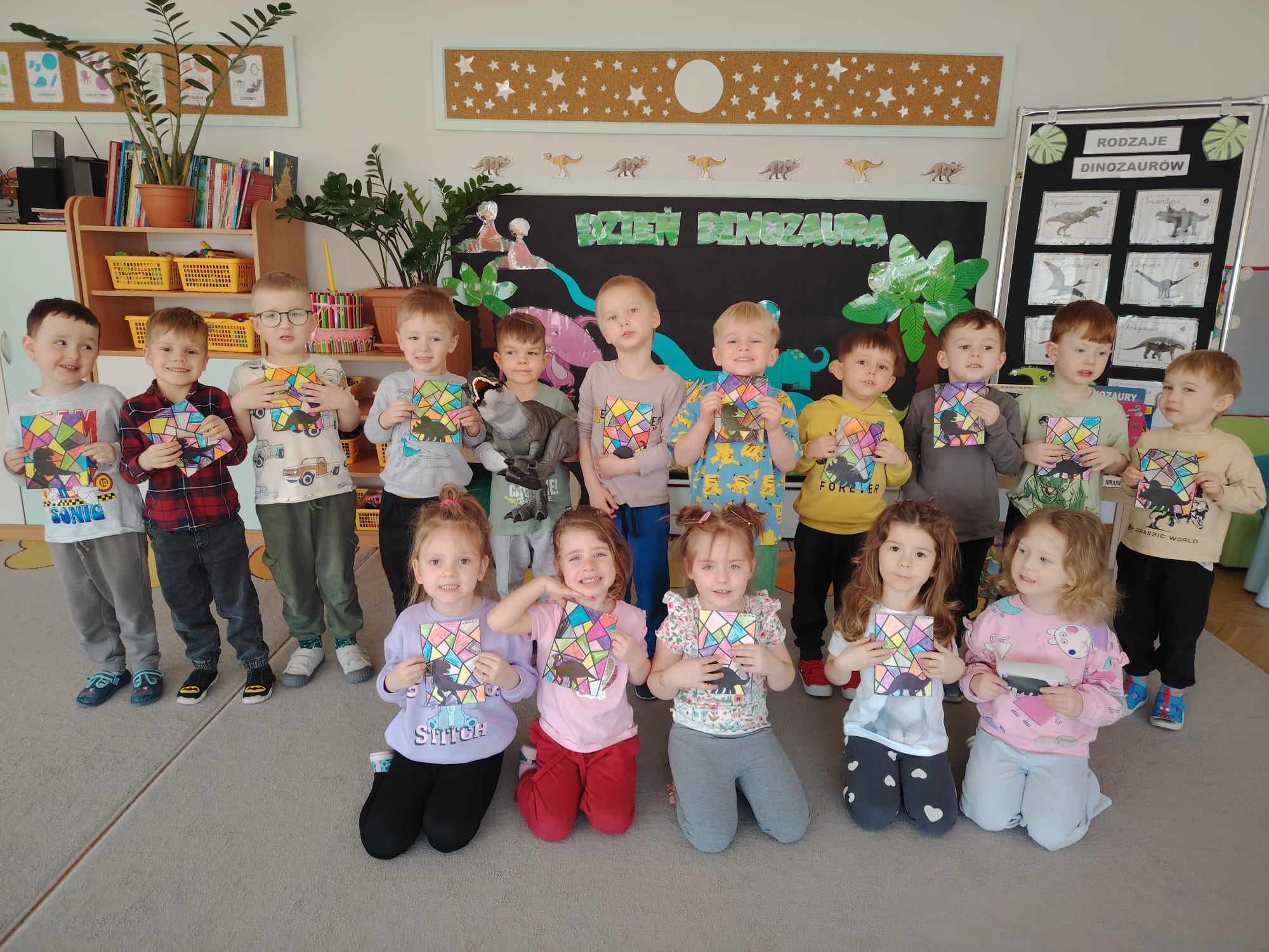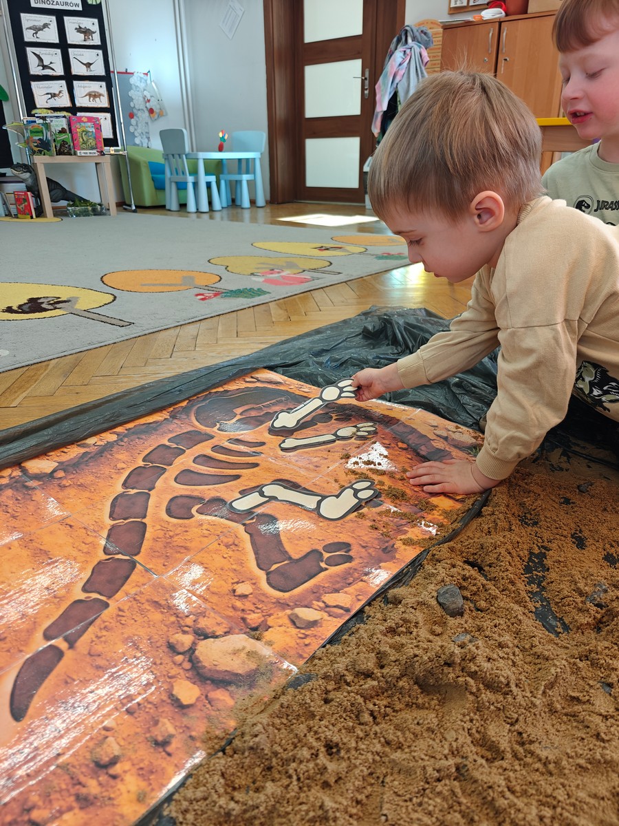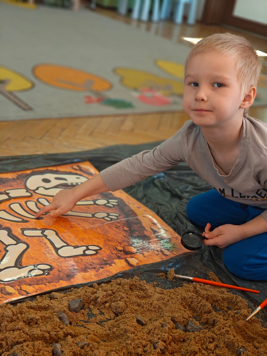 W tym tygodniu w grupie II zrealizowany został projekt edukacyjny pt. „Tajemnice prehistorycznego świata dinozaurów”, którego głównym celem było: rozbudzanie ciekawości poznawczej dzieci; poznawanie świata prehistorycznych zwierząt – dinozaurów; rozwijanie wyobraźni, kreatywności oraz aktywności twórczej dzieci; wspieranie wszechstronnego rozwoju poprzez zabawę, doświadczenia i obserwację.