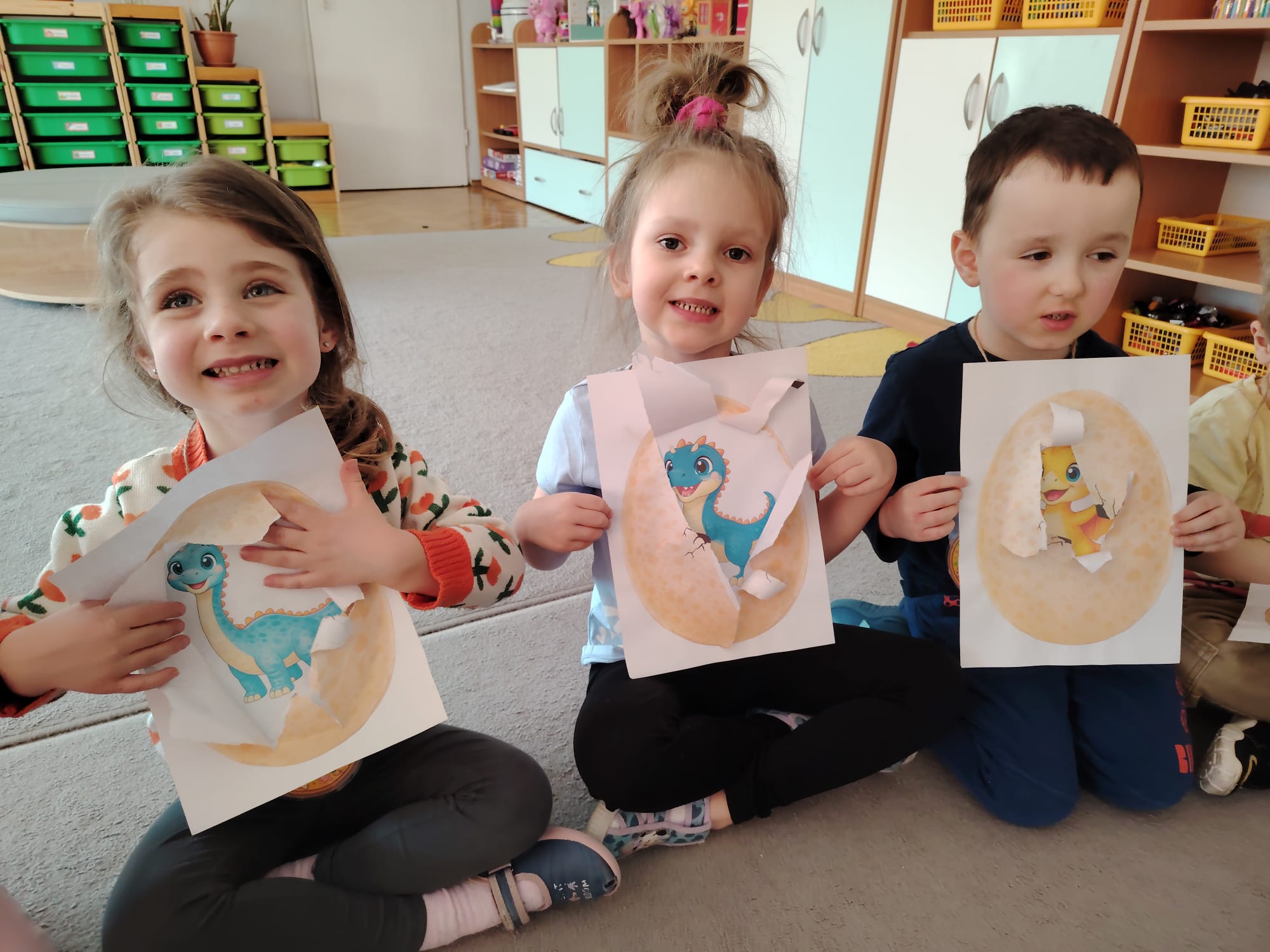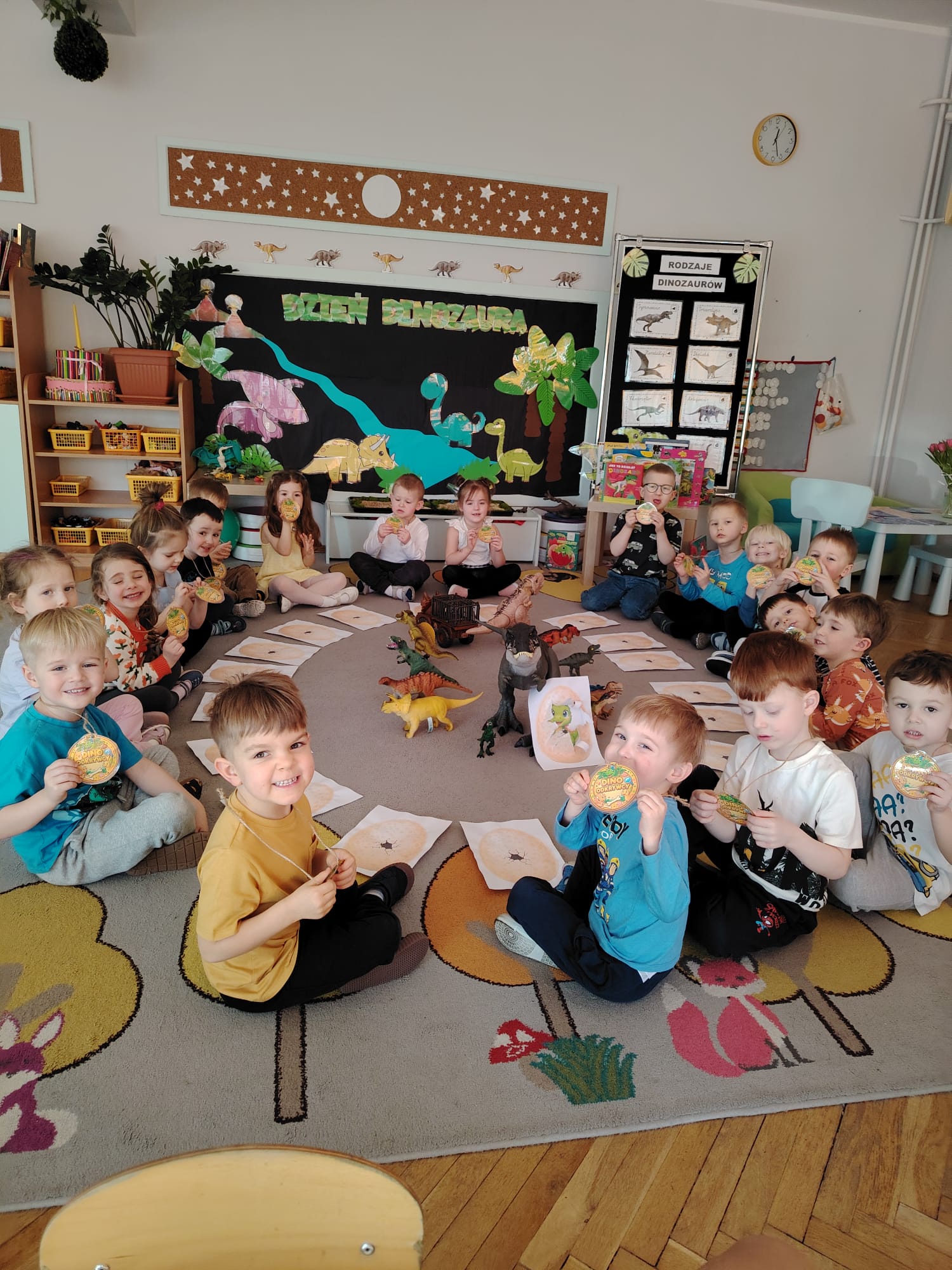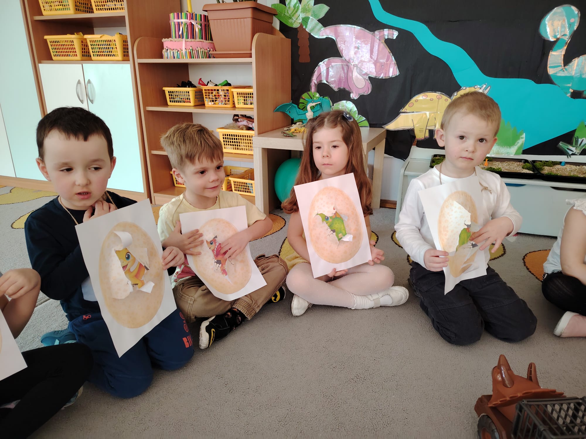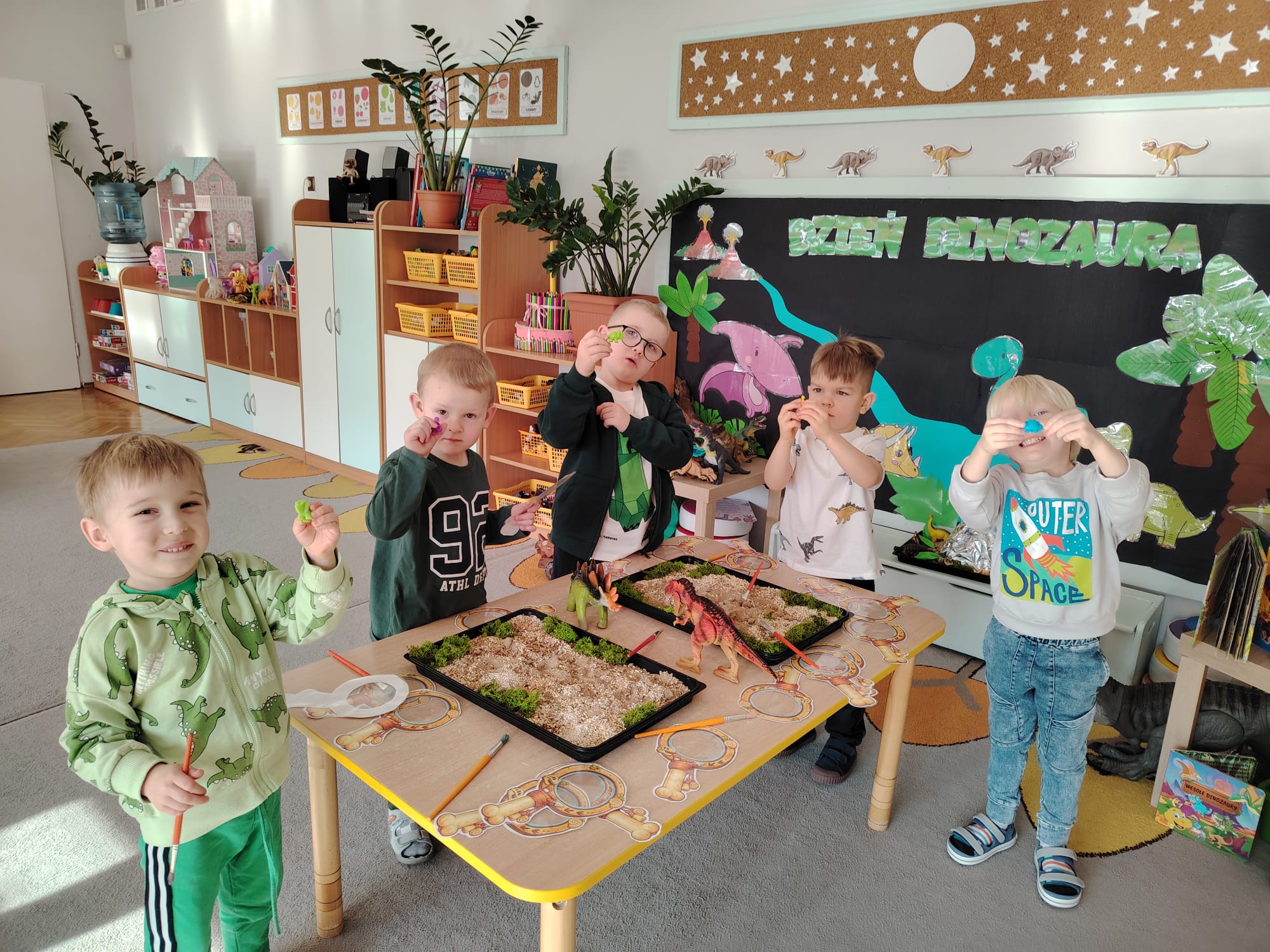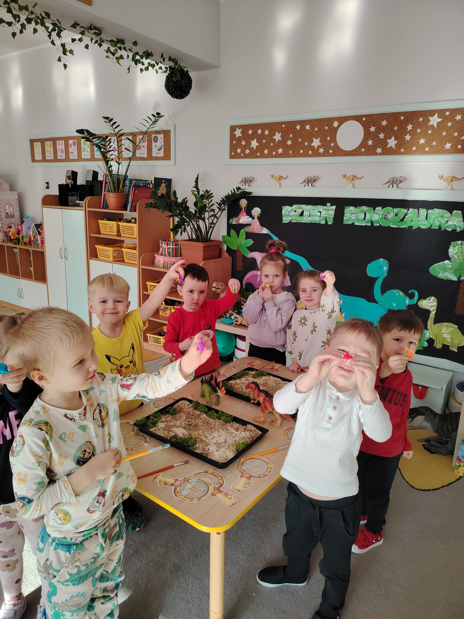W tym tygodniu w grupie II zrealizowany został projekt edukacyjny pt. „Tajemnice prehistorycznego świata dinozaurów”, którego głównym celem było: rozbudzanie ciekawości poznawczej dzieci; poznawanie świata prehistorycznych zwierząt – dinozaurów; rozwijanie wyobraźni, kreatywności oraz aktywności twórczej dzieci; wspieranie wszechstronnego rozwoju poprzez zabawę, doświadczenia i obserwację.