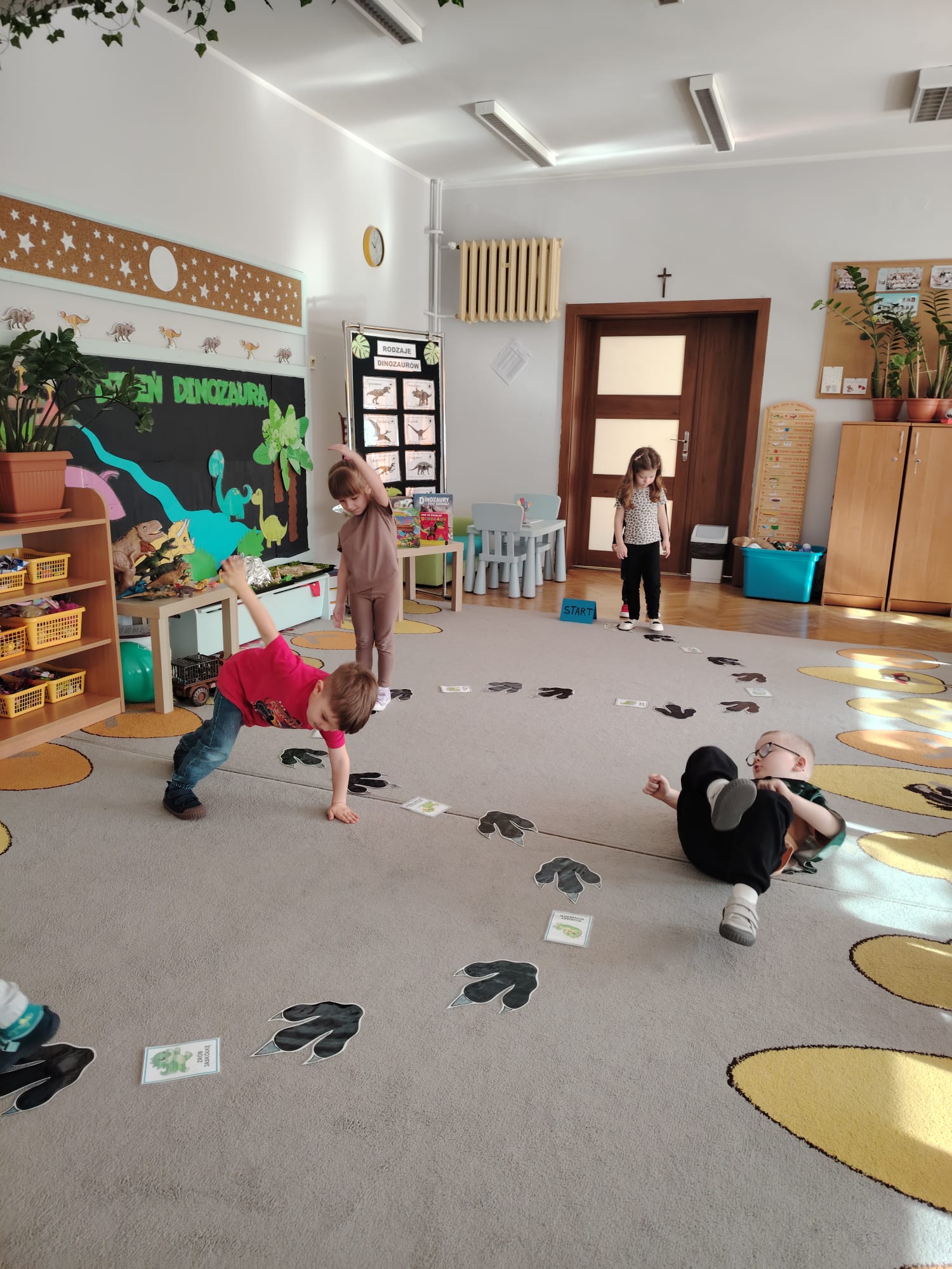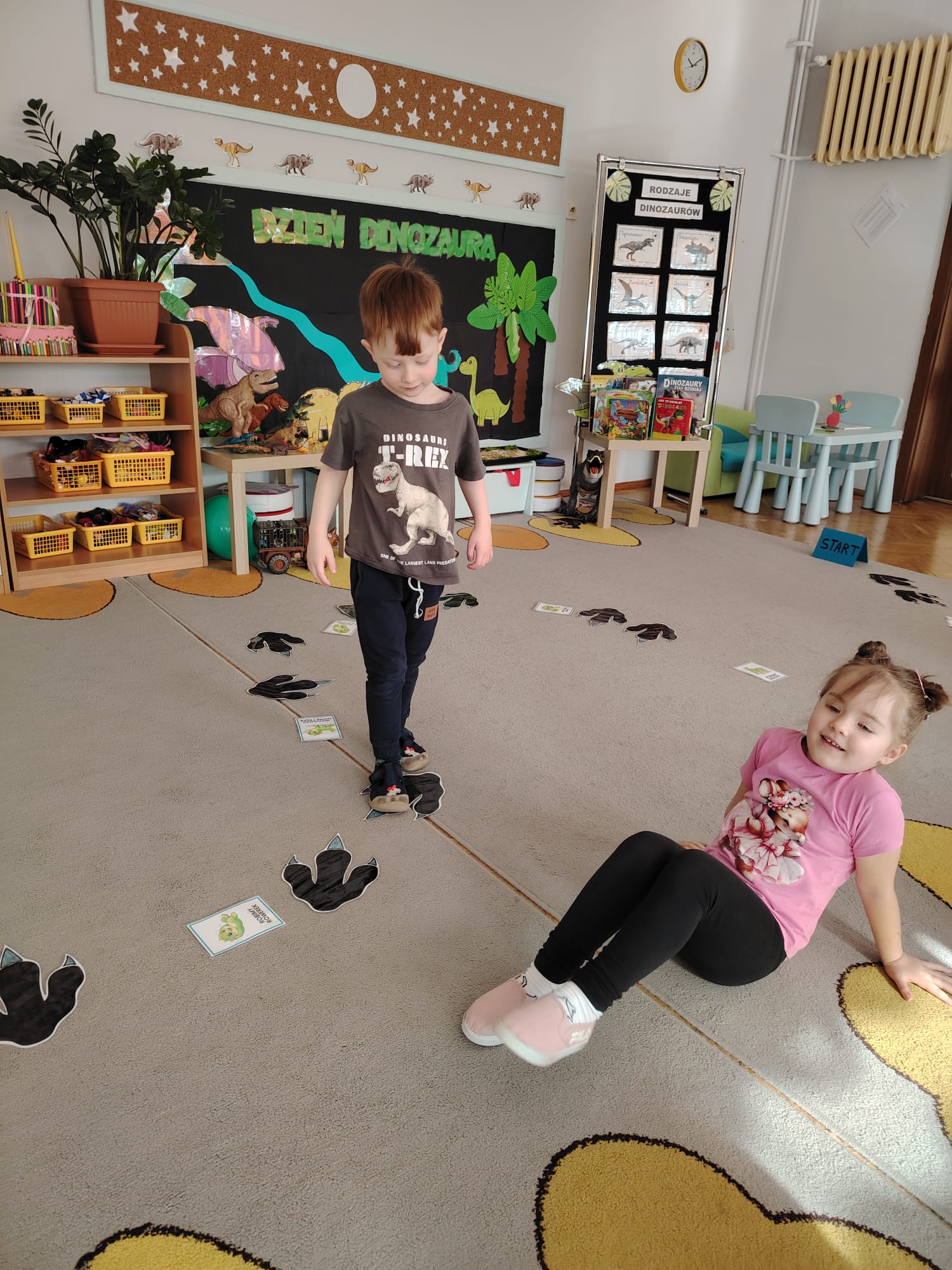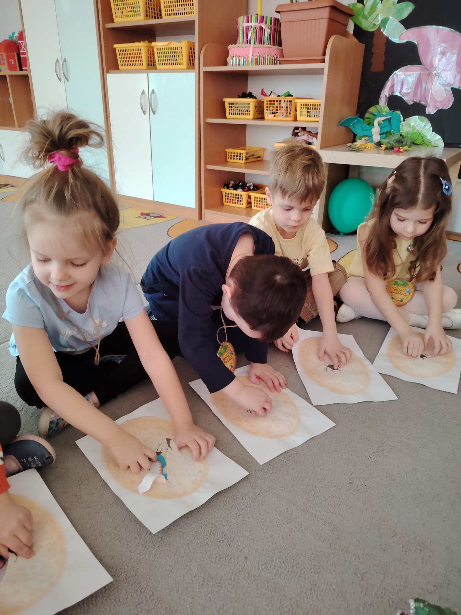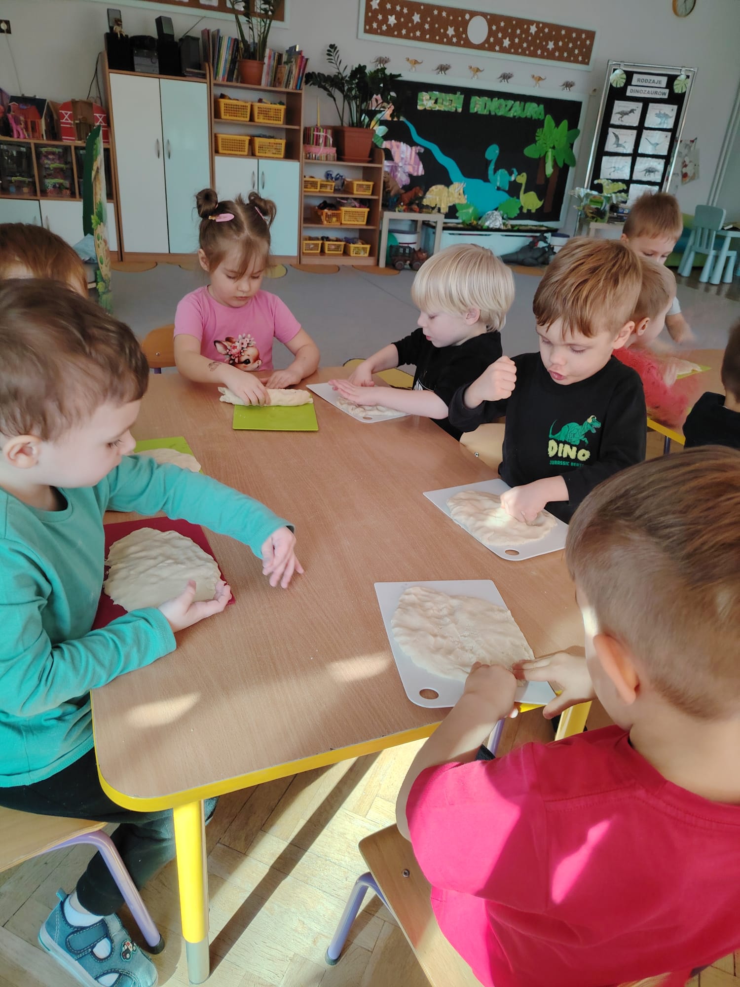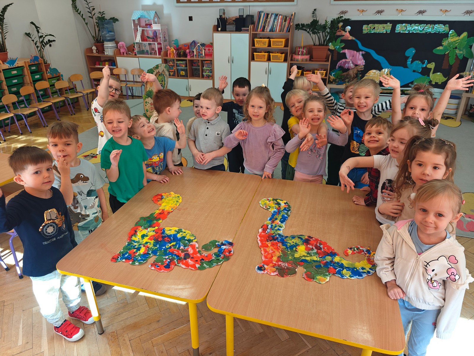 W tym tygodniu w grupie II zrealizowany został projekt edukacyjny pt. „Tajemnice prehistorycznego świata dinozaurów”, którego głównym celem było: rozbudzanie ciekawości poznawczej dzieci; poznawanie świata prehistorycznych zwierząt – dinozaurów; rozwijanie wyobraźni, kreatywności oraz aktywności twórczej dzieci; wspieranie wszechstronnego rozwoju poprzez zabawę, doświadczenia i obserwację.