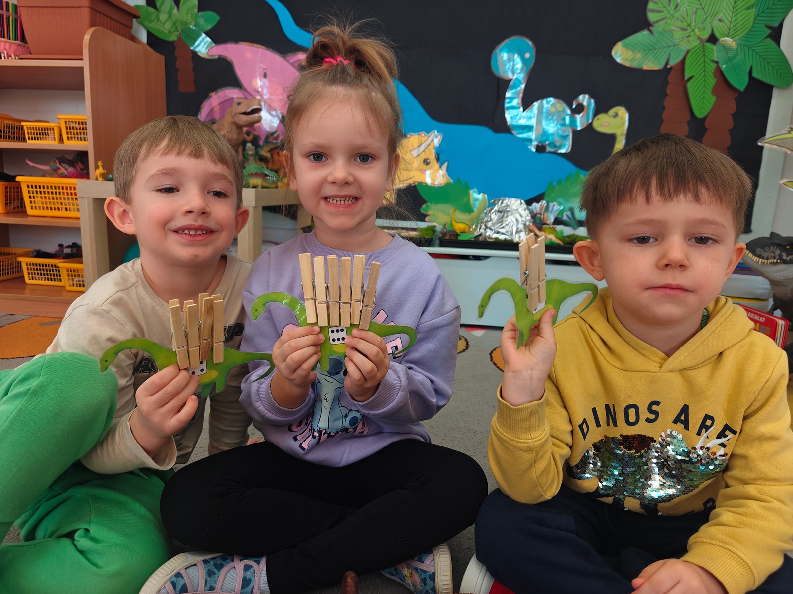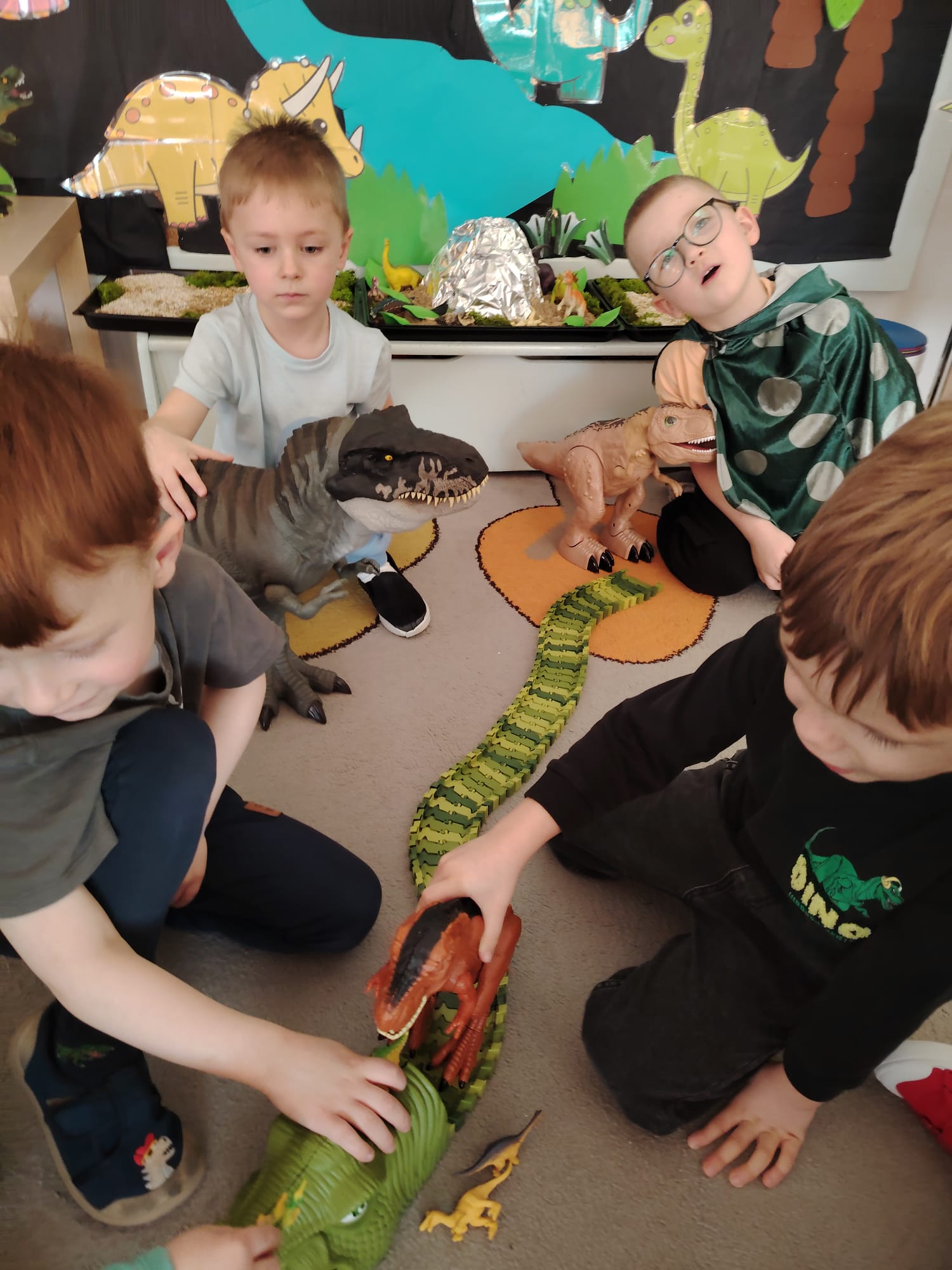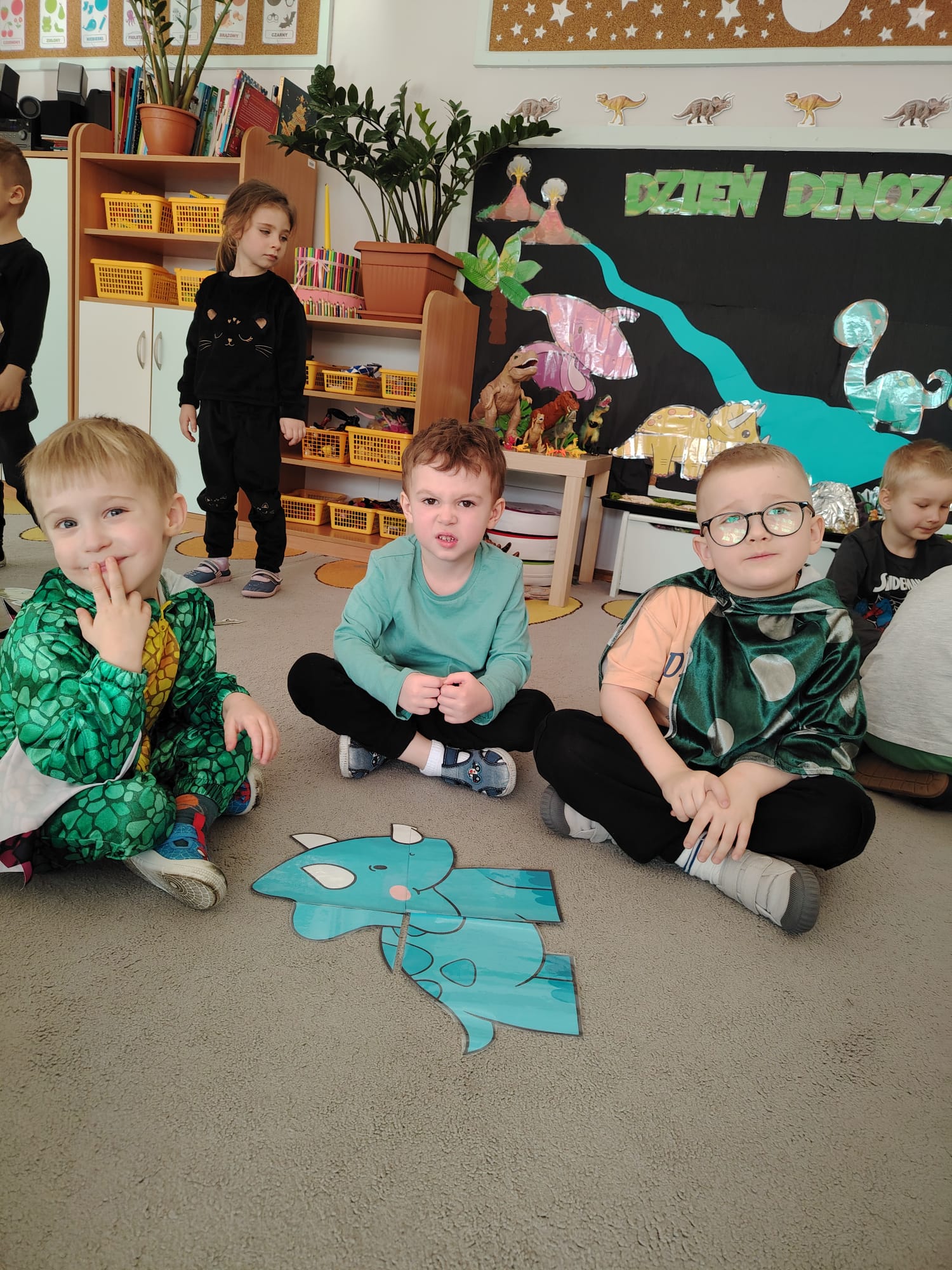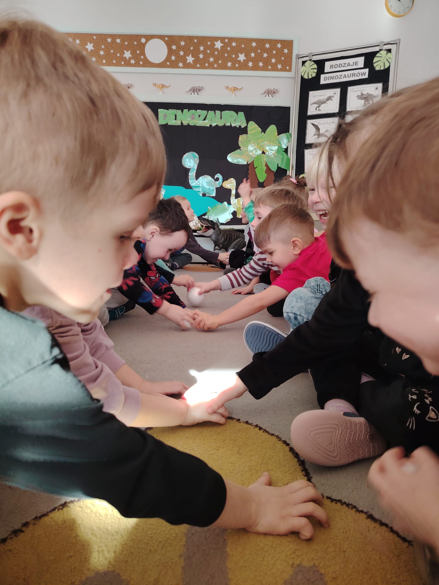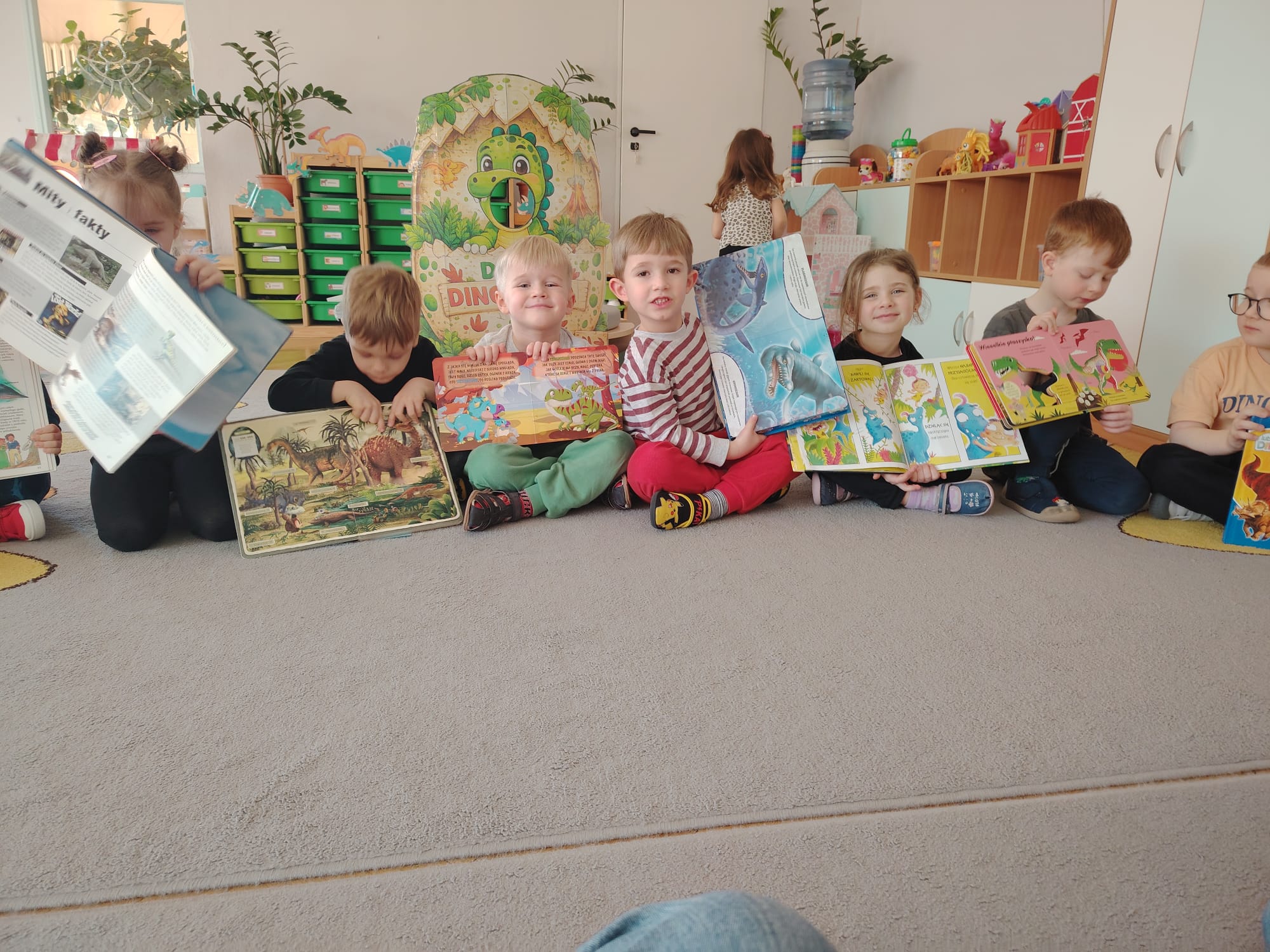 W tym tygodniu w grupie II zrealizowany został projekt edukacyjny pt. „Tajemnice prehistorycznego świata dinozaurów”, którego głównym celem było: rozbudzanie ciekawości poznawczej dzieci; poznawanie świata prehistorycznych zwierząt – dinozaurów; rozwijanie wyobraźni, kreatywności oraz aktywności twórczej dzieci; wspieranie wszechstronnego rozwoju poprzez zabawę, doświadczenia i obserwację.